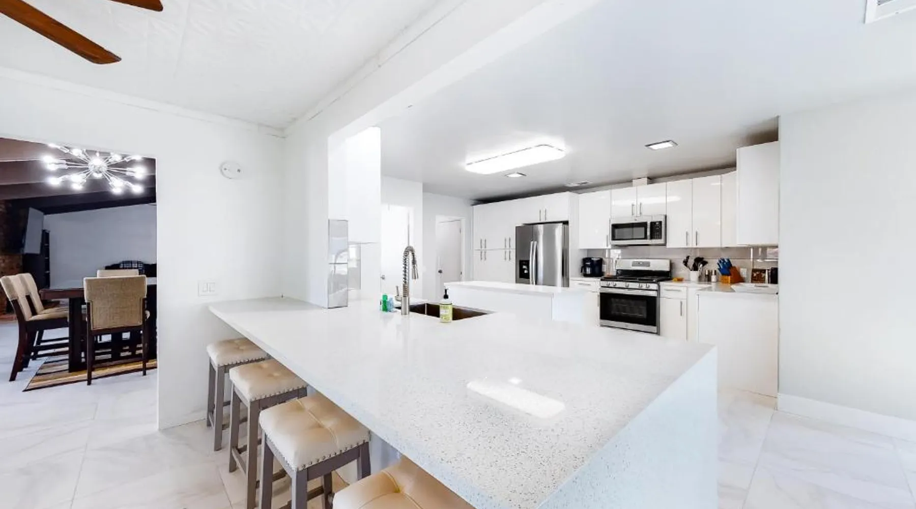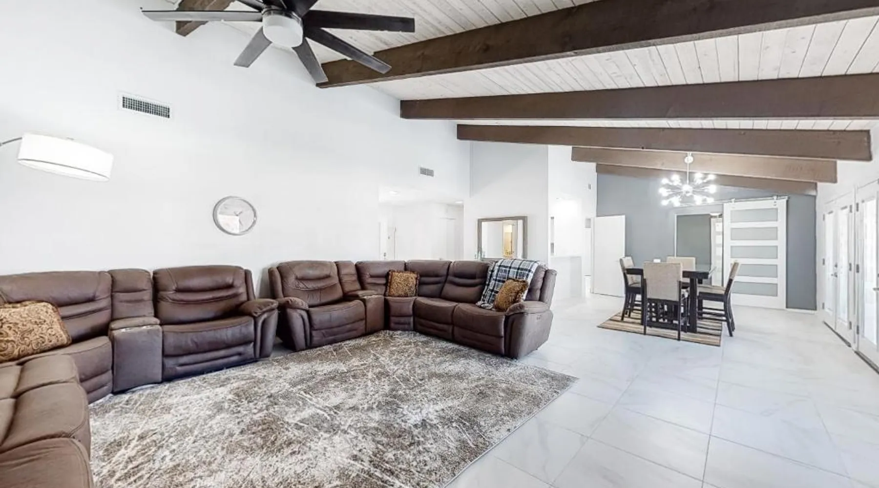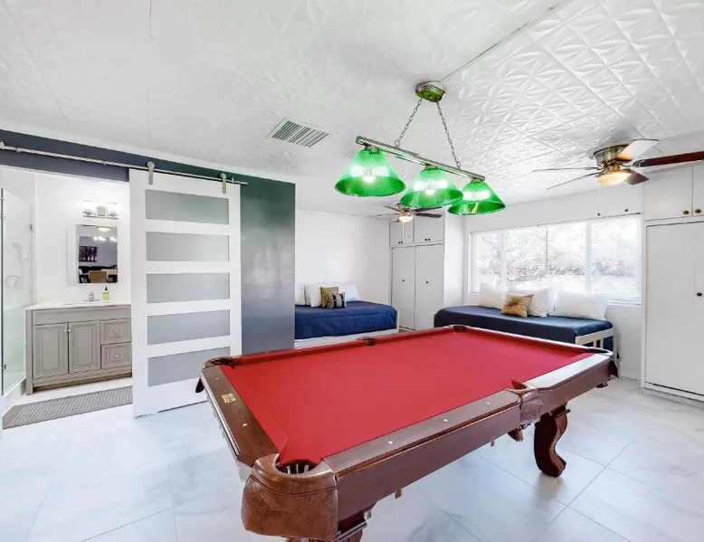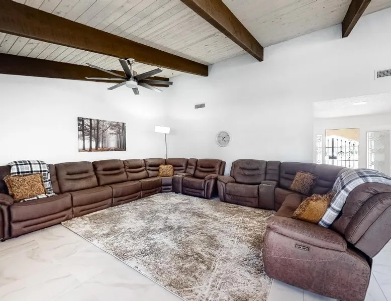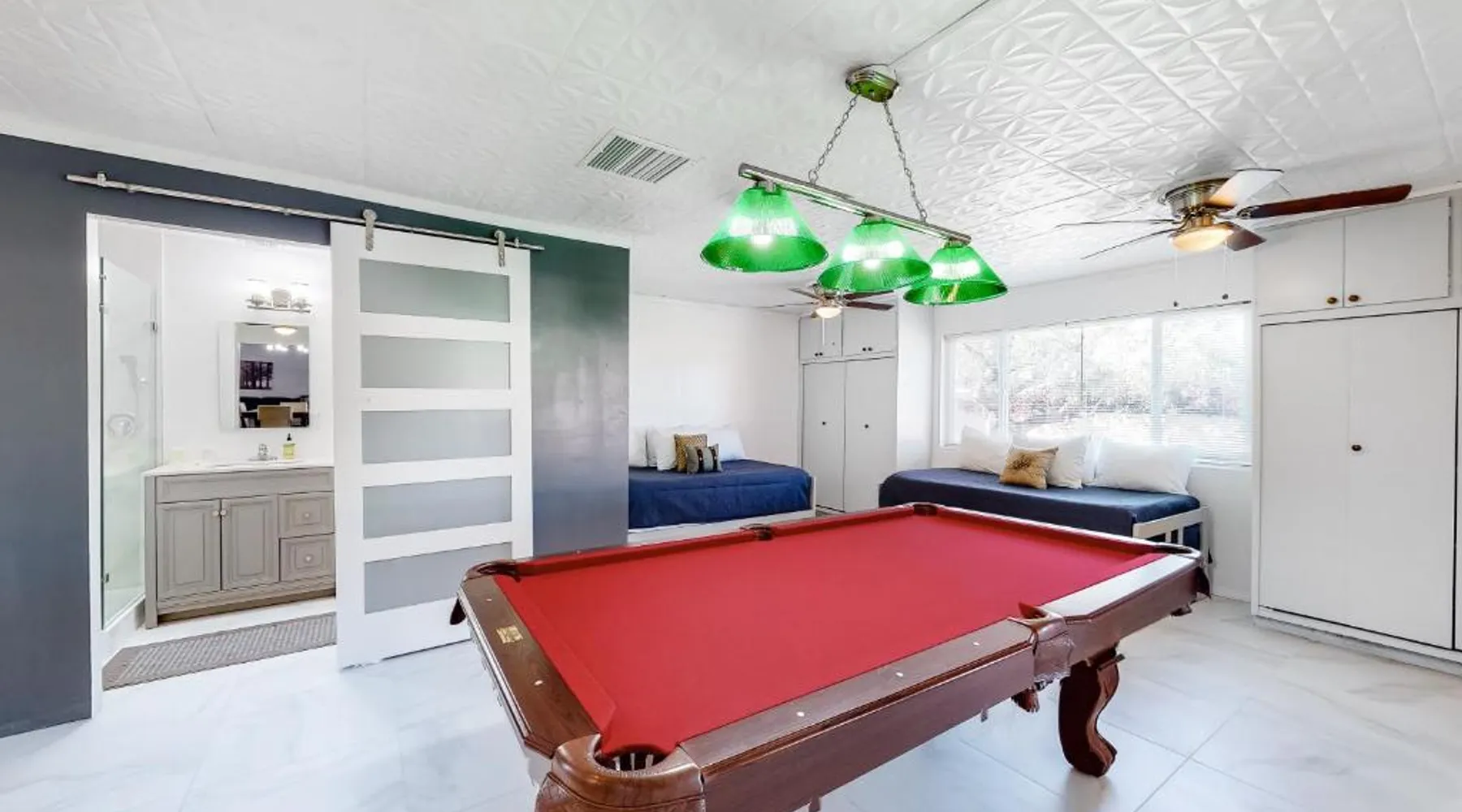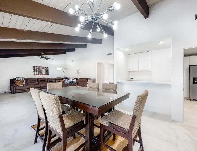 Spacious Holiday Home in Palm Springs: Casa Via Estrella Permit# 4611 offers a spacious setting in Palm Springs. The property features four bedrooms and four bathrooms, ensuring ample space for all guests. Exceptional Facilities: Guests can enjoy a swimming pool with stunning views, a restaurant, and an outdoor seating area. Additional amenities include a picnic area, games room, and children's playground, catering to all ages. Comfortable Living Spaces: The holiday home is equipped with air-conditioning, a heated pool, streaming services, and a fully fitted kitchen. Other amenities include a fireplace, barbecue, and outdoor dining area, enhancing the overall comfort. Prime Location: Located 3.1 mi from Palm Springs International Airport, the property is a short distance from Indian Canyons Golf Resort (12-minute walk) and Canyon Country Club South Golf Course (0.7 mi). Highly rated by guests, the holiday home provides easy access to local attractions. The private pool and fireplace are the standout features of this holiday home. Featuring a private entrance, this spacious holiday home also consists of 4 bedrooms, a seating area and 4 bathrooms with a walk-in shower and a hairdryer. Guests will find a stovetop, a refrigerator, a dishwasher and kitchenware in the well-fitted kitchen. The holiday home also provides guests with a barbecue. The air-conditioned holiday home provides a TV with streaming services, a washing machine, a mini-bar, a tea and coffee maker as well as pool views. The unit offers 5 beds.