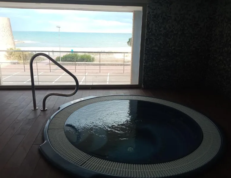 Beachfront Location: BEACH SUN SPIRIT in La Manga del Mar Menor offers direct beachfront access and stunning sea views. Final de la Manga Beach is just a 3-minute walk away, while Puerto Deportivo Tomas Maestre lies 3.7 mi from the property. Spa and Wellness: Guests can relax in the hot spring bath, sauna, and hammam. The spa and wellness center includes a swimming pool with a view, open-air bath, and fitness center. Free WiFi is available throughout the apartment. Comfortable Accommodations: The recently renovated apartment features air-conditioning, a terrace, and a balcony. Amenities include a kitchenette, private bathroom, washing machine, and free on-site parking. Highly rated for its location and host. This apartment features a pool with a view. This spacious apartment includes 1 living room, 3 separate bedrooms and 2 bathrooms with a bath and free toiletries. The fully equipped kitchen has a stovetop, a refrigerator, a dishwasher and kitchenware. The air-conditioned apartment offers a flat-screen TV, a washing machine, a tea and coffee maker, a seating area as well as sea views. The unit has 5 beds.