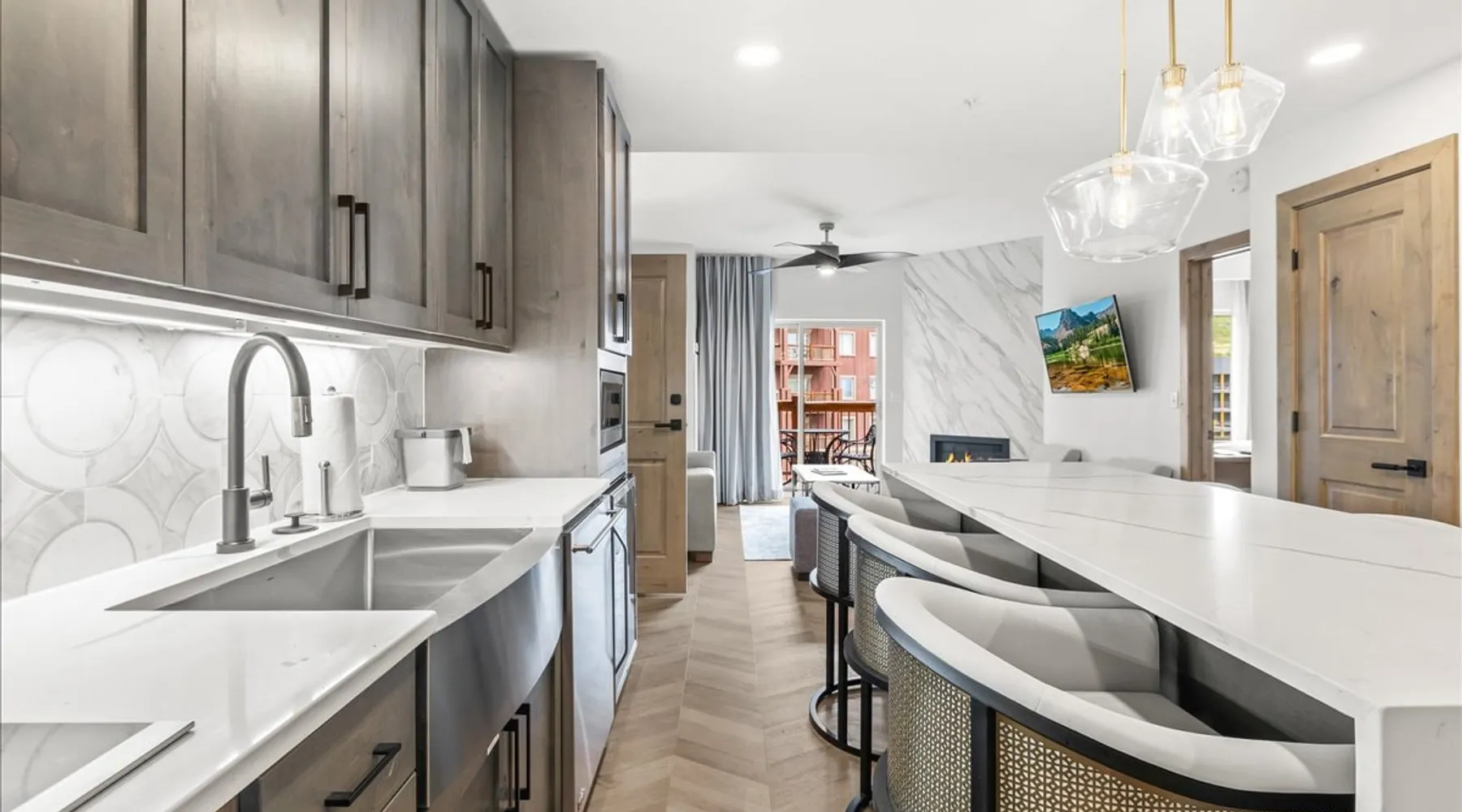 Enjoy this luxury, fully renovated superior unit at Westgate Park City. This one-bedroom unit has been upgraded throughout with superior new furnishings and upgraded decor. The deluxe home features a full luxury kitchen, a living room, one bedroom, a balcony, and sleeps up to 4. Compliment your superior one-bedroom home with a premier ski-in ski-out location, and the most complete list of property amenities in the area. The property is located in the very heart of Park City's Canyons Village. The space Enjoy this luxury, fully renovated superior unit at Westgate Park City. This one-bedroom unit has been upgraded throughout with superior new furnishings and upgraded decor. The deluxe home features a full luxury kitchen, a living room, one bedroom, a balcony, and sleeps up to 4. The chefs kitchen features a gorgeous cascading quartz center island for your dining pleasure and stainless appliances. Light airy living room with fireplace, TV and balcony The master suite features a fireplace, king bed, balcony access, deep soaking tub, double sinks, and separate shower. Robes and an in-unit washer and dryer are provided. Compliment your superior one-bedroom home with a premier ski-in ski-out location, and the most complete list of property amenities in the area. The property is located in the very heart of Park City's Canyons Village putting you at the epicenter of skiing, golf, mountain biking, hiking, restaurants, shops, spring ski and summer concerts, and more. With three swimming pools, a full-service onsite spa, onsite restaurants, complimentary area transport, ski valet service (just ski down and hand your skis to the valet staff), and more, such is not only a full-service property but boasts the most complete list of resort amenities and activities in the area including: > Multiple pools, both indoor and outdoor (year-round) > Full-service spa > Top rated restaurant (edge) > Sports bar (drafts) > Ski valet/ski storage (collect your skis right by the lift) > Front desk check-in > Bell service > Gym > Yoga studio > Tennis > Playground > Basketball > Gameroom > Coffee > Business center > Complimentary area transportation > Activities center (organized activities) > Kids Club > And much more Need additional space? We have several units in the building including others just steps from this one. Please note: > property is non-smoking, no pets ***Long term (28 night or longer) stays are only accepted April through November. Guest access check in is at the front desk, please reference your last name. Guests enjoy the entire unit (private accommodation) and all property amenities Other things to note > Complimentary parking limited to one vehicle > Optional housekeeping available during the stay, must be arranged a minimum of two weeks in advance, additional charges apply > Please note that the indoor/outdoor pool will be closed for upgrade April through mid-late May. The property’s other three pools will remain available for use.