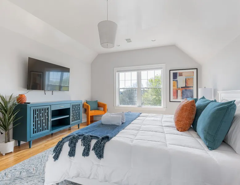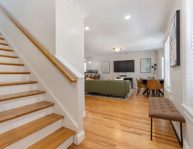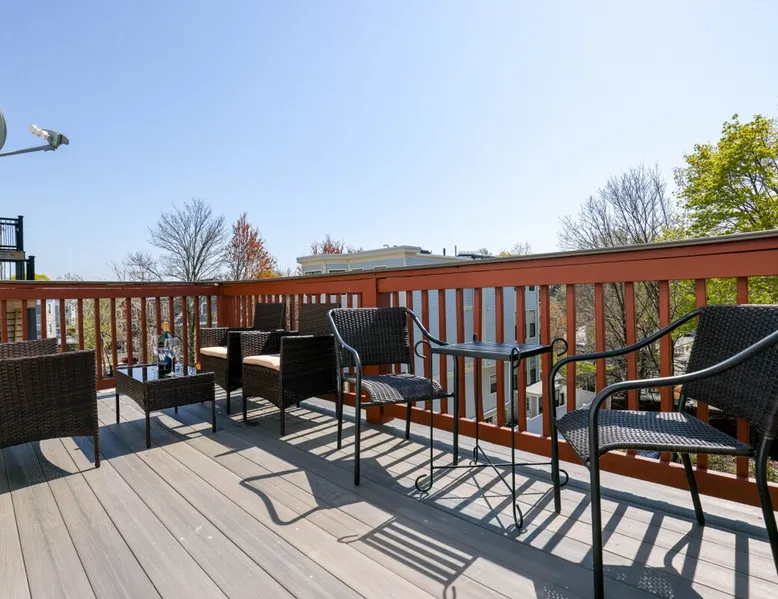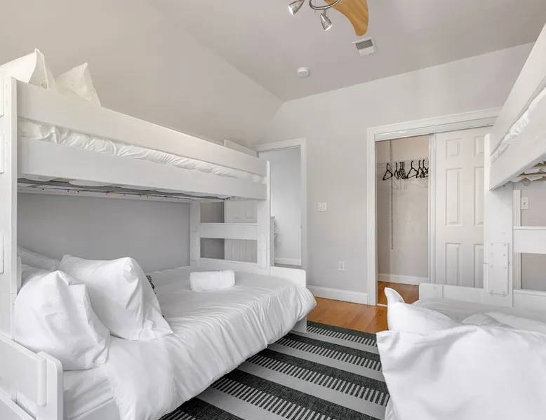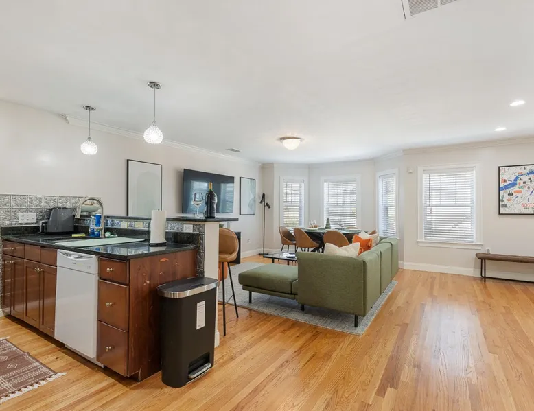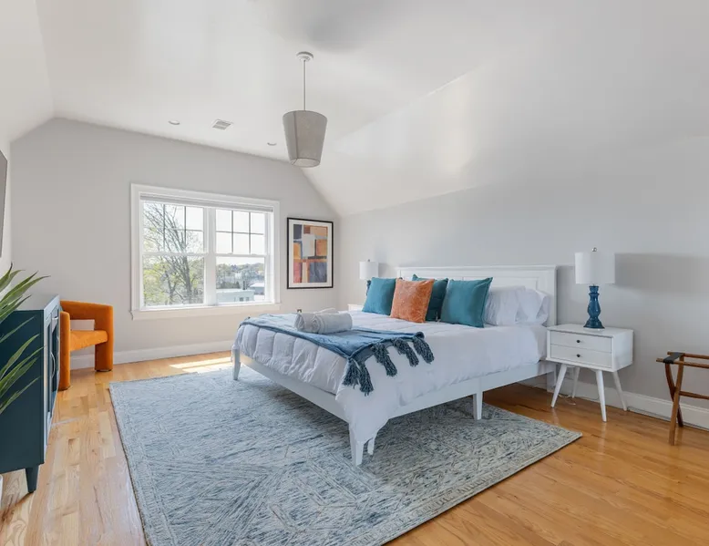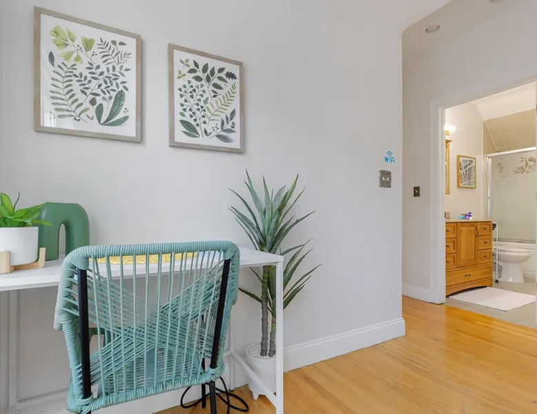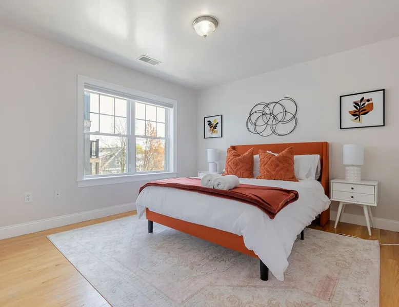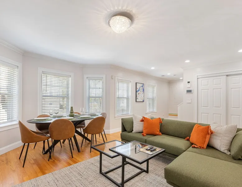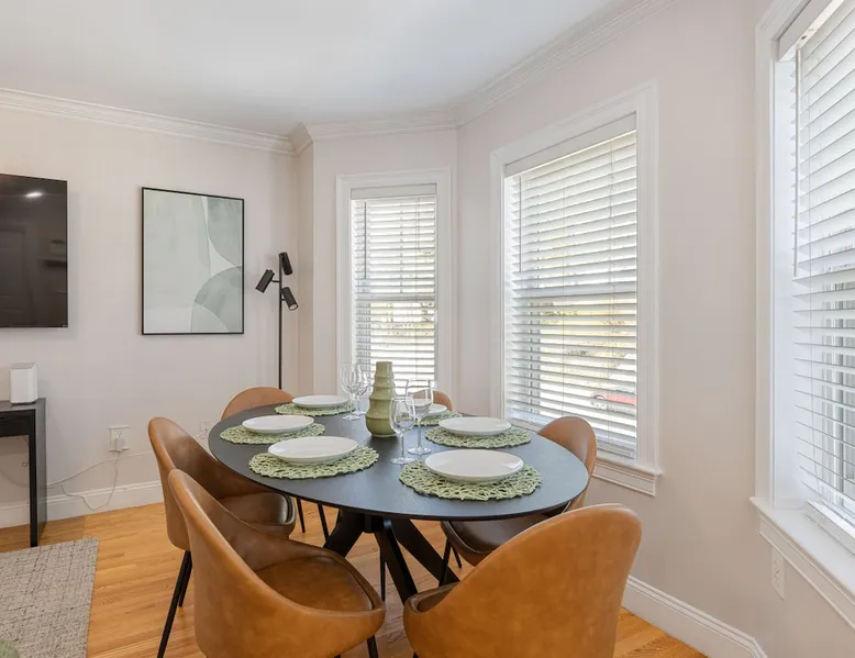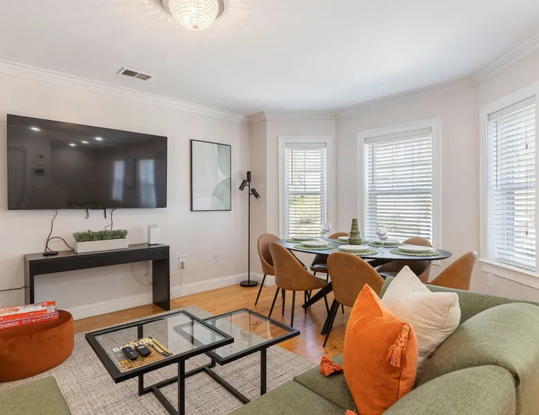 Bring your family, friends, and pet to this two-story Bohemian style treasure, a hidden gem in the Boston/Dorchester Area. Enjoy ample parking space for 3 cars, the privacy of a great night of sleep with blackout shades and gel-memory foam mattresses, and pillows. Attend your loved one graduation with ease just an 8 min drive to UMass Boston. Baseball, Basketball, Hockey has never been easier! Attend any of the games less than 15 min drive to Fenway Park Dearly called #TheBackDorch The space Living room: An open space concept, furnished with a beautiful moss green sectional spiced up with burnt orange and contrasted with sandy white throw pillows, the living room seats 16 people comfortably. 65" Roku HDTV loaded up with Netflix, Hulu, and Amazon Prime Videos An asymmetrical coffee table and two burnt orange round seat. The living room, kitchen, bathroom 1 and bedroom 1, 2, and 3, and the deck are on the same floor. Kitchen: Kitchen is layered with beautiful black granite counter and updated appliances. - Ground coffee maker & Keurig combo, - Stainless steel ice-maker double-door refrigerator - Gas stove - Air fryer - Toaster oven - Dishwasher - Garbage compactor Bathroom 1: - Washer - Dryer Bedroom 1: Black and yellow. 1 queen gel memory foam bed and pillows and 2 nightstands. Closet space and mirror doors. Bedroom 2: Burnt orange & black. 1 queen gel memory foam bed and pillows and 2 night stands. Closet space Bedroom 3: Green and white. 1 queen gel memory foam bed and pillows and 2 nightstands. Closet space Deck: outdoor furnitures and glass coffee table Upstairs Dedicated Workspace Bedroom 4: White and a tinge of green. Two twin over full bed bunk beds. Master Bedroom: King bed, 2 night stands. 55" Roku HDTV loaded up with Netflix, Hulu, and Amazon Prime Videos. TV stand. Closet and closet door mirror Guest access Guests have access to the entire space, including the deck and outdoor furniture. Other things to note Electricity costs are super high. We ask our guests to be mindful of usage and help us reduce costs. We are extremely grateful for picking us and helping us! Note: Additional guest cost may apply Registration Details STR-521194