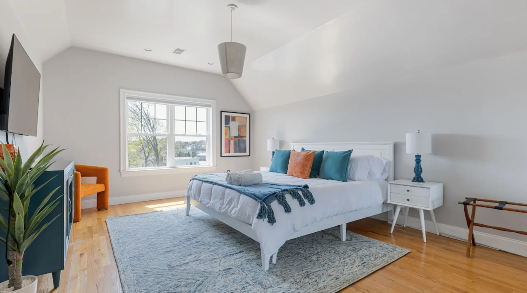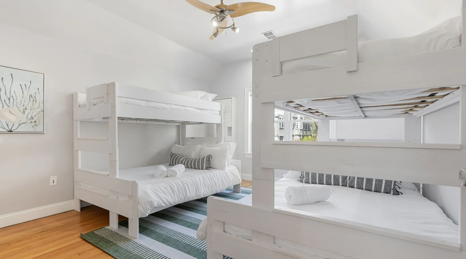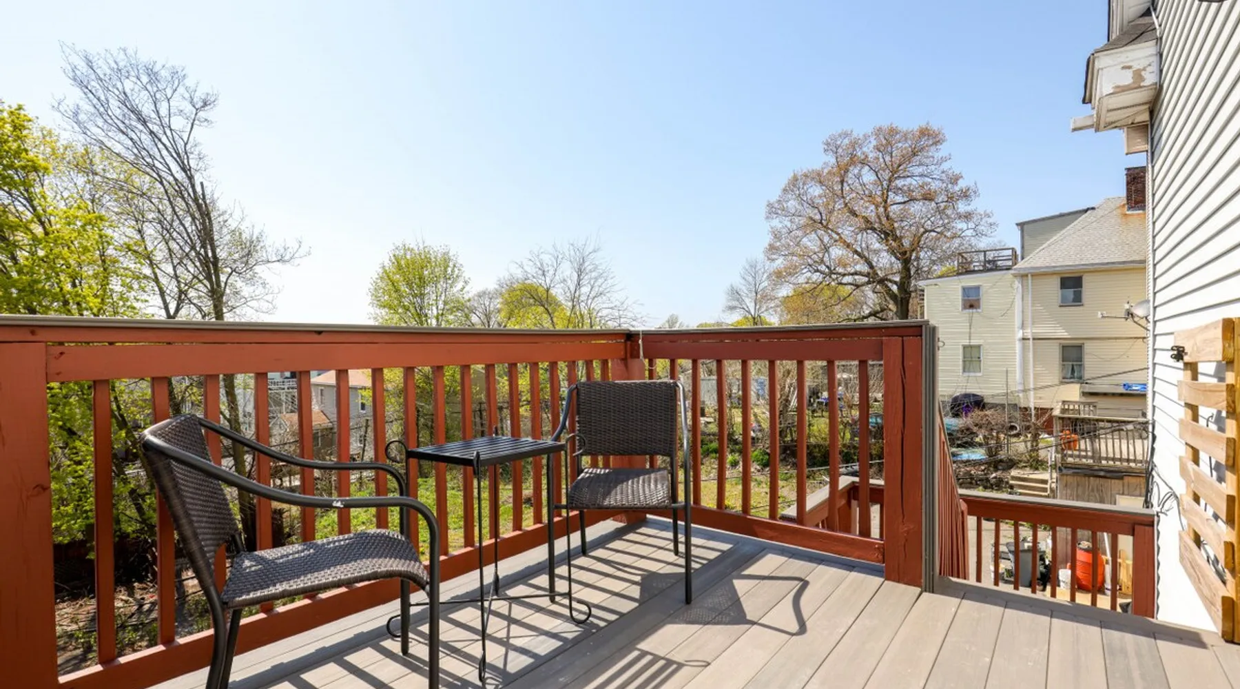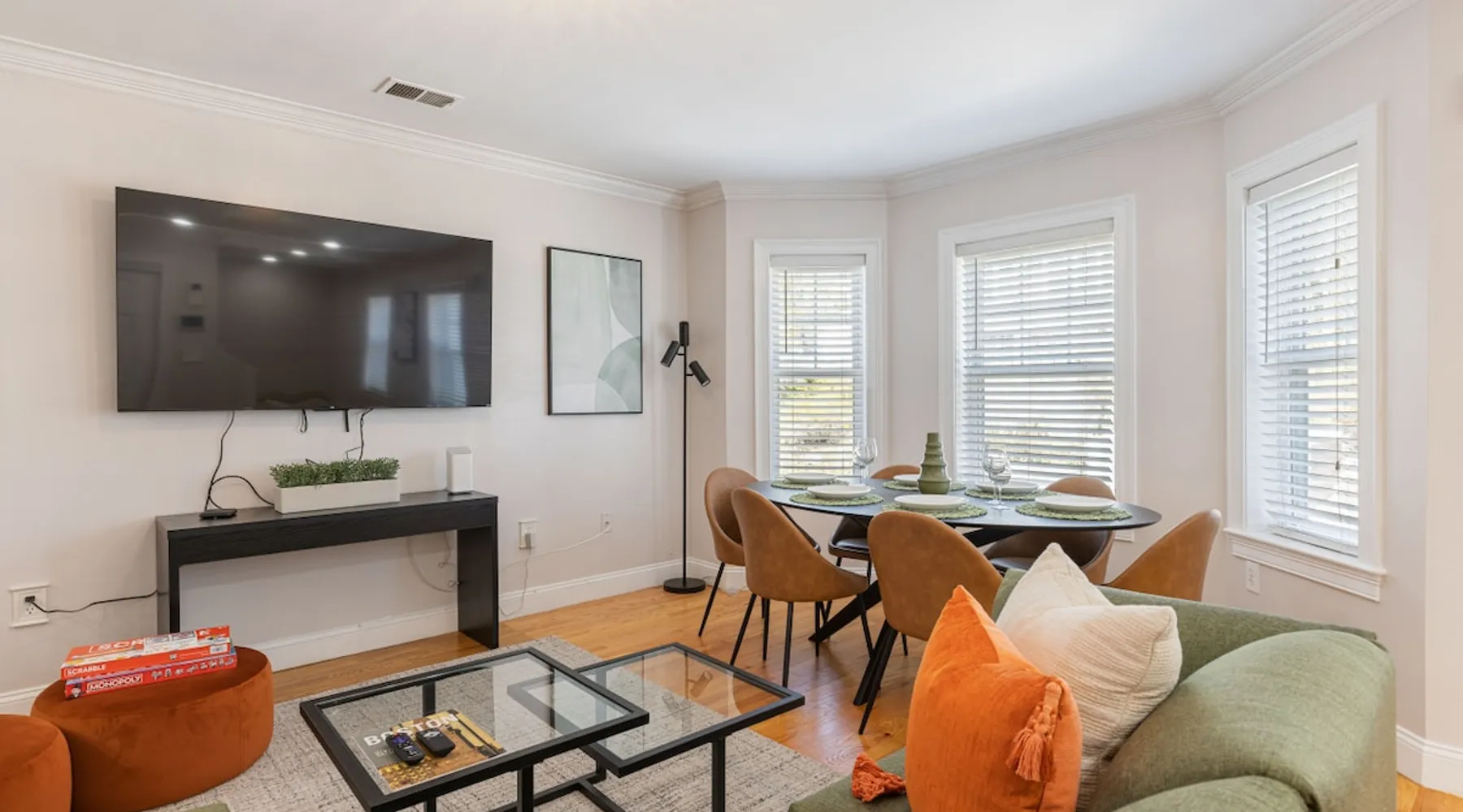 Bring your family, friends, and pet to this two-story Bohemian style treasure, a hidden gem in the Boston/Dorchester Area. Enjoy ample parking space for 3 cars, the privacy of a great night of sleep with blackout shades and gel-memory foam mattresses, and pillows. Attend your loved one graduation with ease just an 8 min drive to UMass Boston. Baseball, Basketball, Hockey has never been easier! Attend any of the games less than 15 min drive to Fenway Park Dearly called #TheBackDorch The space Living room: An open space concept, furnished with a beautiful moss green sectional spiced up with burnt orange and contrasted with sandy white throw pillows, the living room seats 16 people comfortably. 65" Roku HDTV loaded up with Netflix, Hulu, and Amazon Prime Videos An asymmetrical coffee table and two burnt orange round seat. The living room, kitchen, bathroom 1 and bedroom 1, 2, and 3, and the deck are on the same floor. Kitchen: Kitchen is layered with beautiful black granite counter and updated appliances. - Ground coffee maker & Keurig combo, - Stainless steel ice-maker double-door refrigerator - Gas stove - Air fryer - Toaster oven - Dishwasher - Garbage compactor Bathroom 1: - Washer - Dryer Bedroom 1: Black and yellow. 1 queen gel memory foam bed and pillows and 2 nightstands. Closet space and mirror doors. Bedroom 2: Burnt orange & black. 1 queen gel memory foam bed and pillows and 2 night stands. Closet space Bedroom 3: Green and white. 1 queen gel memory foam bed and pillows and 2 nightstands. Closet space Deck: outdoor furnitures and glass coffee table Upstairs Dedicated Workspace Bedroom 4: White and a tinge of green. Two twin over full bed bunk beds. Master Bedroom: King bed, 2 night stands. 55" Roku HDTV loaded up with Netflix, Hulu, and Amazon Prime Videos. TV stand. Closet and closet door mirror Guest access Guests have access to the entire space, including the deck and outdoor furniture. Other things to note Electricity costs are super high. We ask our guests to be mindful of usage and help us reduce costs. We are extremely grateful for picking us and helping us! Note: Additional guest cost may apply Registration Details STR-521194