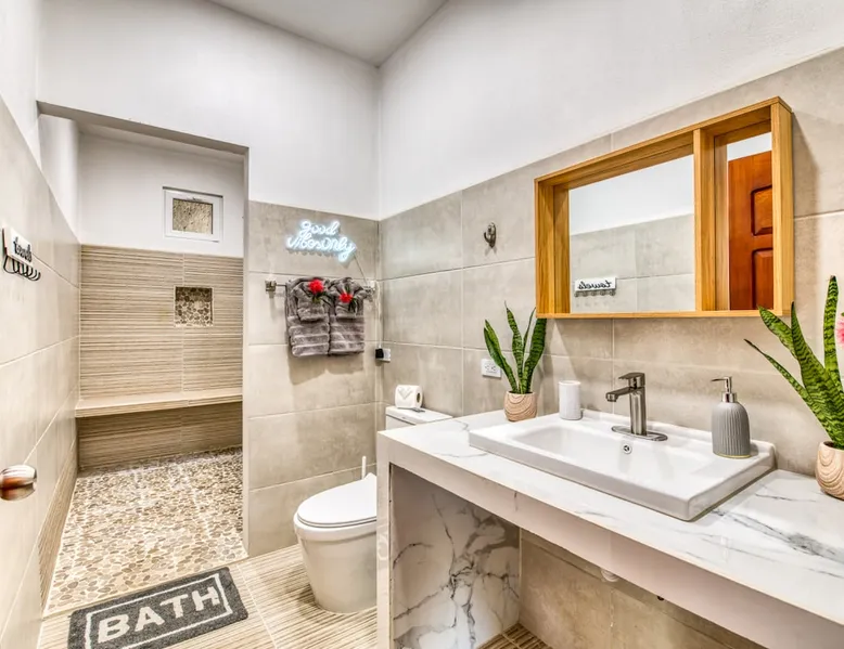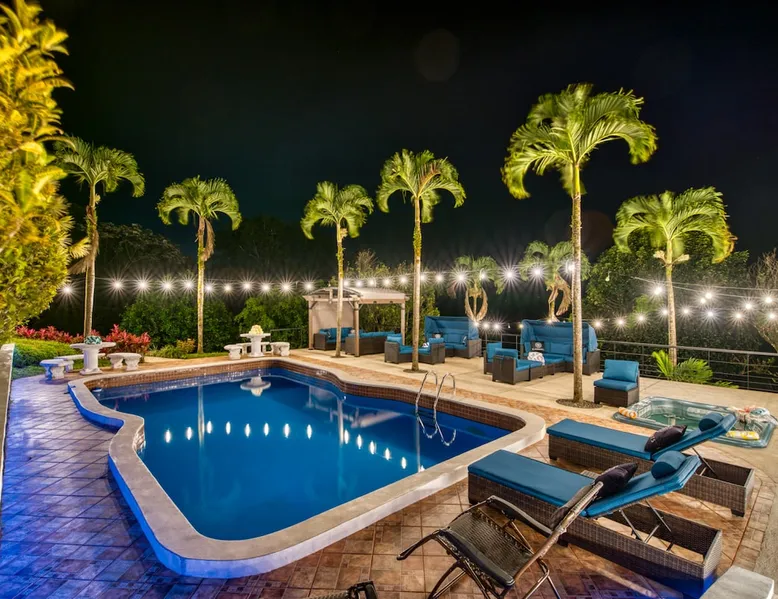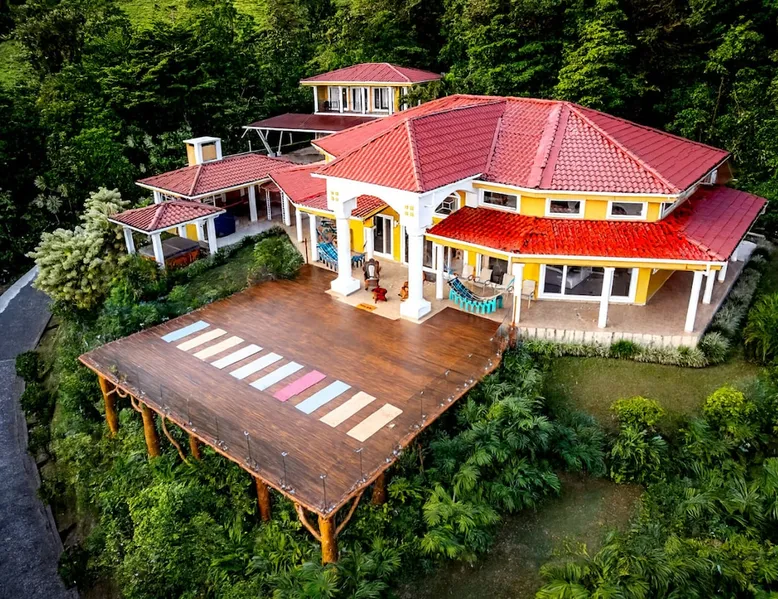 Welcome to the largest private resort near La Fortuna Costa Rica, the adventure capital of the country. With 13 acres of tropical rainforest, sweeping views of Lake Arenal, and space to sleep 25+ guests comfortably, this estate was designed for unforgettable family reunions, retreats, and destination weddings. Looking for a beach + mountain experience? Combine this stay with our 15 bedroom property in Nosara on the Pacific coast for the ultimate Costa Rica getaway. airbnb.com/h/506nosara The space 𝐖𝐡𝐚𝐭 𝐬𝐞𝐭𝐬 𝐮𝐬 𝐚𝐩𝐚𝐫𝐭? Hands-on, full-service support from start to finish. You won’t just book a villa, you’ll gain a trusted local partner. As your personal vacation planner, I’m here to coordinate all logistics: airport transfers, group excursions, private chefs, yoga instructors, massage therapists, event planning, and more. No need to spend hours figuring out details. Just arrive and enjoy. 𝐈𝐝𝐞𝐚𝐥 𝐟𝐨𝐫: Multi-generational families seeking connection in nature Wellness, corporate, or creative retreats Wedding parties & destination celebrations (event capacity: 60) Travel groups looking for both relaxation and adventure 𝐖𝐡𝐚𝐭 𝐘𝐨𝐮’𝐥𝐥 𝐋𝐨𝐯𝐞 • Five Villas | 10 Bedrooms | 13 Bathrooms | Sleeps 25+ Enjoy exclusive access to 5 spacious villas, each with en-suite bathrooms and A/C in all bedrooms. Plus a private pool, hot tub, and views you'll never forget. • Concierge Included Your stay includes full-time support with transportation, excursions, in-house spa treatments, private chef services, grocery delivery, and more. I’m your on-the-ground expert and event coordinator. • 25-Person Dining Table + Group Spaces Gather around a massive table designed for large groups ideal for shared meals, workshops, or celebrations. • Central Access to Costa Rica's Top Sights Our lakefront mountain location is a tranquil retreat just a short drive from La Fortuna, Rio Celeste, waterfalls, hanging bridges, hot springs, zip-lining, and even day trips to Monteverde or the beach. • Local Culture, Global Comforts All the rustic beauty of Costa Rica, with high-speed fiber internet, smart TVs, security gate, and on-site staff to ensure a seamless experience. 𝐏𝐫𝐨𝐩𝐞𝐫𝐭𝐲 𝐅𝐞𝐚𝐭𝐮𝐫𝐞𝐬 13 acres of private, fenced rainforest land 10,000+ sq/ft indoor living space All bedrooms air-conditioned Private spring with small waterfalls Lake view pool & panoramic hot tub Secure gated property with staff on-site Optional private chef, yoga classes, and wellness services Friendly, U.S.-based hosts with 300+ 5-star reviews 𝐖𝐞𝐝𝐝𝐢𝐧𝐠𝐬 𝐚𝐧𝐝 𝐞𝐯𝐞𝐧𝐭𝐬 𝐰𝐞𝐥𝐜𝐨𝐦𝐞! 𝐑𝐞𝐭𝐫𝐞𝐚𝐭 & 𝐄𝐯𝐞𝐧𝐭 𝐑𝐞𝐚𝐝𝐲 A brand-new 1,200 sq/ft yoga deck completed 2025 Current capacity: 60 event guests Event fees based on group size (added at checkout): • 1–20 guests: $3,000 • 21–40 guests: $4,000 • 41–60 guests: $5,000 𝐅𝐢𝐫𝐬𝐭 𝟏𝟎 𝐞𝐯𝐞𝐧𝐭 𝐟𝐞𝐞𝐬 𝐰𝐚𝐢𝐯𝐞𝐝 (𝟒 𝐫𝐞𝐦𝐚𝐢𝐧𝐢𝐧𝐠) 𝐁𝐨𝐨𝐤 𝟕 𝐧𝐢𝐠𝐡𝐭𝐬 𝐭𝐨 𝐠𝐞𝐭 𝐚𝐧 𝟖𝐭𝐡 𝐧𝐢𝐠𝐡𝐭 𝐅𝐑𝐄𝐄! Guest access 𝐏𝐫𝐨𝐩𝐞𝐫𝐭𝐲 𝐋𝐚𝐲𝐨𝐮𝐭 𝐂𝐚𝐬𝐚 𝐆𝐫𝐚𝐧𝐝𝐞: Our flagship villa, Casa Grande, embraces you with 3 bedrooms completed with en suite baths, comfortably accommodating 6 guests. Sofas and air mattresses can accommodate an additional 5 guests. • Two King suites • One queen suite • Six person hot tub • Panoramic lake views • Fully equipped chef's kitchen • 4 bathrooms • Dinner table that seats 25 𝐂𝐚𝐬𝐚 𝐏𝐫𝐢𝐦𝐞𝐫𝐚: Located closest to the pool, Casa Primera features 3 bedrooms, 4 beds and 3 ½ baths for 8 guests. Sofas and air mattresses can accommodate an additional 5 guests. Distinguished by stone accent walls, a cozy fireplace, a stone arch entry, and a master suite balcony. • One king and one queen suites with en suite bathrooms • One bedroom with 2 full size beds with en suite bathroom • Fully equipped kitchen 𝐂𝐚𝐬𝐚 𝐁𝐞𝐥𝐥𝐚 𝐕𝐢𝐬𝐭𝐚 (Next to Casa Grande): Revel in the best view of the lake in this characteristic private villa. Upstairs, a spacious room with a queen bed, queen sofa bed and a full bathroom. The most luxurious master suite on the property awaits downstairs with a king bed and private full bathroom en suite. A well-appointed kitchen upstairs completes this elegant accommodation. The two bedrooms are separated with an outdoor staircase to access the top. • One King suite • One queen suite with queen sofa bed • Private kitchen upstairs 𝐓𝐡𝐞 𝐄𝐧𝐜𝐡𝐚𝐧𝐭𝐞𝐝 𝐂𝐨𝐭𝐭𝐚𝐠𝐞- King bedroom, private full bath, kitchenette, relaxing panoramic window sun room in the front of the house. Close to the pool and the spring that delights you with a peaceful melody of flowing water. • One King suite with private full bathroom • Private kitchen 𝐂𝐚𝐬𝐚 𝐝𝐞 𝐀𝐠𝐮𝐚- King bed, private full bath, boho decor, large sliding glass doors. Located at the bottom of the property with a private parking space. • King suite Other things to note Your adventure awaits at 𝑨𝒓𝒆𝒏𝒂𝒍 𝑺𝒑𝒓𝒊𝒏𝒈𝒔 𝑽𝒊𝒍𝒍𝒂𝒔 𝒃𝒚 𝒕𝒉𝒆 𝑳𝒂𝒌𝒆. We look forward to hosting you and providing an exceptional Costa Rican experience you'll cherish forever.