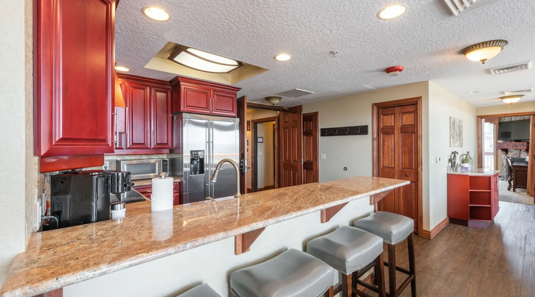Enjoy this unique penthouse unit at the Westgate Park City. This special top floor presidential penthouse has private hot tub, vaulted ceilings, an expansive 85' balcony, four bedrooms, four full bathrooms, and sleeping for up to 14. It is the best of the best at the Westgate Park City. Compliment your penthouse home with a premier ski-in ski-out location, and the most complete list of property amenities in the area, and enjoy an exceptional holiday. The space Enjoy this unique penthouse unit at the Westgate Park City. This special top floor presidential penthouse has private hot tub, vaulted ceilings, an expansive 85' balcony, four bedrooms, four full bathrooms, and sleeping for up to 14. It is the best of the best at the Westgate Park City. Compliment your penthouse home with a premier ski-in ski-out location, and the most complete list of property amenities in the area, and enjoy an exceptional holiday. The great room features plank flooring, fireplace, vaulted ceilings, sleep sofa, and expansive windows on three sides opening to the wrap around balcony with its views and private hot tub. Full kitchen is provided with stainless GE Monogram appliances. Dining for up to 14 is provided through combination of bar and table seating. The master suite features a corner location with windows on two sides, fireplace, king bed, balcony access, desk, deep soaking jacuzzi tub, bath with double sinks and shower. Second bedroom also enjoys a corner location with windows on two sides, fireplace, king bed, balcony access, desk, ensuite bathroom with double sinks and shower. Third and fourth bedrooms feature king bed with ensuite bath, and enjoy a sitting area (with door available to separate) with sleep sofa. All bedrooms and sitting areas have flat screen TVs. Robes and in unit washer dryer are provided. Meanwhile the property is located in the very heart of Park City's Canyons Village putting you at the epicenter of skiing, golf, mountain biking, hiking, restaurants, shops, spring ski and summer concerts, and more. With three swimming pools, full service onsite spa, onsite restaurants, complimentary area transport, ski valet service (just ski down and hand your skis to the valet staff), and more, such is not only a full service property, but boasts the most complete list of resort amenities and activities in the area including: > multiple pools, both indoor and outdoor (year round) > full service spa > top rated restaurant (edge) > sports bar (drafts) > ski valet / ski storage (collect your skis right by the lift) > front desk check in > bell service > gym > yoga studio > tennis > playground > basketball > gameroom > coffee > business center > complimentary area transportation > activities center (organized activities) > kids club > and much more Need additional space? We have several units in the building including another top floor unit just steps from this one. Please note: > property is non-smoking, no pets ***Long term (28 night or longer) stays are only accepted April through November. Guest access check in is at the front desk, please reference your last name. Guests enjoy the entire unit (private accommodation) and all property amenities Other things to note > Complimentary parking limited to one vehicle > Optional housekeeping available during the stay, must be arranged a minimum of two weeks in advance, additional charges apply > Please note that the indoor/outdoor pool will be closed for upgrade April through mid-late May. The property’s other three pools will remain available for use.