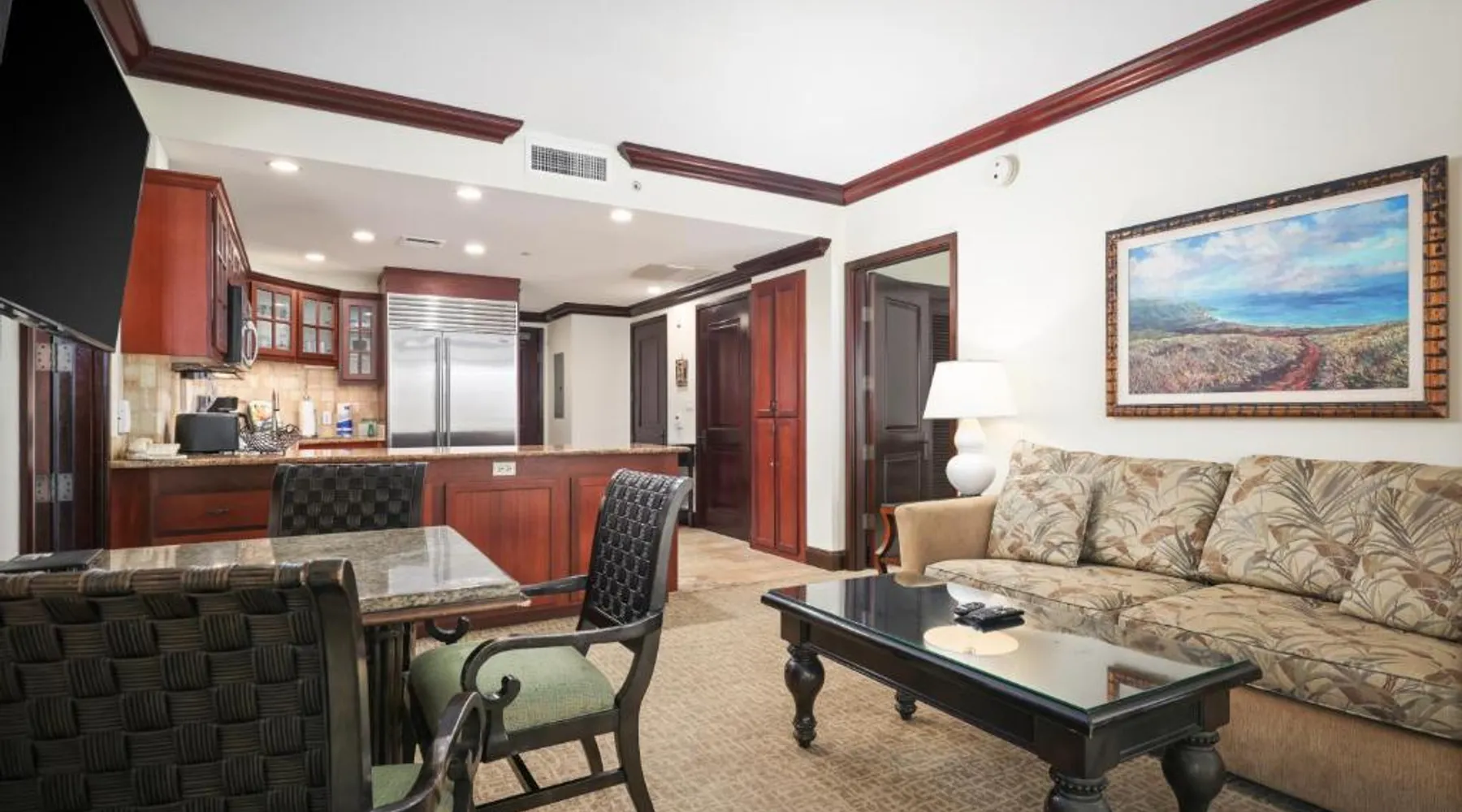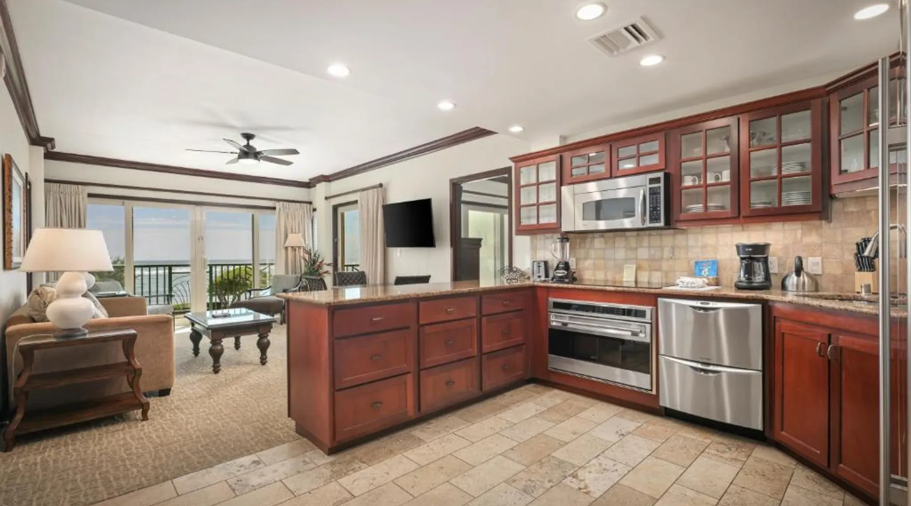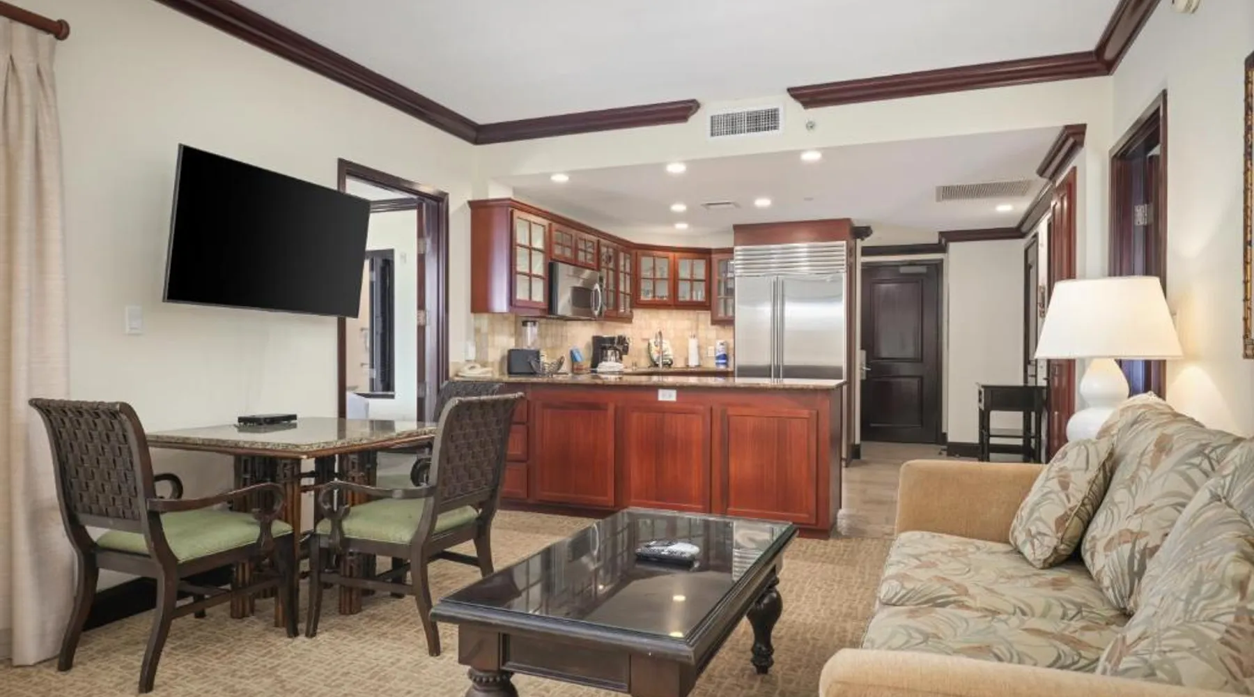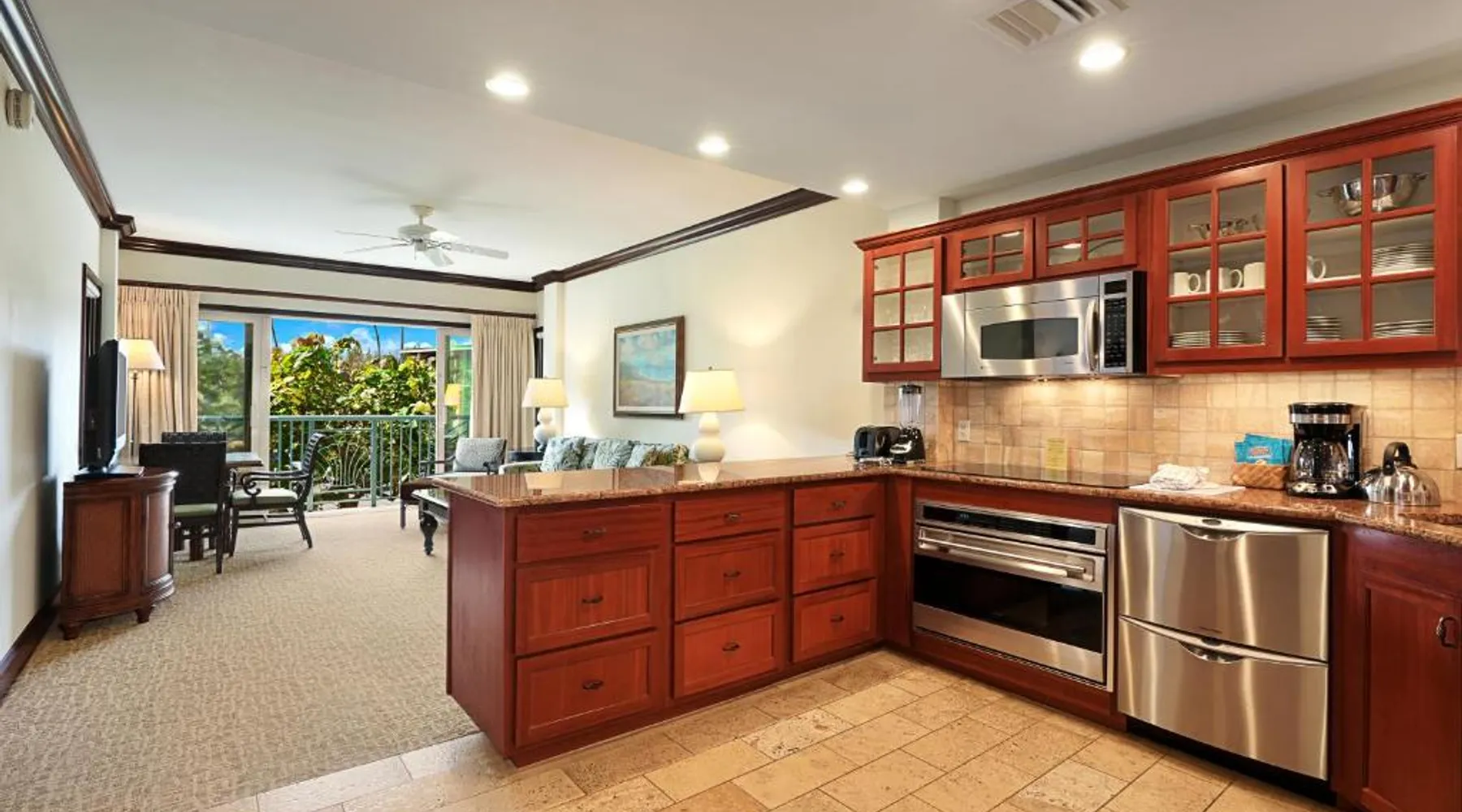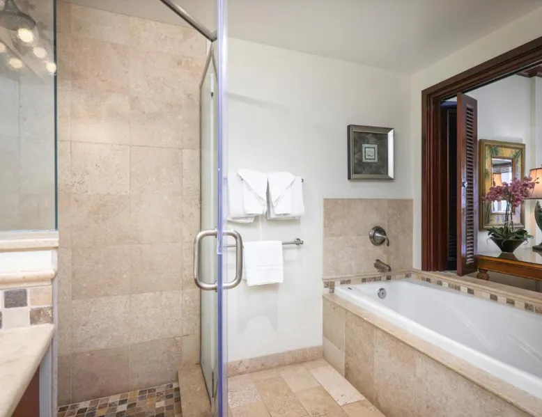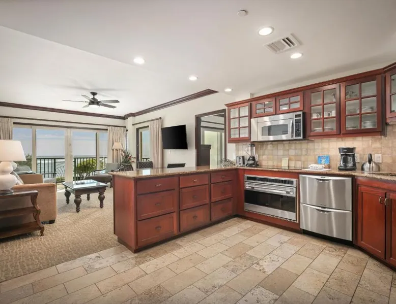 Featuring a 2-acre beach-side pool with water slides and cascading waterfalls, this Kauai resort offers 2-bedroom accommodations with luxury granite kitchens. Oceanside spa services are available. An ocean view, an ocean and beachfront view or a mountain view are featured in select two-bedroom accommodations at Waipouli Beach Resort and Spa by Outrigger. Featuring a balcony, each 2-bedroom unit provides a full kitchen with granite counters and luxury stainless steel appliances. A flat-screen TV is provided in the living room, blackout drapes are featured in the two bedrooms and three private bathrooms are also provided. Three poolside hot bathtubs are featured. Lounging on the expansive terrace is also available at Waipouli Beach Resort and Spa by Outrigger. A business center is also provided. Featuring organic produce, The Oasis of the Beach restaurant is adjacent to the beach and expansive pool. Lunch, cocktails, dinner and Sunday brunch are available. Kinipopo Shopping Village Shopping is a 10-minute walk away. Wailua Golf Course is a 5-minute drive from the property. This quadruple room provides a private bathroom, and air conditioning. The quadruple room's kitchen is available for cooking and storing food. The quadruple room features a balcony. The unit offers 2 beds.