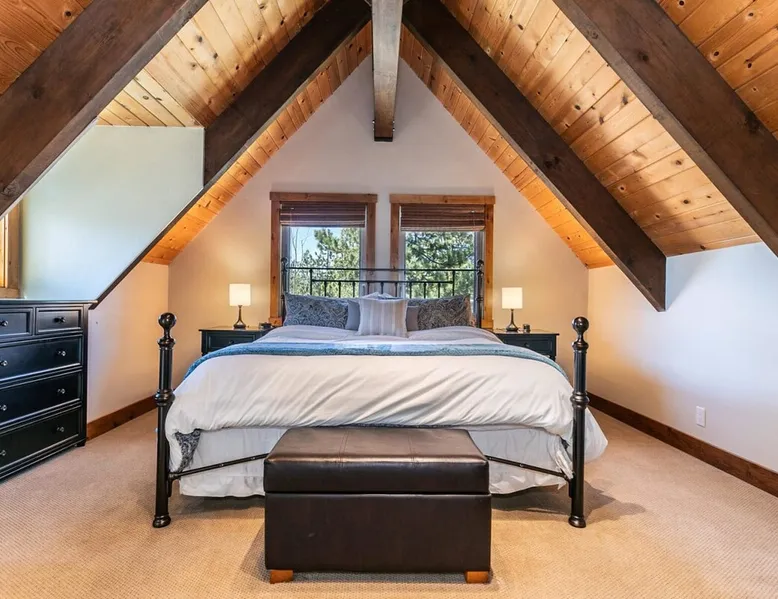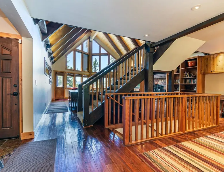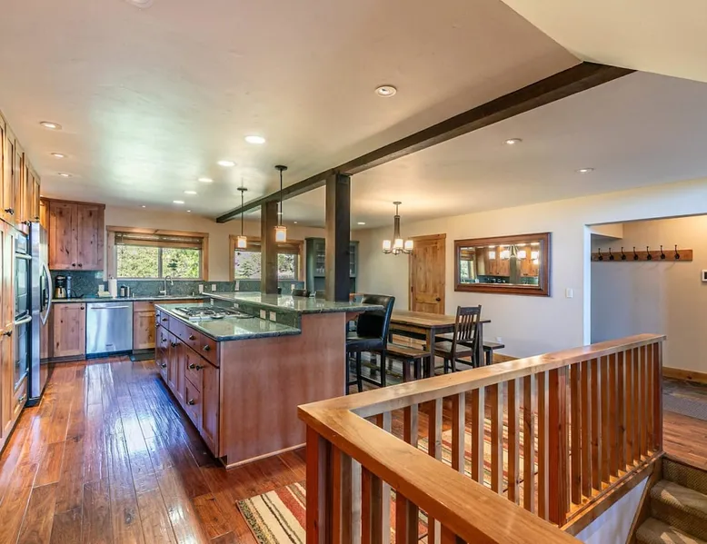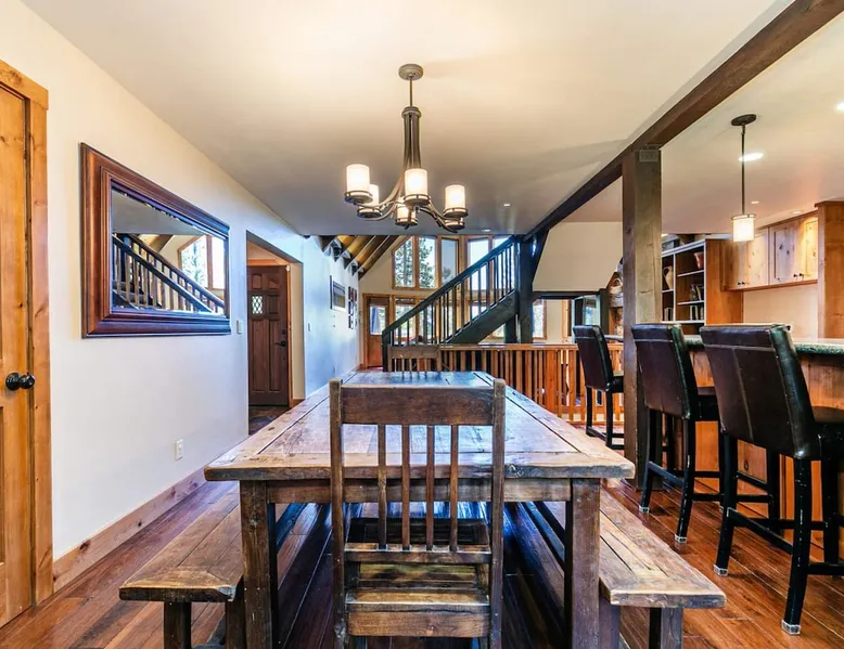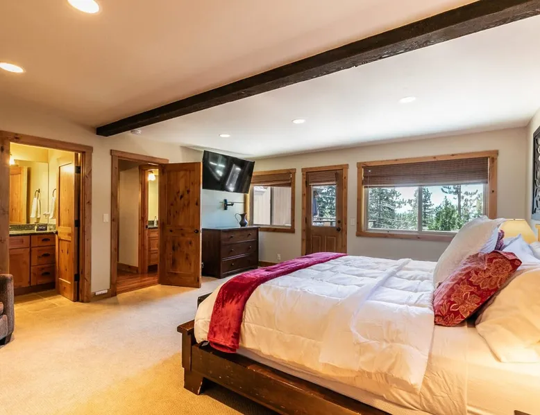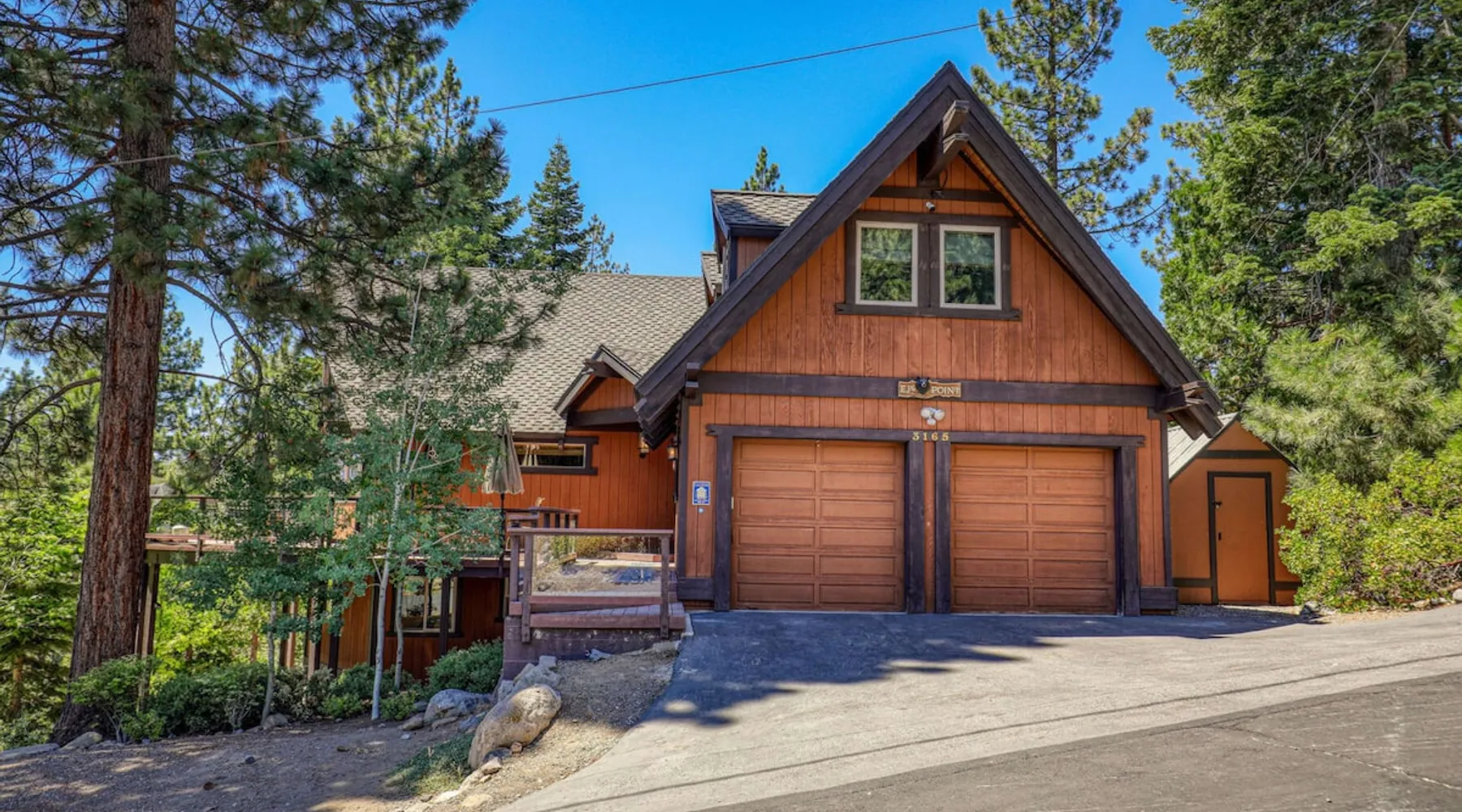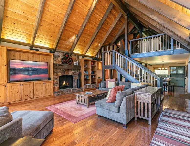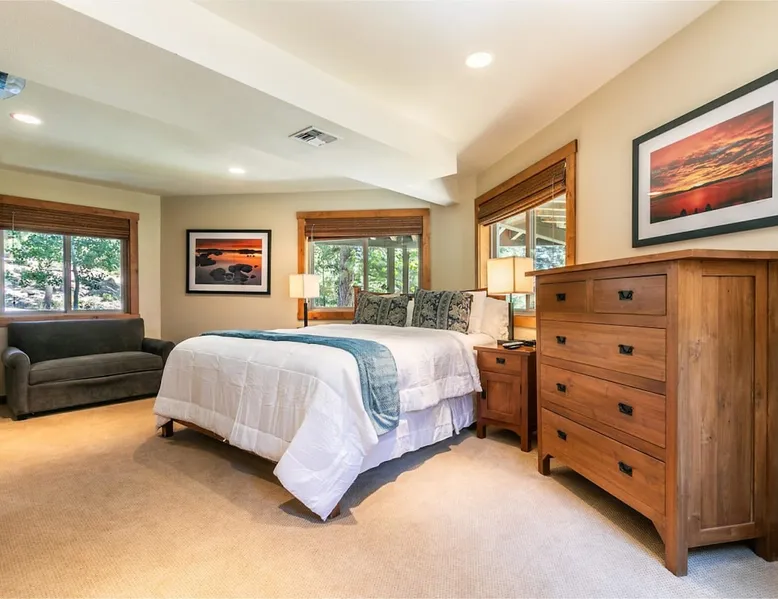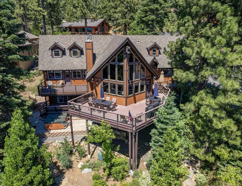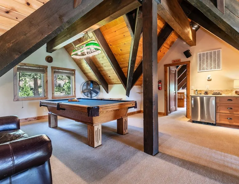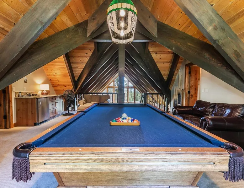 EJ's Point is an incredible vacation rental in Tahoe City with quick access to everything from ski slopes to beaches. After a day of exploring, relax and entertain in this beautiful escape, where you’ll find a pool table, 2 decks, and a balcony with ample seating. You’ll love stepping out in the fresh mountain air and easing sore muscles in the hot tub after a full day of activity. The home's open layout is great for large groups, providing plenty of space for everyone to spread out in comfort. The space Location perks: Lake Tahoe - Skylandia Park (0.7 miles), Tahoe City (2.7 miles), Alpine Base Area at Palisades Tahoe (10.0 miles) Interior: - 7 Smart TVs with cable - Gas fireplace - Kitchen (cooking utensils, tableware, Keurig, drip coffee maker, blender, Crockpot) - Pool table - Wet bar - Laptop-friendly workspace - Washer and dryer Exterior: - Hot tub - Gas grill - 2 decks - Balcony - Dining tables - 2 garage parking spots, 2 driveway parking spots, 2 gravel parking spots Upper floor: 2 bedrooms w/ 2 en-suite bathrooms, loft Main floor: Kitchen, living room, half bathroom, bedroom w/ en-suite bathroom Walk-out basement: 2 bedrooms w/ 2 en-suite bathrooms, bedroom, full bathroom STR Permit Number: STR22-5100 Guest access Guests will have access to the entire home and outdoor spaces, which include a private hot tub. 2 garage parking spots, 2 driveway parking spots, and 2 gravel parking spots. Other things to note Please keep in mind that if you plan to ski, you are responsible for verifying the ski resorts' opening and closing dates. There are security cameras on the exterior that are located above the back patio door and underneath the back deck. Like most homes in the area, this home does not have A/C. There are 2 portable A/C units onsite. Charcoal grills are strictly forbidden in this county and will result in a $1,500 citation if used. 4-wheel drive or 2-wheel drive tires with snow chains may be necessary for safe travel to this property, even if it hasn’t snowed in a few days.