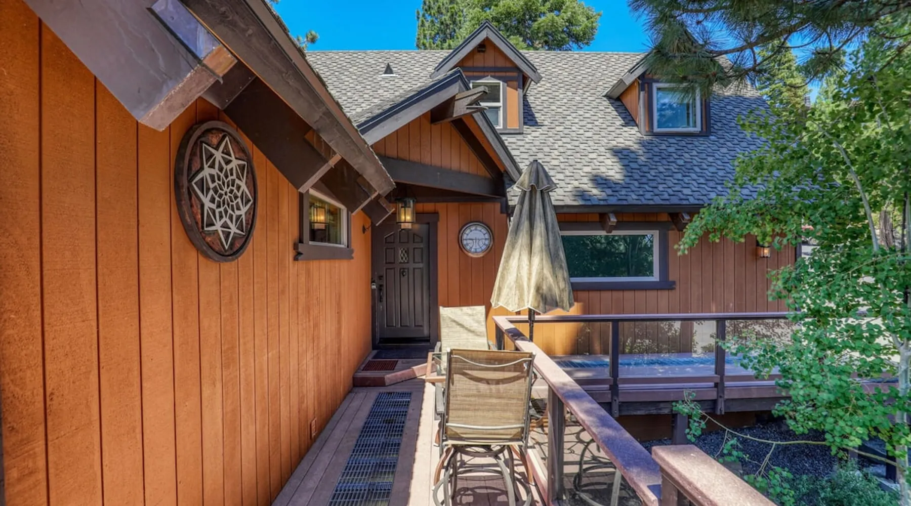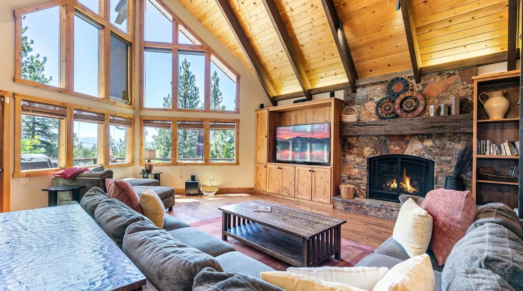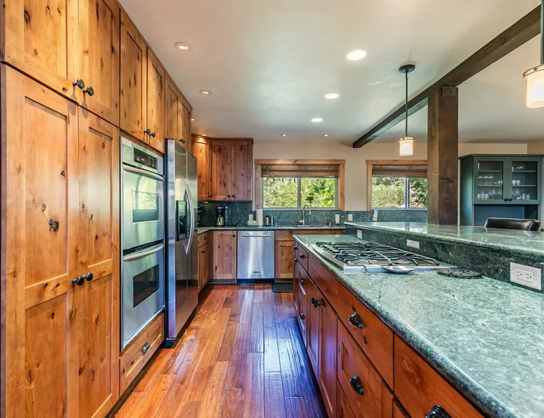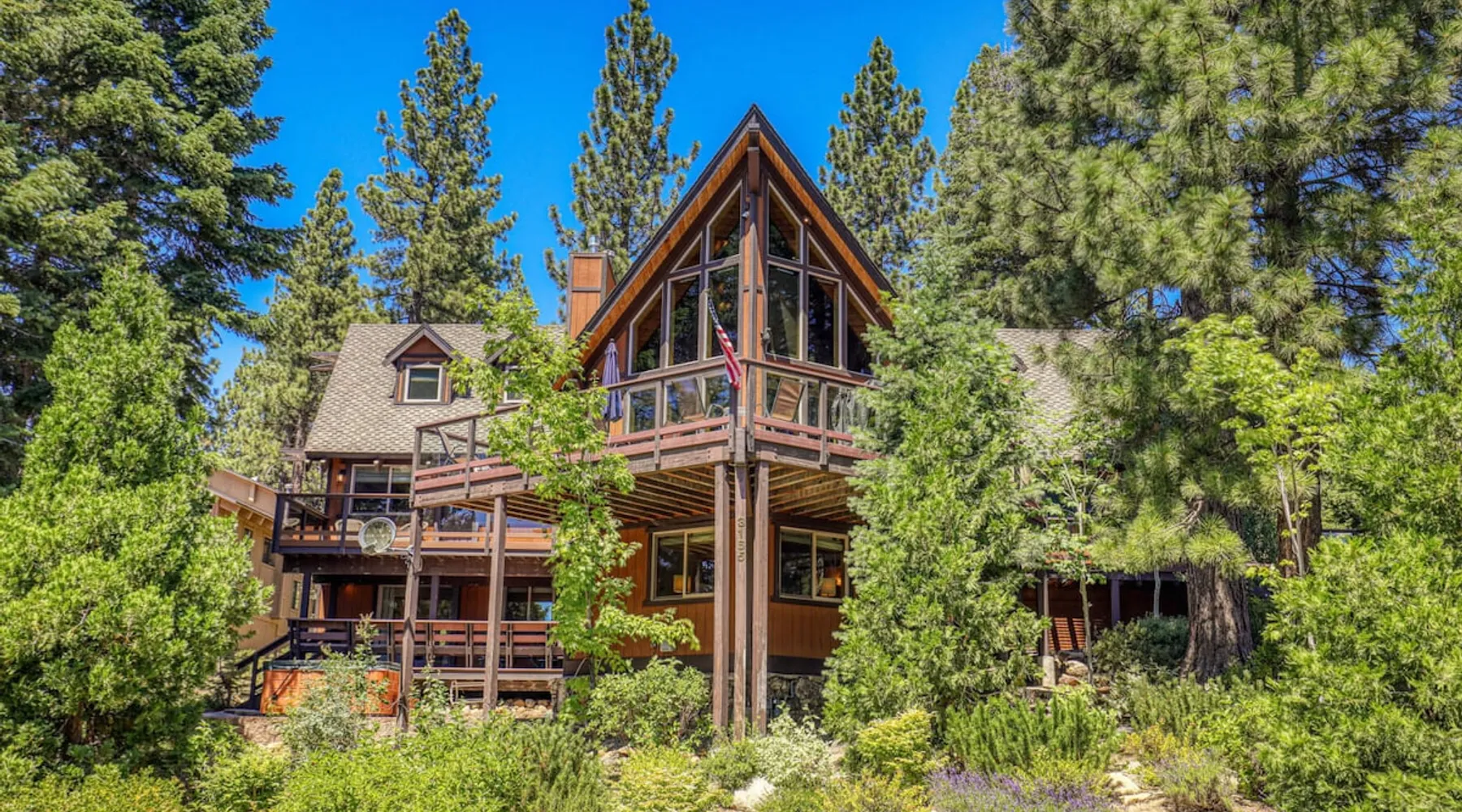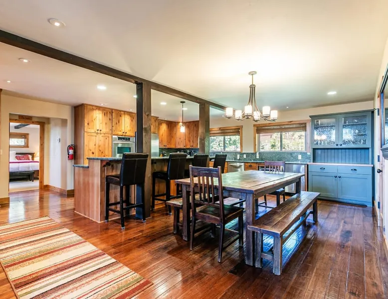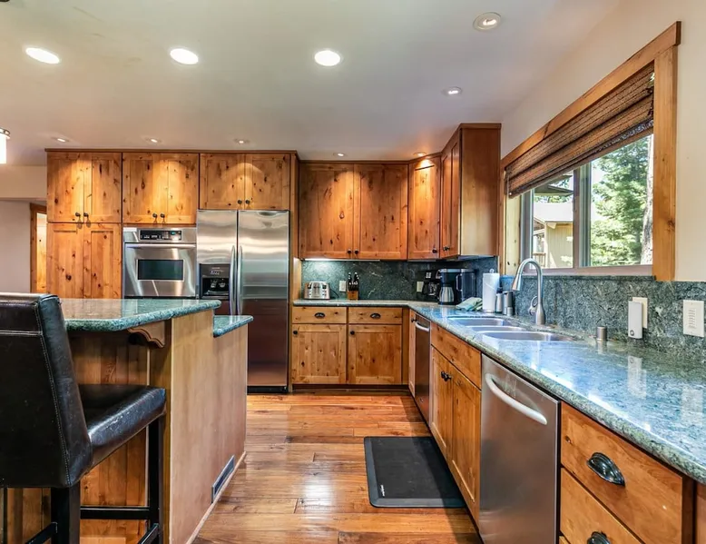 EJ's Point is an incredible vacation rental in Tahoe City with quick access to everything from ski slopes to beaches. After a day of exploring, relax and entertain in this beautiful escape, where you’ll find a pool table, 2 decks, and a balcony with ample seating. You’ll love stepping out in the fresh mountain air and easing sore muscles in the hot tub after a full day of activity. The home's open layout is great for large groups, providing plenty of space for everyone to spread out in comfort. The space Location perks: Lake Tahoe - Skylandia Park (0.7 miles), Tahoe City (2.7 miles), Alpine Base Area at Palisades Tahoe (10.0 miles) Interior: - 7 Smart TVs with cable - Gas fireplace - Kitchen (cooking utensils, tableware, Keurig, drip coffee maker, blender, Crockpot) - Pool table - Wet bar - Laptop-friendly workspace - Washer and dryer Exterior: - Hot tub - Gas grill - 2 decks - Balcony - Dining tables - 2 garage parking spots, 2 driveway parking spots, 2 gravel parking spots Upper floor: 2 bedrooms w/ 2 en-suite bathrooms, loft Main floor: Kitchen, living room, half bathroom, bedroom w/ en-suite bathroom Walk-out basement: 2 bedrooms w/ 2 en-suite bathrooms, bedroom, full bathroom STR Permit Number: STR22-5100 Guest access Guests will have access to the entire home and outdoor spaces, which include a private hot tub. 2 garage parking spots, 2 driveway parking spots, and 2 gravel parking spots. Other things to note Please keep in mind that if you plan to ski, you are responsible for verifying the ski resorts' opening and closing dates. There are security cameras on the exterior that are located above the back patio door and underneath the back deck. Like most homes in the area, this home does not have A/C. There are 2 portable A/C units onsite. Charcoal grills are strictly forbidden in this county and will result in a $1,500 citation if used. 4-wheel drive or 2-wheel drive tires with snow chains may be necessary for safe travel to this property, even if it hasn’t snowed in a few days.