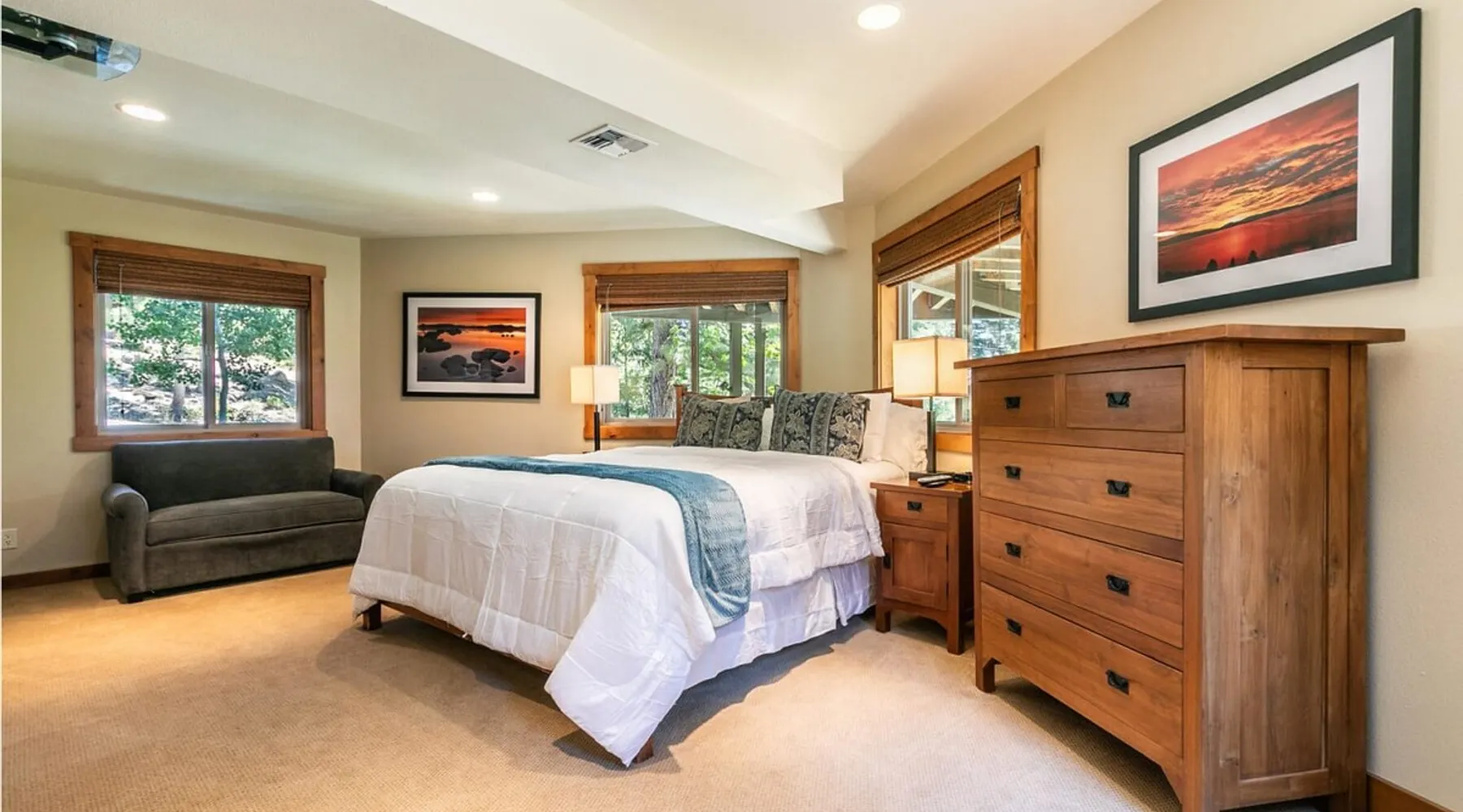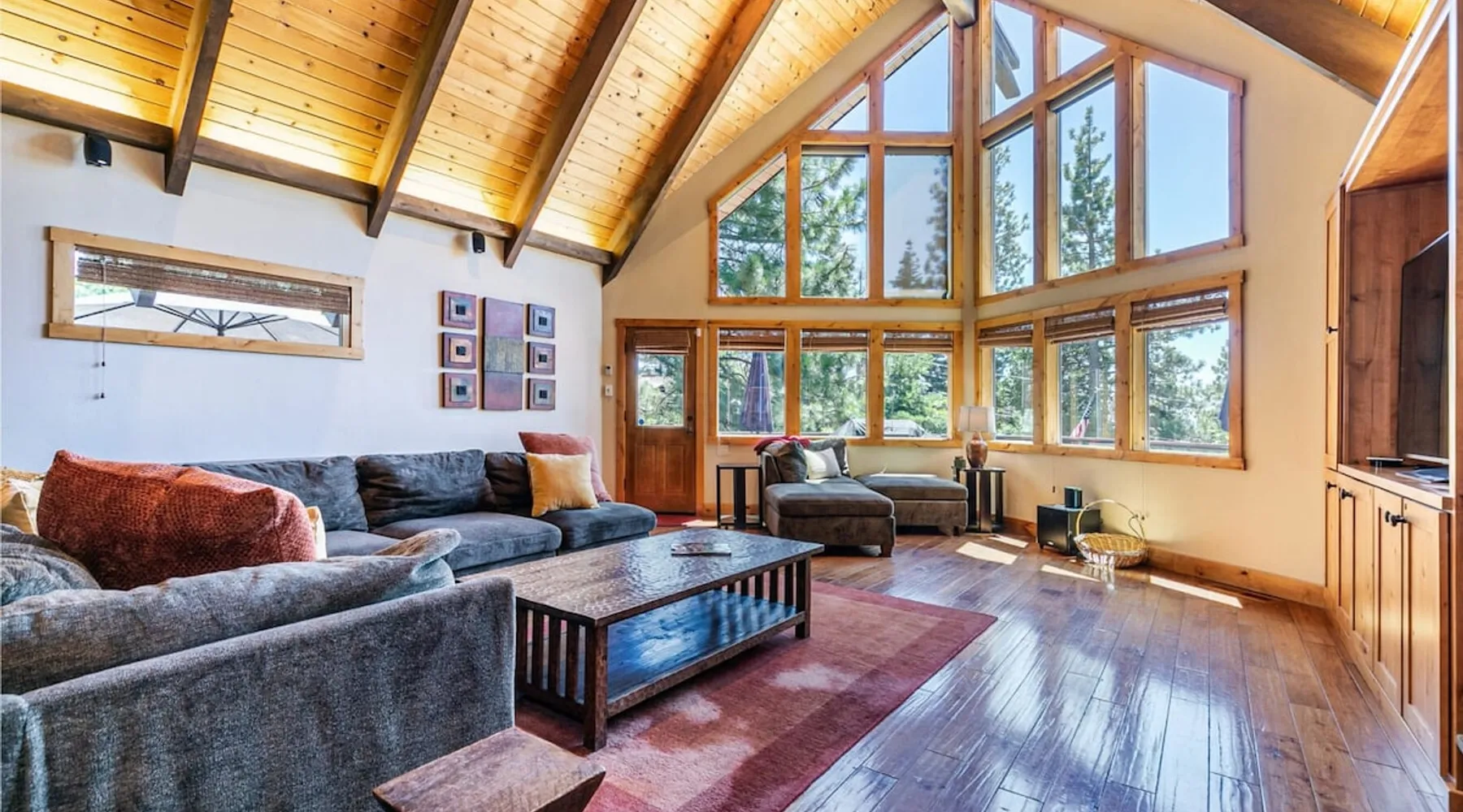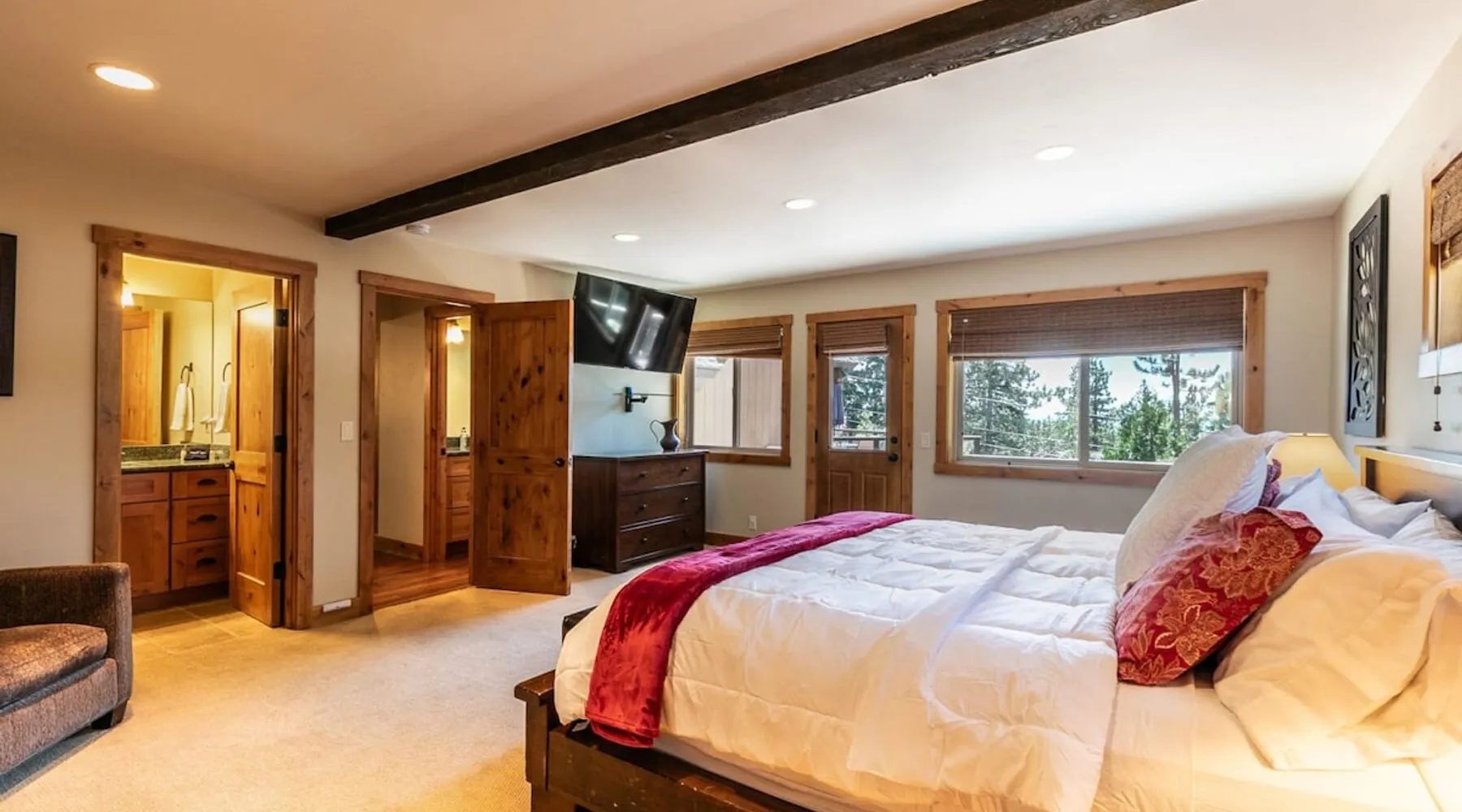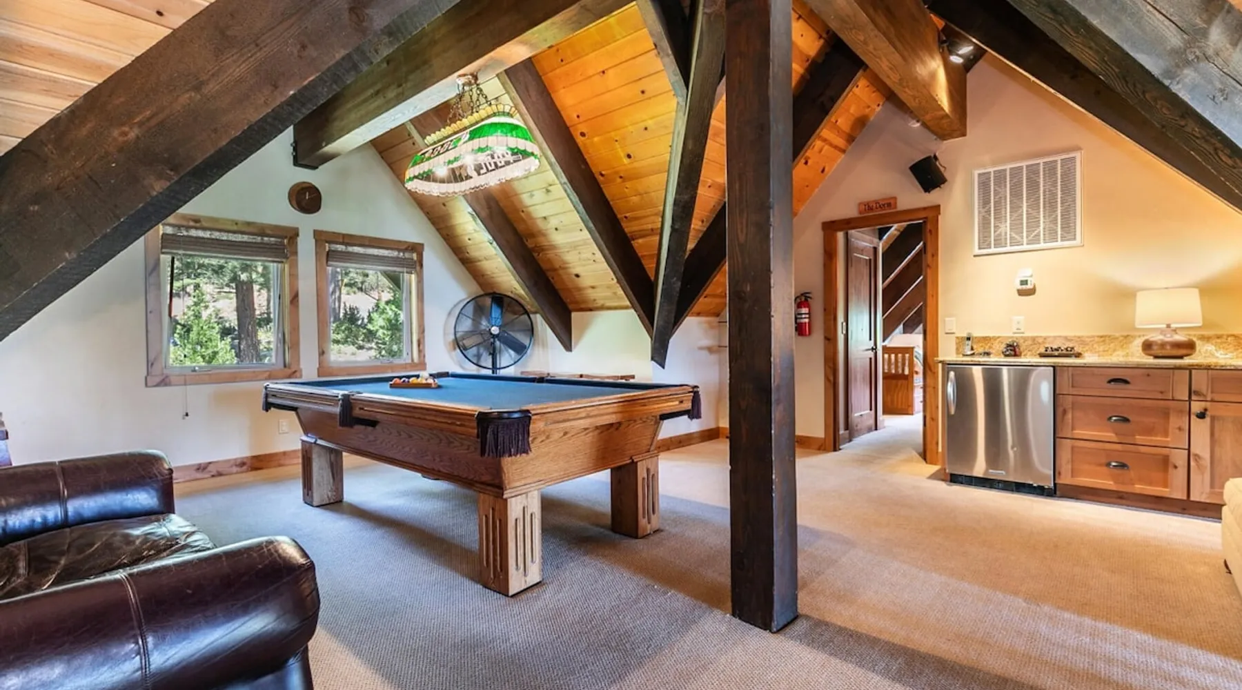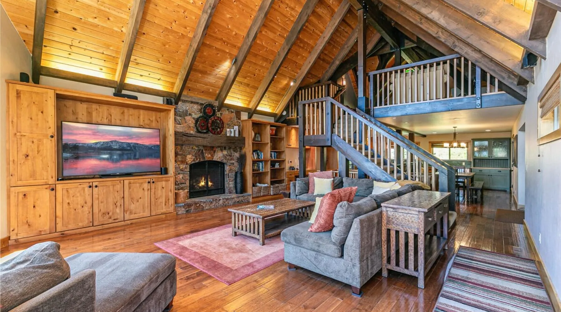 EJ's Point is an incredible vacation rental in Tahoe City with quick access to everything from ski slopes to beaches. After a day of exploring, relax and entertain in this beautiful escape, where you’ll find a pool table, 2 decks, and a balcony with ample seating. You’ll love stepping out in the fresh mountain air and easing sore muscles in the hot tub after a full day of activity. The home's open layout is great for large groups, providing plenty of space for everyone to spread out in comfort. The space Location perks: Lake Tahoe - Skylandia Park (0.7 miles), Tahoe City (2.7 miles), Alpine Base Area at Palisades Tahoe (10.0 miles) Interior: - 7 Smart TVs with cable - Gas fireplace - Kitchen (cooking utensils, tableware, Keurig, drip coffee maker, blender, Crockpot) - Pool table - Wet bar - Laptop-friendly workspace - Washer and dryer Exterior: - Hot tub - Gas grill - 2 decks - Balcony - Dining tables - 2 garage parking spots, 2 driveway parking spots, 2 gravel parking spots Upper floor: 2 bedrooms w/ 2 en-suite bathrooms, loft Main floor: Kitchen, living room, half bathroom, bedroom w/ en-suite bathroom Walk-out basement: 2 bedrooms w/ 2 en-suite bathrooms, bedroom, full bathroom STR Permit Number: STR22-5100 Guest access Guests will have access to the entire home and outdoor spaces, which include a private hot tub. 2 garage parking spots, 2 driveway parking spots, and 2 gravel parking spots. Other things to note Please keep in mind that if you plan to ski, you are responsible for verifying the ski resorts' opening and closing dates. There are security cameras on the exterior that are located above the back patio door and underneath the back deck. Like most homes in the area, this home does not have A/C. There are 2 portable A/C units onsite. Charcoal grills are strictly forbidden in this county and will result in a $1,500 citation if used. 4-wheel drive or 2-wheel drive tires with snow chains may be necessary for safe travel to this property, even if it hasn’t snowed in a few days.
