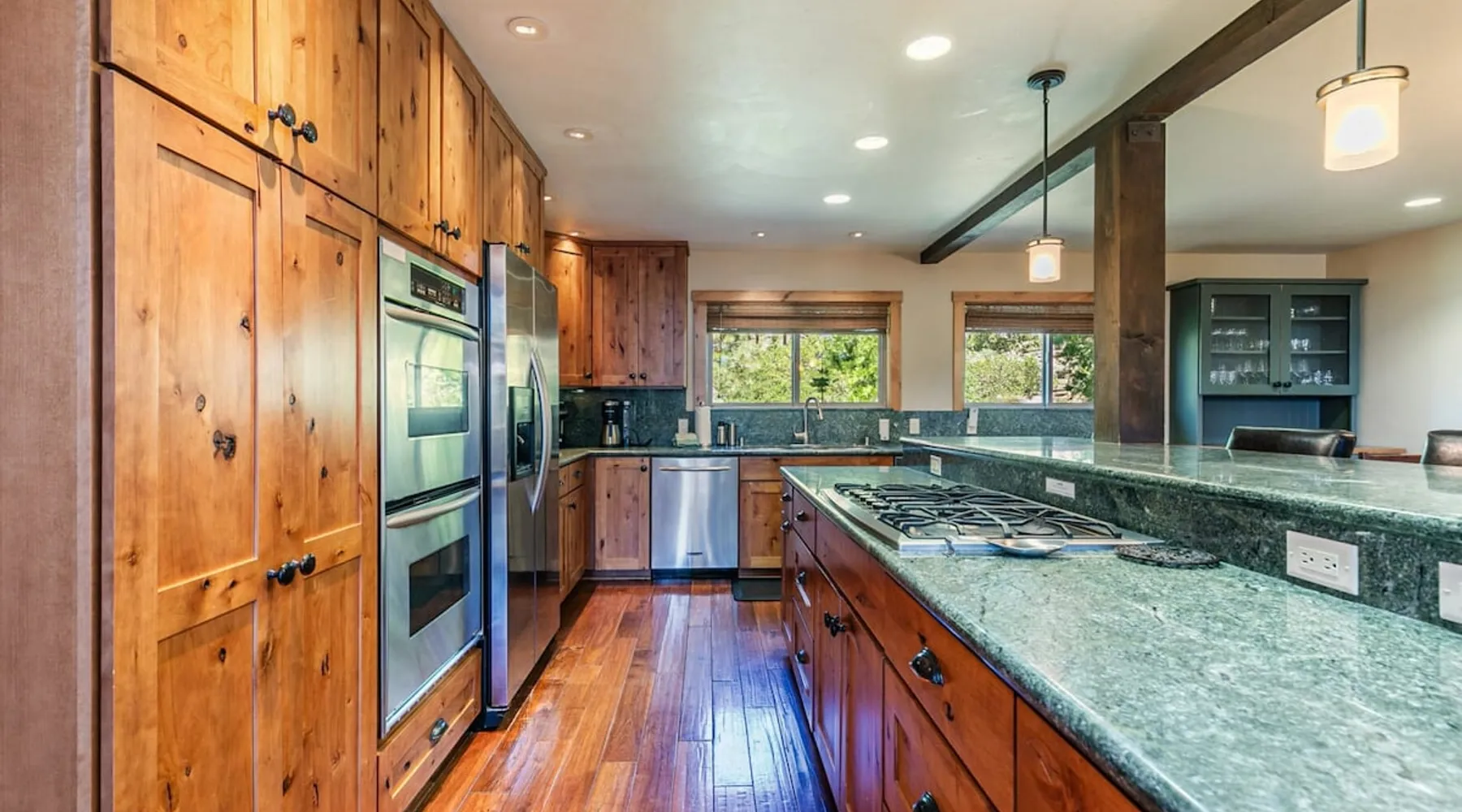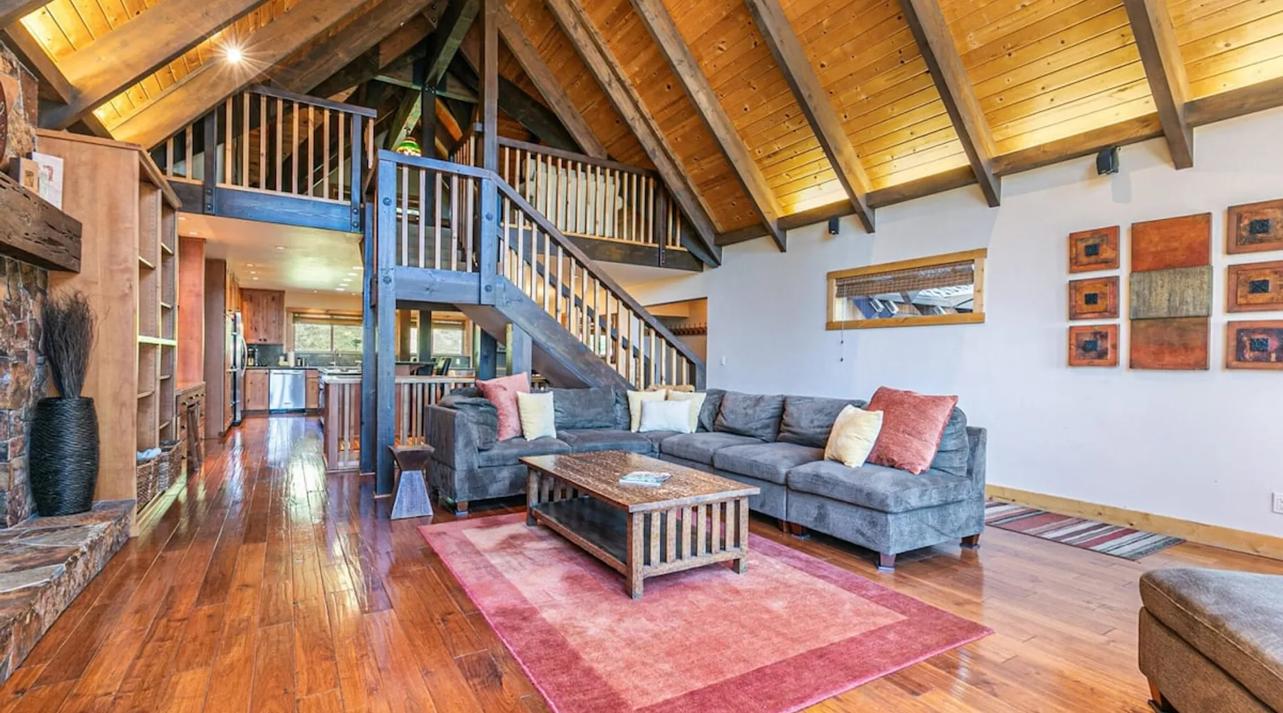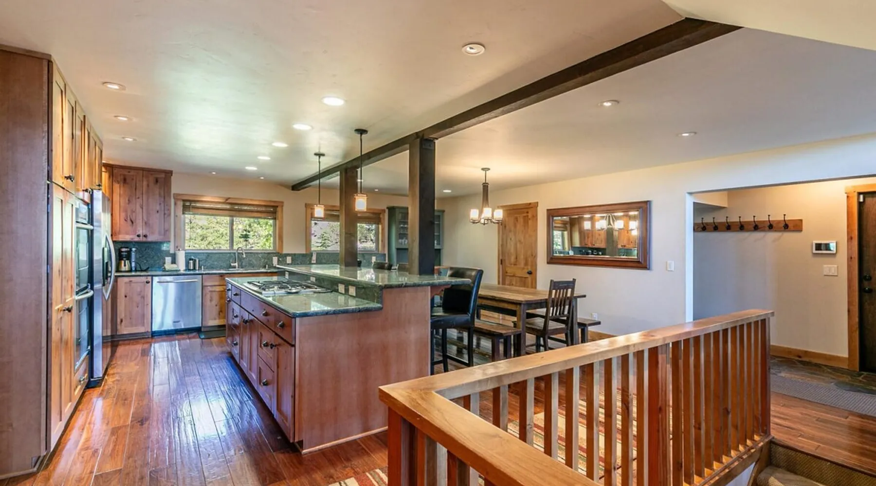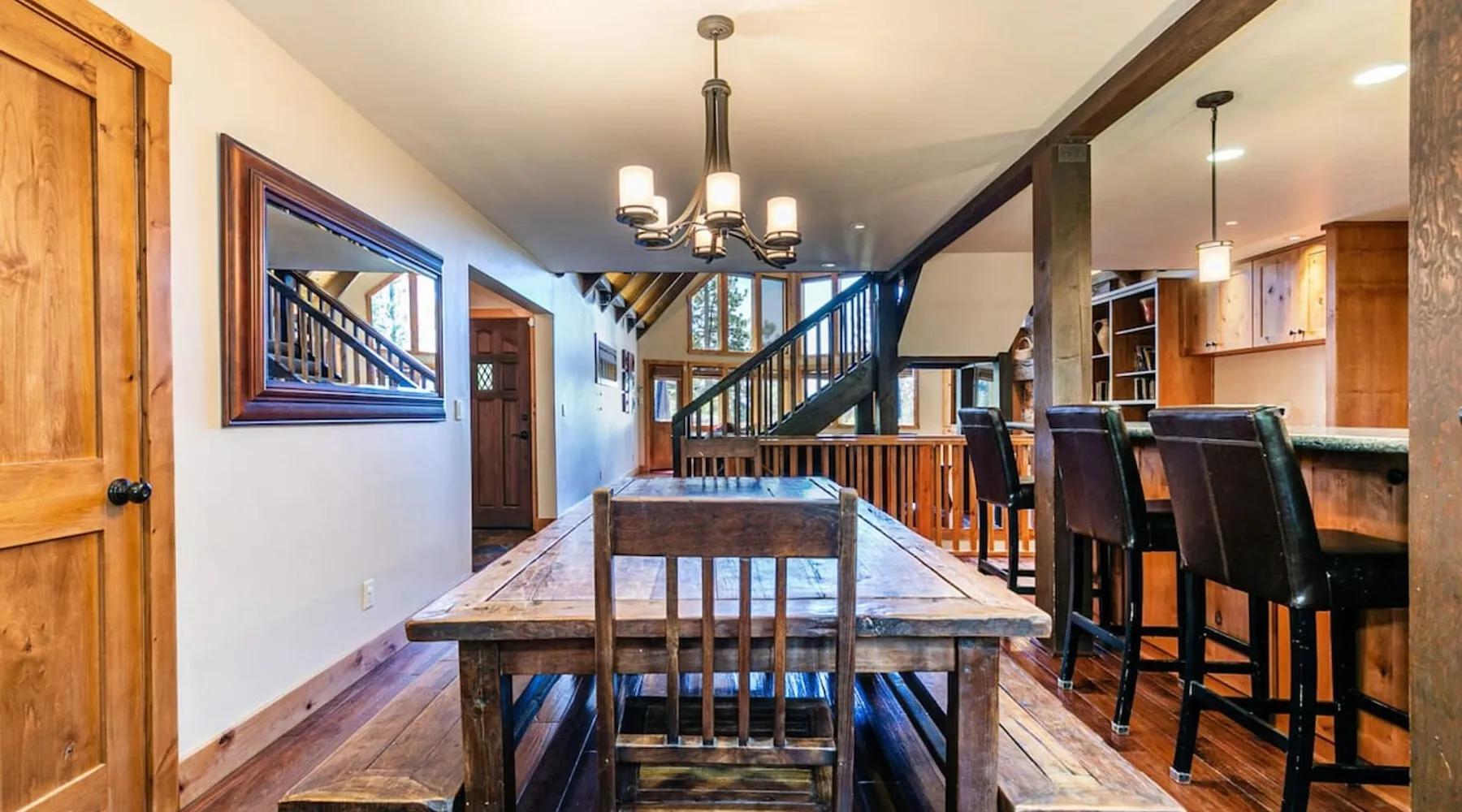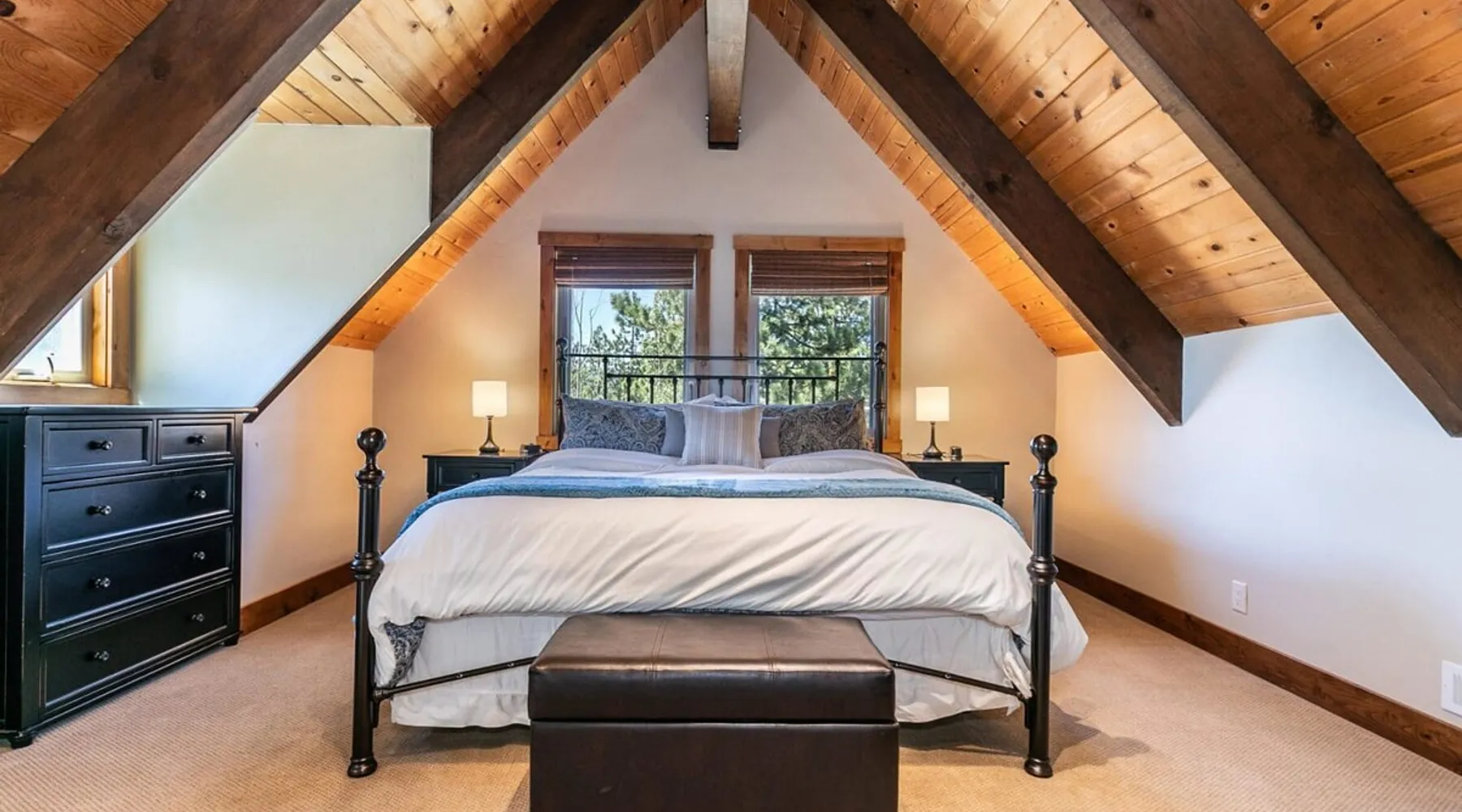 EJ's Point is an incredible vacation rental in Tahoe City with quick access to everything from ski slopes to beaches. After a day of exploring, relax and entertain in this beautiful escape, where you’ll find a pool table, 2 decks, and a balcony with ample seating. You’ll love stepping out in the fresh mountain air and easing sore muscles in the hot tub after a full day of activity. The home's open layout is great for large groups, providing plenty of space for everyone to spread out in comfort. The space Location perks: Lake Tahoe - Skylandia Park (0.7 miles), Tahoe City (2.7 miles), Alpine Base Area at Palisades Tahoe (10.0 miles) Interior: - 7 Smart TVs with cable - Gas fireplace - Kitchen (cooking utensils, tableware, Keurig, drip coffee maker, blender, Crockpot) - Pool table - Wet bar - Laptop-friendly workspace - Washer and dryer Exterior: - Hot tub - Gas grill - 2 decks - Balcony - Dining tables - 2 garage parking spots, 2 driveway parking spots, 2 gravel parking spots Upper floor: 2 bedrooms w/ 2 en-suite bathrooms, loft Main floor: Kitchen, living room, half bathroom, bedroom w/ en-suite bathroom Walk-out basement: 2 bedrooms w/ 2 en-suite bathrooms, bedroom, full bathroom STR Permit Number: STR22-5100 Guest access Guests will have access to the entire home and outdoor spaces, which include a private hot tub. 2 garage parking spots, 2 driveway parking spots, and 2 gravel parking spots. Other things to note Please keep in mind that if you plan to ski, you are responsible for verifying the ski resorts' opening and closing dates. There are security cameras on the exterior that are located above the back patio door and underneath the back deck. Like most homes in the area, this home does not have A/C. There are 2 portable A/C units onsite. Charcoal grills are strictly forbidden in this county and will result in a $1,500 citation if used. 4-wheel drive or 2-wheel drive tires with snow chains may be necessary for safe travel to this property, even if it hasn’t snowed in a few days.
