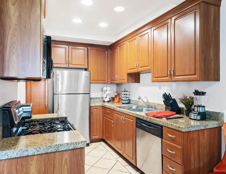 Spacious Accommodations: Beverly Hills 2 bed 2 bath Penthouse with Den and Parking 414 in Los Angeles offers a spacious aparthotel with two bedrooms, two bathrooms, and a living room. Guests enjoy a terrace, year-round outdoor swimming pool, and free WiFi. Modern Amenities: The property features a fitness room, hot tub, outdoor seating area, family rooms, room service, barbecue facilities, and car hire. Additional amenities include air-conditioning, balcony, kitchen, bath, tea and coffee maker, hairdryer, city view, dining table, refrigerator, free toiletries, microwave, shower, TV, electric kettle, kitchenware, wardrobe, and stovetop. Convenient Location: Located 11 mi from Los Angeles International Airport, the aparthotel is near attractions such as Petersen Automotive Museum (1.9 mi), Los Angeles County Museum Of Art (1.9 mi), Dolby Theater (4.3 mi), and Hollywood Sign (8.1 mi). Highly rated for safety, convenient location, and family-friendliness. This spacious apartment consists of 1 living room, 2 separate bedrooms and 2 bathrooms with a bath and free toiletries. Guests can make meals in the kitchen that is equipped with a stovetop, a refrigerator, kitchenware and a microwave. Featuring a terrace with city views, this apartment also provides air conditioning and a flat-screen TV. The unit offers 3 beds.