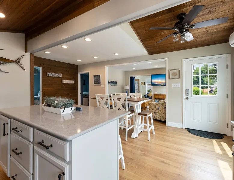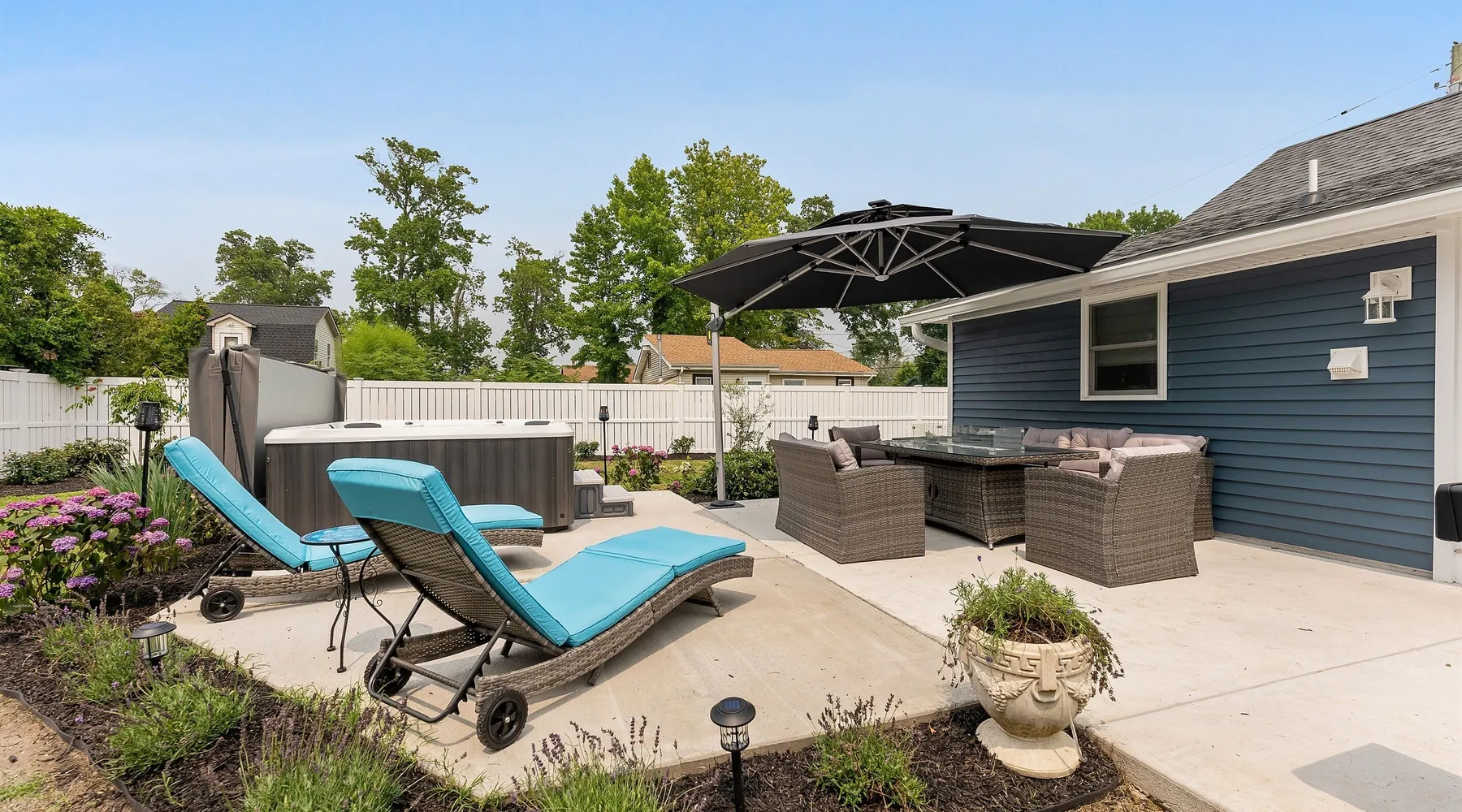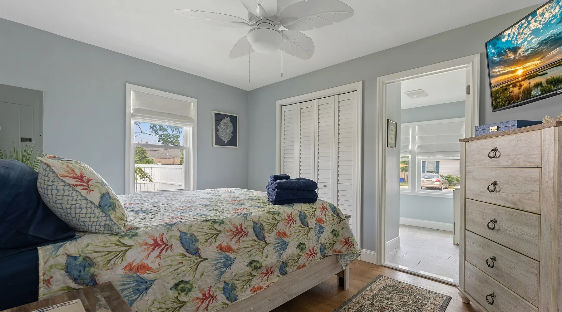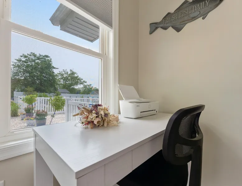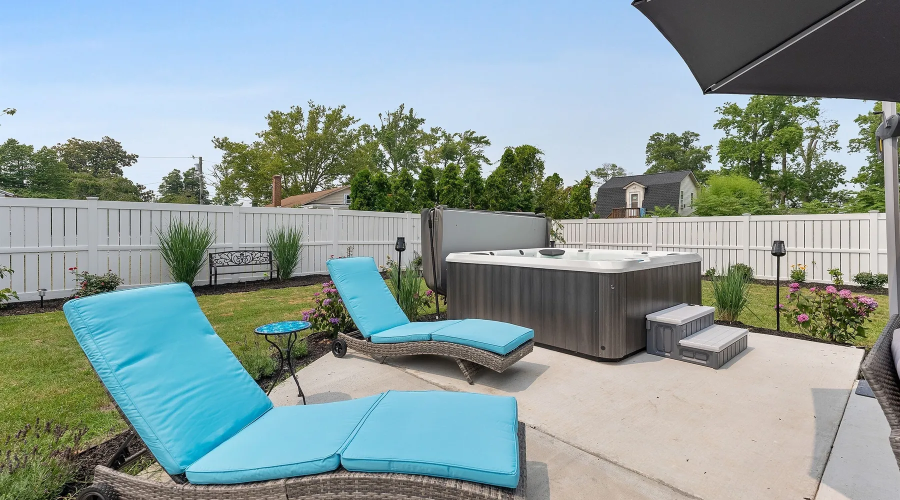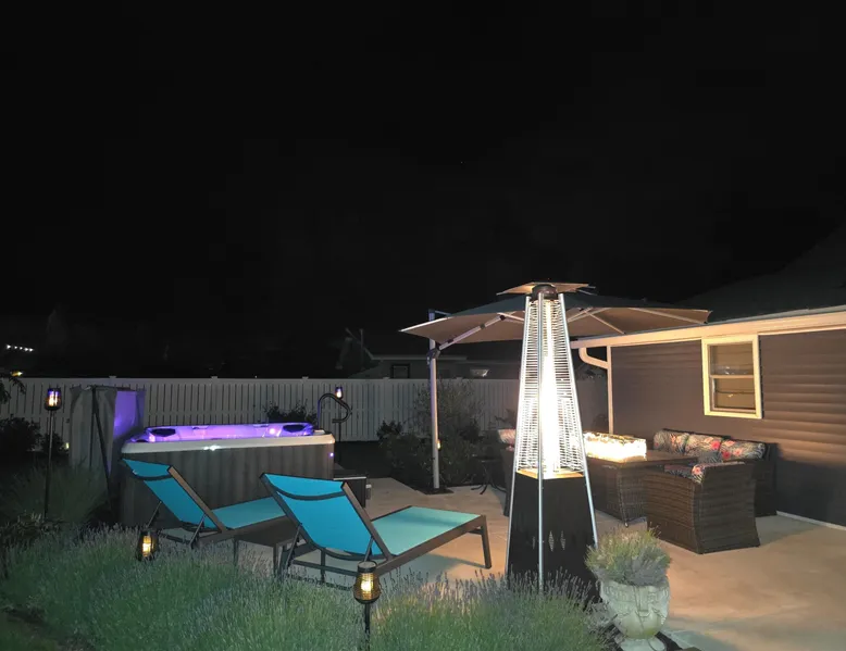 Casa La Cape is a newly renovated 2 Bed/2 Bath cottage located a few blocks from the Delaware Bay. . We are pet-friendly and offer a spacious and private fenced in backyard. Lush gardens surround the patio making it the perfect spot to unwind with your own private hot tub, outdoor dining table with glass fire pit and lounge chairs. Sit back, relax and enjoy that glass of wine at our villa-inspired cottage by the bay! Our open concept accommodates 4 to 6 guests comfortably. Queen pull out sofa in the living room and twin pull out in the front computer room. Linens are included and your beds will be made and ready for your arrival! Fully stocked kitchen with everything you need to cook your favorite meals. Air conditioned, high-speed internet, smart TV’s and board games to enjoy. Cozy gas fireplace in the living room to enjoy on those chilly fall and winter nights. The master bedroom offers a queen bed and is located off the main room with ample closet space, two end tables, a high chest of drawers and leads directly to the private master bath. Inspired by one of Cape May’s historic hotels, the master bath is complete with a custom tiled walk-in rain shower! Our second bedroom has twin beds and is located off the main room as well. The closet is spacious and stocked with games for the whole family. The second bath is located just through the laundry room and was likewise, designed with a spacious walk-in custom tiled rain shower and bench. You will have access to all the amenities we have to offer!
