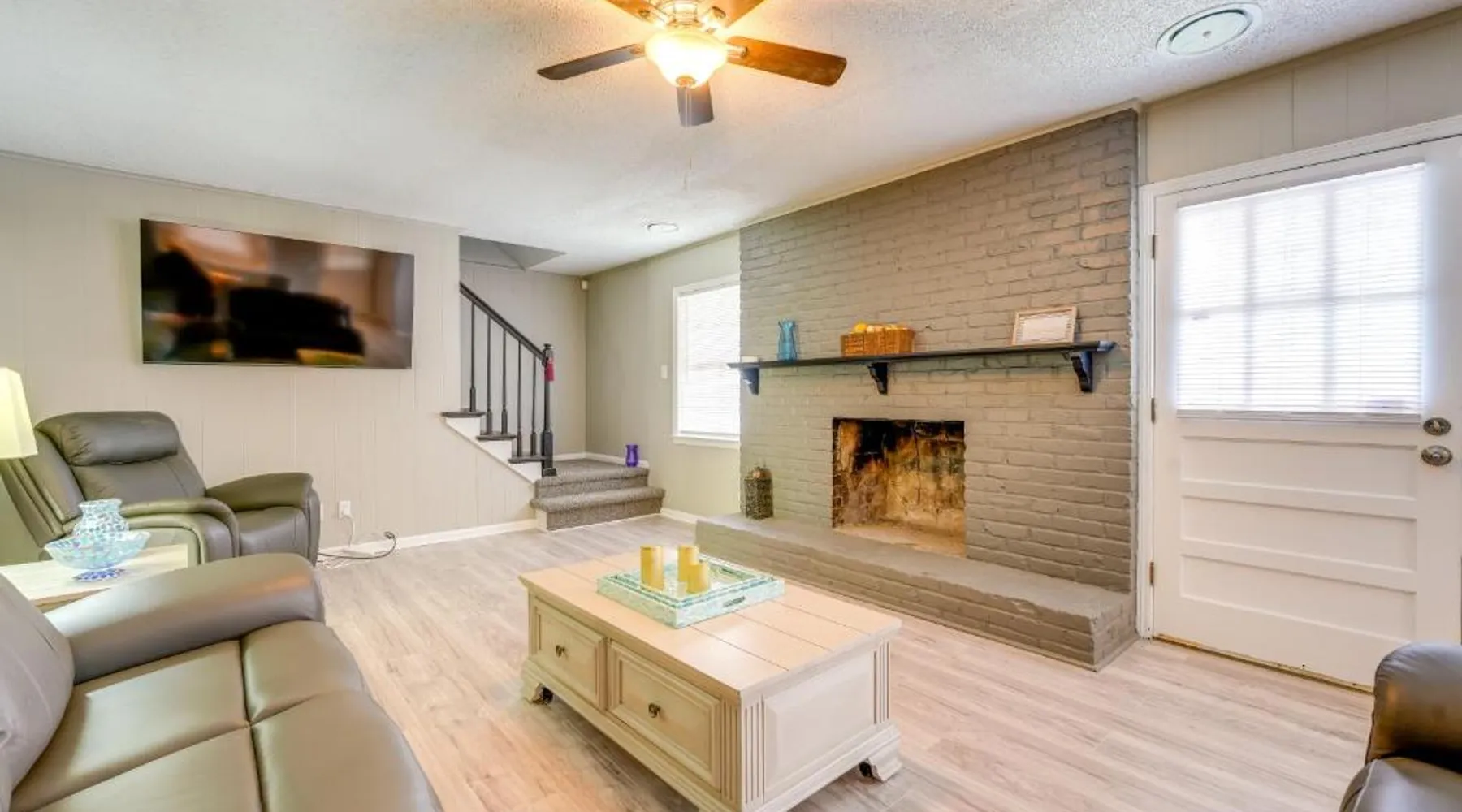 Spacious Accommodations: Memphis Vacation Rental offers a spacious holiday home in Memphis. The property features five bedrooms and two bathrooms, ensuring ample space for all guests. Modern Amenities: Guests enjoy free WiFi, air-conditioning, a fully equipped kitchen, washing machine, fireplace, and a private entrance. Additional amenities include a dishwasher, microwave, and TV. Convenient Location: Located 3.1 mi from Memphis International Airport, the property is an 8-minute walk from Graceland. Nearby attractions include the Stax Museum of American Soul Music (5.6 mi) and the National Civil Rights Museum Lorraine Motel (8.1 mi). The fireplace is a top feature of this holiday home. This spacious holiday home comes with 1 living room, 5 separate bedrooms and 2 bathrooms with a bath or a shower and free toiletries. Meals can be prepared in the kitchen, which features a stovetop, a refrigerator, a dishwasher and kitchenware. The holiday home features air conditioning, a washing machine, a private entrance, a coffee machine and a TV with cable channels. The unit has 8 beds.