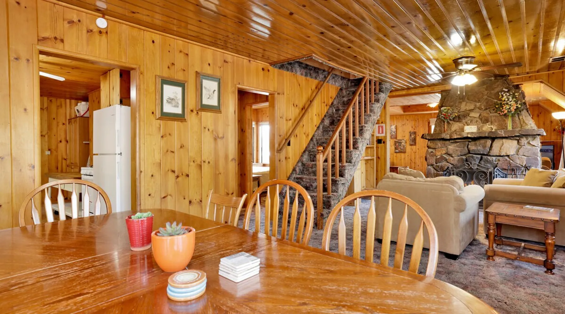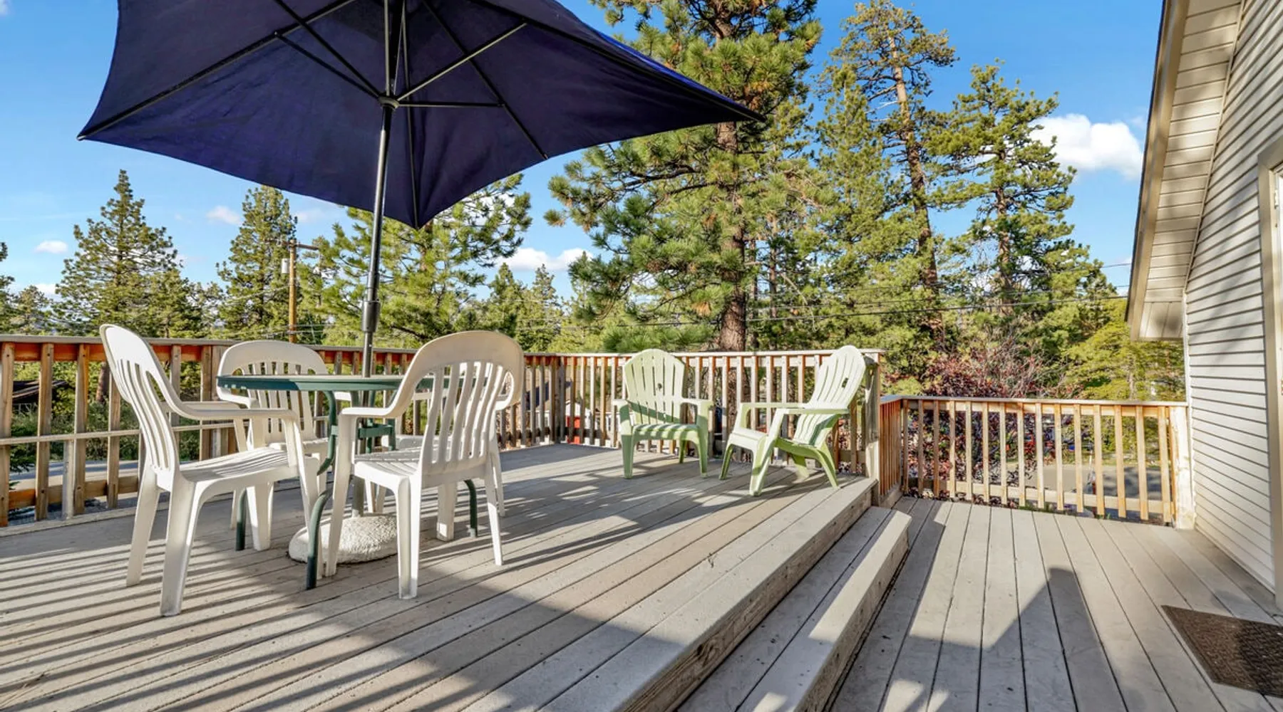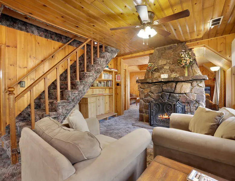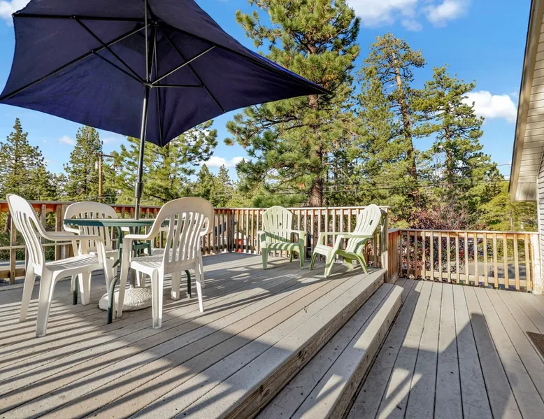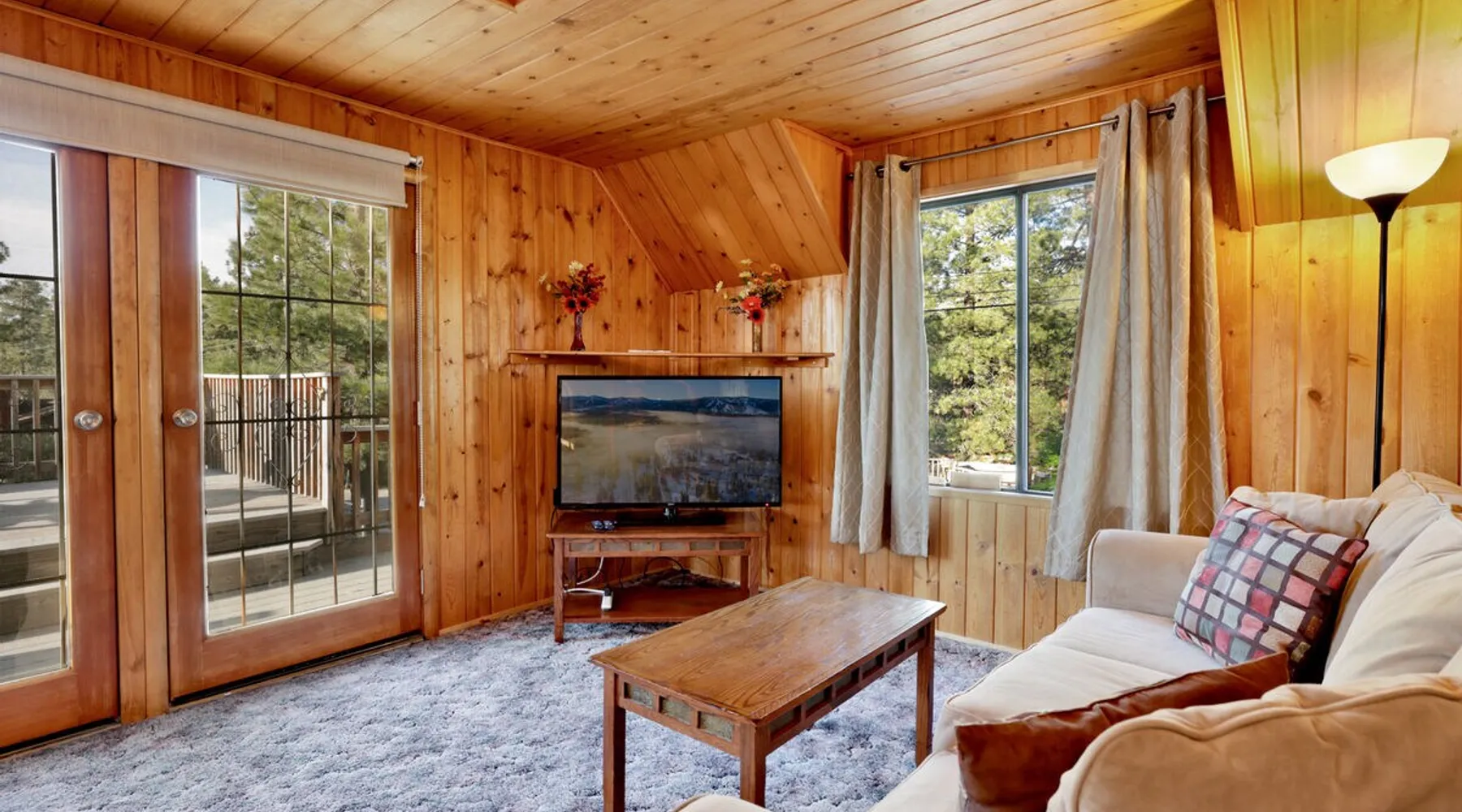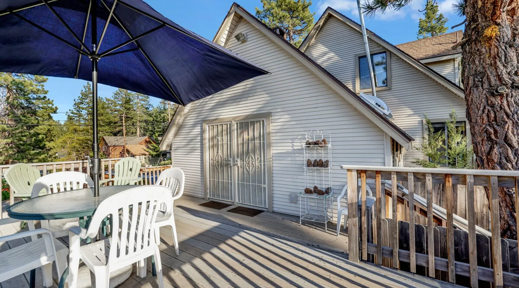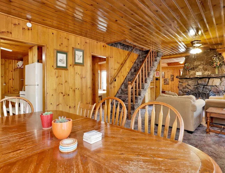 Welcome to Pine Nest! Sitting right by Holloways Marina and within a short stroll to the downtown Village this mountain retreat is the perfect destination for any group to spend their next vacation to Big Bear! Sip your morning coffee with the birds or enjoy incredible sunset views from the great patio deck or snuggle up in front of the toasty fireplace as you enjoy the mountains together, the possibilities are endless from here! Hop in the car and you are just ten minutes to local ski resorts, The space Pine Nest | Relaxing Walk to Marina Cozy Chalet Welcome to Pine Nest! Sitting right by Holloways Marina and within a short stroll to the downtown Village this mountain retreat is the perfect destination for any group to spend their next vacation to Big Bear! Sip your morning coffee with the birds or enjoy incredible sunset views from the great patio deck or snuggle up in front of the toasty fireplace as you enjoy the mountains together, the possibilities are endless from here! Hop in the car and you are just ten minutes to local ski resorts, grocery stores, and activities. The entry level living room is so cozy and relaxing with knotty pine walls and ceiling throughout you will truly feel like you have your own private treehouse to yourselves for your vacation! Snuggle around the fire as you pop on a movie on the flat screen Streaming TV with complimentary hi speed WIFI internet provided for your enjoyment. (Guests must have their own accounts to enjoy Streaming Services.) The open floor plan leads right into the dining room and equipped kitchen areas where you can enjoy plenty of space to dine together in the alpine. The equipped chef's kitchen provides all that you need to whip up your home cooked meals, slope side snacks, or even family holiday feasts right here at the cabin including stocked cabinets and general appliances for your use. The separate laundry room will come in handy for those wet snow clothes or extended visits to the mountains anytime of the year! An upper level bedroom and bathroom plus a lower level bedroom and bathroom creates the perfect amount of space for you to sprawl out as a group or come together as a family here at Pine Nest, each room is made up for your arrival with warm linens, blankets, pillows, and fresh shower towels for your vacation stay. Head outside to enjoy this peaceful and quiet neighborhood with a wonderful grassed yard and patio sun deck which includes outdoor patio furnishings and incredible sunset views, you will love relaxing here under soaring pine trees and shooting stars together! Come experience your new home away from home in the mountains today! Sleeping Arrangements: Bedroom 1: Queen Bed, Deck Access- Downstairs Entry Level Bedroom 2: King Bed + Twin Bed, Balcony Deck, Private 3/4 Bath (Shower Only)- Upstairs 2nd Level Living Room: Sleeper Sofa- Downstairs Entry Level Bathroom Arrangements: Hallway Full Bath- Downstairs Entry Level Private 3/4 Bath (Shower Only)- Bedroom 2- Upstairs 2nd Level -Sleeps 7 Max | 6 Adults & 1 Child -2 Cars Driveway Parking -NO PETS ALLOWED- Fines Imposed For Pets Found On Premises -1,471 Total Square Feet City Permit #: VRR-2024-0619 Other things to note Big Bear Vacations & Cabins House Rules and Policy Information *Please read all rules and policies completely- Your booking/request to book constitutes your understanding and agreement of the below Policies & Information* **Reservation Holder Must Be 21+** **Electronic Rental Agreement & Good Neighbor Policy Required** **Guests must provide ID for Cabin Access** Our Big Bear Vacations team is looking forward to hosting you here in the mountains! We are your longest standing local vacation experts with years of dedicated experience and knowledge brought forth within our exceptional customer service and support staff to ensure a 5 star experience for every guest. Our team offers 24/7 support along with local on site offices and experience packages. Big Bear GOOD NEIGHBOR POLICY is enforced at all times during your stay and includes removing trash from the property to local trash sites, washing dishes to alleviate wild animals being attracted to neighborhoods. NO PARTIES OR EVENTS, No Over Occupancy, No Loud Music, and No Street Parking is allowed in Big Bear homes at any time. This policy along with a rental agreement will be emailed to you immediately after booking and is REQUIRED by the City of Big Bear Lake for all rentals in Big Bear. If found in violation of these policies guests will be visited by staff and Code Enforcement officers who may or may not issue fines or evictions to the violating party members. No Smoking is allowed in any Big Bear homes. Check-in time is 4:00 pm Check-out time is 10:00 am There is no early arrival or later departure availability during peak season and holidays. Contact our office the morning of arrival or departure to confirm early arrival or later departure availability for your stay. (Fee Applies) Winter Snow & Parking- During winter months the driveways, steps, porches, decks, and other outdoor areas at your property may not be accessible due to snow or ice. Our teams are on fixed routes for snow and work alongside city and county resources to clear roads, driveways, walkways etc. Guests should be prepared in winter months to shovel themselves in or out of the property and off of the street in these snowstorm events. As there is no street parking allowed in Big Bear it is extremely important that guests make every attempt to get vehicles off the street for the snowplows. California Law requires that vehicles traveling to Big Bear from November thru April have snow chains in their vehicles however we also recommend proper footwear, an emergency kit, and an extra snow shovel. Pet Policy- Pet Friendly Homes ONLY Pet Fees $35/Pet Nightly Fee + Tax Pet Policy ~All dogs on the property must be registered and acknowledges with the front desk ~Dogs may not be left unattended in the home at any time ~Pet owners are responsibl