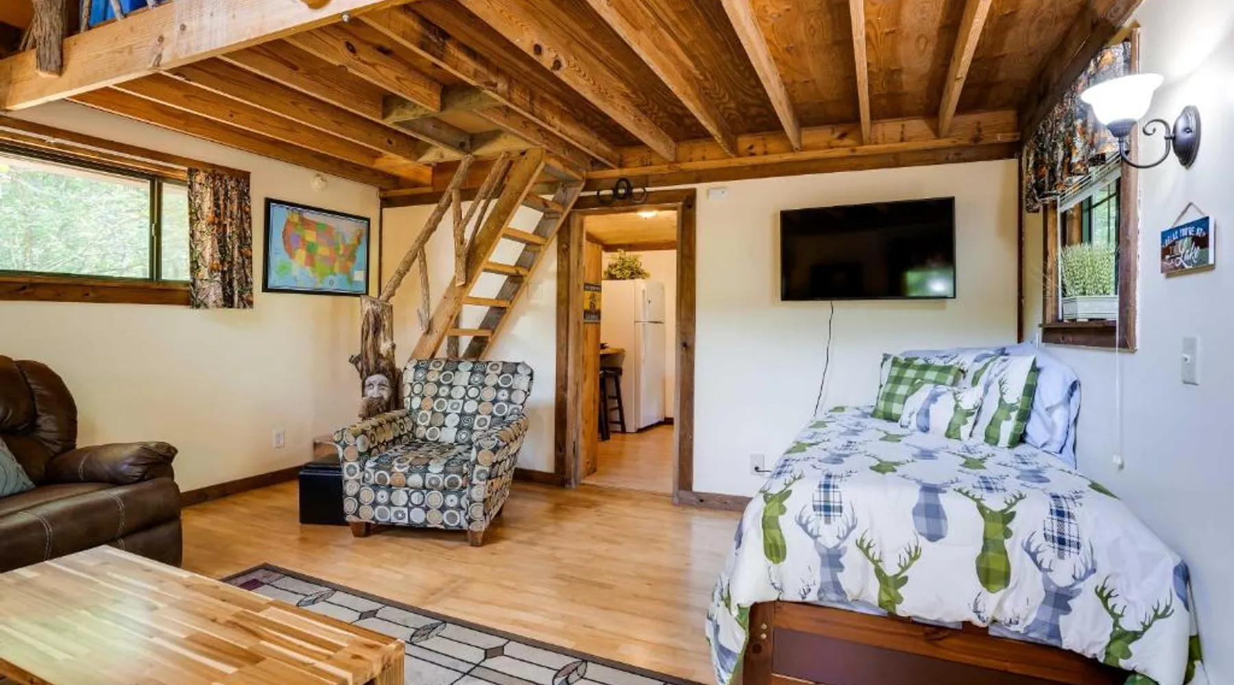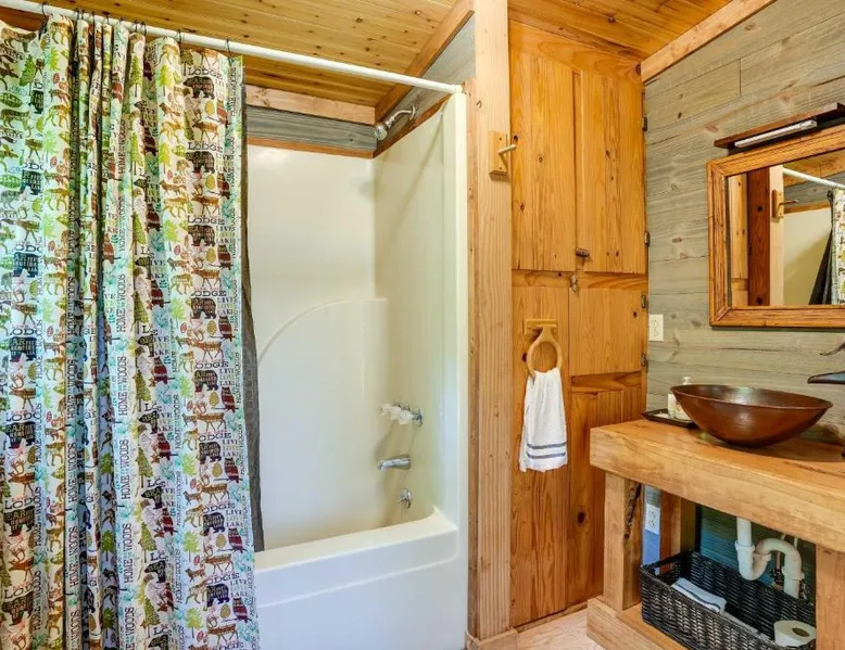 Comfortable Living: Cozy Georgia Abode with Deck, Fire Pit and Lake Access in Menlo offers a well-appointed apartment with free WiFi, air-conditioning, and a private bathroom. The kitchen includes a refrigerator, oven, stovetop, microwave, toaster, and coffee machine. Outdoor Amenities: Guests can enjoy a deck with a fire pit, outdoor dining area, and lake access. The property features a work desk, TV, and free toiletries, ensuring a pleasant and relaxing stay. Convenient Location: Located 64 mi from Chattanooga Metropolitan Airport, the apartment provides easy access to local attractions. Highly rated by guests, the host is praised for their excellent service. Guests will find a stovetop, a refrigerator, kitchenware and an oven in the fully equipped kitchen. The apartment also includes a barbecue. The apartment features air conditioning, a private entrance, as well as a private bathroom boasting a bath and a shower.