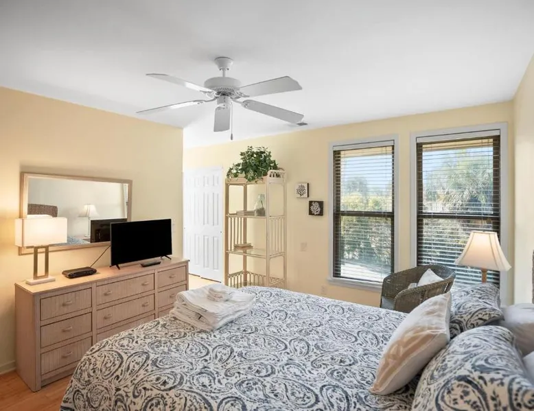 Spacious Accommodations: 112 Capt John Fripp Villa in Fripp Island offers a spacious holiday home with three bedrooms and three bathrooms. The living room provides ample space for relaxation. Modern Amenities: Guests enjoy free WiFi, air-conditioning, and a fully equipped kitchen with a coffee machine, refrigerator, microwave, dishwasher, oven, and stovetop. Additional amenities include a washing machine, balcony, and outdoor seating area. Convenient Location: Located 62 mi from Hilton Head Airport, the property offers free on-site private parking. Reception staff speak English, ensuring a comfortable stay. This spacious holiday home features 1 living room, 3 separate bedrooms and 3 bathrooms with a bath and a shower. Guests can make meals in the kitchen that features a stovetop, a refrigerator, a dishwasher and kitchenware. This holiday home has air conditioning, a washing machine, a TV and a balcony. The unit has 4 beds.