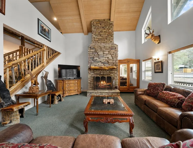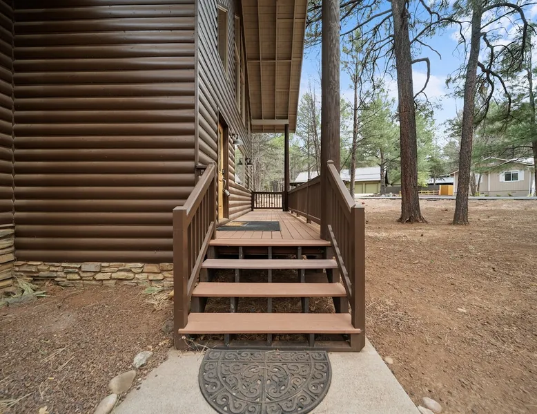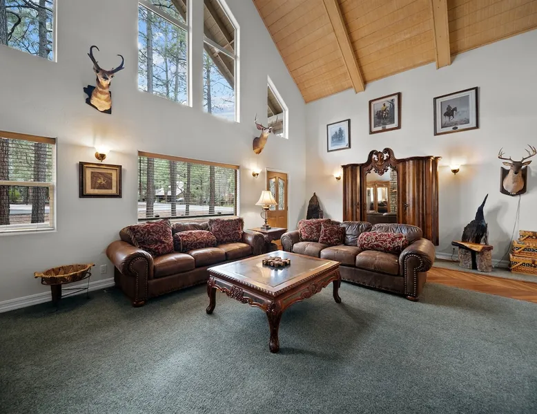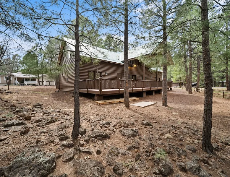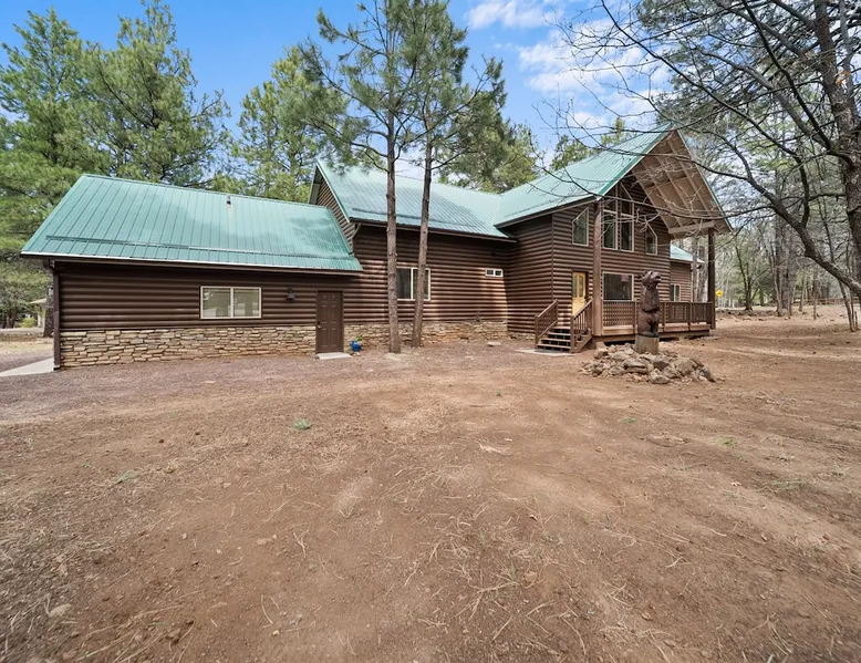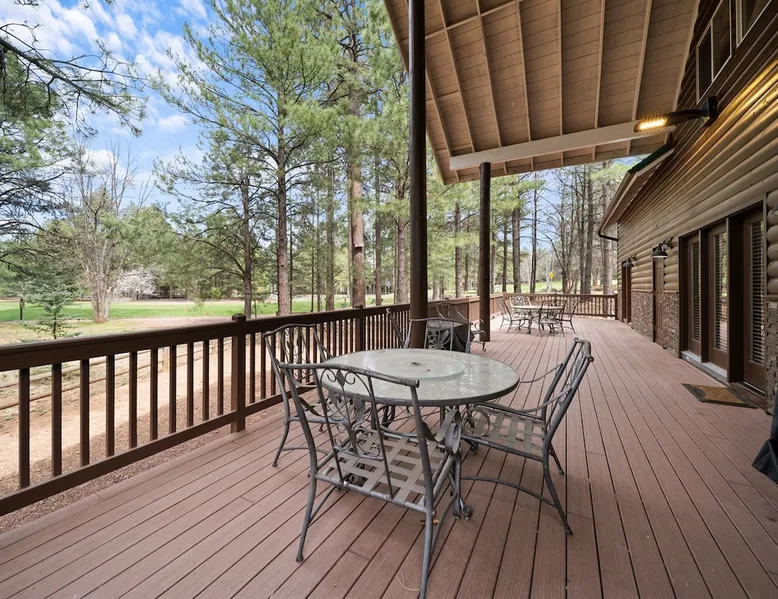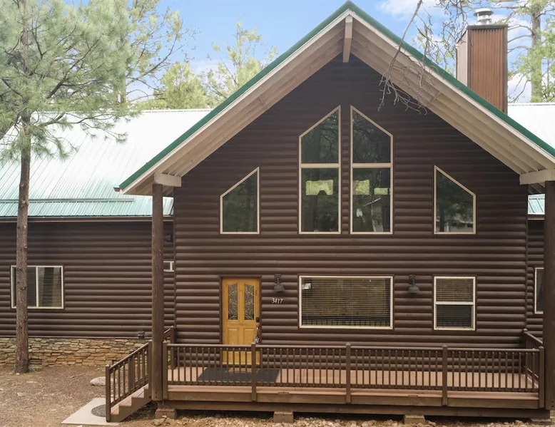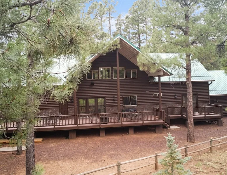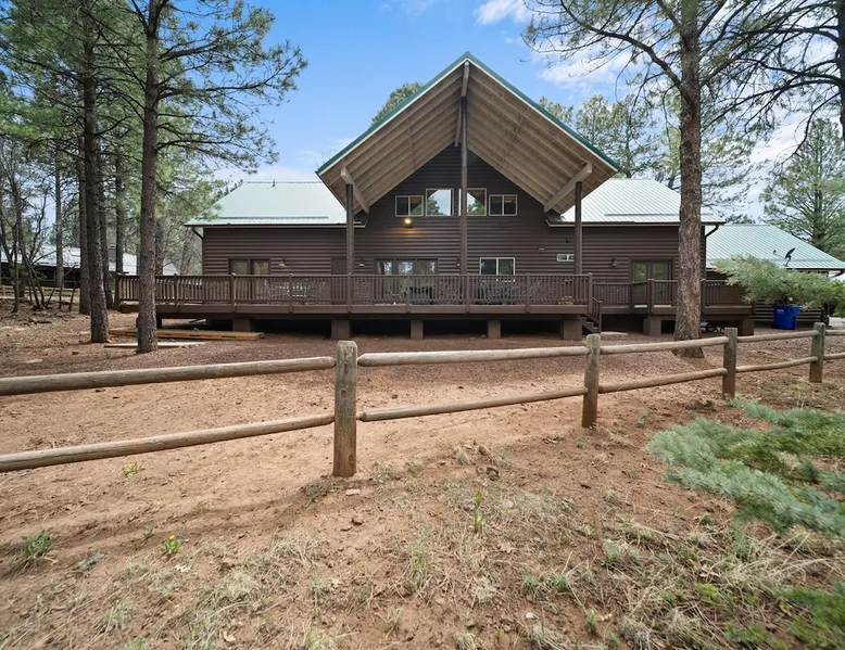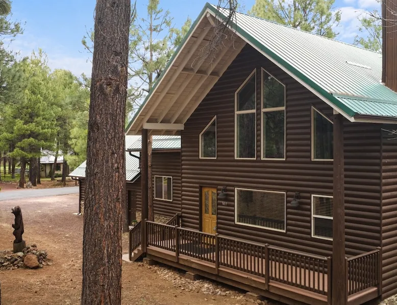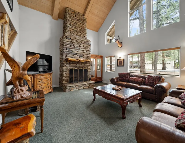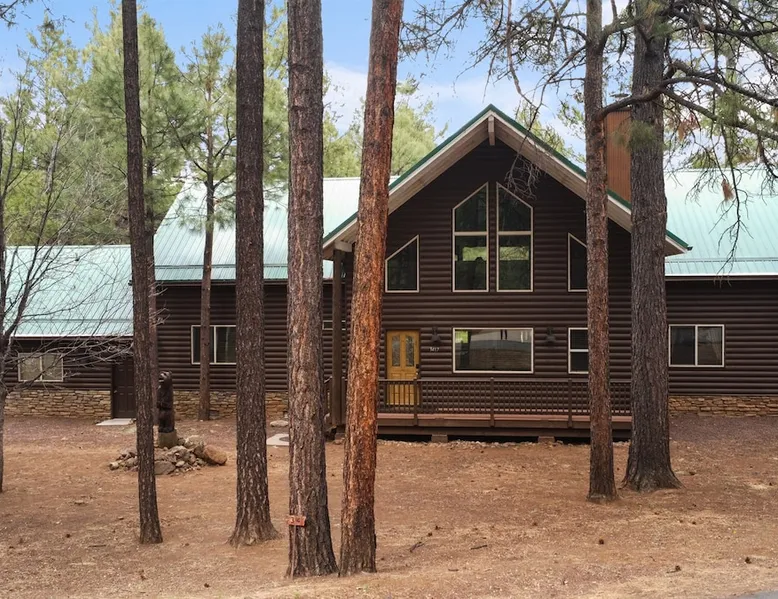 Welcome to your spacious mountain-view cabin located in Pinetop. This 5-bedroom, 6-bathroom cabin is designed to provide you with elevated comfort and scenic serenity, making your stay truly exceptional. Whether you're here for golf, hiking, or simply to unwind with loved ones, this spacious and charming cabin offers the perfect base. With private en-suite bathrooms in every bedroom, and serene golf course views, your escape awaits. Book now to secure your stay at this unforgettable getaway! The space ⭑Master Bedroom:⭑ ✔ Generously sized with beautiful antique furnishings and a unique, cozy vibe ✔ Private en-suite bathroom, premium bedding, and extra pillows & blankets ⭑Second Bedroom:⭑ ✔ Bright and airy space perfect for winding down after a day outdoors ✔ En-suite bathroom, soft linens, and convenient storage space ⭑Third Bedroom:⭑ ✔ A quiet and comfortable space with personal touches and thoughtful decor ✔ En-suite bathroom, hangers, and bedside lighting ⭑Fourth Bedroom:⭑ ✔ Charming bedroom with a warm, welcoming ambiance ✔ En-suite bathroom, bed linens, and blackout curtains for great sleep ⭑Fifth Bedroom:⭑ ✔ Ideal for kids or additional guests, with cozy bedding and antique accents ✔ En-suite bathroom, extra blankets, and ample space ⭑Living Room:⭑ ✔ Soaring ceilings, golf course views, and stylish yet comfortable seating ✔ Indoor fireplace, TV, and antique collectibles that create a truly special vibe ⭑Kitchen and Dining Area:⭑ ✔ Fully equipped kitchen for homemade meals or quick snacks ✔ Refrigerator, freezer, stove, oven, microwave, coffee maker, toaster, blender ✔ Dishes, silverware, baking sheets, barbecue utensils ✔ Large dining table perfect for family meals or game nights ⭑Bathrooms:⭑ ✔ Six private bathrooms, each connected to a bedroom for ultimate privacy ✔ Stocked with towels, body soap, shampoo, conditioner, hair dryer, shower gel ✔ Bathtub in select bathrooms for relaxing soaks ⭑Outdoor Space:⭑ ✔ Directly on the 18th tee of Pinetop Lakes Golf Course — unbeatable views! ✔ Patio with outdoor furniture, dining area, and BBQ grill ✔ Perfect for relaxing mornings or sunset grilling sessions Other things to note ⭑Additional Amenities:⭑ ✔ Washer, iron, extra linens, and blankets ✔ Essentials provided: towels, bed sheets, toilet paper, and cleaning products ✔ Portable fans for added comfort ⭑Safety and Security:⭑ ✔ Smoke alarm, carbon monoxide alarm, fire extinguisher ✔ First aid kit for peace of mind ⭑Entertainment and Connectivity:⭑ ✔ High-speed WiFi and a dedicated workspace for remote work ✔ TV for entertainment, whether you're streaming or just relaxing ⭑Heating and Cooling:⭑ ✔ Indoor fireplace and heating throughout ✔ Portable fans to keep cool during warmer days ⭑Parking and Facilities:⭑ ✔ Free on-site parking ✔ Long-term stays allowed (28+ days) ⭑Services:⭑ ✔ Self check-in via secure keypad – check yourself in with ease ✔ Professionally cleaned and maintained for each guest stay This property has special local compliance requirements which include a signed rental agreement, ID verification, and a security hold of $1000 (which is not a traditional security deposit, just a pending transaction). As an optional alternative to the security hold, you may opt in to purchase a non-refundable damage waiver provided by a third-party insurance company. The optional damage waiver is $57 for stays up to 10 nights, with an additional $6 per day for stays longer than 10 nights. Damage waiver purchases are optional. To make this process easy for you, we use a secure and very simple, app-free platform called Happy Guest. It is not an app, and you do not have to sign up for an account - it’s a safe and secure website. It also gives you a guest portal with all the info about the home and all of my favorite local spots. Your guest portal includes advertisements with third-party upgrades that you may want to enhance your stay. These upgrades are optional and include: Late checkout - $40 per hour If you have any questions, just message us anytime! Happy to help!