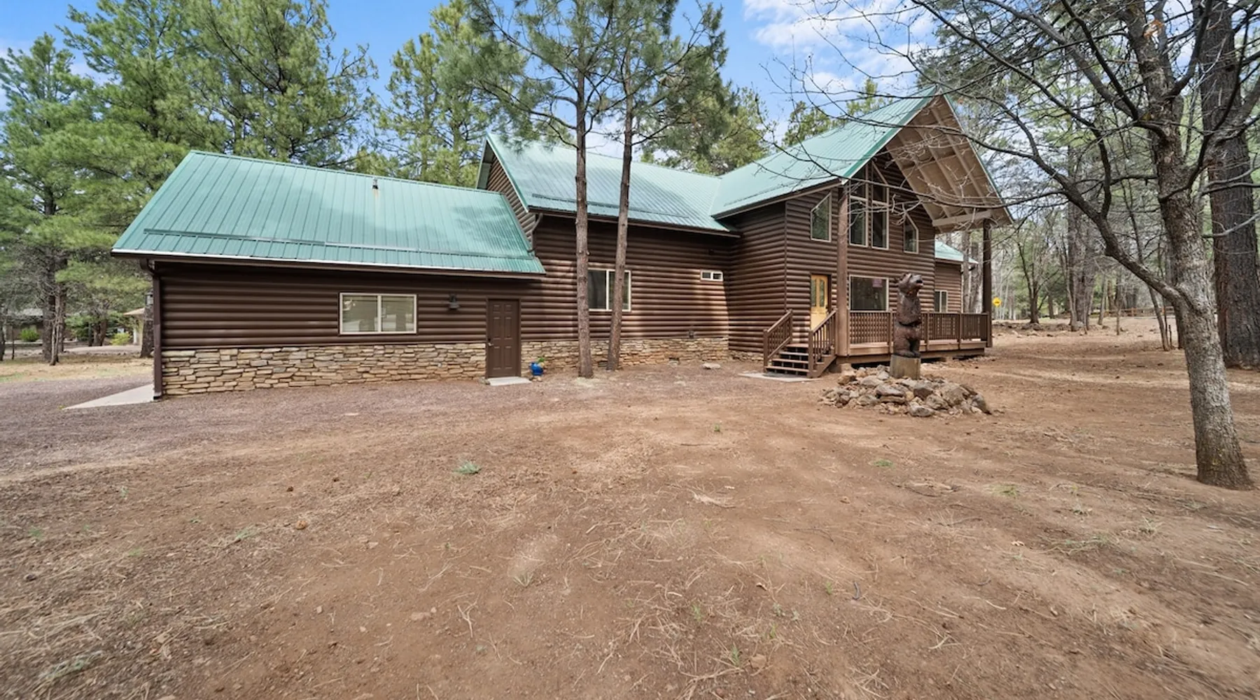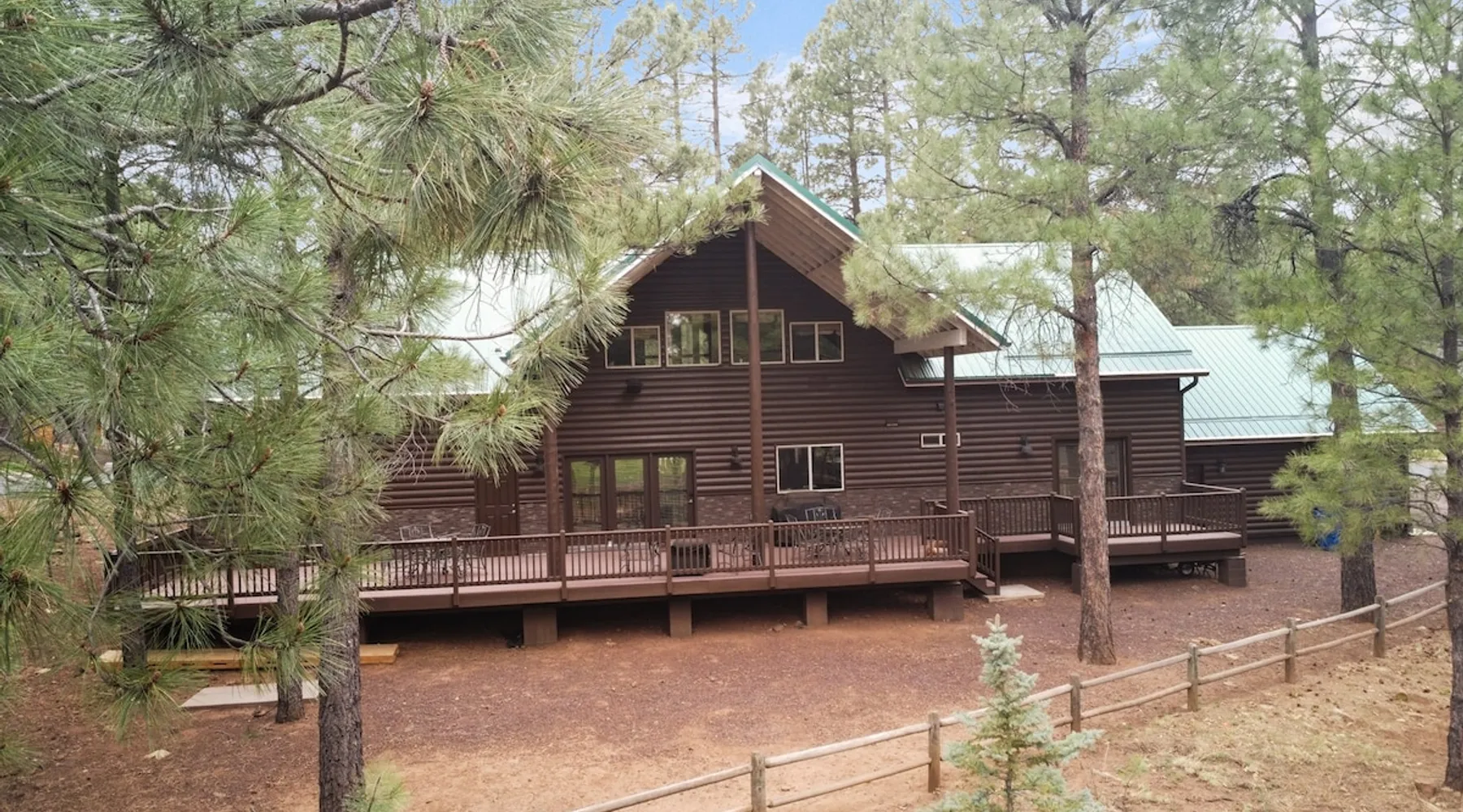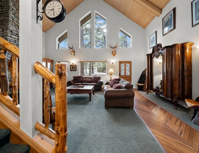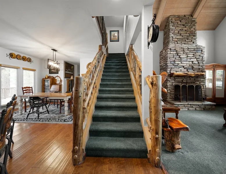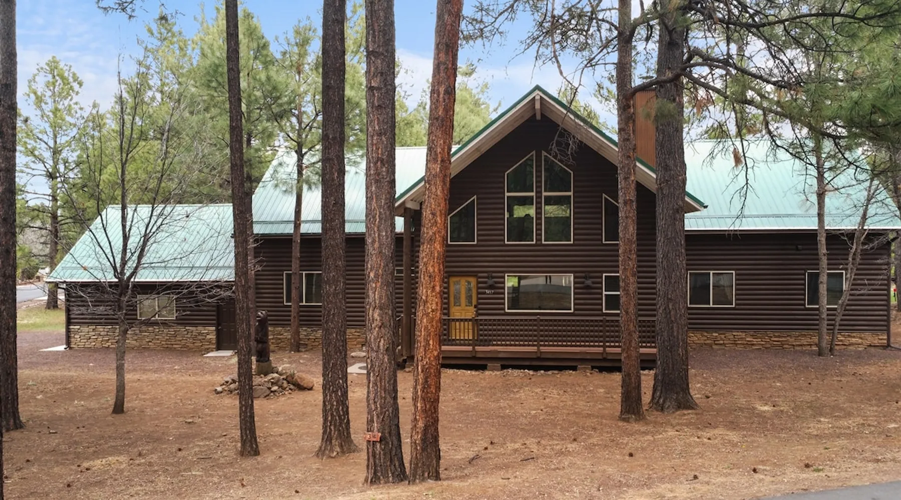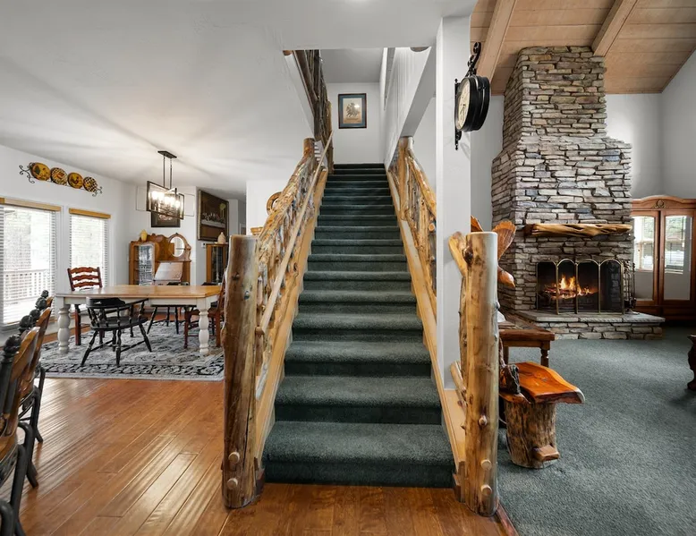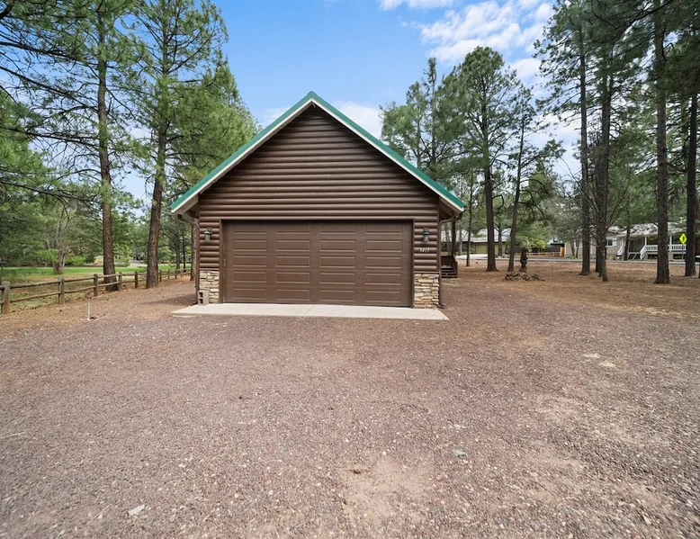 Welcome to your spacious mountain-view cabin located in Pinetop. This 5-bedroom, 6-bathroom cabin is designed to provide you with elevated comfort and scenic serenity, making your stay truly exceptional. Whether you're here for golf, hiking, or simply to unwind with loved ones, this spacious and charming cabin offers the perfect base. With private en-suite bathrooms in every bedroom, and serene golf course views, your escape awaits. Book now to secure your stay at this unforgettable getaway! The space ⭑Master Bedroom:⭑ ✔ Generously sized with beautiful antique furnishings and a unique, cozy vibe ✔ Private en-suite bathroom, premium bedding, and extra pillows & blankets ⭑Second Bedroom:⭑ ✔ Bright and airy space perfect for winding down after a day outdoors ✔ En-suite bathroom, soft linens, and convenient storage space ⭑Third Bedroom:⭑ ✔ A quiet and comfortable space with personal touches and thoughtful decor ✔ En-suite bathroom, hangers, and bedside lighting ⭑Fourth Bedroom:⭑ ✔ Charming bedroom with a warm, welcoming ambiance ✔ En-suite bathroom, bed linens, and blackout curtains for great sleep ⭑Fifth Bedroom:⭑ ✔ Ideal for kids or additional guests, with cozy bedding and antique accents ✔ En-suite bathroom, extra blankets, and ample space ⭑Living Room:⭑ ✔ Soaring ceilings, golf course views, and stylish yet comfortable seating ✔ Indoor fireplace, TV, and antique collectibles that create a truly special vibe ⭑Kitchen and Dining Area:⭑ ✔ Fully equipped kitchen for homemade meals or quick snacks ✔ Refrigerator, freezer, stove, oven, microwave, coffee maker, toaster, blender ✔ Dishes, silverware, baking sheets, barbecue utensils ✔ Large dining table perfect for family meals or game nights ⭑Bathrooms:⭑ ✔ Six private bathrooms, each connected to a bedroom for ultimate privacy ✔ Stocked with towels, body soap, shampoo, conditioner, hair dryer, shower gel ✔ Bathtub in select bathrooms for relaxing soaks ⭑Outdoor Space:⭑ ✔ Directly on the 18th tee of Pinetop Lakes Golf Course — unbeatable views! ✔ Patio with outdoor furniture, dining area, and BBQ grill ✔ Perfect for relaxing mornings or sunset grilling sessions Other things to note ⭑Additional Amenities:⭑ ✔ Washer, iron, extra linens, and blankets ✔ Essentials provided: towels, bed sheets, toilet paper, and cleaning products ✔ Portable fans for added comfort ⭑Safety and Security:⭑ ✔ Smoke alarm, carbon monoxide alarm, fire extinguisher ✔ First aid kit for peace of mind ⭑Entertainment and Connectivity:⭑ ✔ High-speed WiFi and a dedicated workspace for remote work ✔ TV for entertainment, whether you're streaming or just relaxing ⭑Heating and Cooling:⭑ ✔ Indoor fireplace and heating throughout ✔ Portable fans to keep cool during warmer days ⭑Parking and Facilities:⭑ ✔ Free on-site parking ✔ Long-term stays allowed (28+ days) ⭑Services:⭑ ✔ Self check-in via secure keypad – check yourself in with ease ✔ Professionally cleaned and maintained for each guest stay This property has special local compliance requirements which include a signed rental agreement, ID verification, and a security hold of $1000 (which is not a traditional security deposit, just a pending transaction). As an optional alternative to the security hold, you may opt in to purchase a non-refundable damage waiver provided by a third-party insurance company. The optional damage waiver is $57 for stays up to 10 nights, with an additional $6 per day for stays longer than 10 nights. Damage waiver purchases are optional. To make this process easy for you, we use a secure and very simple, app-free platform called Happy Guest. It is not an app, and you do not have to sign up for an account - it’s a safe and secure website. It also gives you a guest portal with all the info about the home and all of my favorite local spots. Your guest portal includes advertisements with third-party upgrades that you may want to enhance your stay. These upgrades are optional and include: Late checkout - $40 per hour If you have any questions, just message us anytime! Happy to help!