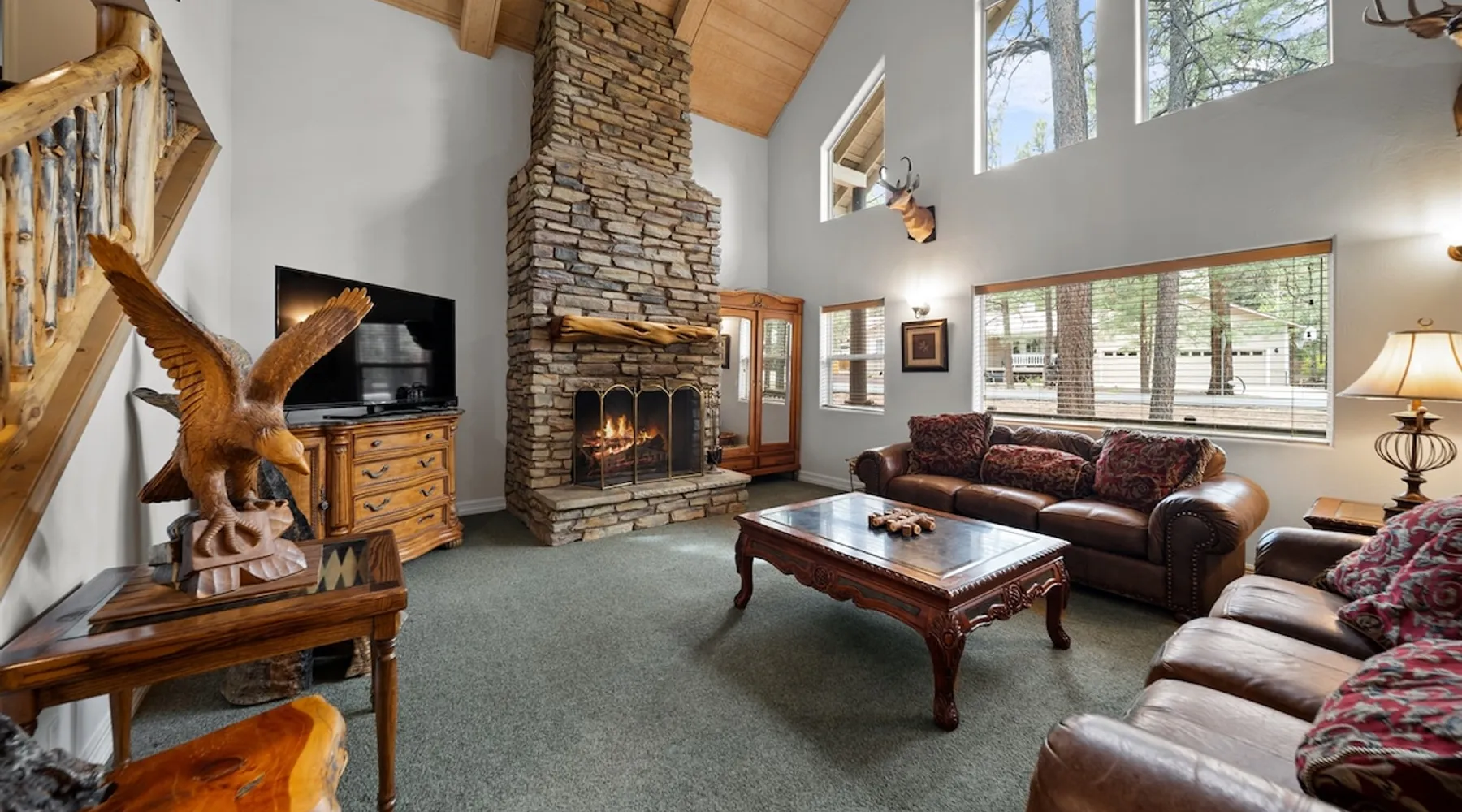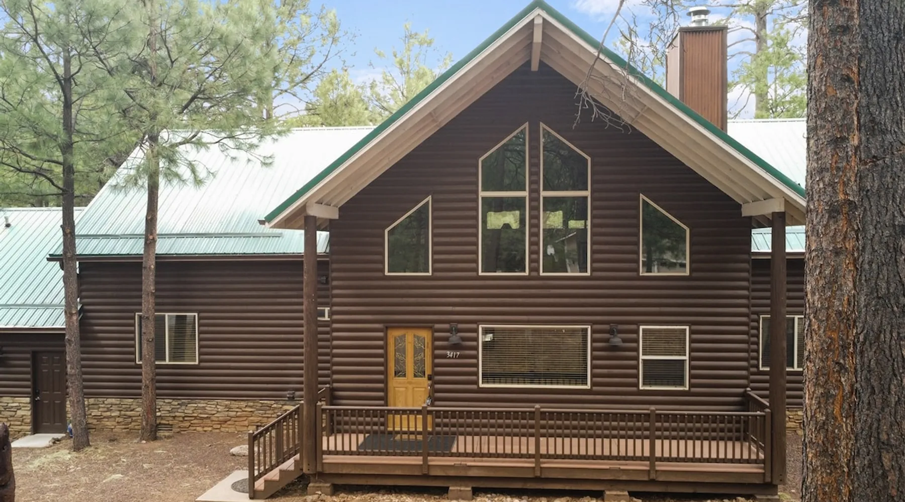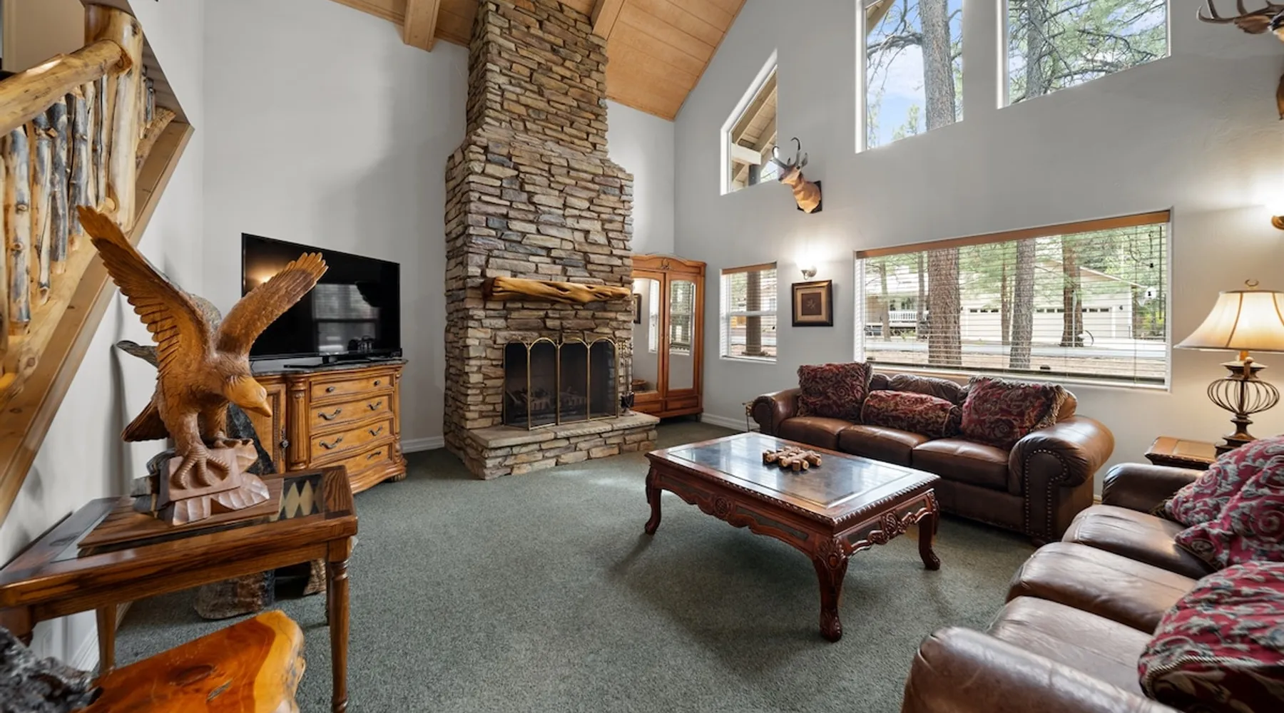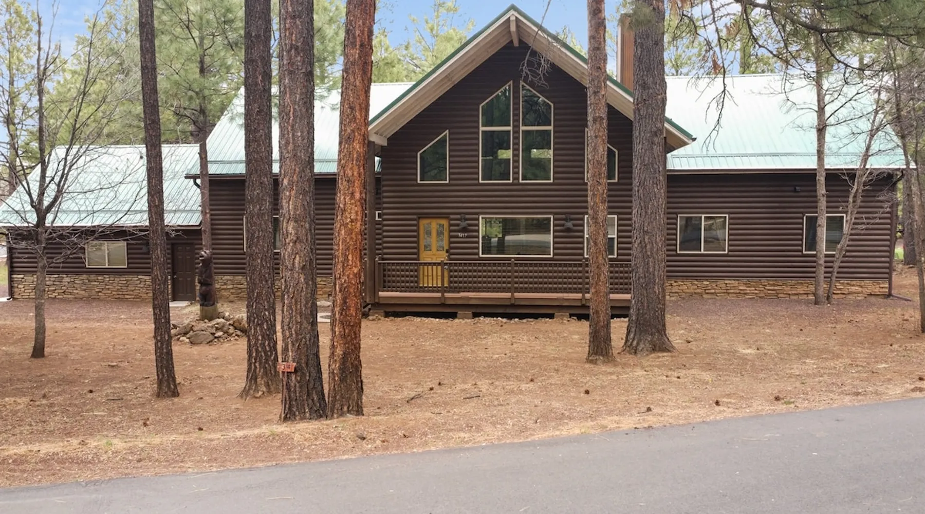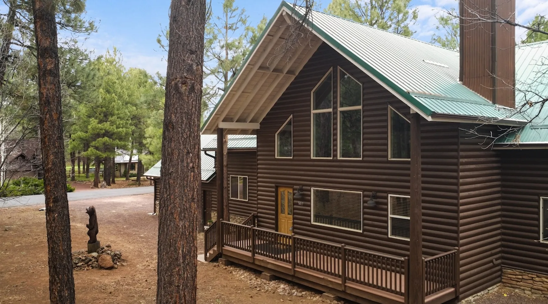 Welcome to your spacious mountain-view cabin located in Pinetop. This 5-bedroom, 6-bathroom cabin is designed to provide you with elevated comfort and scenic serenity, making your stay truly exceptional. Whether you're here for golf, hiking, or simply to unwind with loved ones, this spacious and charming cabin offers the perfect base. With private en-suite bathrooms in every bedroom, and serene golf course views, your escape awaits. Book now to secure your stay at this unforgettable getaway! The space ⭑Master Bedroom:⭑ ✔ Generously sized with beautiful antique furnishings and a unique, cozy vibe ✔ Private en-suite bathroom, premium bedding, and extra pillows & blankets ⭑Second Bedroom:⭑ ✔ Bright and airy space perfect for winding down after a day outdoors ✔ En-suite bathroom, soft linens, and convenient storage space ⭑Third Bedroom:⭑ ✔ A quiet and comfortable space with personal touches and thoughtful decor ✔ En-suite bathroom, hangers, and bedside lighting ⭑Fourth Bedroom:⭑ ✔ Charming bedroom with a warm, welcoming ambiance ✔ En-suite bathroom, bed linens, and blackout curtains for great sleep ⭑Fifth Bedroom:⭑ ✔ Ideal for kids or additional guests, with cozy bedding and antique accents ✔ En-suite bathroom, extra blankets, and ample space ⭑Living Room:⭑ ✔ Soaring ceilings, golf course views, and stylish yet comfortable seating ✔ Indoor fireplace, TV, and antique collectibles that create a truly special vibe ⭑Kitchen and Dining Area:⭑ ✔ Fully equipped kitchen for homemade meals or quick snacks ✔ Refrigerator, freezer, stove, oven, microwave, coffee maker, toaster, blender ✔ Dishes, silverware, baking sheets, barbecue utensils ✔ Large dining table perfect for family meals or game nights ⭑Bathrooms:⭑ ✔ Six private bathrooms, each connected to a bedroom for ultimate privacy ✔ Stocked with towels, body soap, shampoo, conditioner, hair dryer, shower gel ✔ Bathtub in select bathrooms for relaxing soaks ⭑Outdoor Space:⭑ ✔ Directly on the 18th tee of Pinetop Lakes Golf Course — unbeatable views! ✔ Patio with outdoor furniture, dining area, and BBQ grill ✔ Perfect for relaxing mornings or sunset grilling sessions Other things to note ⭑Additional Amenities:⭑ ✔ Washer, iron, extra linens, and blankets ✔ Essentials provided: towels, bed sheets, toilet paper, and cleaning products ✔ Portable fans for added comfort ⭑Safety and Security:⭑ ✔ Smoke alarm, carbon monoxide alarm, fire extinguisher ✔ First aid kit for peace of mind ⭑Entertainment and Connectivity:⭑ ✔ High-speed WiFi and a dedicated workspace for remote work ✔ TV for entertainment, whether you're streaming or just relaxing ⭑Heating and Cooling:⭑ ✔ Indoor fireplace and heating throughout ✔ Portable fans to keep cool during warmer days ⭑Parking and Facilities:⭑ ✔ Free on-site parking ✔ Long-term stays allowed (28+ days) ⭑Services:⭑ ✔ Self check-in via secure keypad – check yourself in with ease ✔ Professionally cleaned and maintained for each guest stay This property has special local compliance requirements which include a signed rental agreement, ID verification, and a security hold of $1000 (which is not a traditional security deposit, just a pending transaction). As an optional alternative to the security hold, you may opt in to purchase a non-refundable damage waiver provided by a third-party insurance company. The optional damage waiver is $57 for stays up to 10 nights, with an additional $6 per day for stays longer than 10 nights. Damage waiver purchases are optional. To make this process easy for you, we use a secure and very simple, app-free platform called Happy Guest. It is not an app, and you do not have to sign up for an account - it’s a safe and secure website. It also gives you a guest portal with all the info about the home and all of my favorite local spots. Your guest portal includes advertisements with third-party upgrades that you may want to enhance your stay. These upgrades are optional and include: Late checkout - $40 per hour If you have any questions, just message us anytime! Happy to help!