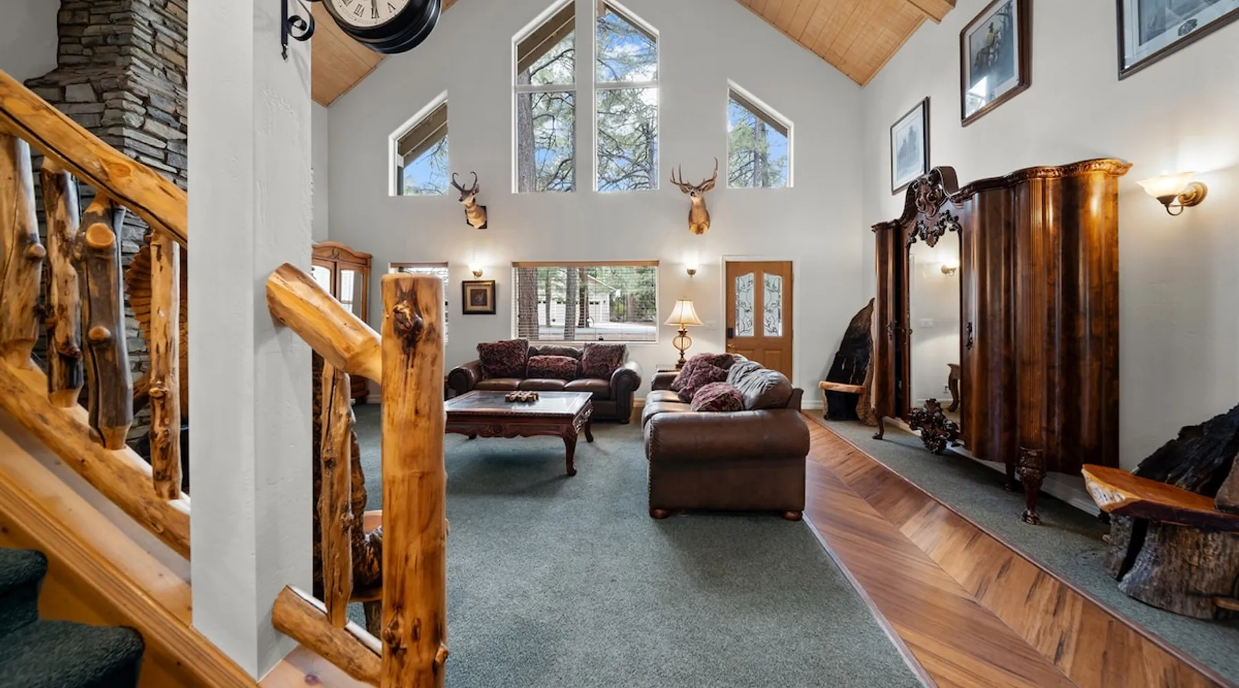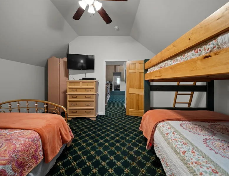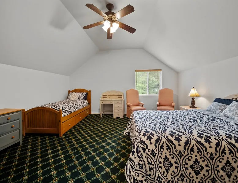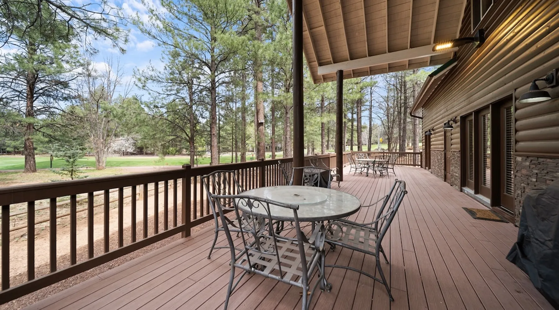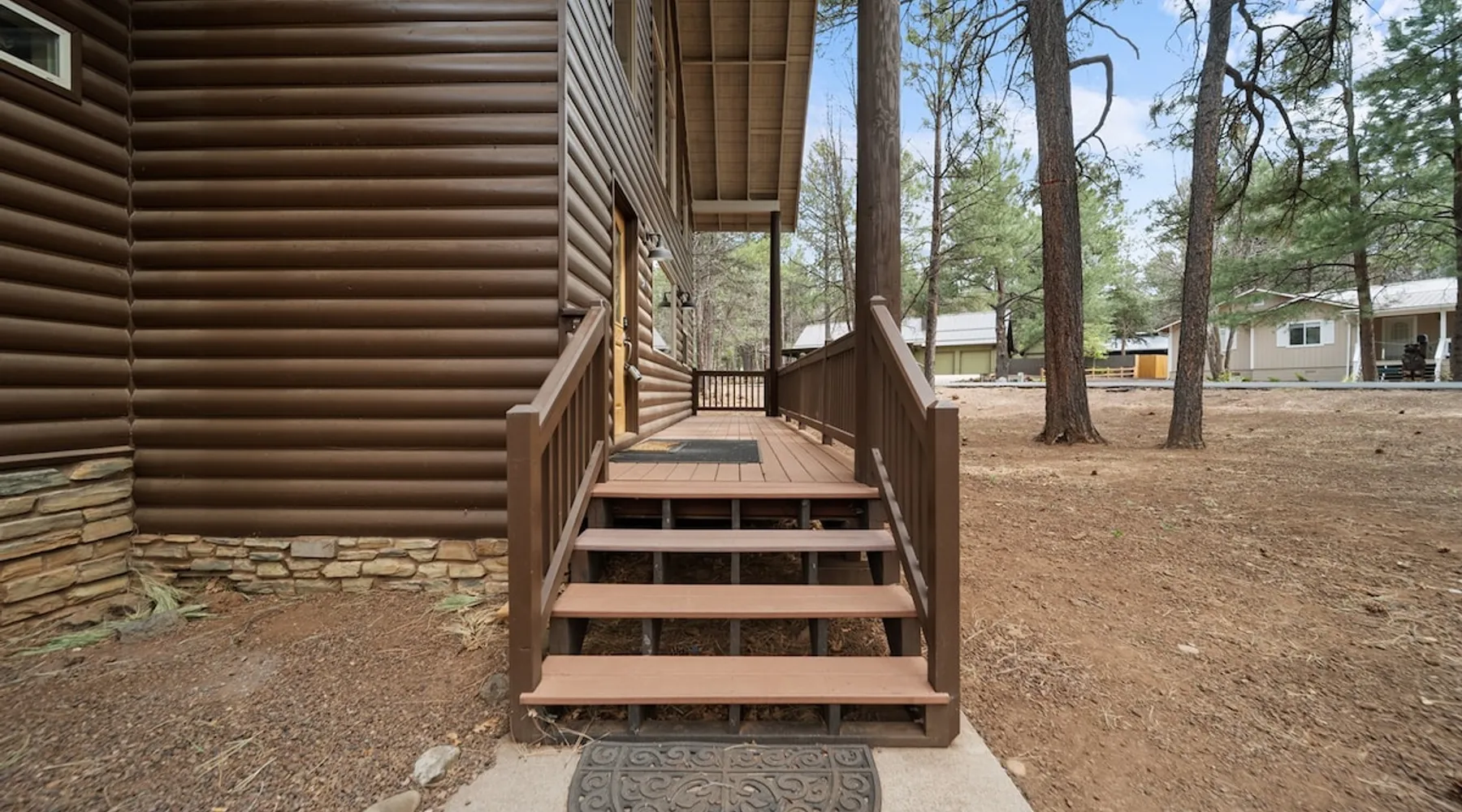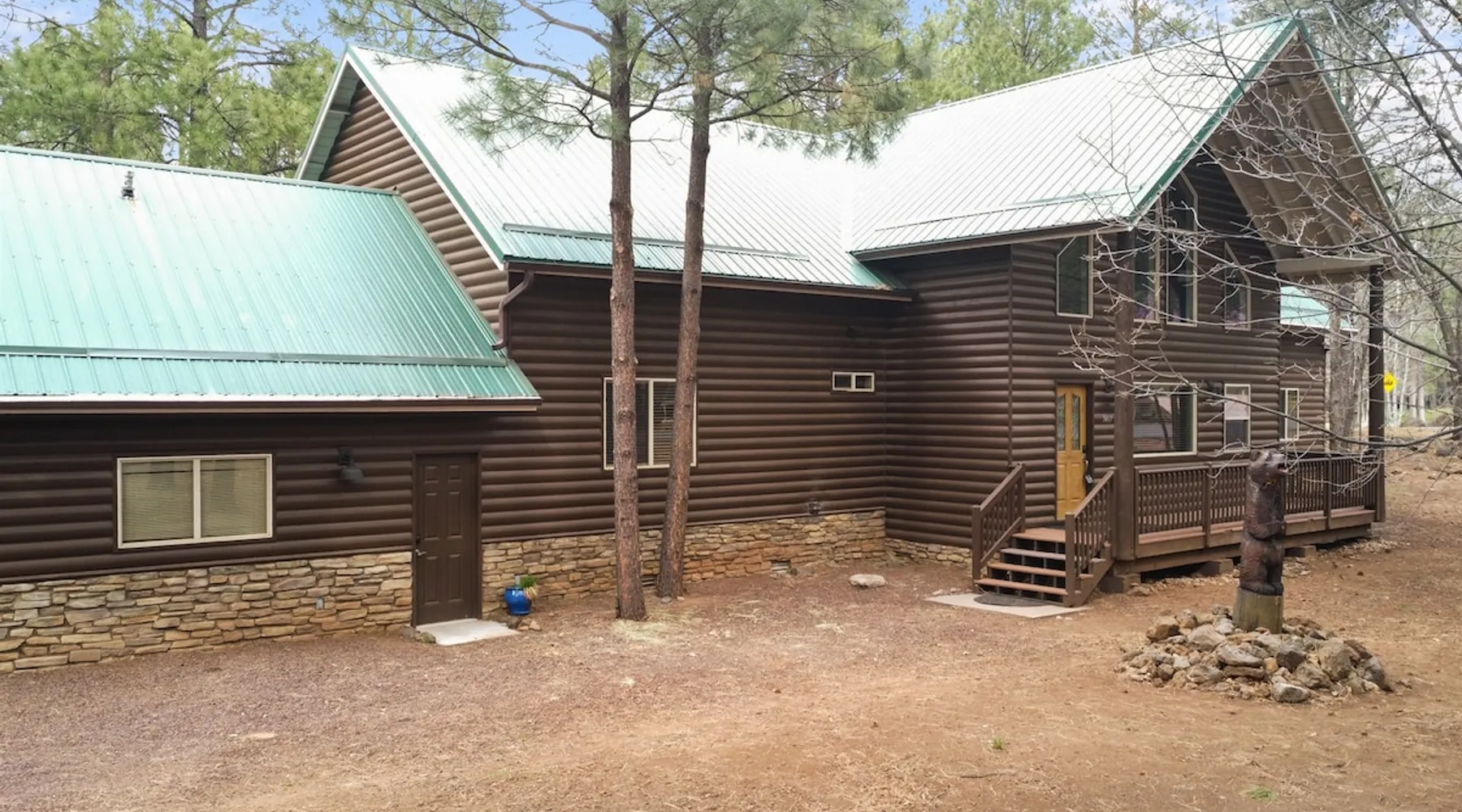 Welcome to your spacious mountain-view cabin located in Pinetop. This 5-bedroom, 6-bathroom cabin is designed to provide you with elevated comfort and scenic serenity, making your stay truly exceptional. Whether you're here for golf, hiking, or simply to unwind with loved ones, this spacious and charming cabin offers the perfect base. With private en-suite bathrooms in every bedroom, and serene golf course views, your escape awaits. Book now to secure your stay at this unforgettable getaway! The space ⭑Master Bedroom:⭑ ✔ Generously sized with beautiful antique furnishings and a unique, cozy vibe ✔ Private en-suite bathroom, premium bedding, and extra pillows & blankets ⭑Second Bedroom:⭑ ✔ Bright and airy space perfect for winding down after a day outdoors ✔ En-suite bathroom, soft linens, and convenient storage space ⭑Third Bedroom:⭑ ✔ A quiet and comfortable space with personal touches and thoughtful decor ✔ En-suite bathroom, hangers, and bedside lighting ⭑Fourth Bedroom:⭑ ✔ Charming bedroom with a warm, welcoming ambiance ✔ En-suite bathroom, bed linens, and blackout curtains for great sleep ⭑Fifth Bedroom:⭑ ✔ Ideal for kids or additional guests, with cozy bedding and antique accents ✔ En-suite bathroom, extra blankets, and ample space ⭑Living Room:⭑ ✔ Soaring ceilings, golf course views, and stylish yet comfortable seating ✔ Indoor fireplace, TV, and antique collectibles that create a truly special vibe ⭑Kitchen and Dining Area:⭑ ✔ Fully equipped kitchen for homemade meals or quick snacks ✔ Refrigerator, freezer, stove, oven, microwave, coffee maker, toaster, blender ✔ Dishes, silverware, baking sheets, barbecue utensils ✔ Large dining table perfect for family meals or game nights ⭑Bathrooms:⭑ ✔ Six private bathrooms, each connected to a bedroom for ultimate privacy ✔ Stocked with towels, body soap, shampoo, conditioner, hair dryer, shower gel ✔ Bathtub in select bathrooms for relaxing soaks ⭑Outdoor Space:⭑ ✔ Directly on the 18th tee of Pinetop Lakes Golf Course — unbeatable views! ✔ Patio with outdoor furniture, dining area, and BBQ grill ✔ Perfect for relaxing mornings or sunset grilling sessions Other things to note ⭑Additional Amenities:⭑ ✔ Washer, iron, extra linens, and blankets ✔ Essentials provided: towels, bed sheets, toilet paper, and cleaning products ✔ Portable fans for added comfort ⭑Safety and Security:⭑ ✔ Smoke alarm, carbon monoxide alarm, fire extinguisher ✔ First aid kit for peace of mind ⭑Entertainment and Connectivity:⭑ ✔ High-speed WiFi and a dedicated workspace for remote work ✔ TV for entertainment, whether you're streaming or just relaxing ⭑Heating and Cooling:⭑ ✔ Indoor fireplace and heating throughout ✔ Portable fans to keep cool during warmer days ⭑Parking and Facilities:⭑ ✔ Free on-site parking ✔ Long-term stays allowed (28+ days) ⭑Services:⭑ ✔ Self check-in via secure keypad – check yourself in with ease ✔ Professionally cleaned and maintained for each guest stay This property has special local compliance requirements which include a signed rental agreement, ID verification, and a security hold of $1000 (which is not a traditional security deposit, just a pending transaction). As an optional alternative to the security hold, you may opt in to purchase a non-refundable damage waiver provided by a third-party insurance company. The optional damage waiver is $57 for stays up to 10 nights, with an additional $6 per day for stays longer than 10 nights. Damage waiver purchases are optional. To make this process easy for you, we use a secure and very simple, app-free platform called Happy Guest. It is not an app, and you do not have to sign up for an account - it’s a safe and secure website. It also gives you a guest portal with all the info about the home and all of my favorite local spots. Your guest portal includes advertisements with third-party upgrades that you may want to enhance your stay. These upgrades are optional and include: Late checkout - $40 per hour If you have any questions, just message us anytime! Happy to help!