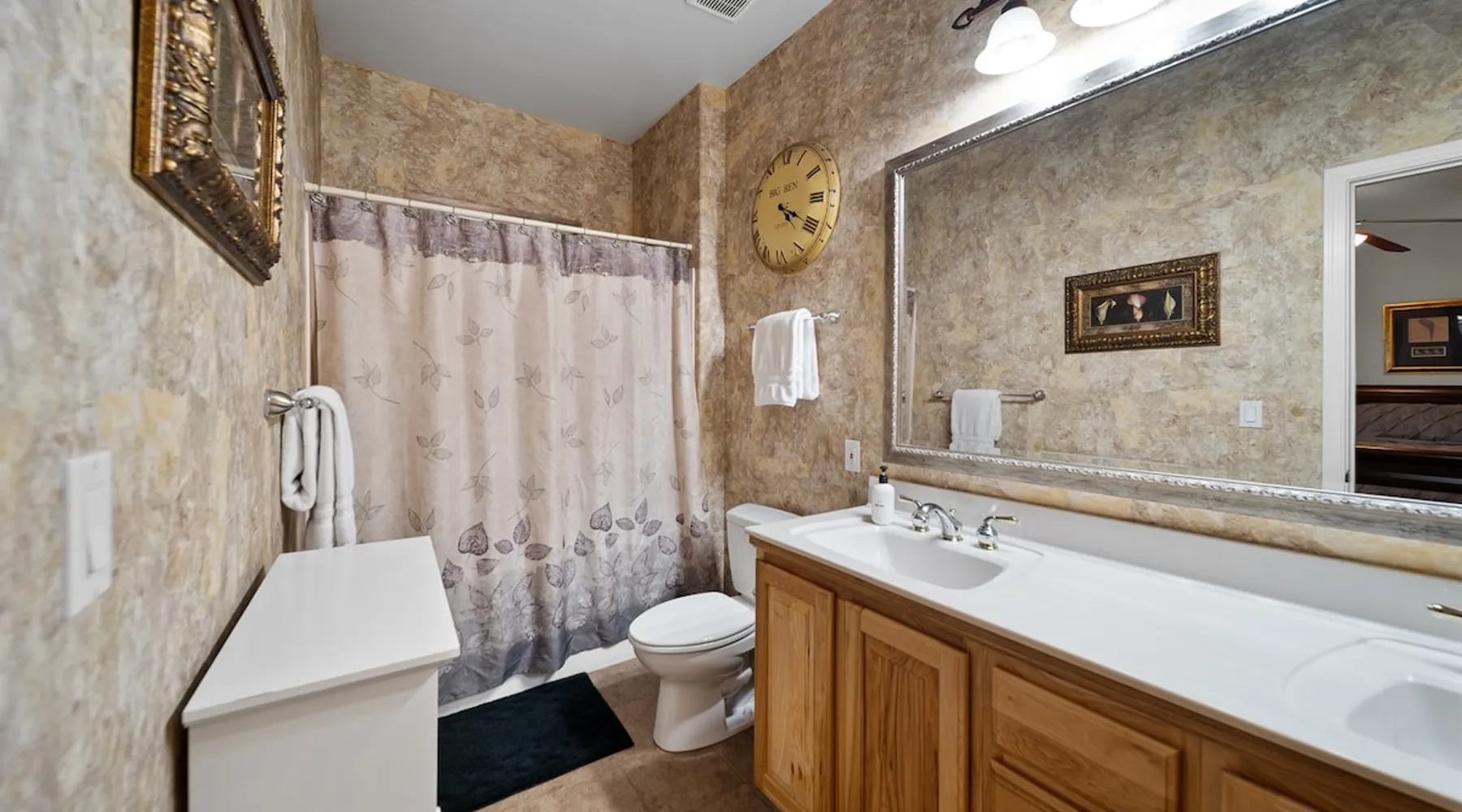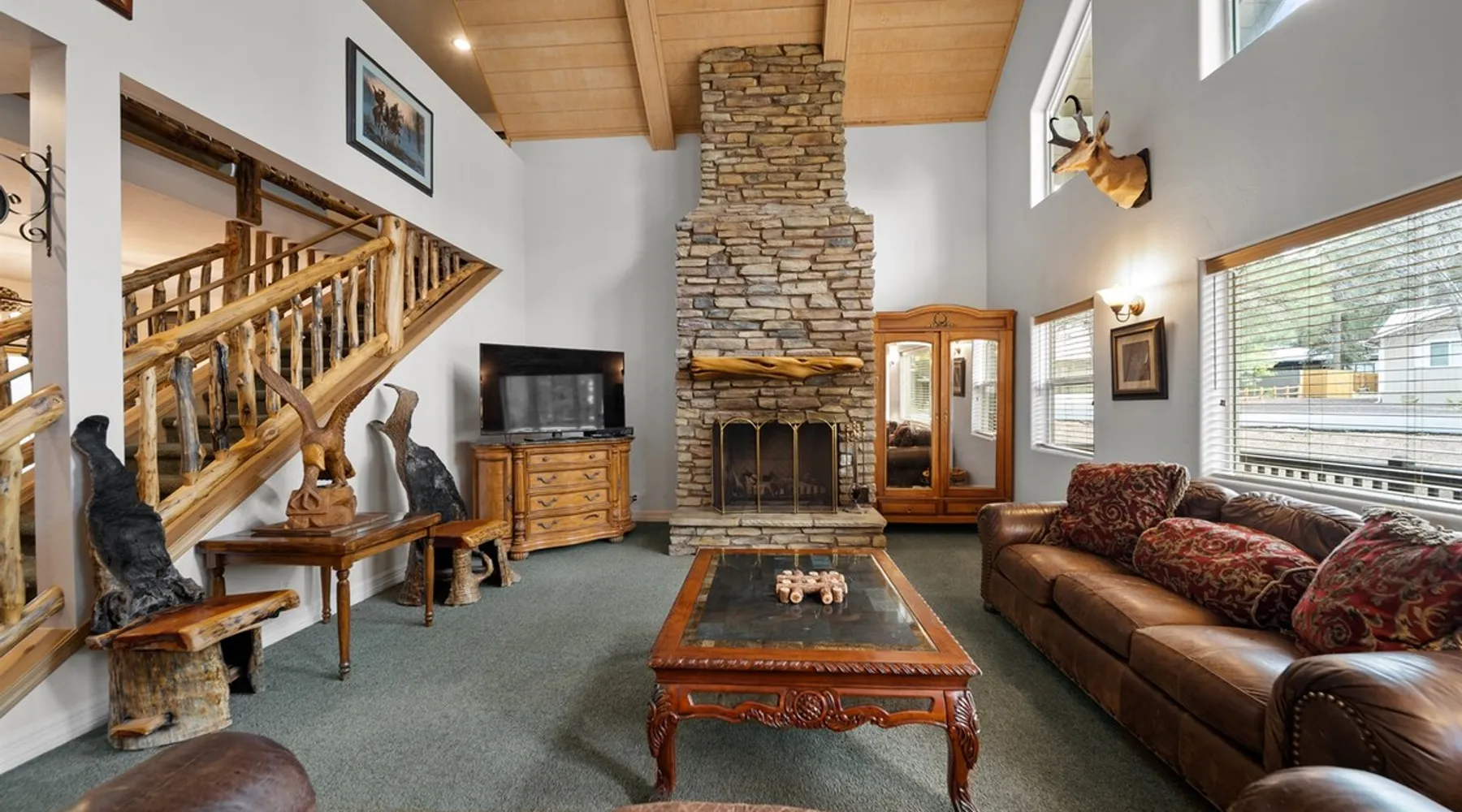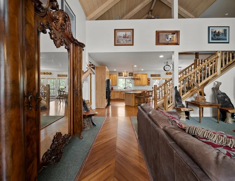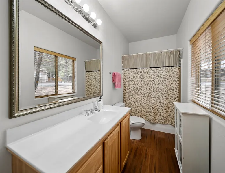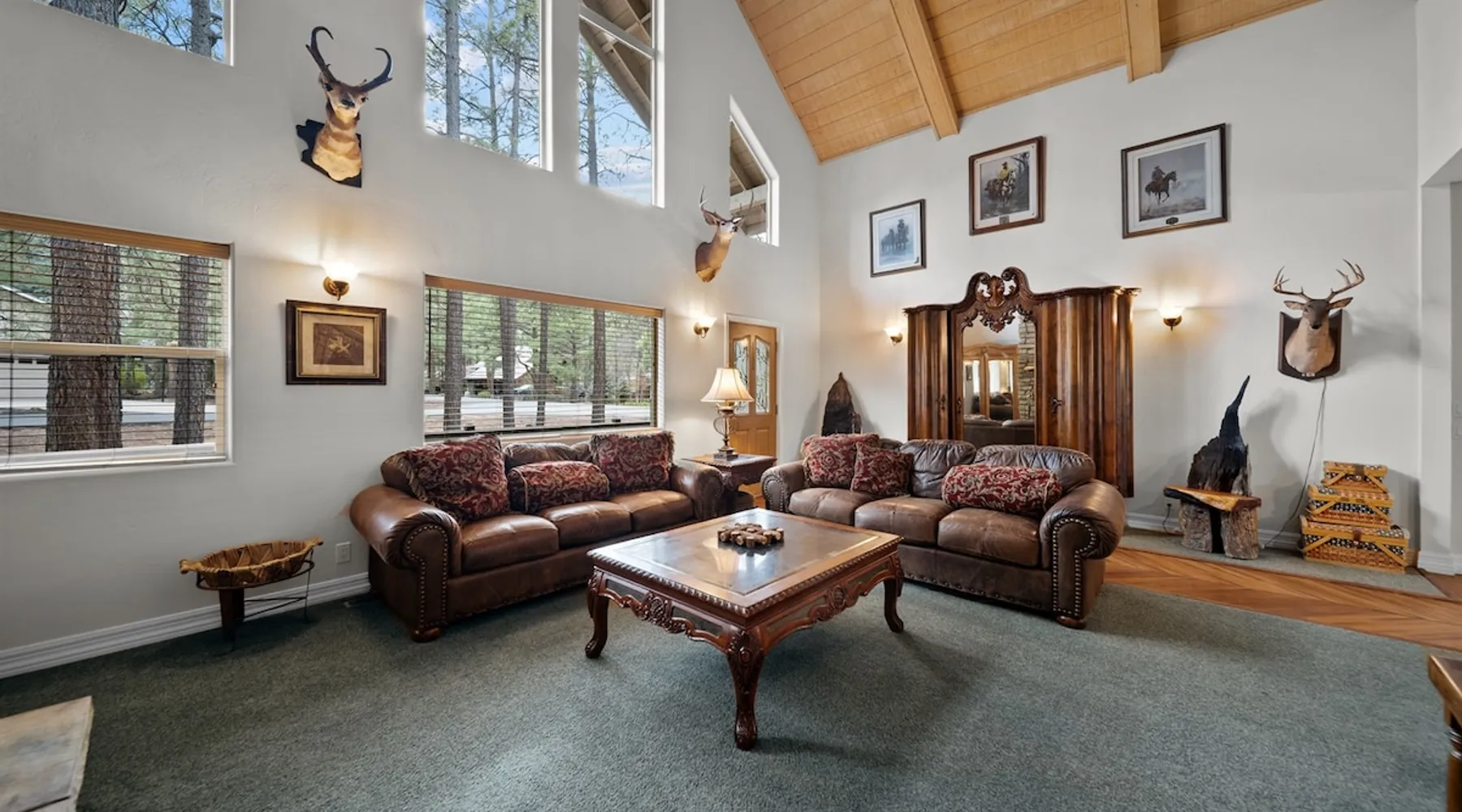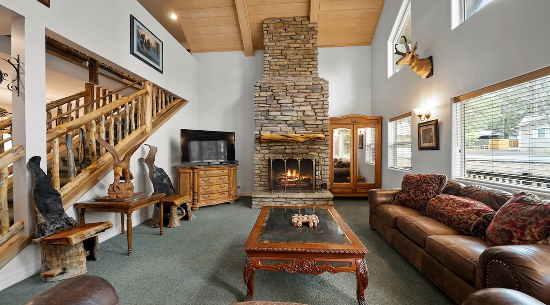 Welcome to your spacious mountain-view cabin located in Pinetop. This 5-bedroom, 6-bathroom cabin is designed to provide you with elevated comfort and scenic serenity, making your stay truly exceptional. Whether you're here for golf, hiking, or simply to unwind with loved ones, this spacious and charming cabin offers the perfect base. With private en-suite bathrooms in every bedroom, and serene golf course views, your escape awaits. Book now to secure your stay at this unforgettable getaway! The space ⭑Master Bedroom:⭑ ✔ Generously sized with beautiful antique furnishings and a unique, cozy vibe ✔ Private en-suite bathroom, premium bedding, and extra pillows & blankets ⭑Second Bedroom:⭑ ✔ Bright and airy space perfect for winding down after a day outdoors ✔ En-suite bathroom, soft linens, and convenient storage space ⭑Third Bedroom:⭑ ✔ A quiet and comfortable space with personal touches and thoughtful decor ✔ En-suite bathroom, hangers, and bedside lighting ⭑Fourth Bedroom:⭑ ✔ Charming bedroom with a warm, welcoming ambiance ✔ En-suite bathroom, bed linens, and blackout curtains for great sleep ⭑Fifth Bedroom:⭑ ✔ Ideal for kids or additional guests, with cozy bedding and antique accents ✔ En-suite bathroom, extra blankets, and ample space ⭑Living Room:⭑ ✔ Soaring ceilings, golf course views, and stylish yet comfortable seating ✔ Indoor fireplace, TV, and antique collectibles that create a truly special vibe ⭑Kitchen and Dining Area:⭑ ✔ Fully equipped kitchen for homemade meals or quick snacks ✔ Refrigerator, freezer, stove, oven, microwave, coffee maker, toaster, blender ✔ Dishes, silverware, baking sheets, barbecue utensils ✔ Large dining table perfect for family meals or game nights ⭑Bathrooms:⭑ ✔ Six private bathrooms, each connected to a bedroom for ultimate privacy ✔ Stocked with towels, body soap, shampoo, conditioner, hair dryer, shower gel ✔ Bathtub in select bathrooms for relaxing soaks ⭑Outdoor Space:⭑ ✔ Directly on the 18th tee of Pinetop Lakes Golf Course — unbeatable views! ✔ Patio with outdoor furniture, dining area, and BBQ grill ✔ Perfect for relaxing mornings or sunset grilling sessions Other things to note ⭑Additional Amenities:⭑ ✔ Washer, iron, extra linens, and blankets ✔ Essentials provided: towels, bed sheets, toilet paper, and cleaning products ✔ Portable fans for added comfort ⭑Safety and Security:⭑ ✔ Smoke alarm, carbon monoxide alarm, fire extinguisher ✔ First aid kit for peace of mind ⭑Entertainment and Connectivity:⭑ ✔ High-speed WiFi and a dedicated workspace for remote work ✔ TV for entertainment, whether you're streaming or just relaxing ⭑Heating and Cooling:⭑ ✔ Indoor fireplace and heating throughout ✔ Portable fans to keep cool during warmer days ⭑Parking and Facilities:⭑ ✔ Free on-site parking ✔ Long-term stays allowed (28+ days) ⭑Services:⭑ ✔ Self check-in via secure keypad – check yourself in with ease ✔ Professionally cleaned and maintained for each guest stay This property has special local compliance requirements which include a signed rental agreement, ID verification, and a security hold of $1000 (which is not a traditional security deposit, just a pending transaction). As an optional alternative to the security hold, you may opt in to purchase a non-refundable damage waiver provided by a third-party insurance company. The optional damage waiver is $57 for stays up to 10 nights, with an additional $6 per day for stays longer than 10 nights. Damage waiver purchases are optional. To make this process easy for you, we use a secure and very simple, app-free platform called Happy Guest. It is not an app, and you do not have to sign up for an account - it’s a safe and secure website. It also gives you a guest portal with all the info about the home and all of my favorite local spots. Your guest portal includes advertisements with third-party upgrades that you may want to enhance your stay. These upgrades are optional and include: Late checkout - $40 per hour If you have any questions, just message us anytime! Happy to help!