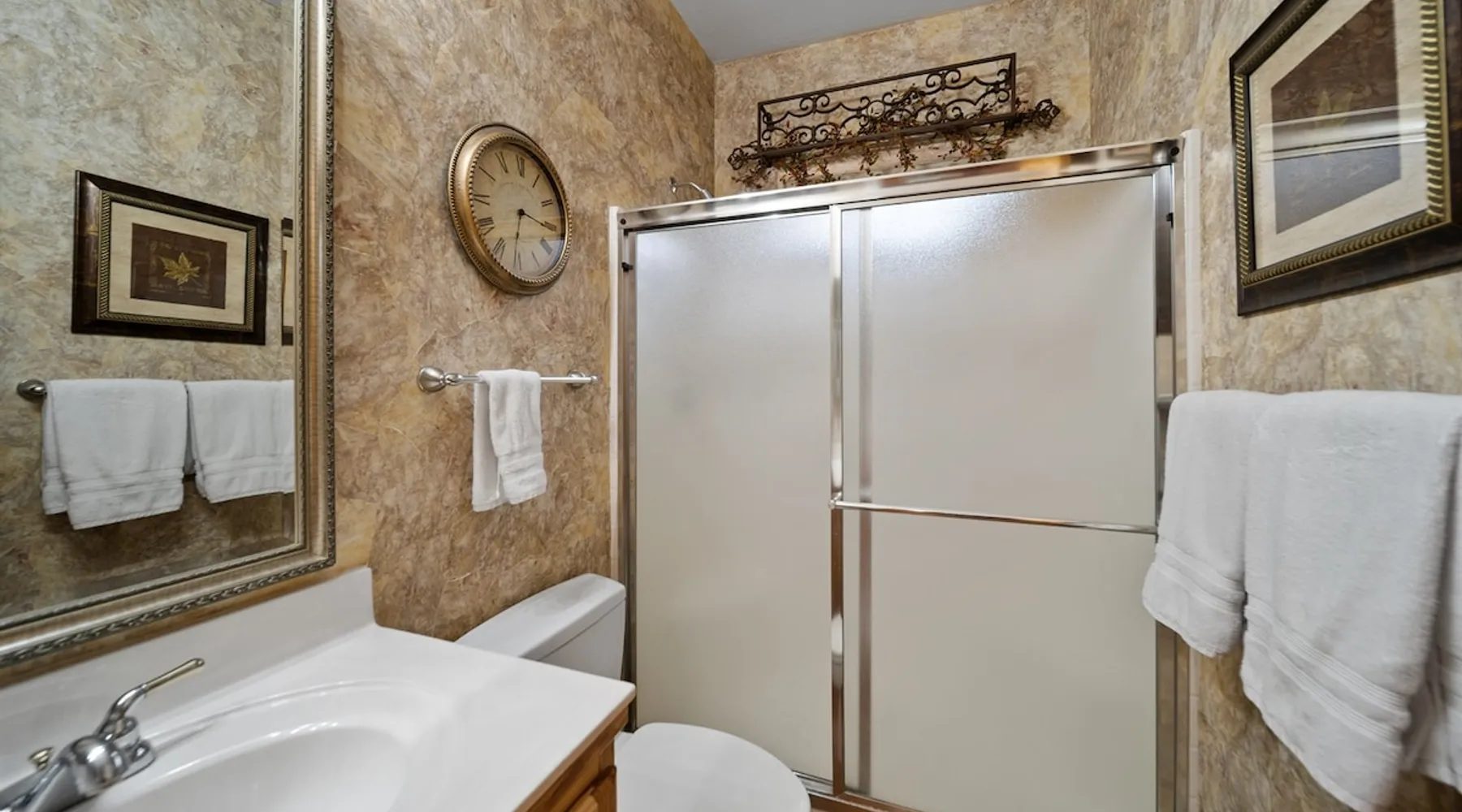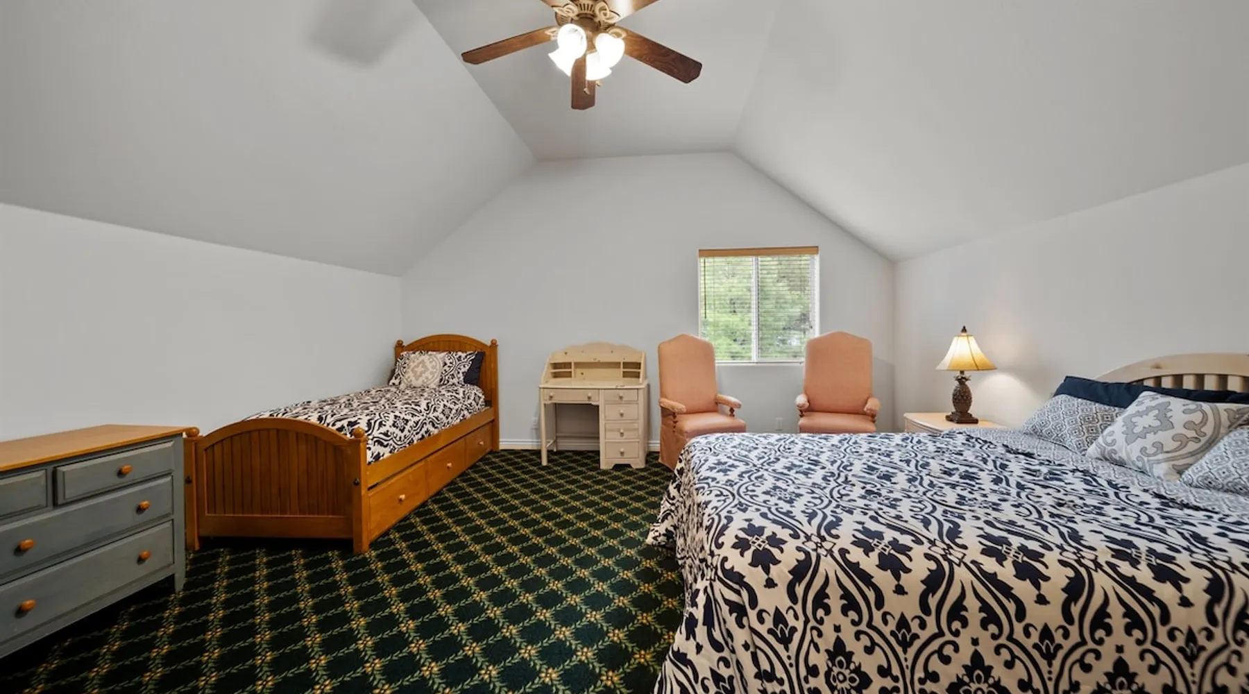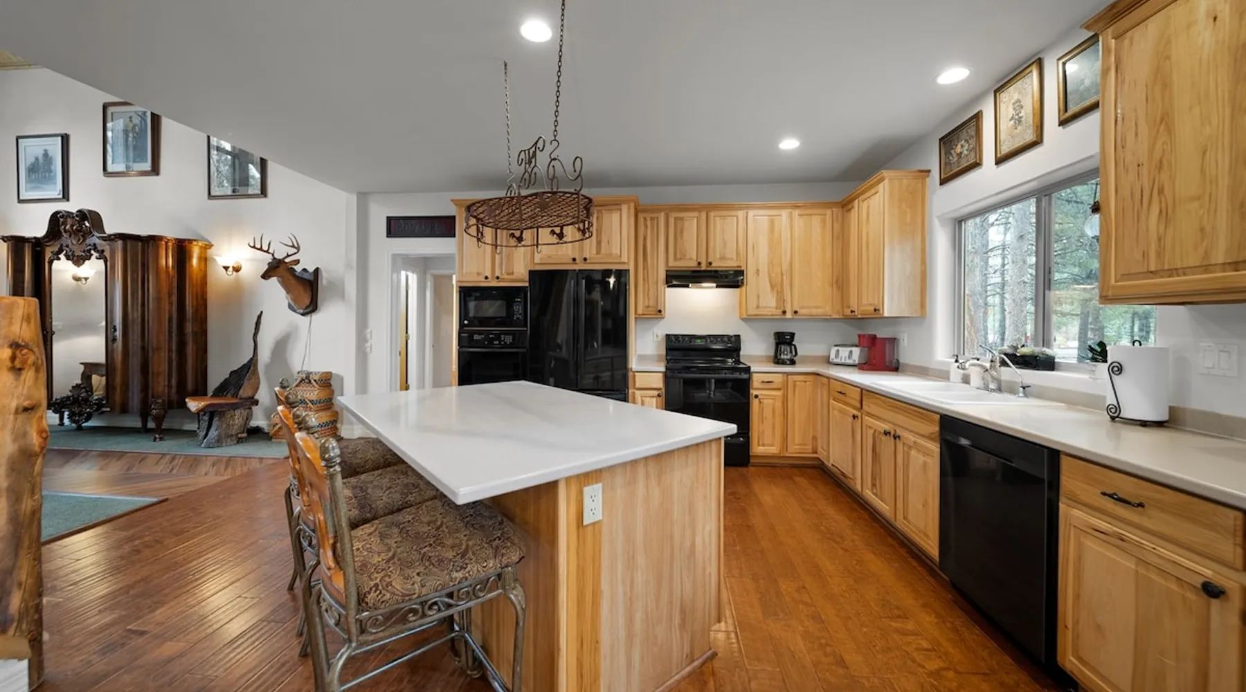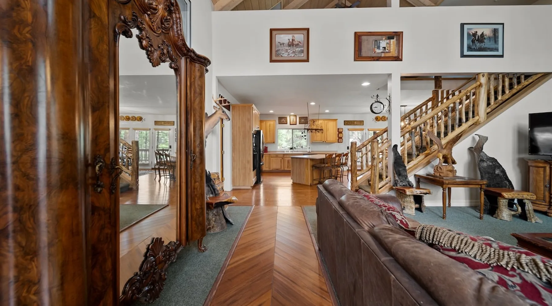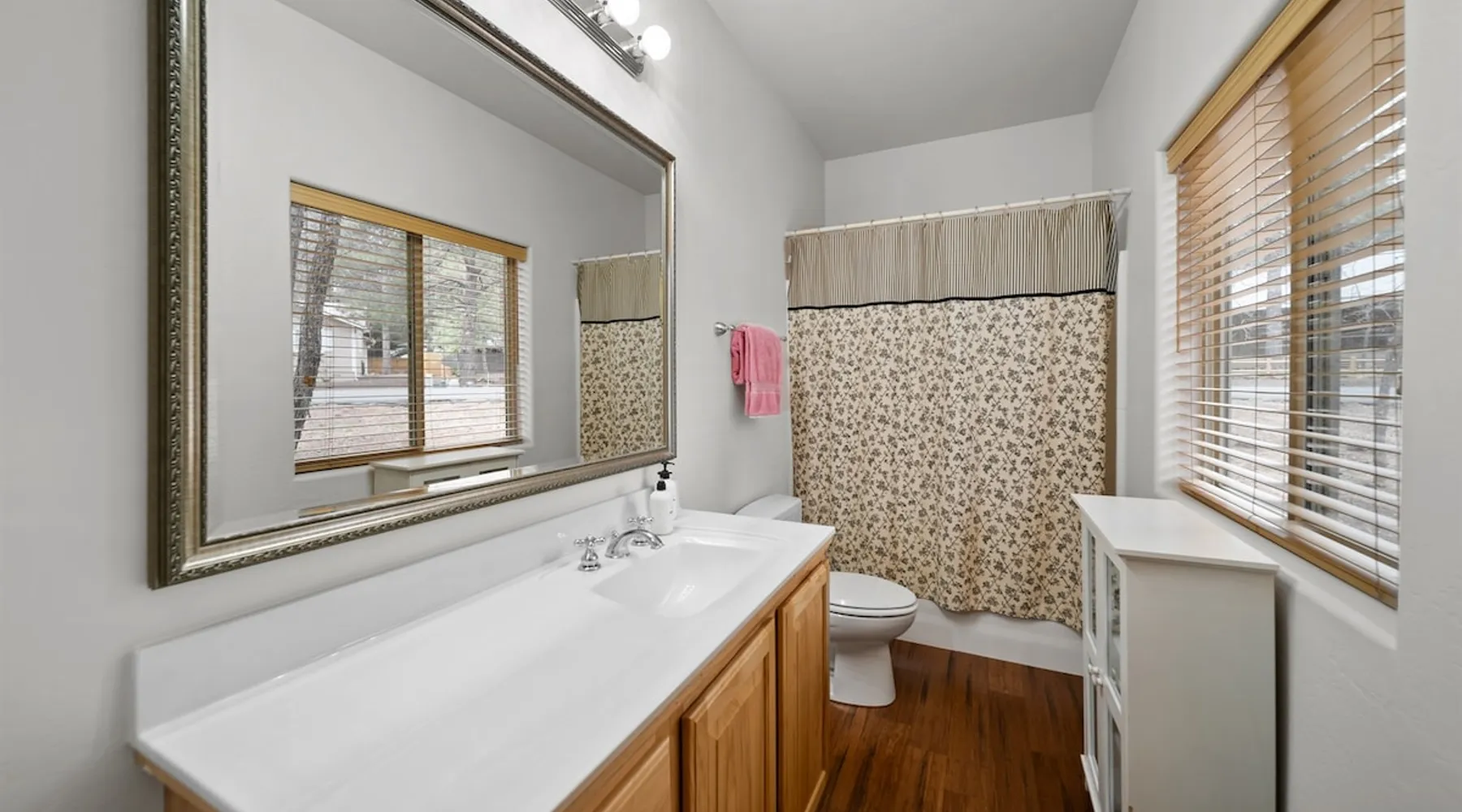 Welcome to your spacious mountain-view cabin located in Pinetop. This 5-bedroom, 6-bathroom cabin is designed to provide you with elevated comfort and scenic serenity, making your stay truly exceptional. Whether you're here for golf, hiking, or simply to unwind with loved ones, this spacious and charming cabin offers the perfect base. With private en-suite bathrooms in every bedroom, and serene golf course views, your escape awaits. Book now to secure your stay at this unforgettable getaway! The space ⭑Master Bedroom:⭑ ✔ Generously sized with beautiful antique furnishings and a unique, cozy vibe ✔ Private en-suite bathroom, premium bedding, and extra pillows & blankets ⭑Second Bedroom:⭑ ✔ Bright and airy space perfect for winding down after a day outdoors ✔ En-suite bathroom, soft linens, and convenient storage space ⭑Third Bedroom:⭑ ✔ A quiet and comfortable space with personal touches and thoughtful decor ✔ En-suite bathroom, hangers, and bedside lighting ⭑Fourth Bedroom:⭑ ✔ Charming bedroom with a warm, welcoming ambiance ✔ En-suite bathroom, bed linens, and blackout curtains for great sleep ⭑Fifth Bedroom:⭑ ✔ Ideal for kids or additional guests, with cozy bedding and antique accents ✔ En-suite bathroom, extra blankets, and ample space ⭑Living Room:⭑ ✔ Soaring ceilings, golf course views, and stylish yet comfortable seating ✔ Indoor fireplace, TV, and antique collectibles that create a truly special vibe ⭑Kitchen and Dining Area:⭑ ✔ Fully equipped kitchen for homemade meals or quick snacks ✔ Refrigerator, freezer, stove, oven, microwave, coffee maker, toaster, blender ✔ Dishes, silverware, baking sheets, barbecue utensils ✔ Large dining table perfect for family meals or game nights ⭑Bathrooms:⭑ ✔ Six private bathrooms, each connected to a bedroom for ultimate privacy ✔ Stocked with towels, body soap, shampoo, conditioner, hair dryer, shower gel ✔ Bathtub in select bathrooms for relaxing soaks ⭑Outdoor Space:⭑ ✔ Directly on the 18th tee of Pinetop Lakes Golf Course — unbeatable views! ✔ Patio with outdoor furniture, dining area, and BBQ grill ✔ Perfect for relaxing mornings or sunset grilling sessions Other things to note ⭑Additional Amenities:⭑ ✔ Washer, iron, extra linens, and blankets ✔ Essentials provided: towels, bed sheets, toilet paper, and cleaning products ✔ Portable fans for added comfort ⭑Safety and Security:⭑ ✔ Smoke alarm, carbon monoxide alarm, fire extinguisher ✔ First aid kit for peace of mind ⭑Entertainment and Connectivity:⭑ ✔ High-speed WiFi and a dedicated workspace for remote work ✔ TV for entertainment, whether you're streaming or just relaxing ⭑Heating and Cooling:⭑ ✔ Indoor fireplace and heating throughout ✔ Portable fans to keep cool during warmer days ⭑Parking and Facilities:⭑ ✔ Free on-site parking ✔ Long-term stays allowed (28+ days) ⭑Services:⭑ ✔ Self check-in via secure keypad – check yourself in with ease ✔ Professionally cleaned and maintained for each guest stay This property has special local compliance requirements which include a signed rental agreement, ID verification, and a security hold of $1000 (which is not a traditional security deposit, just a pending transaction). As an optional alternative to the security hold, you may opt in to purchase a non-refundable damage waiver provided by a third-party insurance company. The optional damage waiver is $57 for stays up to 10 nights, with an additional $6 per day for stays longer than 10 nights. Damage waiver purchases are optional. To make this process easy for you, we use a secure and very simple, app-free platform called Happy Guest. It is not an app, and you do not have to sign up for an account - it’s a safe and secure website. It also gives you a guest portal with all the info about the home and all of my favorite local spots. Your guest portal includes advertisements with third-party upgrades that you may want to enhance your stay. These upgrades are optional and include: Late checkout - $40 per hour If you have any questions, just message us anytime! Happy to help!