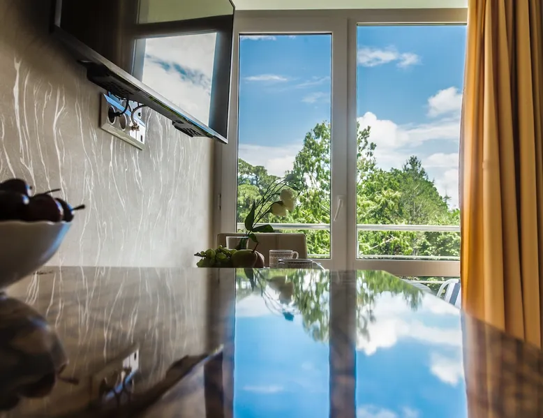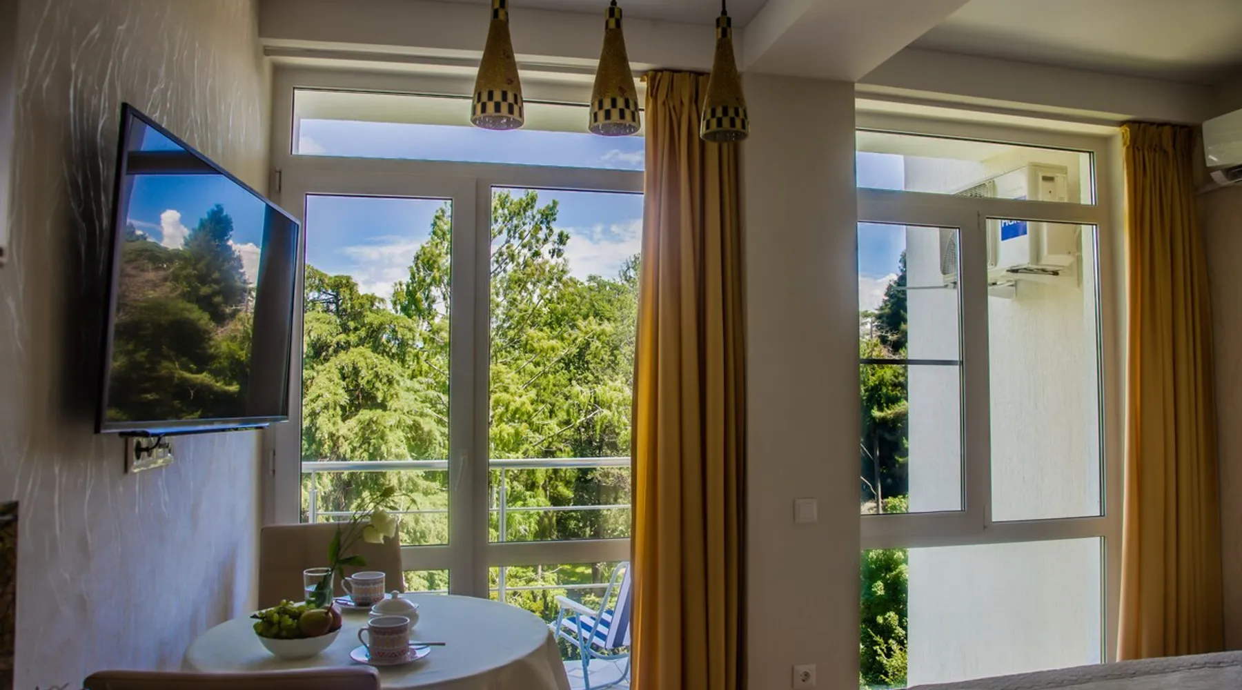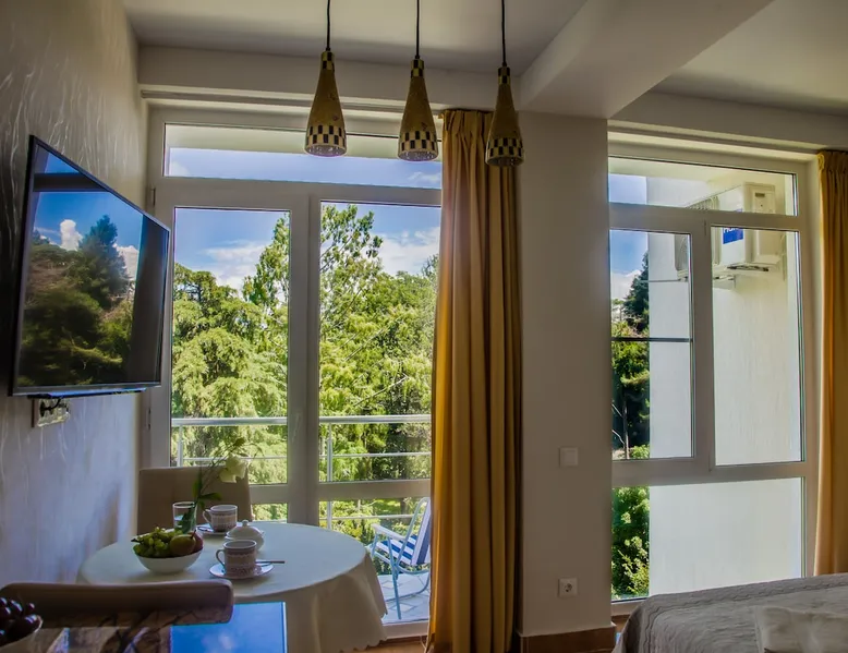 Сдаем студию для 1-2-х человек в новом доме с дизайнерским ремонтом.. кондиционером(сплит-система) и теплыми полами.. бесплатный Wi-Fi..!!! По желанию Wi-Fi ТV!!! С видом на горы и приватным балконом выходящим непосредственно в парк Южных Культур.. С балкона открывается захватывающий вид на горы и сам парк.. Свежайший воздух и запах реликтовых деревьев и кустарников.. Дом стоит чуть в стороне от увеселительных заведений, вечерами тут не досаждает музыка кафешек и ресторанов.. !!! К Вашим услугам предоставляется: Двуспальная кровать Аскона с ортопедическим матрасом.. теплое одеяло.. телевизор с плоским экраном Sony... большой холодильник, стиральная машина, электроплита, микроволновая печь со встроенным грилем, шкаф для одежды и белья, обеденный стол, а так же постельное белье и полотенца.. в том числе и пляжные..)) !!! С детьми не принимаем.. !!! С животными не принимаем.. !!! Дополнительное спальное место не предоставляется!!! !!! Бесплатная.. закрытая и охраняемая автостоянка.. лифт.. мы постоянно на связи.. и доступны для личного контакта.. !!! Апартаменты находятся в парке "Южных культур". До моря-7 мин.. до центрального пляжа-15 мин.. До развлекательного комплекса Мандарин-10 мин. В пешей доступности Центральный рынок -15 мин, гипермаркет Магнит -15 мин. Магазин "Пятерочка" -5мин... До Олимпийских объектов можно дойти за 20-30 мин.. !!От ближайшей автобусной остановки можно доехать прямыми автобусами до Красной поляны и Роза Хутор(интервал движения 30 мин.. время в пути около часа.. Или одна остановка на автобусе до жел.станции "Олимпийская деревня". от нее за 35 мин. на электропоезде "Ласточка" От авт.остановки можно доехать напрямую до центра Сочи(Жел.вокзал.. Морской порт.. Торговый и развлекательный центр "Моремол").. Дендрария.. границы с Абхазией.. Олимпийских объектов и парка развлечений.