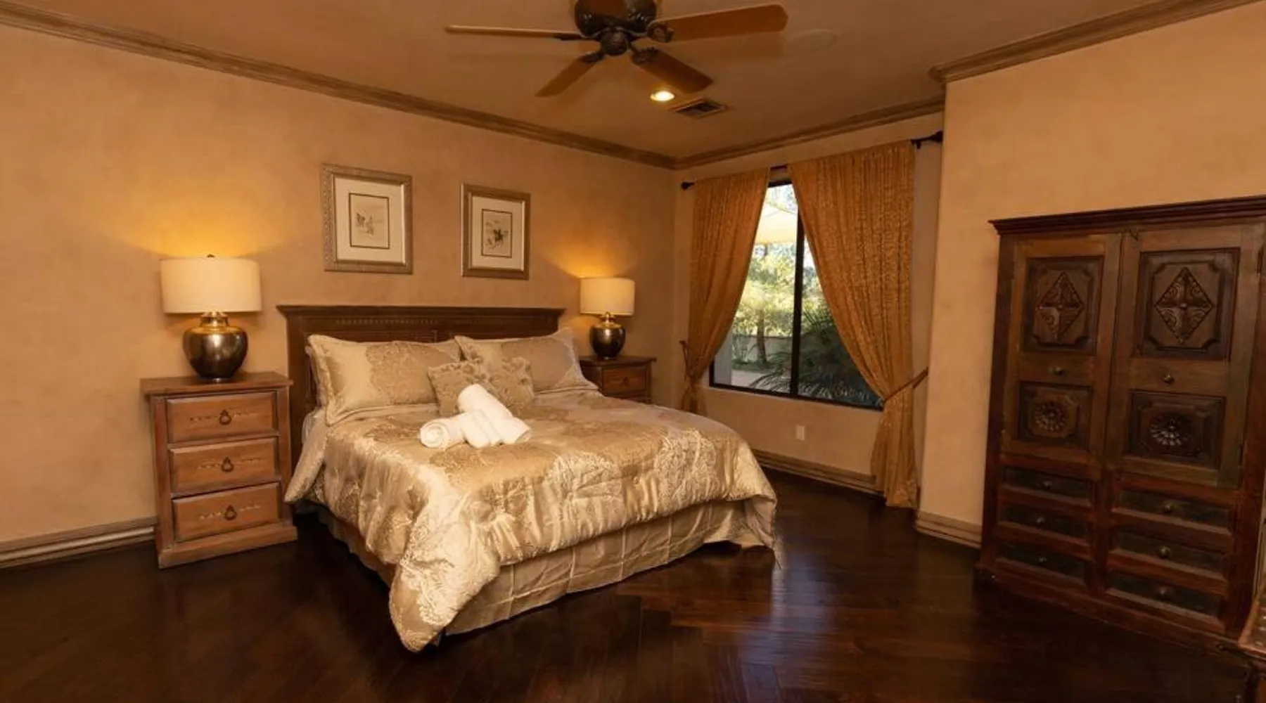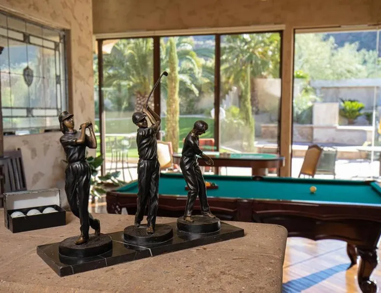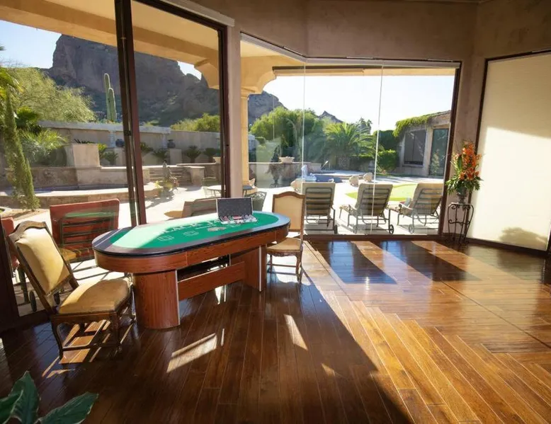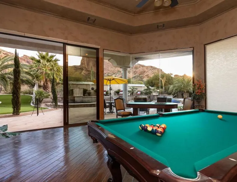 Spacious Accommodations: Camelback Mountain Mansion in Scottsdale offers nine bedrooms and ten bathrooms. The villa features a spacious layout with family rooms, a games room, and a hot tub. Exceptional Facilities: Guests can enjoy spa facilities, a sun terrace, and a year-round outdoor swimming pool. Additional amenities include a bar, open-air bath, and a lounge. Outdoor Activities: The property is ideal for hiking enthusiasts, with nearby attractions such as Wrigley Mansion (4.3 mi) and Phenix Zoo (8.1 mi). Phenix Sky Harbor International Airport is 6.8 mi away. This villa features a pool with a view, hot tub and fireplace. Boasting a private entrance, this spacious villa also features 9 bedrooms, a seating area and 10 bathrooms with a walk-in shower and a bath. Guests will find a stovetop, a refrigerator, a dishwasher and kitchenware in the kitchen. The villa also comes with a barbecue. The air-conditioned villa features a flat-screen TV with cable channels, a washing machine, soundproof walls, a mini-bar as well as garden views. The unit has 16 beds.