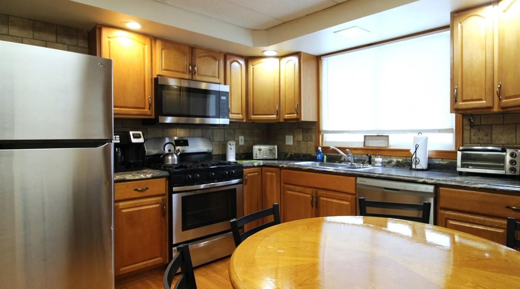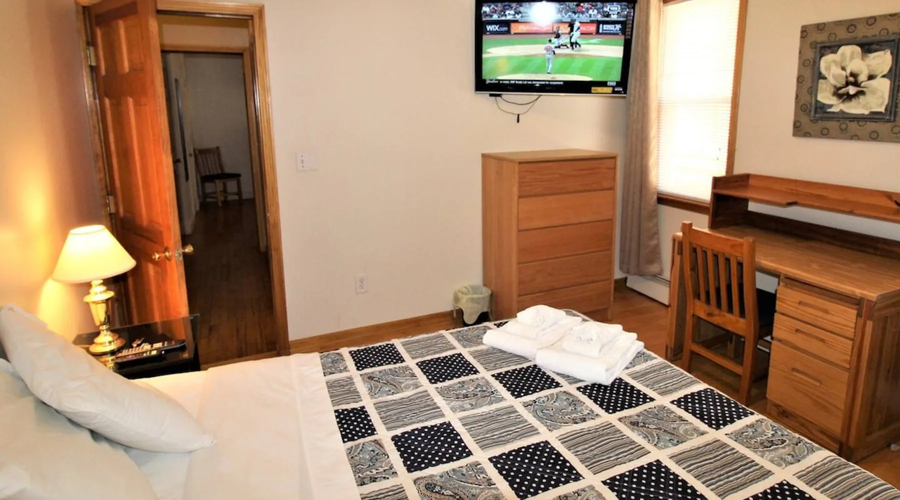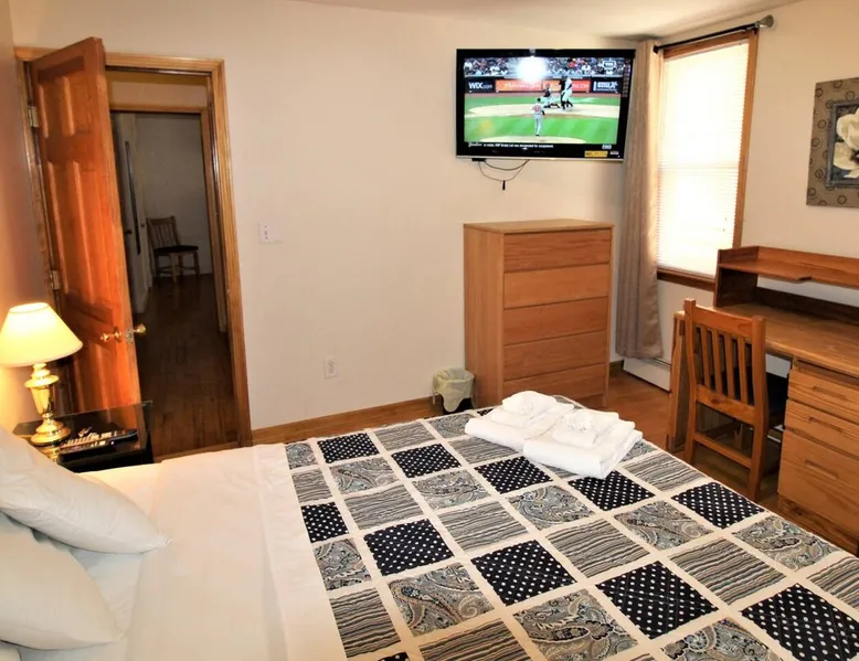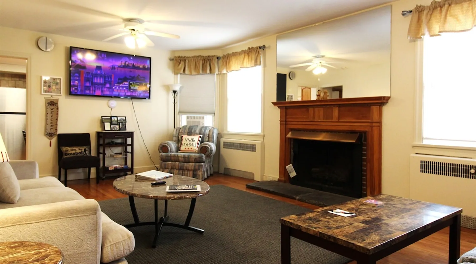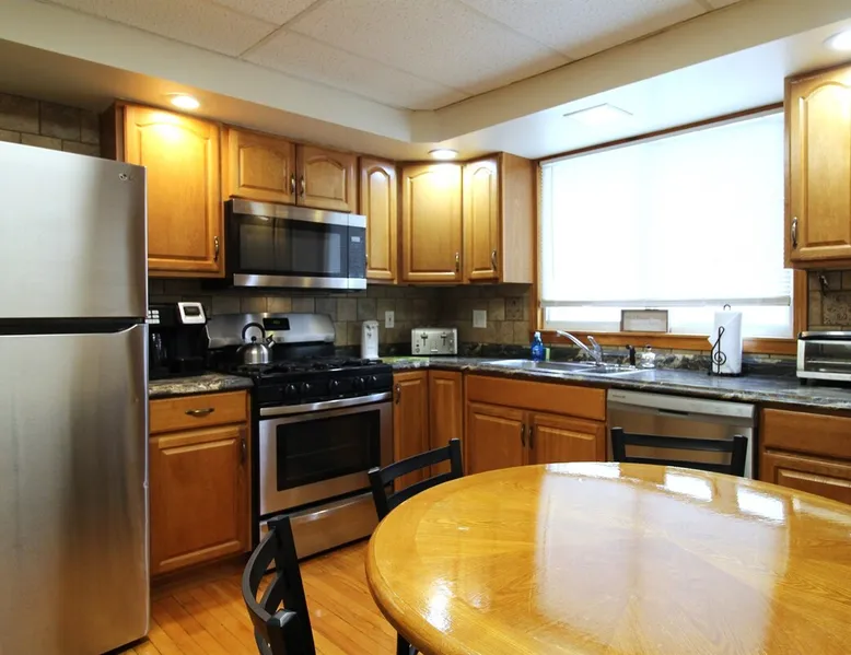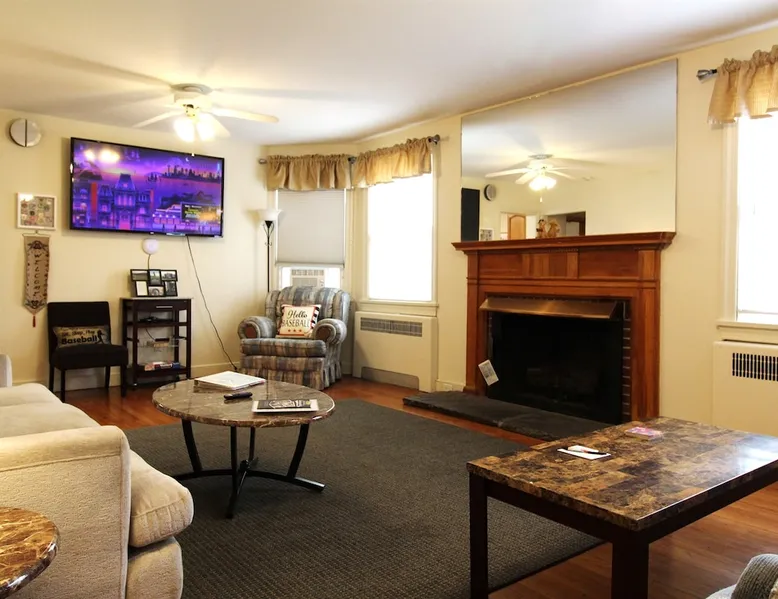 Elm Street Triple Play & Double Play units are in a spacious home offering 5 different private apartments. Triple Play #1 is a 1st floor apartment featuring 3 bedrooms & 1 bath, just 3.2 miles to Cooperstown All-Star Village and 18 miles to Cooperstown Dreams Park. The inviting wrap around covered porch is the perfect place to unwind after a long day at the ballpark. Guests enjoy relaxing in the extensive patio area in the rear, complete with gas grills and plenty of outdoor dining area. The space Centrally located, the Triple Play #1 is: • 3.2 miles to Cooperstown All Star Village • 17.7 miles to Cooperstown Dreams Park • 21.7 miles to National Baseball Hall of Fame, Cooperstown The eat-in kitchen features a gas range, microwave, dishwasher, refrigerator with automatic ice maker, and an updated tiled backsplash. There is a combination K-cup/pot coffee brewer, a blender, and toaster. There are 4 flat screen smart Roku TV's in this unit- a 55" Smart Roku TV in the living room with DVD player, and a 43" (or larger) flat screen Roku TV in every bedroom. There is an on-site, shared laundry facility, and a shared game room with a foosball table, ping pong table and large flat screen Roku TV. There is ample off-street parking, as well as high speed wireless internet (Wi-Fi) for all the units. Guest access Guests have a private entrance to their unit, private living space, kitchen, bedrooms and bathroom, but there are 4 other units within the same complex. The front porch, back patio, laundry room and game room are shared with the all guests in the buildings. Other things to note There are 4 other apartments available in this building: Double Play #1: 2 bedrooms/1 bathroom, first floor Double Play #2: 3 bedrooms/1 bathroom, second floor Triple Play #2L: 1 bedroom/1 bathroom, second floor Triple Play #2R: 3 bedrooms/1 bathroom, second floor For large groups, you can rent all five apartments (if available) to have 12 bedrooms and 5 bathrooms that will sleep 24. This is a wonderful opportunity for different families to be able to stay all together at one location yet have the privacy they need! Please contact us if you are interested in renting all the units for a larger group accommodation, or visit our Profile to see all our available properties.