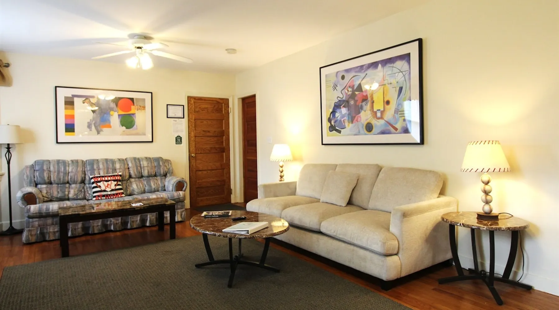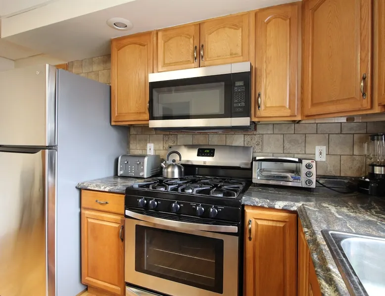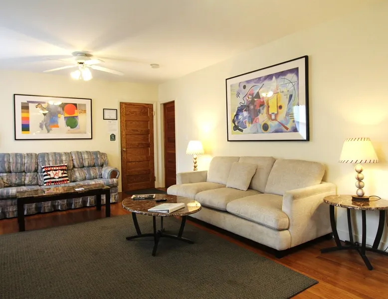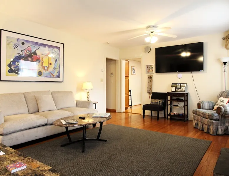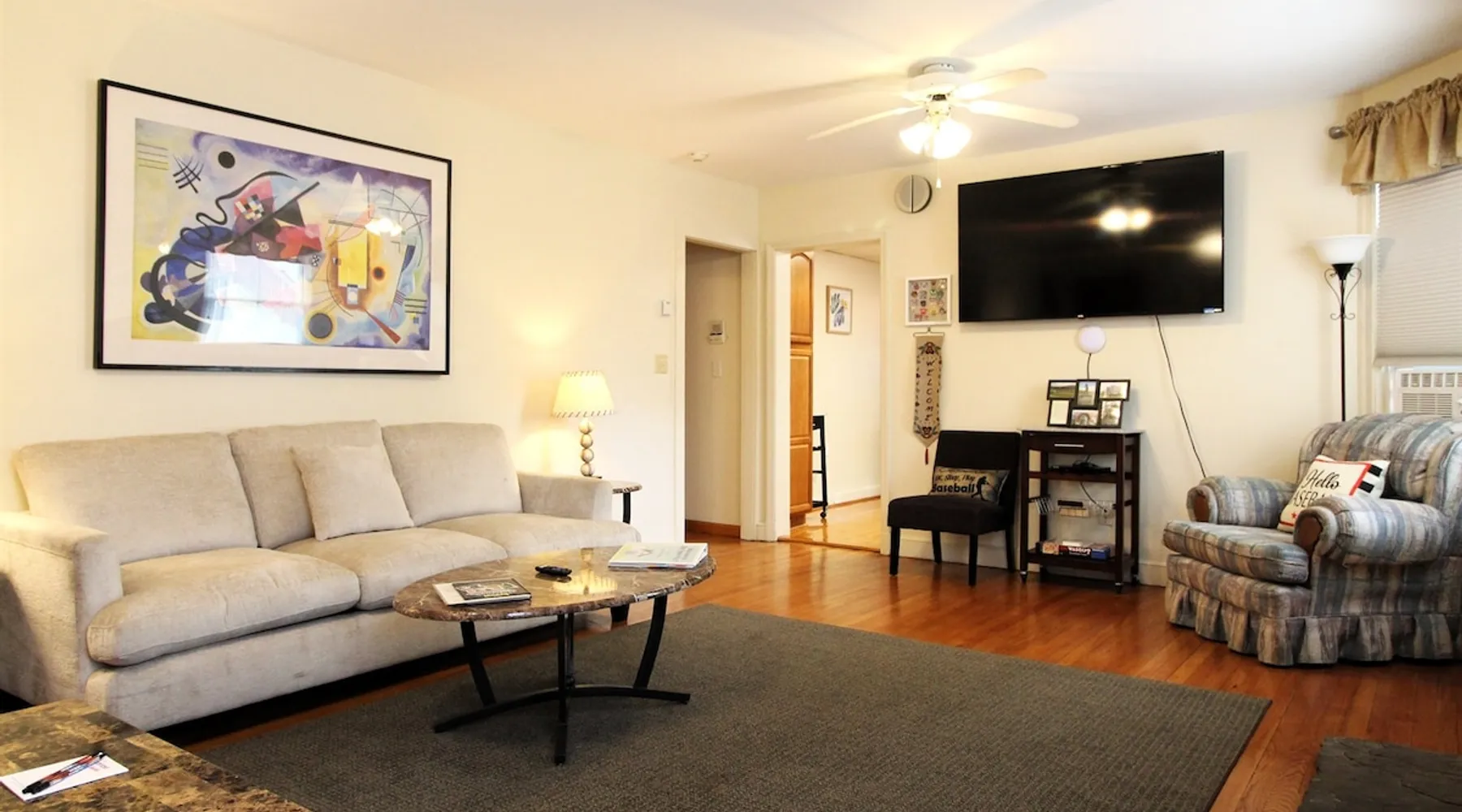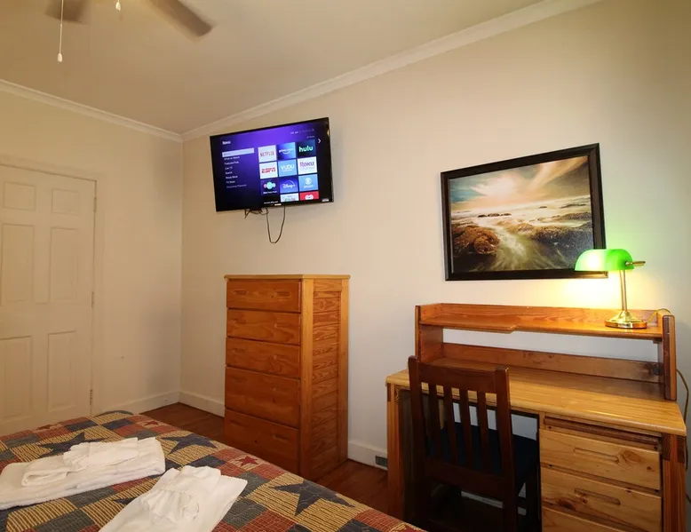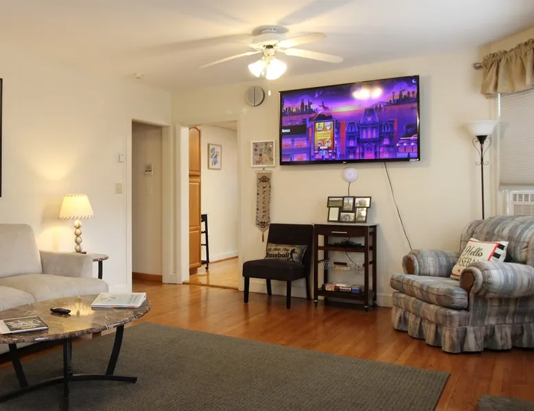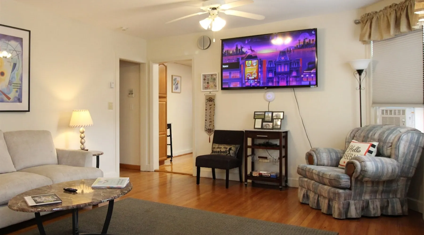Elm Street Triple Play & Double Play units are in a spacious home offering 5 different private apartments. Triple Play #1 is a 1st floor apartment featuring 3 bedrooms & 1 bath, just 3.2 miles to Cooperstown All-Star Village and 18 miles to Cooperstown Dreams Park. The inviting wrap around covered porch is the perfect place to unwind after a long day at the ballpark. Guests enjoy relaxing in the extensive patio area in the rear, complete with gas grills and plenty of outdoor dining area. The space Centrally located, the Triple Play #1 is: • 3.2 miles to Cooperstown All Star Village • 17.7 miles to Cooperstown Dreams Park • 21.7 miles to National Baseball Hall of Fame, Cooperstown The eat-in kitchen features a gas range, microwave, dishwasher, refrigerator with automatic ice maker, and an updated tiled backsplash. There is a combination K-cup/pot coffee brewer, a blender, and toaster. There are 4 flat screen smart Roku TV's in this unit- a 55" Smart Roku TV in the living room with DVD player, and a 43" (or larger) flat screen Roku TV in every bedroom. There is an on-site, shared laundry facility, and a shared game room with a foosball table, ping pong table and large flat screen Roku TV. There is ample off-street parking, as well as high speed wireless internet (Wi-Fi) for all the units. Guest access Guests have a private entrance to their unit, private living space, kitchen, bedrooms and bathroom, but there are 4 other units within the same complex. The front porch, back patio, laundry room and game room are shared with the all guests in the buildings. Other things to note There are 4 other apartments available in this building: Double Play #1: 2 bedrooms/1 bathroom, first floor Double Play #2: 3 bedrooms/1 bathroom, second floor Triple Play #2L: 1 bedroom/1 bathroom, second floor Triple Play #2R: 3 bedrooms/1 bathroom, second floor For large groups, you can rent all five apartments (if available) to have 12 bedrooms and 5 bathrooms that will sleep 24. This is a wonderful opportunity for different families to be able to stay all together at one location yet have the privacy they need! Please contact us if you are interested in renting all the units for a larger group accommodation, or visit our Profile to see all our available properties.