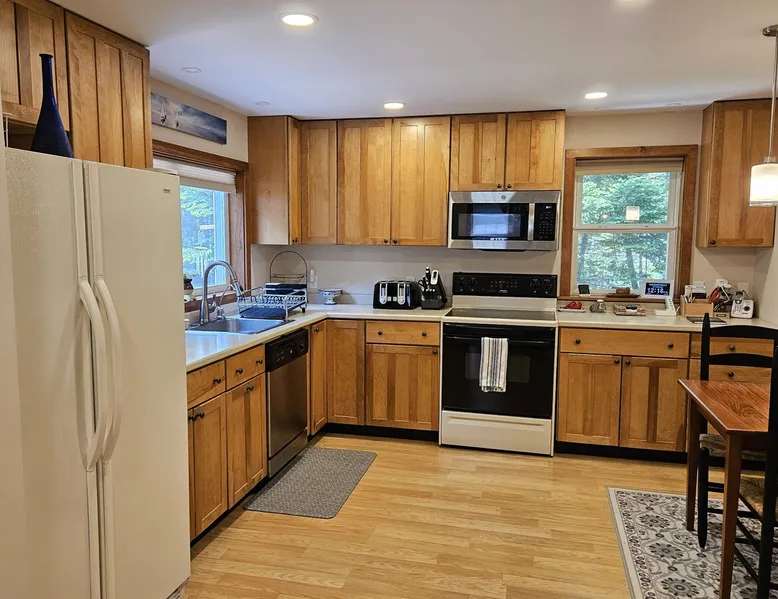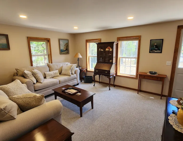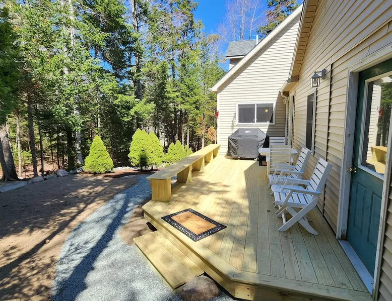 Welcome to Ridge Escape on the Quietside of MDI by Acadia National Park, your perfect vacation home by the town of Southwest Harbor, minutes away from Acadia National Park. This spacious and beautifully appointed 3BR with AC, 2-BA property is nestled in a peaceful and secluded area, offering the ultimate in relaxation and tranquility. Step inside and you'll immediately feel at home in this comfortable, bright and airy space. Plenty of room for everyone to relax after a busy day exploring. The space Ridge Escape, now with air-conditioned bedrooms. Your ideal vacation home situated on the ridge above the charming town of Southwest Harbor, mere minutes from Acadia National Park. This spacious and exquisitely appointed 3-bedroom, 2-bathroom property is nestled in a serene neighborhood setting, promising the ultimate in relaxation and tranquility. Upon entering, you'll immediately feel at ease in the bright and airy living room, complete with plush sofas, cozy armchairs, and a flat-screen TV. The fully equipped kitchen is a chef's delight, boasting all the modern appliances The adjacent dining area offers ample seating, perfect for hosting family meals or entertaining guests. Each of the three air-conditioned bedrooms is tastefully adorned and provides ample space to unwind after a day of adventure. The first bedroom features a luxurious king-sized bed, while the second offers a queen, and the third boasts two twin beds, all outfitted with high-quality linens and sumptuous pillows. Both bathrooms are elegantly appointed with contemporary fixtures and plenty of plush towels. Step outside onto the deck and immerse yourself in the serene woodland surroundings. Complete with a grill and ample outdoor seating, the deck serves as an idyllic spot to savor a meal with loved ones while soaking in the natural beauty of the area. Conveniently located just minutes from Acadia National Park, this vacation rental serves as the perfect home base for outdoor enthusiasts eager to explore the myriad hiking trails, scenic drives, and natural marvels of the region. And when it's time to unwind, Ridge Escape offers a blissful retreat, equipped with all the modern amenities and comforts needed to rejuvenate and recharge. Book your stay at Ridge Escape today and embark on an unforgettable journey, creating cherished memories with your loved ones in one of the world's most beautiful and tranquil locations. Guest access The entire home and use of garage for storage of bike or kayaks.