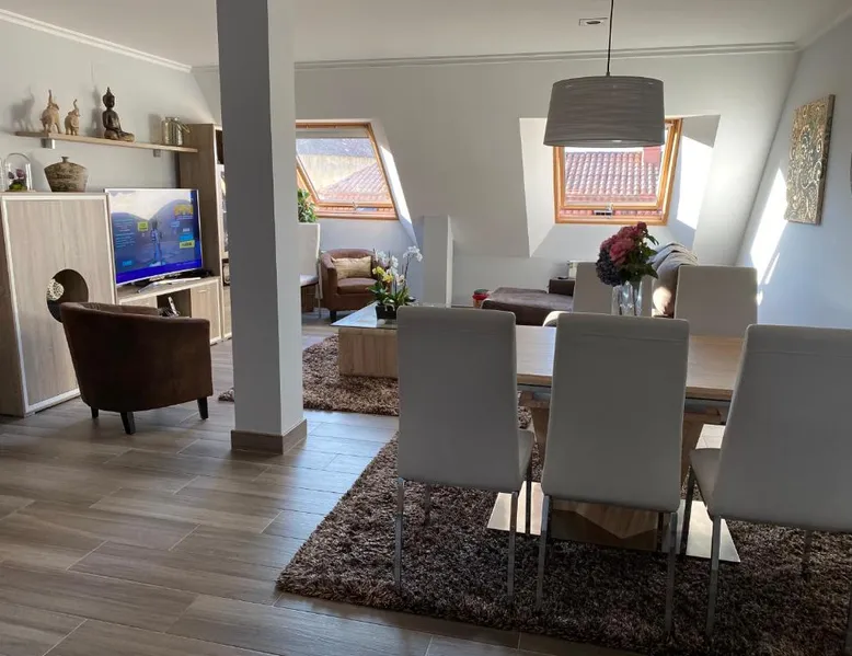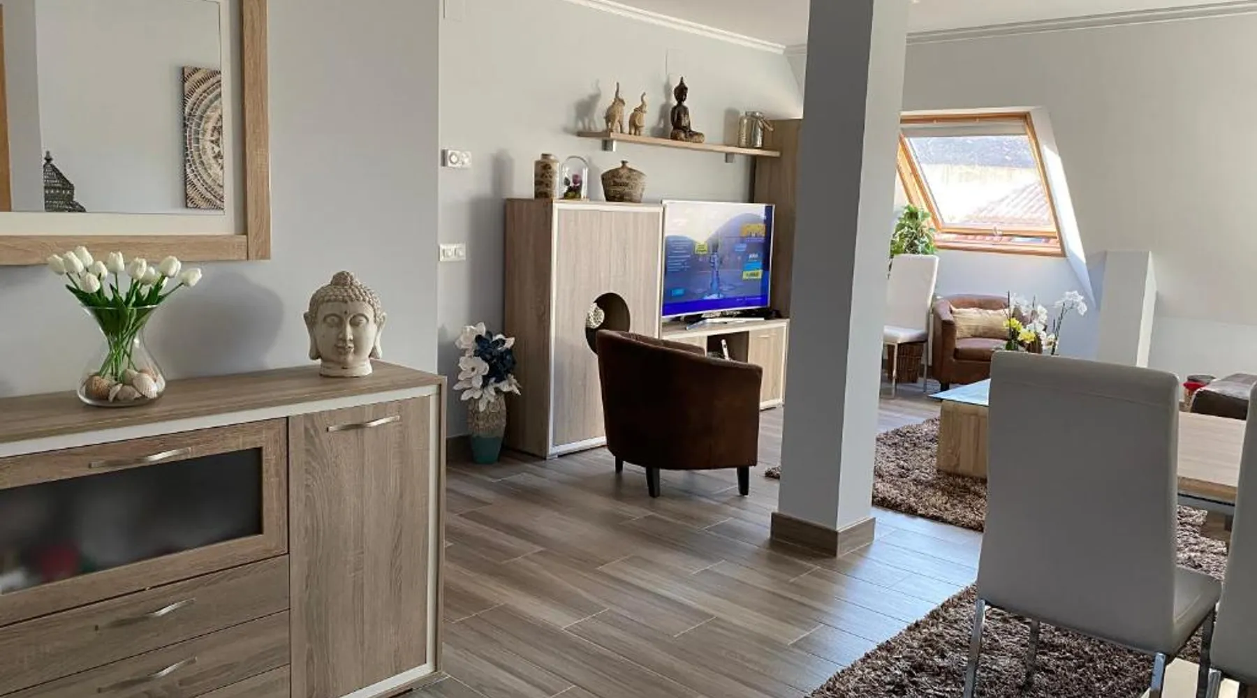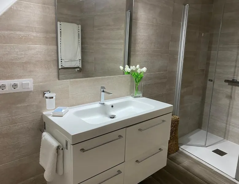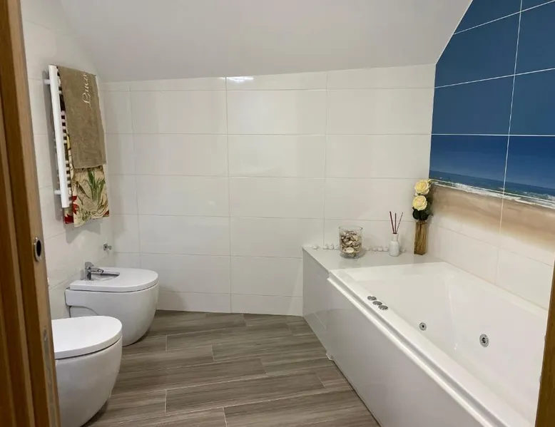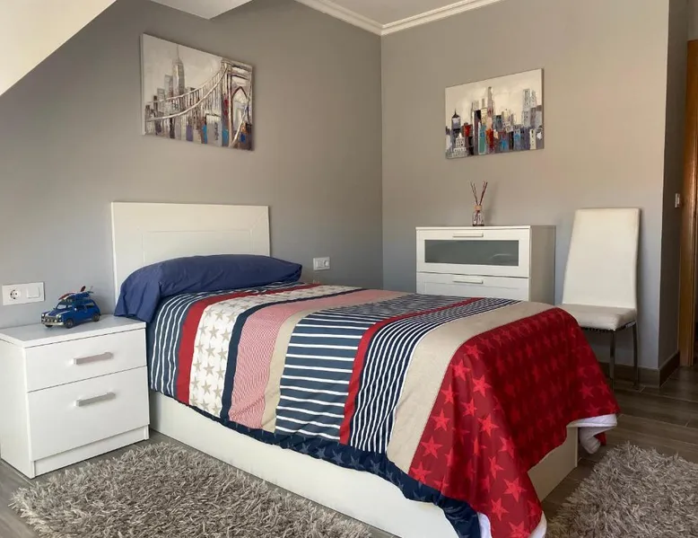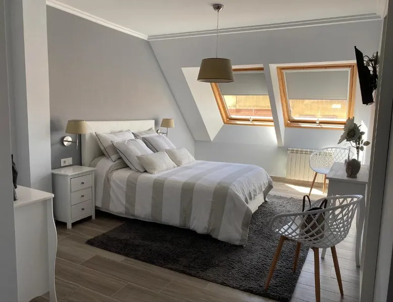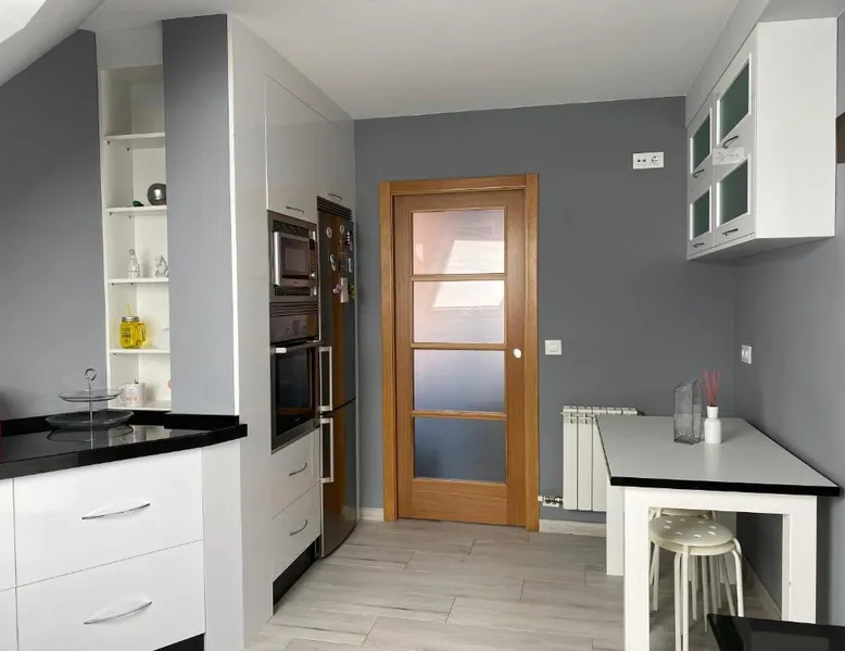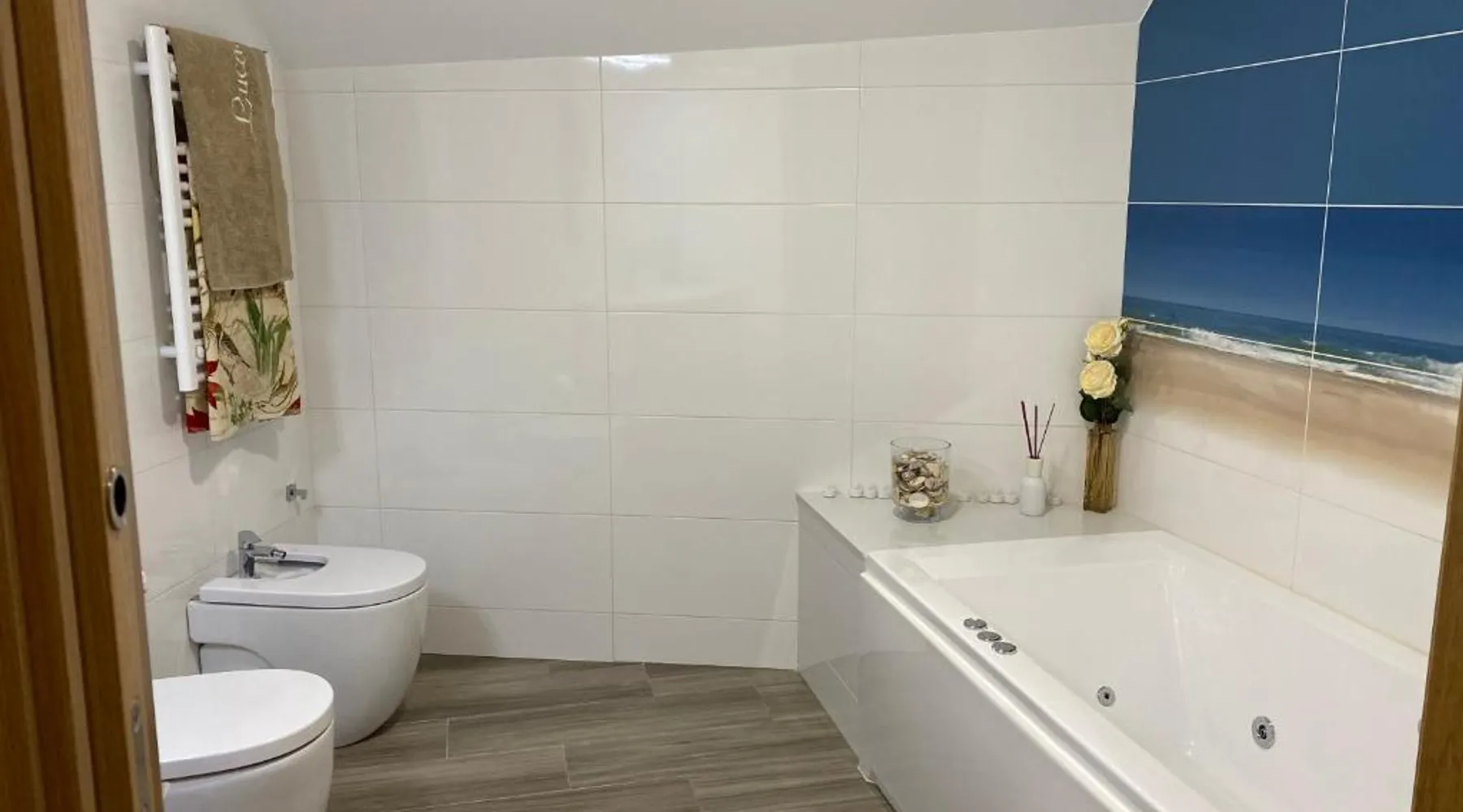 Spacious Accommodations: Ático de Lujo en Marín in Marín offers four bedrooms and two bathrooms. The apartment includes a living room and family rooms, ensuring comfort for all guests. Modern Amenities: Guests can enjoy a hot tub, elevator, and TV. The property provides a relaxing environment with all necessary facilities for a pleasant stay. Prime Location: Portocelo Beach is a 15-minute walk away. Vigo Airport is 22 mi from the apartment. Nearby attractions include Pontevedra Railway Station (5 mi) and Teatro Principal (4.3 mi). The hot tub is the standout feature of this apartment. This apartment features a flat-screen TV. The unit has 5 beds.