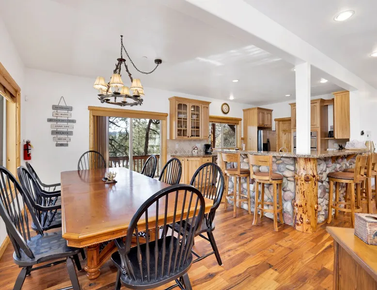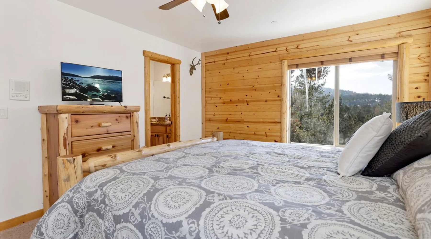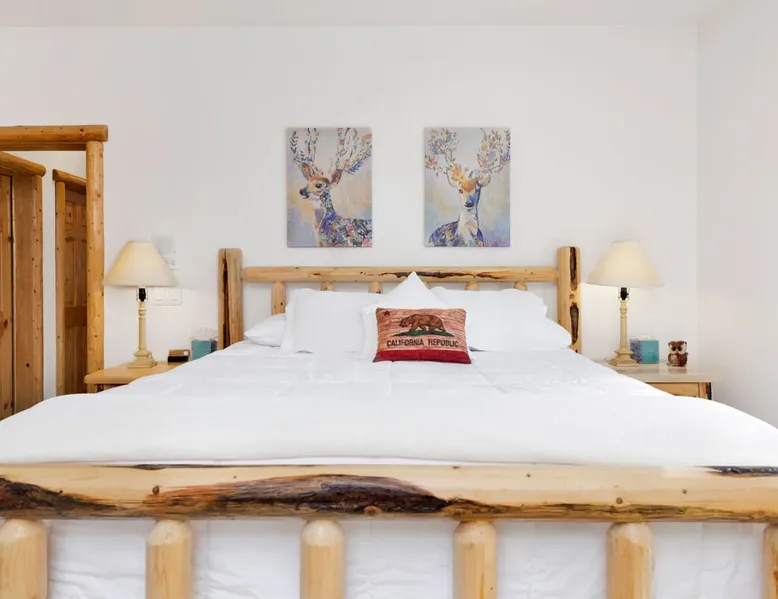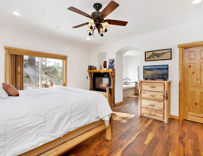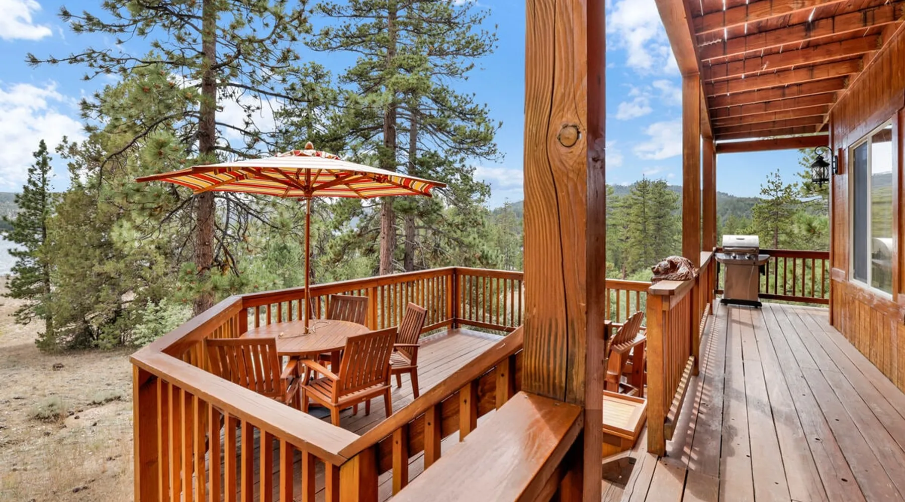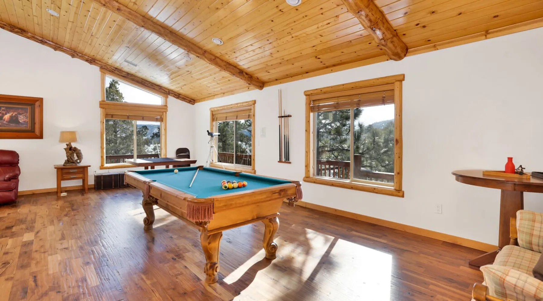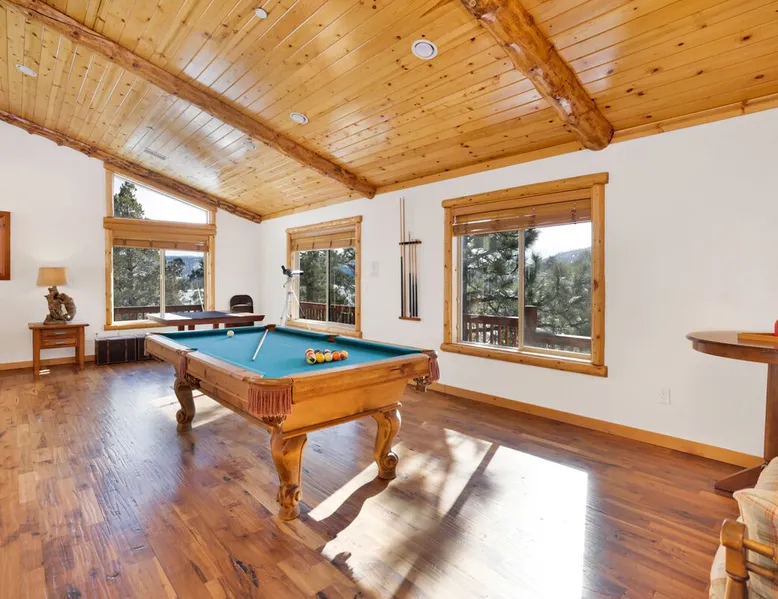 Perfect for a group of friends, family vacation, or corporate retreat our Cozy Lakeview Hideaway is an incredible Fawnskin custom log cabin boasting all that a group could need to enjoy a comfortable and relaxing vacation under soaring pine trees and shooting stars no matter the season you choose to visit Big Bear. You will love making memories together at our custom chalet home- you truly have it all right here at your fingertips- come experience this amazing chalet for yourselves today! The space Cozy Lakeview Hideaway in Fawnskin | Amazing Views Welcome to Flicker Lake View Log Cabin!! Perfect for a group of friends or family looking to experience the very best of Big Bear within our spectacular two story log cabin retreat which sits just above the lake in Fawnskin which is a super quiet and secluded neighborhood yet is still under a quick ten minute drive to local activities. Your group will love and appreciate the modern comforts and necessities from home along with spectacular lake views, log accents, modern amenities, and a fabulous location to enjoy your time together. Come experience this amazing home for your next vacation! Enter your chalet where you are greeted with the immediate feeling that you have your own private mountain lodge to yourselves for your visit with gorgeous hardwood floors, massive cathedral ceilings and walls draped in wood accents, and big open windows to take in the great views of the lake or watch the snow falling outside. Snuggle up on the oversized plush couches together as you warm your toes in front of the toasty wood burning fireplace and enjoy a movie together on the flat screen Streaming TV with complimentary hi speed WIFI internet provided for your enjoyment. (Guests must have their own accounts to enjoy Streaming Services) The open floor plan flows seamlessly to the equipped dining room and gourmet kitchen which is perfect for entertaining a dinner party or hosting your next family holiday feast boasting all that you need to whip up your home cooked meals including cookware, utensils, appliances and even a dishwasher to ensure your cleanup is an absolute breeze here. Rough edge granite counter tops [air with upscale remodeled furnishings to ensure your group has an amazing time here in the mountains, even a wet bar for your adult beverages is on hand. Four spacious sleeping quarters and 3.5 bathrooms are easily accessible for your group on both levels of your fully furnished and cozy chalet and includes a jetted spa tub in the primary suite where you can soak your aching muscles from the day on the slopes- each room is made up for your visit with Streaming TVs, big open windows, warm linens, blankets, pillows, and fresh shower towels for your group when you arrive for your vacation stay. You will love having a separate laundry room right on site with a washer and dryer for those wet snow clothes or extended visits to the mountains and this is also a great space to store your ski gear or lake toys. For added entertainment head up to the game room loft which is packed with endless hours of fun for you to enjoy your time together including air-hockey and a pool table, darts, and even board games to ensure you'll never want to leave your chalet. Venture outside to experience the great outdoors within a full alpine atmosphere as your log cabin chalet sits atop a lakeside hill with endless views, ample flat driveway parking, and a wonderful year round location no matter the season you choose to visit. Flicker Lake View Log Cabin lives up to it's name and is a spectacular home away from home for any group no matter the season- come experience this wonderful home today! Sleeping Arrangements: Bedroom 1: King Bed, Gas Fireplace, Streaming TV, Deck Access, Private Bath w/ Jetted Spa Tub- Downstairs Entry Level Bedroom 2: Queen Bed, Streaming TV- Upstairs 2nd Level Bedroom 3: King Bed, Streaming TV- Upstairs 2nd Level Bedroom 4: Twin/Full Bunk + Full Bed- Upstairs 2nd Level Bathroom Arrangements: Hallway Half Bath- Downstairs Entry Level Private Full Bath w/ Jetted Spa Tub- Bedroom 1- Downstairs Entry Level Jack/Jill Full Bath- Bedroom 2 & 3- Upstairs 2nd Level Hallway Full Bath- Upstairs 2nd Level -Sleeps 10 -2 Cars Driveway, 2 Cars Garage Parking -2 Pets Welcome w/ Additional Fee -3,528 Total Square Feet Registration Details CESTRP-2023-00509