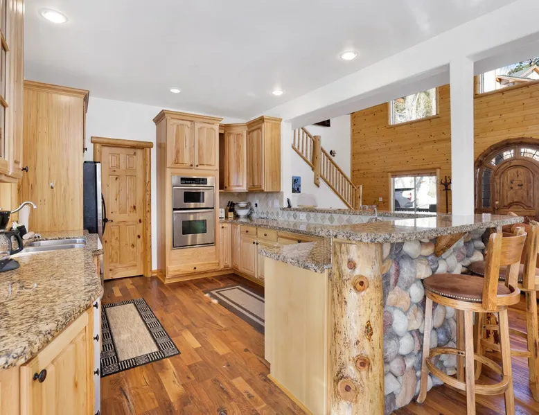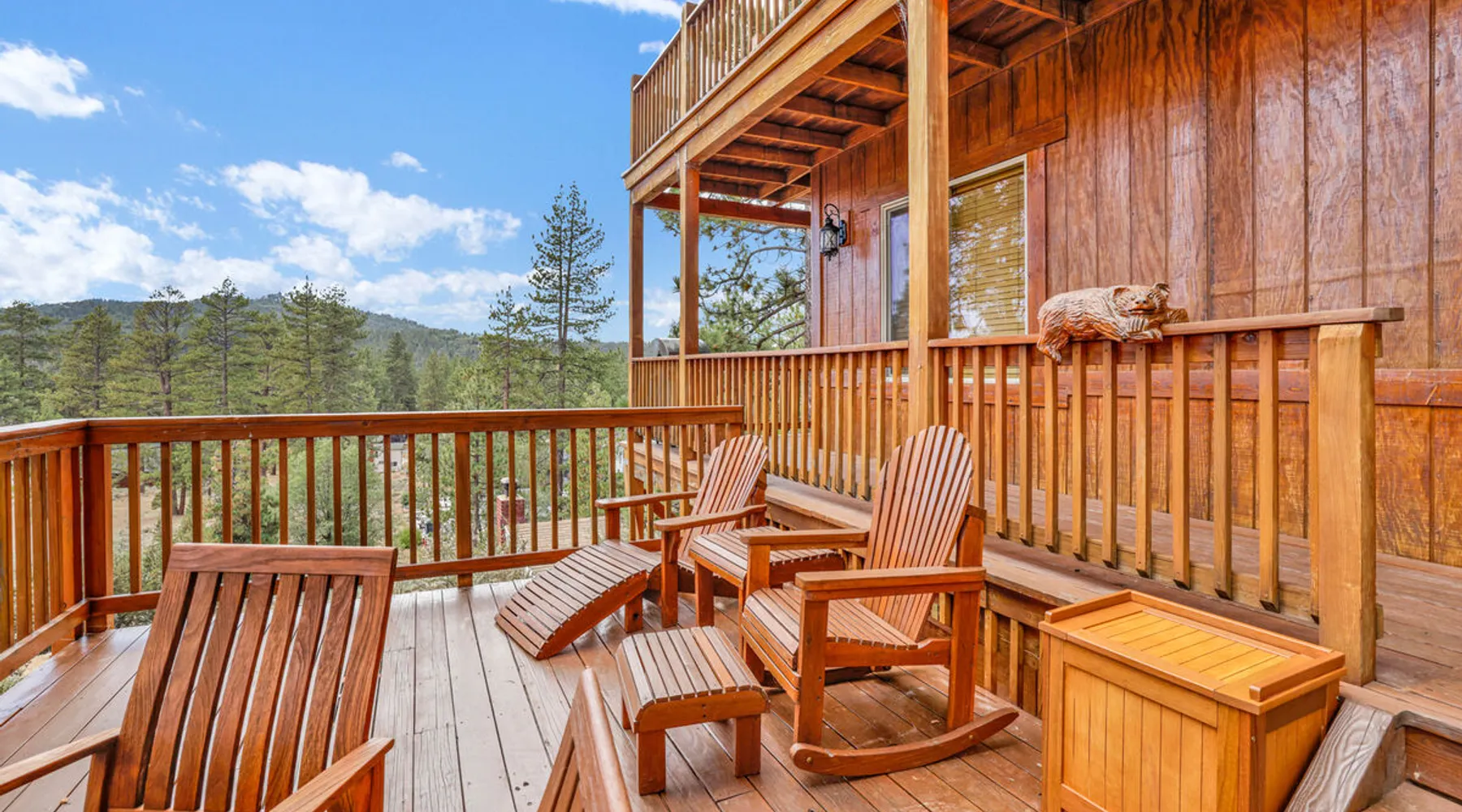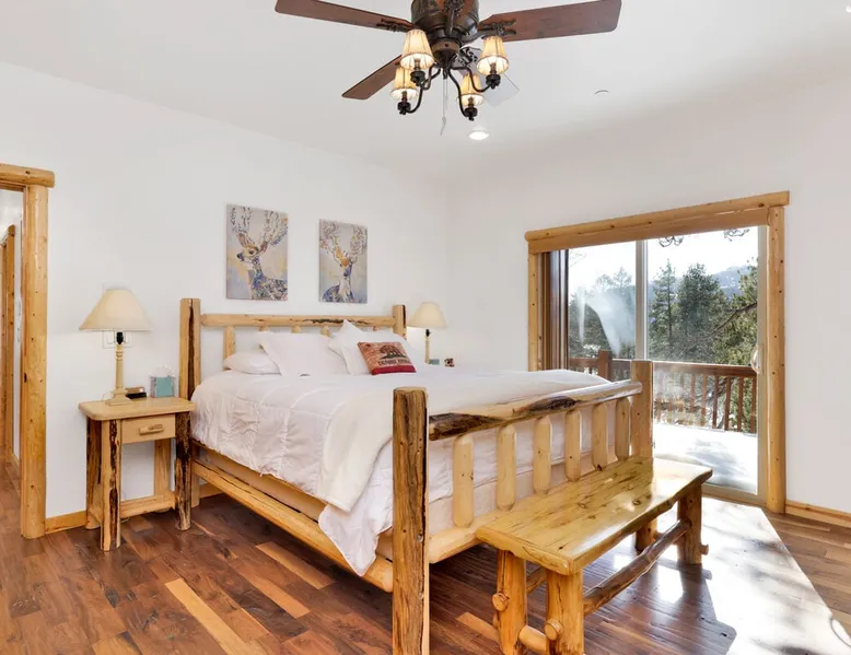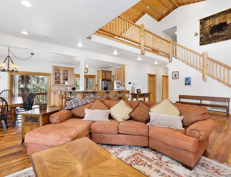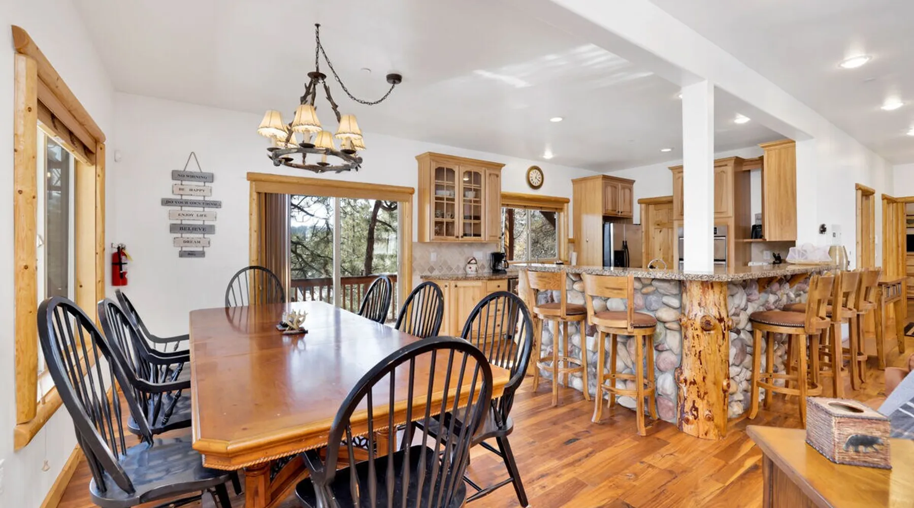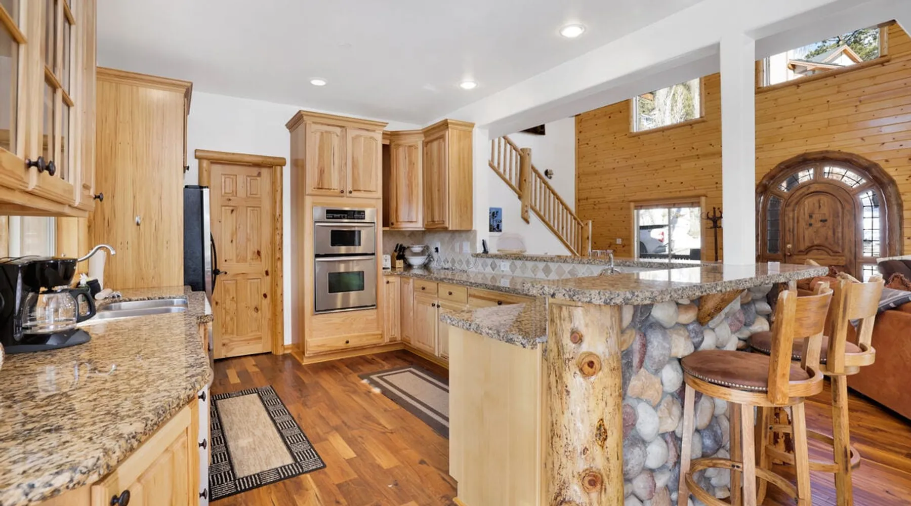 Perfect for a group of friends, family vacation, or corporate retreat our Cozy Lakeview Hideaway is an incredible Fawnskin custom log cabin boasting all that a group could need to enjoy a comfortable and relaxing vacation under soaring pine trees and shooting stars no matter the season you choose to visit Big Bear. You will love making memories together at our custom chalet home- you truly have it all right here at your fingertips- come experience this amazing chalet for yourselves today! The space Cozy Lakeview Hideaway in Fawnskin | Amazing Views Welcome to Flicker Lake View Log Cabin!! Perfect for a group of friends or family looking to experience the very best of Big Bear within our spectacular two story log cabin retreat which sits just above the lake in Fawnskin which is a super quiet and secluded neighborhood yet is still under a quick ten minute drive to local activities. Your group will love and appreciate the modern comforts and necessities from home along with spectacular lake views, log accents, modern amenities, and a fabulous location to enjoy your time together. Come experience this amazing home for your next vacation! Enter your chalet where you are greeted with the immediate feeling that you have your own private mountain lodge to yourselves for your visit with gorgeous hardwood floors, massive cathedral ceilings and walls draped in wood accents, and big open windows to take in the great views of the lake or watch the snow falling outside. Snuggle up on the oversized plush couches together as you warm your toes in front of the toasty wood burning fireplace and enjoy a movie together on the flat screen Streaming TV with complimentary hi speed WIFI internet provided for your enjoyment. (Guests must have their own accounts to enjoy Streaming Services) The open floor plan flows seamlessly to the equipped dining room and gourmet kitchen which is perfect for entertaining a dinner party or hosting your next family holiday feast boasting all that you need to whip up your home cooked meals including cookware, utensils, appliances and even a dishwasher to ensure your cleanup is an absolute breeze here. Rough edge granite counter tops [air with upscale remodeled furnishings to ensure your group has an amazing time here in the mountains, even a wet bar for your adult beverages is on hand. Four spacious sleeping quarters and 3.5 bathrooms are easily accessible for your group on both levels of your fully furnished and cozy chalet and includes a jetted spa tub in the primary suite where you can soak your aching muscles from the day on the slopes- each room is made up for your visit with Streaming TVs, big open windows, warm linens, blankets, pillows, and fresh shower towels for your group when you arrive for your vacation stay. You will love having a separate laundry room right on site with a washer and dryer for those wet snow clothes or extended visits to the mountains and this is also a great space to store your ski gear or lake toys. For added entertainment head up to the game room loft which is packed with endless hours of fun for you to enjoy your time together including air-hockey and a pool table, darts, and even board games to ensure you'll never want to leave your chalet. Venture outside to experience the great outdoors within a full alpine atmosphere as your log cabin chalet sits atop a lakeside hill with endless views, ample flat driveway parking, and a wonderful year round location no matter the season you choose to visit. Flicker Lake View Log Cabin lives up to it's name and is a spectacular home away from home for any group no matter the season- come experience this wonderful home today! Sleeping Arrangements: Bedroom 1: King Bed, Gas Fireplace, Streaming TV, Deck Access, Private Bath w/ Jetted Spa Tub- Downstairs Entry Level Bedroom 2: Queen Bed, Streaming TV- Upstairs 2nd Level Bedroom 3: King Bed, Streaming TV- Upstairs 2nd Level Bedroom 4: Twin/Full Bunk + Full Bed- Upstairs 2nd Level Bathroom Arrangements: Hallway Half Bath- Downstairs Entry Level Private Full Bath w/ Jetted Spa Tub- Bedroom 1- Downstairs Entry Level Jack/Jill Full Bath- Bedroom 2 & 3- Upstairs 2nd Level Hallway Full Bath- Upstairs 2nd Level -Sleeps 10 -2 Cars Driveway, 2 Cars Garage Parking -2 Pets Welcome w/ Additional Fee -3,528 Total Square Feet Registration Details CESTRP-2023-00509