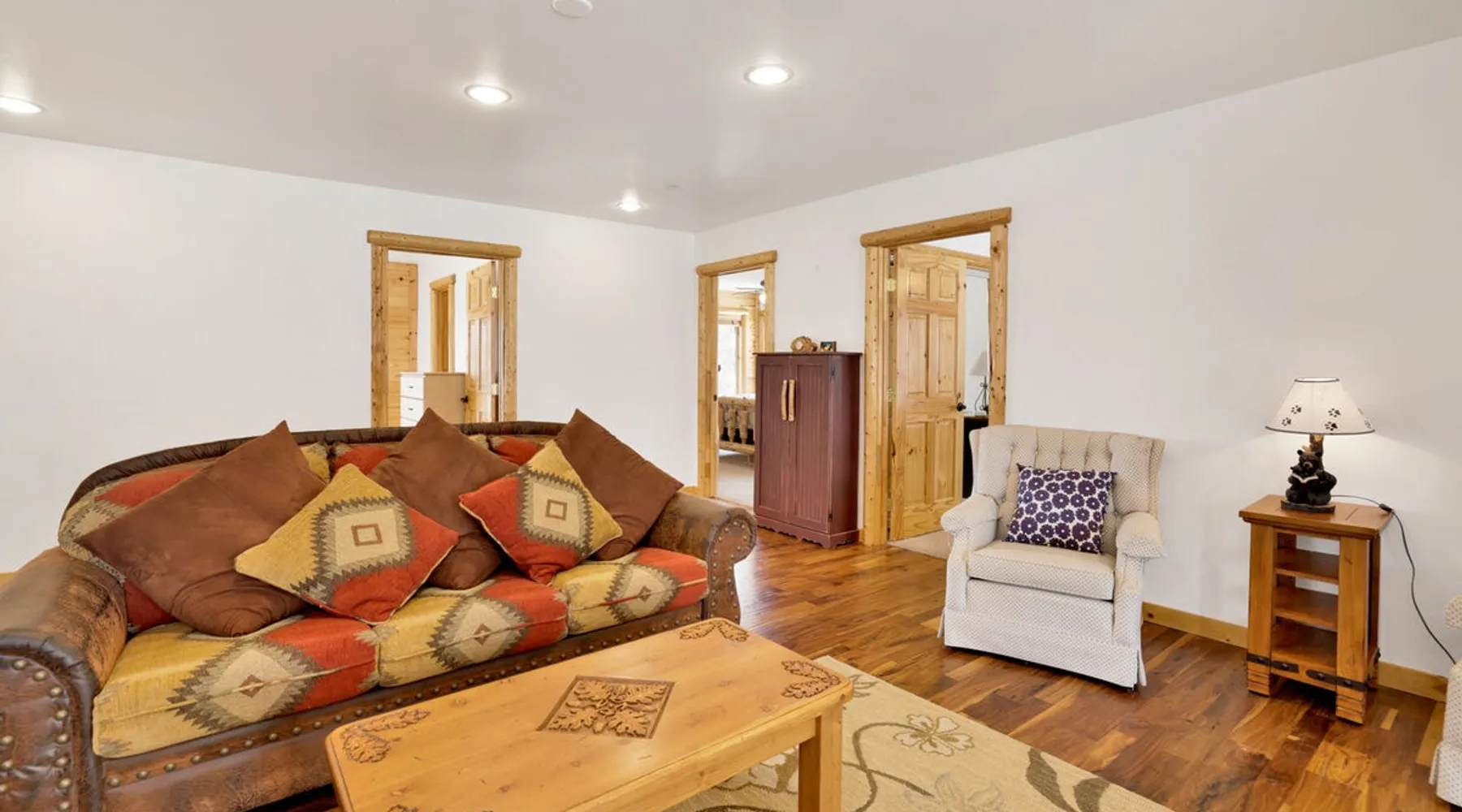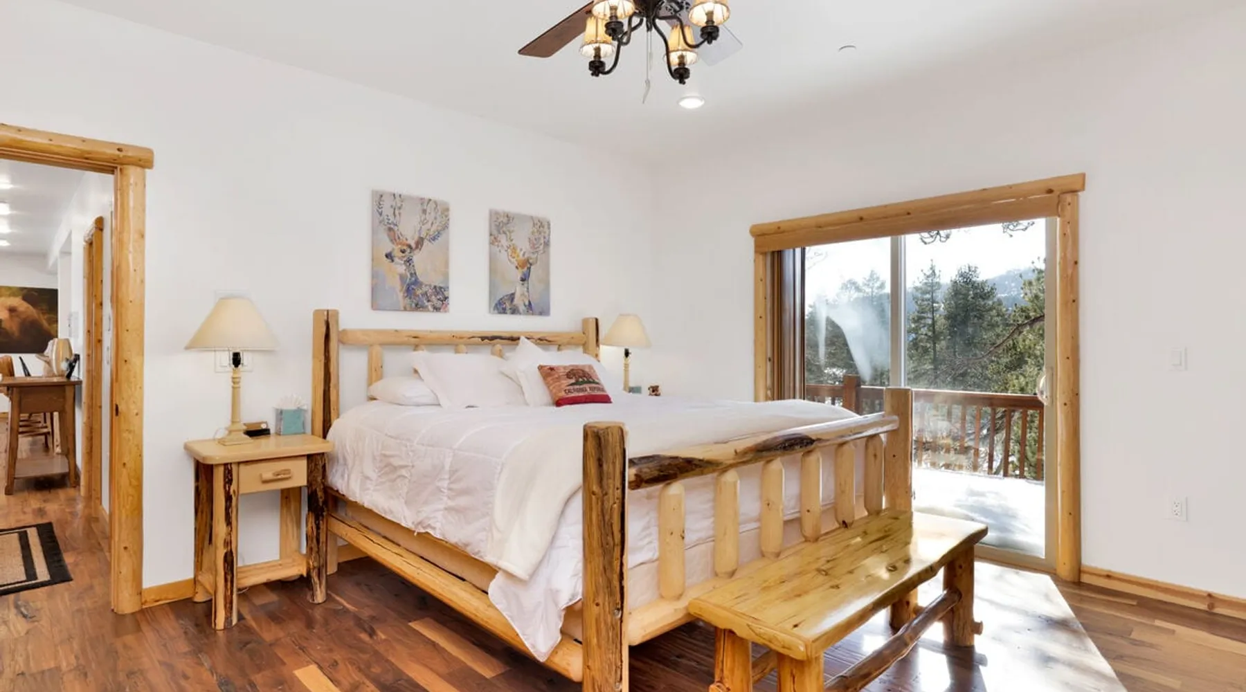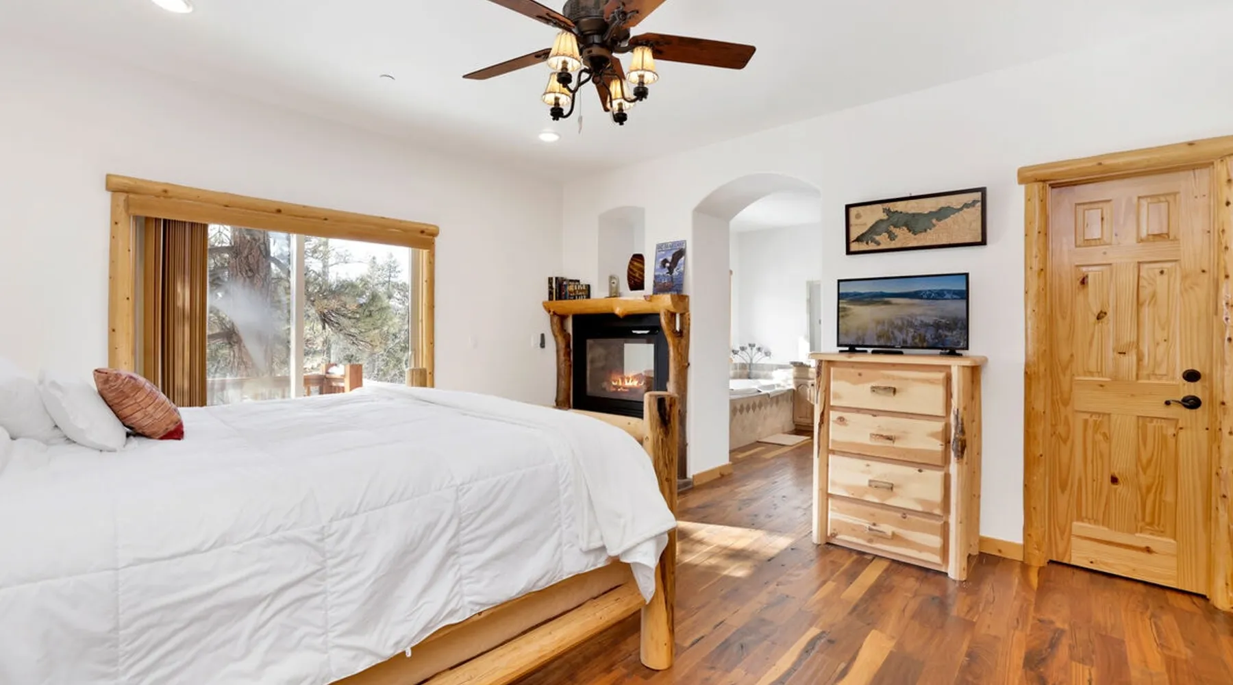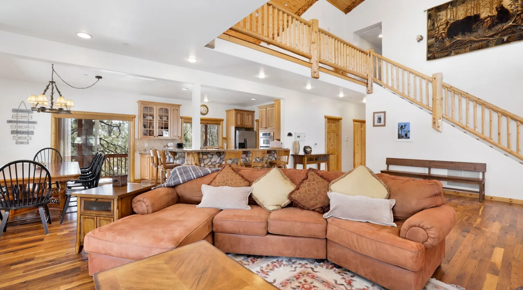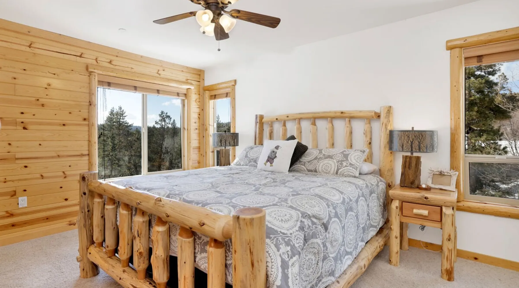 Perfect for a group of friends, family vacation, or corporate retreat our Cozy Lakeview Hideaway is an incredible Fawnskin custom log cabin boasting all that a group could need to enjoy a comfortable and relaxing vacation under soaring pine trees and shooting stars no matter the season you choose to visit Big Bear. You will love making memories together at our custom chalet home- you truly have it all right here at your fingertips- come experience this amazing chalet for yourselves today! The space Cozy Lakeview Hideaway in Fawnskin | Amazing Views Welcome to Flicker Lake View Log Cabin!! Perfect for a group of friends or family looking to experience the very best of Big Bear within our spectacular two story log cabin retreat which sits just above the lake in Fawnskin which is a super quiet and secluded neighborhood yet is still under a quick ten minute drive to local activities. Your group will love and appreciate the modern comforts and necessities from home along with spectacular lake views, log accents, modern amenities, and a fabulous location to enjoy your time together. Come experience this amazing home for your next vacation! Enter your chalet where you are greeted with the immediate feeling that you have your own private mountain lodge to yourselves for your visit with gorgeous hardwood floors, massive cathedral ceilings and walls draped in wood accents, and big open windows to take in the great views of the lake or watch the snow falling outside. Snuggle up on the oversized plush couches together as you warm your toes in front of the toasty wood burning fireplace and enjoy a movie together on the flat screen Streaming TV with complimentary hi speed WIFI internet provided for your enjoyment. (Guests must have their own accounts to enjoy Streaming Services) The open floor plan flows seamlessly to the equipped dining room and gourmet kitchen which is perfect for entertaining a dinner party or hosting your next family holiday feast boasting all that you need to whip up your home cooked meals including cookware, utensils, appliances and even a dishwasher to ensure your cleanup is an absolute breeze here. Rough edge granite counter tops [air with upscale remodeled furnishings to ensure your group has an amazing time here in the mountains, even a wet bar for your adult beverages is on hand. Four spacious sleeping quarters and 3.5 bathrooms are easily accessible for your group on both levels of your fully furnished and cozy chalet and includes a jetted spa tub in the primary suite where you can soak your aching muscles from the day on the slopes- each room is made up for your visit with Streaming TVs, big open windows, warm linens, blankets, pillows, and fresh shower towels for your group when you arrive for your vacation stay. You will love having a separate laundry room right on site with a washer and dryer for those wet snow clothes or extended visits to the mountains and this is also a great space to store your ski gear or lake toys. For added entertainment head up to the game room loft which is packed with endless hours of fun for you to enjoy your time together including air-hockey and a pool table, darts, and even board games to ensure you'll never want to leave your chalet. Venture outside to experience the great outdoors within a full alpine atmosphere as your log cabin chalet sits atop a lakeside hill with endless views, ample flat driveway parking, and a wonderful year round location no matter the season you choose to visit. Flicker Lake View Log Cabin lives up to it's name and is a spectacular home away from home for any group no matter the season- come experience this wonderful home today! Sleeping Arrangements: Bedroom 1: King Bed, Gas Fireplace, Streaming TV, Deck Access, Private Bath w/ Jetted Spa Tub- Downstairs Entry Level Bedroom 2: Queen Bed, Streaming TV- Upstairs 2nd Level Bedroom 3: King Bed, Streaming TV- Upstairs 2nd Level Bedroom 4: Twin/Full Bunk + Full Bed- Upstairs 2nd Level Bathroom Arrangements: Hallway Half Bath- Downstairs Entry Level Private Full Bath w/ Jetted Spa Tub- Bedroom 1- Downstairs Entry Level Jack/Jill Full Bath- Bedroom 2 & 3- Upstairs 2nd Level Hallway Full Bath- Upstairs 2nd Level -Sleeps 10 -2 Cars Driveway, 2 Cars Garage Parking -2 Pets Welcome w/ Additional Fee -3,528 Total Square Feet Registration Details CESTRP-2023-00509