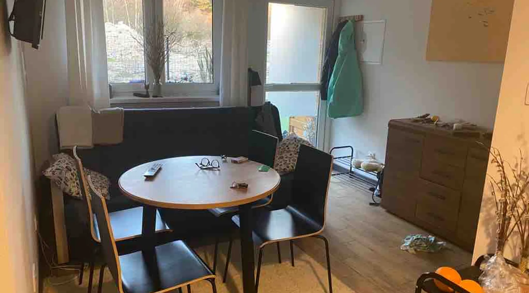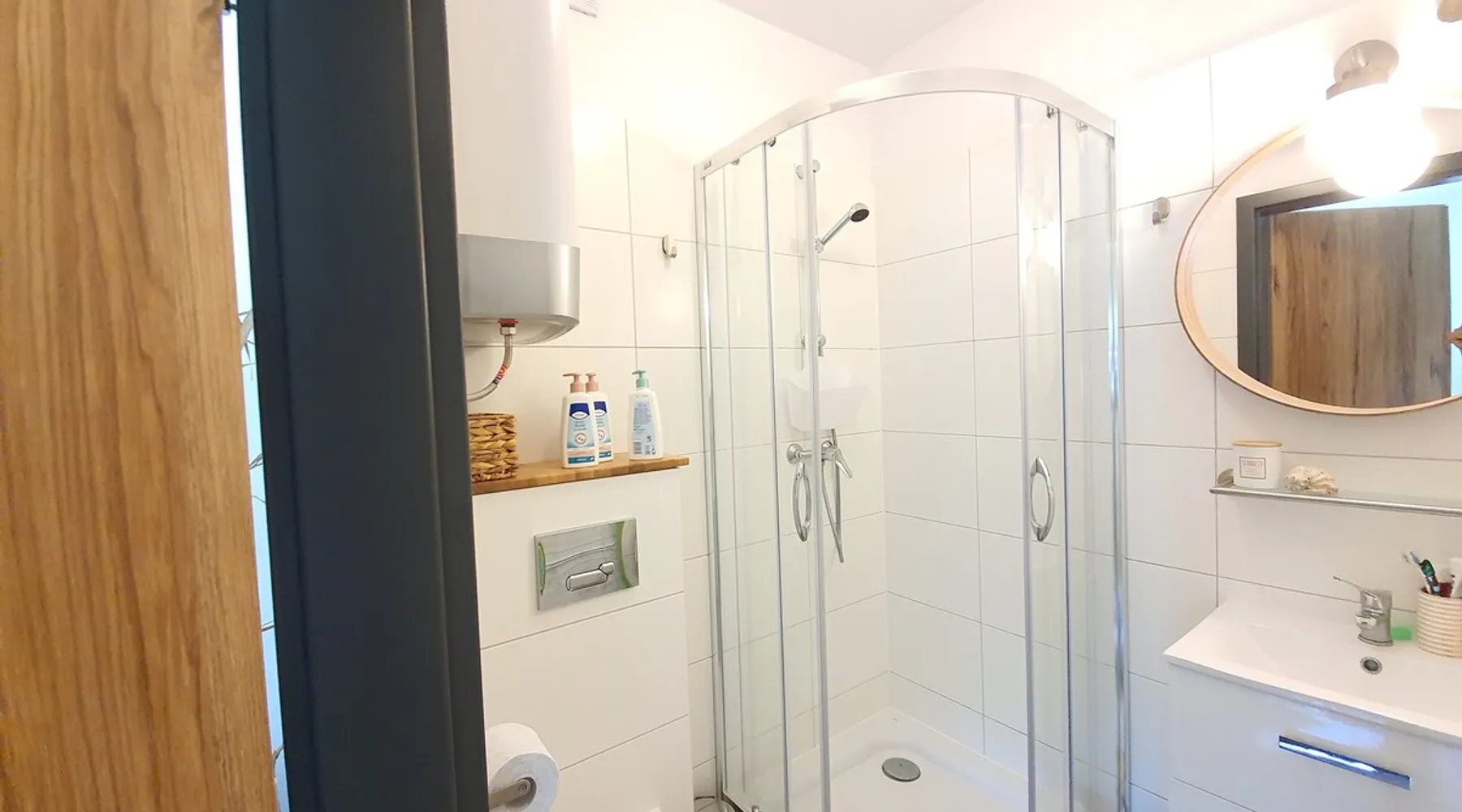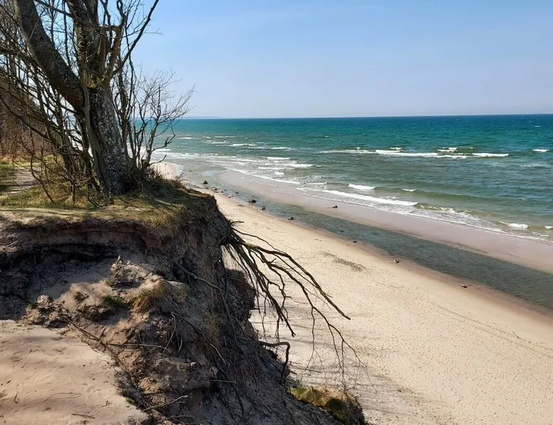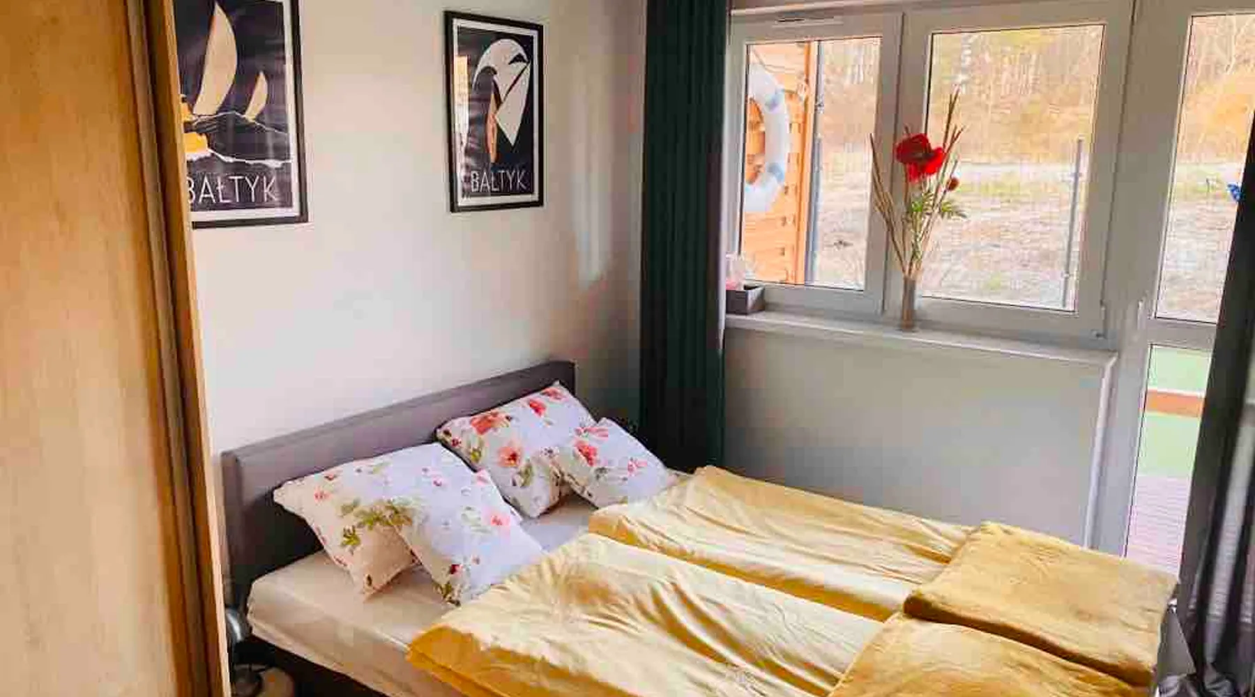 The apartment “At the cliff”in the non-commercial, small village of Dębina is about 350 meters from the sea, walking through the forest. It is located on the ground floor. Bedroom, living room, annex, bathroom, terrace,free parking and small playground - consistent with description and photos. The months to July and September guarantee peace, quiet, and harmony with nature in these beautiful neighborhoods. During the summer season (holidays) Dębina, they are very eager to visit families with children, enjoying the charms of the proximity of the Baltic Sea. I invite you. The space Bedroom: double bed, single bed, wardrobe, lamps, bookshelf for children. Living room, equipped kitchenette, round table, 4 chairs, sofa bed, TV. Bathroom: shower with shower, toilet, sink, hair dryer. Entrance from the small patio, ground floor. The whole with the terrace is 35 square meters. Guest access Guests have access to the entire apartment - 35 square meters with a terrace. Other things to note a parking space belonging to the apartment marked no. 14, as well as the number of the apartment.
