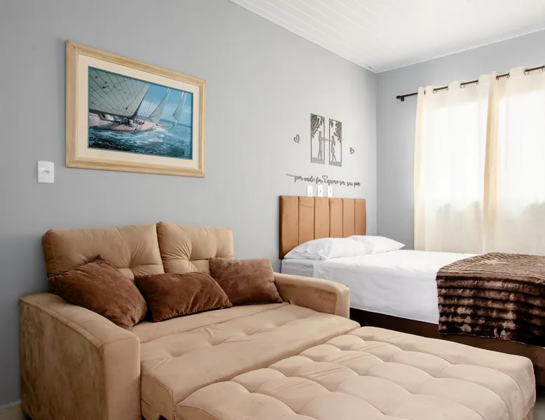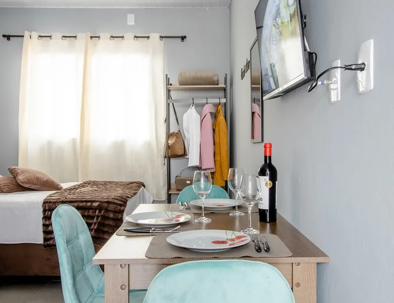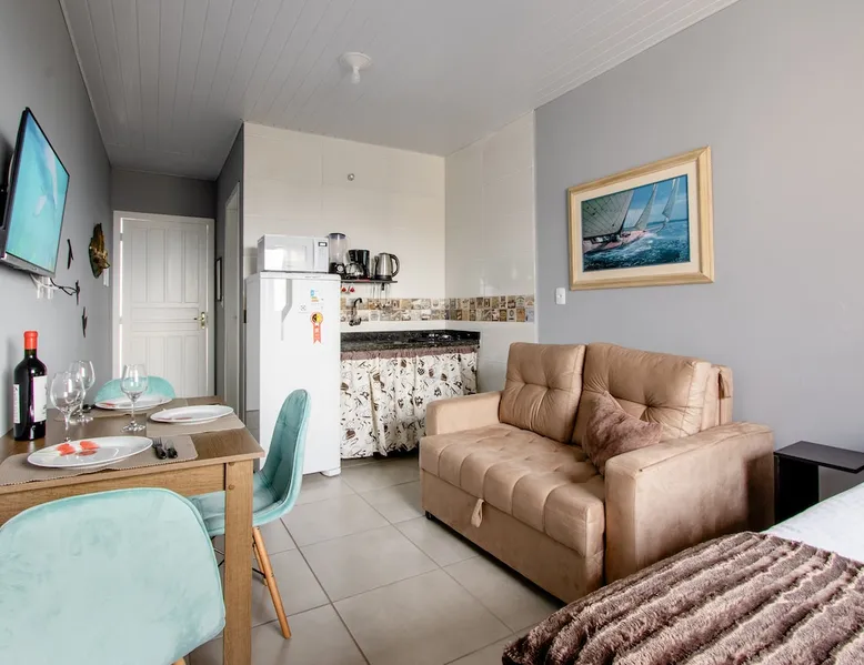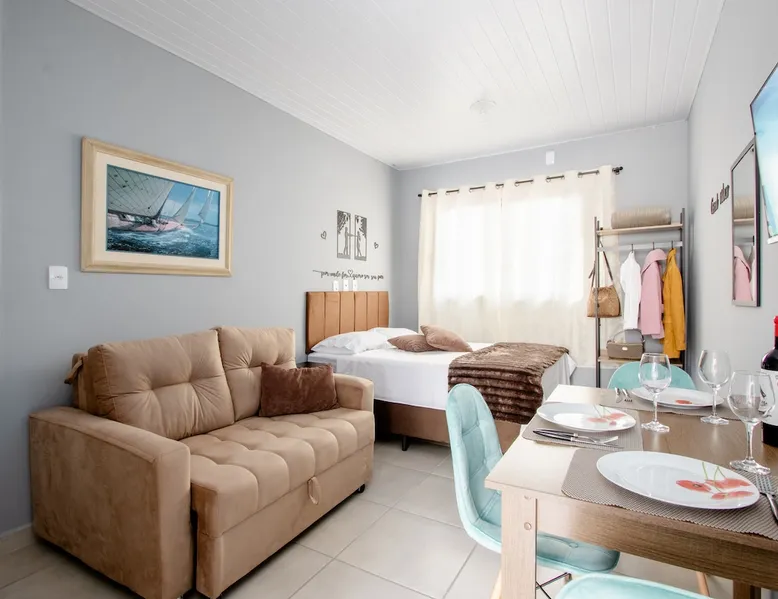 ✨ 🏙️ Discover the best of Downtown Floripa with our tips on tourism, gastronomy, and local shopping — all just steps away! Cozy and fully equipped studio with a stunning view of Beira-Mar Avenue, ideal for up to 3 guests. 📍Prime location: near Beiramar Shopping, Pátio Milano, and with easy access to the beaches. 🛏️ Includes a full kitchen, living area, dining table, and cable TV. Perfect for leisure, business trips, medical stays, or sports events! The space The property located in the center of Floripa, less than 700 meters from Shopping Beira Mar, close to Pátio Milano (gastronomic space). A region with supermarkets, bakeries, pharmacies and other shops nearby. Practically in the heart of the city, just a few minutes from the Av Beiramar warehouse and the Hercílio Luz Bridge, as well as close to the Mirante do Morro da Cruz (panoramic view). The property has the advantage of having an incredible view of the entire Beira Mar, and on sunny days you can enjoy a beautiful and wonderful sunset, according to the photos in the listing. Newly built house, everything new, and decorated with great care to provide your best stay. The property is an integrated environment with bedroom, living room, dining area and kitchen complete with private bathroom. In the bedroom there is a double bed, wardrobe and a sofa bed in the living room, Smart TV (access to streaming Net Flix, YouTube, etc.) with digital antenna in the living room and internet with excellent speed. To access the house, go up a stairwell, an independent two-story house. Possibility to install the third guest on the sofa bed in the living room. Guest access Access to the parking lot (when your reservation includes the space). Access to the property's laundry room (shared with other guests). Access to balcony (access corridor to reserved house). Other things to note Parking space must be checked for availability, if available, it will be informed before booking only for small vehicles, we reiterate that to use the space it is necessary to check availability before booking. The remote control will be delivered together with the keys. The property features: * 01 set of bedding and pillows proportional to beds and guests * Blankets proportional to guests * Clothes rack * 01 microwave * 02 fan * plates, glasses and cutlery for up to 4 people * 01 hair dryer * 01 iron Guests can leave their bags in our garage next to the Studio, before check-in scheduled for 3:00 pm or after checkout at 11:00 am, (however it is necessary to arrange at least 1 day in advance and agreed by the parties) If towels or bedding are stained with makeup or otherwise, an additional cost will be charged for the damaged item. Mini-soap and toilet paper will be provided at check-in, “no replacement”. Internet access is on the welcome card fixed in the house. Check-in - 3:00 pm to 11:00 pm Check-out - until 11:00am Voltage sockets 220v If the guest exceeds the check-out time by 1 hour until 11:00 without prior authorization through the application, 1 daily rate will be charged in the amount of R$ 250.00. Decorative objects and crazy people in the photos are illustrative images. Check our other properties in our profile if you don't see availability here.