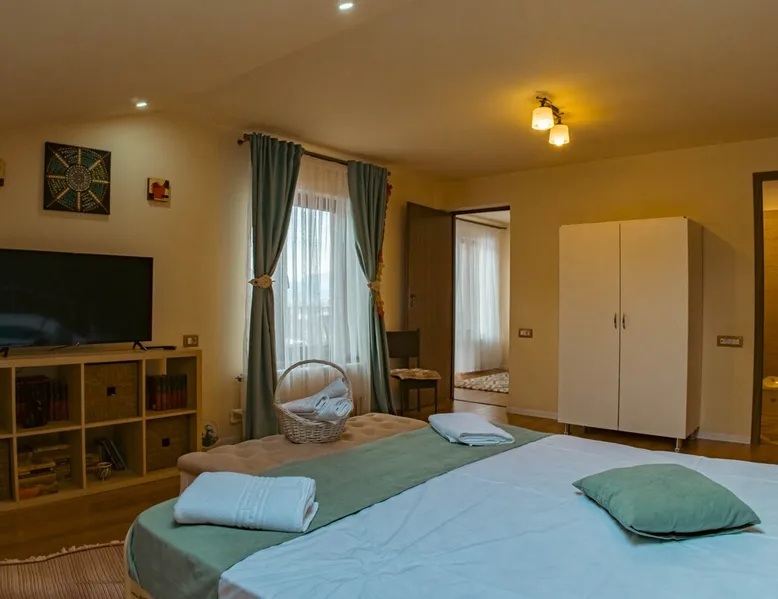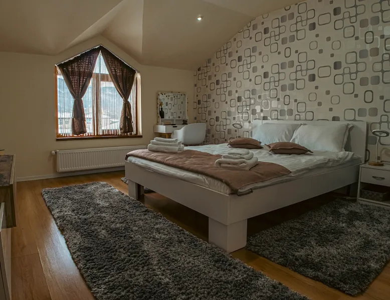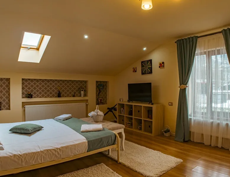 Casa Maxim is located in the city of Lupeni, 8km from the center of Straja resort and 3km from the boarding point of the gondola lift. It is ideal for families or groups, the interior space being generous. It also has a landscaped courtyard, dining place and barbecue area. In the yard you can also find a tub with a capacity of maximum 6 people. It is not included in the accommodation price and is paid separately at the location based on the days desired for use.