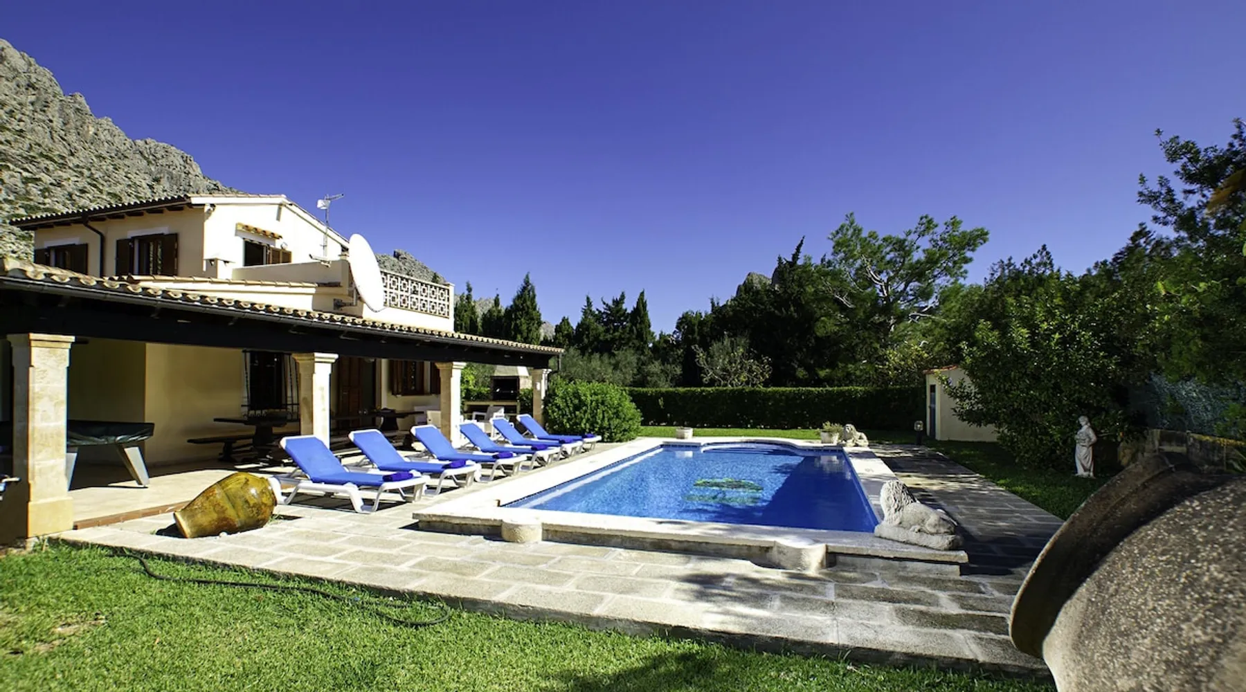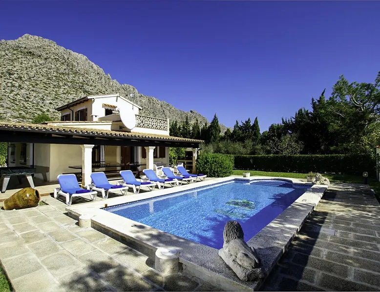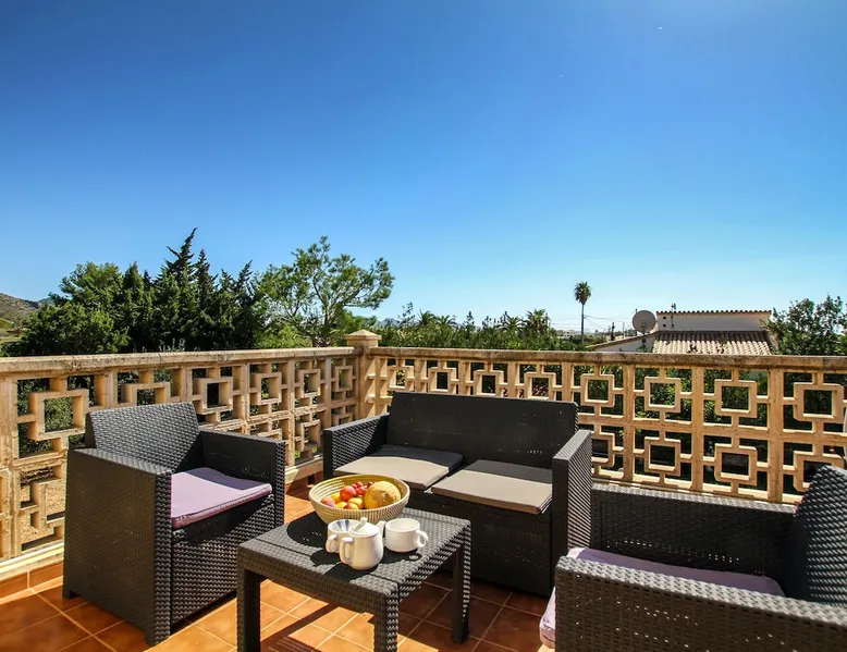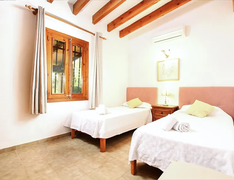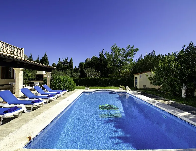 Occupying a lovely mature position, nestled in the countryside only a mile from the beach at Puerto Pollenca, the beautiful and private Villa Barracca enjoys rugged views of the Tramuntana Mountains. With the amenities of Puerto Pollensa so close by, with its plethora of restaurants, cafes and shops, you will be spoilt for choice throughout your villa holiday. The space Occupying a lovely mature position, nestled in the countryside only a mile from the beach at Puerto Pollenca, the beautiful and private Villa Barracca enjoys rugged views of the Tramuntana Mountains. With the amenities of Puerto Pollensa so close by, with its plethora of restaurants, cafes and shops, you will be spoilt for choice throughout your villa holiday. The entrance to Villa Barracca has an electric gate to the driveway and parking for two vehicles. The well-kept garden has mature hedges, shady areas and neatly trimmed lawns, surrounding the inviting mosaic-tiled swimming pool. Leading to the main entrance, a traditionally constructed covered terrace wraps around the house, and is furnished with a large dining table & benches, as well as comfortable easy chairs. This is a lovely spot to enjoy a sunny breakfast, or to relax in the evening with a long drink. You will also find a brick-built Bbq, ideal for simple lazy lunches spilling out on the adjoining pool terrace. The front door leads into the living-dining room, furnished in a tasteful & traditional Spanish style featuring wrought iron on the windows, exposed beams, ornamental fireplace and simple pieces complementing the room. This spacious, open-plan room has comfortable sofas and a flat screen satellite Tv (limited channels/news only) in the relaxing sitting area, whilst the dining end provides ample seating for 6 people. There is also Wi-Fi internet access at the house. Through to the attractive fitted kitchen, boasting extensive storage & prep space, a breakfast bar, and all the equipment you need to make your stay stress-free - a dishwasher & washing machine along with oven & hob and fridge-freezer. You can step straight out from the kitchen to the terrace and pool, making al fresco holiday breakfasts simple. Villa Barracca’s traditional, restful decor continues throughout the three large bedrooms. The double bedroom and a twin room are located on the ground floor, off the living area, as well as the two separate bathrooms. Up the stairs, which lead directly into the particularly large twin bedroom, you will find a lovely light and welcoming room. This twin bedroom enjoys a large private terrace overlooking the garden and swimming pool, and taking in stunning views of the surrounding Boquer Valley. The bedrooms do have air conditioning/heating units on timers. The outdoor area at Villa Barracca gives a perfect setting for a relaxing holiday. The delightful 8x4m pool with roman entry steps is the centrepiece, surrounded by paving to one side and trees providing shade to the other. There will be no shortage of places to sit and snooze, sun-worship, or read a good book, as there are plenty of poolside sunbeds and chairs under the shaded terrace. Spend endless sunny days relaxing by the pool and cooking up a storm on the Bbq. Although it won’t take much effort to make the very short trip to the beach or town at Puerto Pollensa! Guest access The villa and pool is for your private use only as well as the garden. Bed linen & towels are provided as well as pool towels. The cleaner will come in during your stay & change them, depending on how many days you are staying. All of this is included in the price. Other things to note Included services - Swimming pool: Services available according to season Opening date: 01/03. Closing date: 01/11. Price: Included in the booking- tree-nation, 2x trees planted : Price: Included in the booking - Bed linen: Change each 7 days - Towels: Change each 5 days Optional services - Cot/Crib: Price: Included in the booking. - Second High Chair: Price: EUR 40.00 per booking. - Baby high chair: Price: Included in the booking. - Second Cot : Price: EUR 40.00 per booking. Registration Details Mallorca - Regional registration number ETV01577