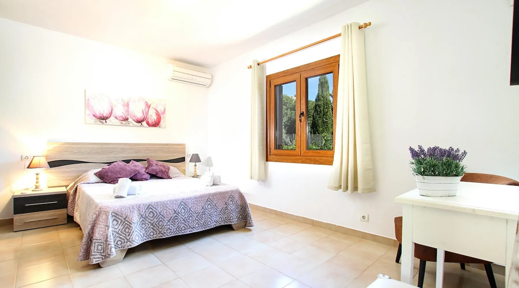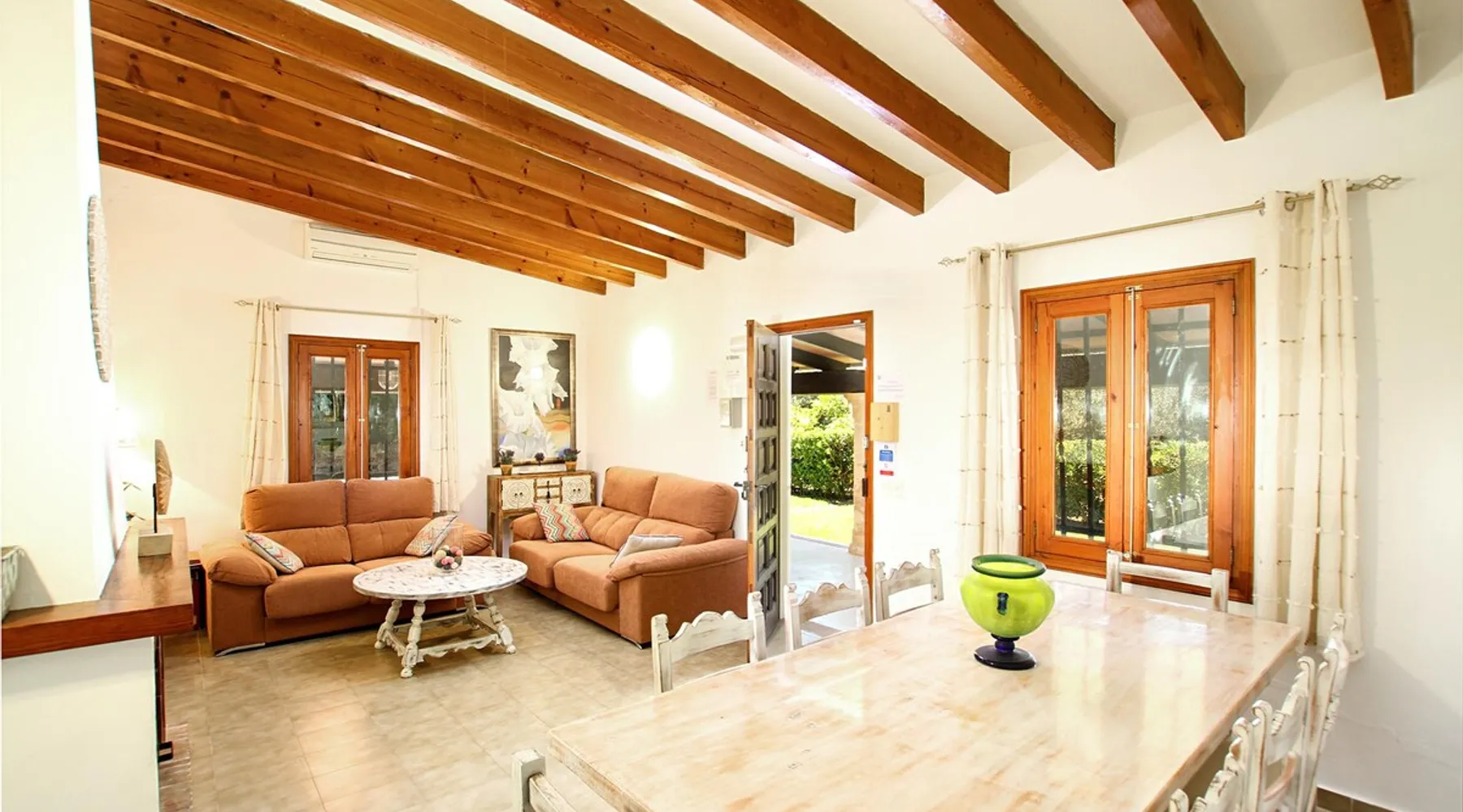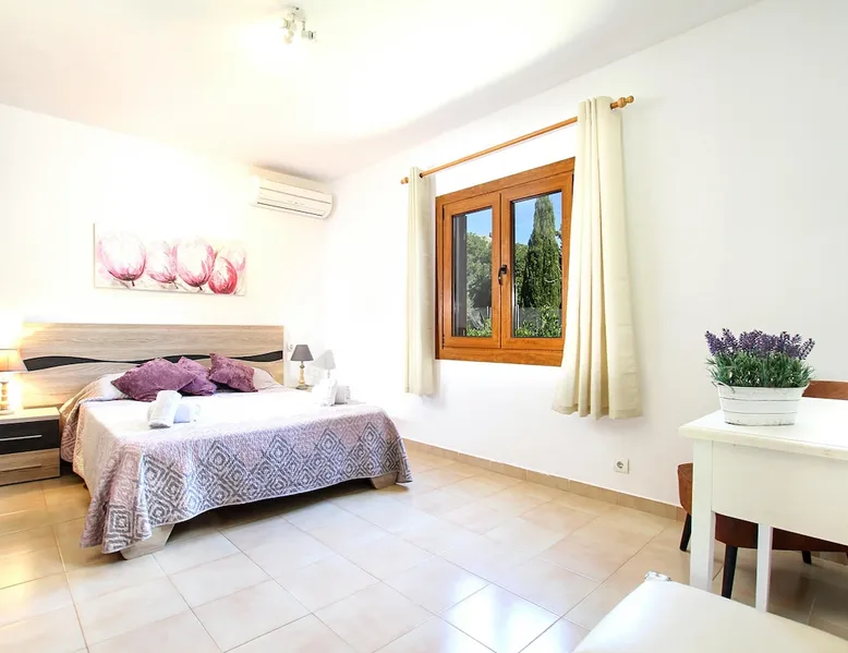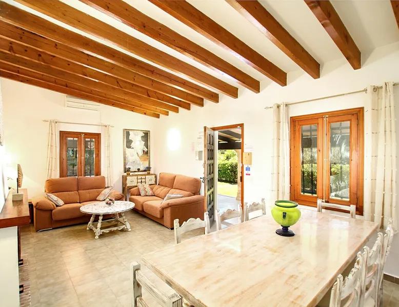 Occupying a lovely mature position, nestled in the countryside only a mile from the beach at Puerto Pollenca, the beautiful and private Villa Barracca enjoys rugged views of the Tramuntana Mountains. With the amenities of Puerto Pollensa so close by, with its plethora of restaurants, cafes and shops, you will be spoilt for choice throughout your villa holiday. The space Occupying a lovely mature position, nestled in the countryside only a mile from the beach at Puerto Pollenca, the beautiful and private Villa Barracca enjoys rugged views of the Tramuntana Mountains. With the amenities of Puerto Pollensa so close by, with its plethora of restaurants, cafes and shops, you will be spoilt for choice throughout your villa holiday. The entrance to Villa Barracca has an electric gate to the driveway and parking for two vehicles. The well-kept garden has mature hedges, shady areas and neatly trimmed lawns, surrounding the inviting mosaic-tiled swimming pool. Leading to the main entrance, a traditionally constructed covered terrace wraps around the house, and is furnished with a large dining table & benches, as well as comfortable easy chairs. This is a lovely spot to enjoy a sunny breakfast, or to relax in the evening with a long drink. You will also find a brick-built Bbq, ideal for simple lazy lunches spilling out on the adjoining pool terrace. The front door leads into the living-dining room, furnished in a tasteful & traditional Spanish style featuring wrought iron on the windows, exposed beams, ornamental fireplace and simple pieces complementing the room. This spacious, open-plan room has comfortable sofas and a flat screen satellite Tv (limited channels/news only) in the relaxing sitting area, whilst the dining end provides ample seating for 6 people. There is also Wi-Fi internet access at the house. Through to the attractive fitted kitchen, boasting extensive storage & prep space, a breakfast bar, and all the equipment you need to make your stay stress-free - a dishwasher & washing machine along with oven & hob and fridge-freezer. You can step straight out from the kitchen to the terrace and pool, making al fresco holiday breakfasts simple. Villa Barracca’s traditional, restful decor continues throughout the three large bedrooms. The double bedroom and a twin room are located on the ground floor, off the living area, as well as the two separate bathrooms. Up the stairs, which lead directly into the particularly large twin bedroom, you will find a lovely light and welcoming room. This twin bedroom enjoys a large private terrace overlooking the garden and swimming pool, and taking in stunning views of the surrounding Boquer Valley. The bedrooms do have air conditioning/heating units on timers. The outdoor area at Villa Barracca gives a perfect setting for a relaxing holiday. The delightful 8x4m pool with roman entry steps is the centrepiece, surrounded by paving to one side and trees providing shade to the other. There will be no shortage of places to sit and snooze, sun-worship, or read a good book, as there are plenty of poolside sunbeds and chairs under the shaded terrace. Spend endless sunny days relaxing by the pool and cooking up a storm on the Bbq. Although it won’t take much effort to make the very short trip to the beach or town at Puerto Pollensa! Guest access The villa and pool is for your private use only as well as the garden. Bed linen & towels are provided as well as pool towels. The cleaner will come in during your stay & change them, depending on how many days you are staying. All of this is included in the price. Other things to note Included services - Swimming pool: Services available according to season Opening date: 01/03. Closing date: 01/11. Price: Included in the booking- tree-nation, 2x trees planted : Price: Included in the booking - Bed linen: Change each 7 days - Towels: Change each 5 days Optional services - Cot/Crib: Price: Included in the booking. - Second High Chair: Price: EUR 40.00 per booking. - Baby high chair: Price: Included in the booking. - Second Cot : Price: EUR 40.00 per booking. Registration Details Mallorca - Regional registration number ETV01577