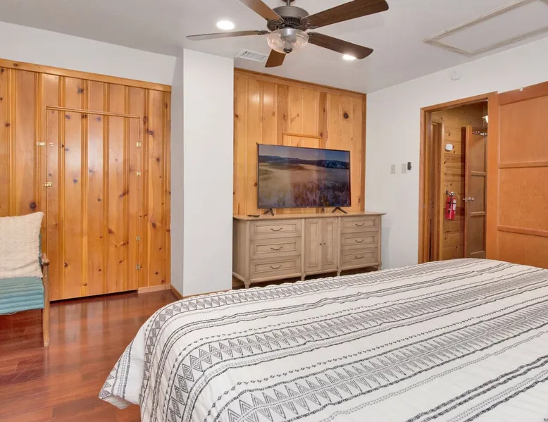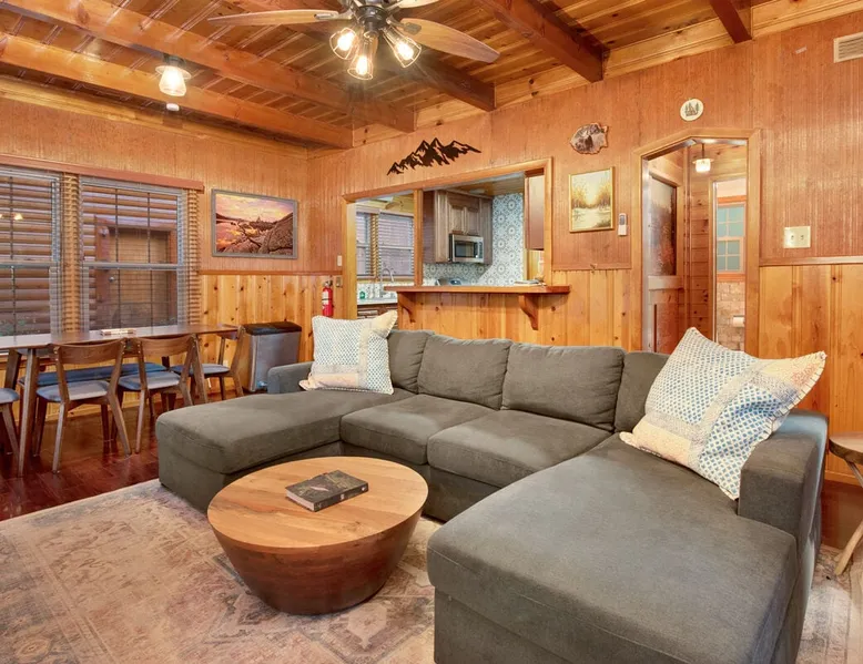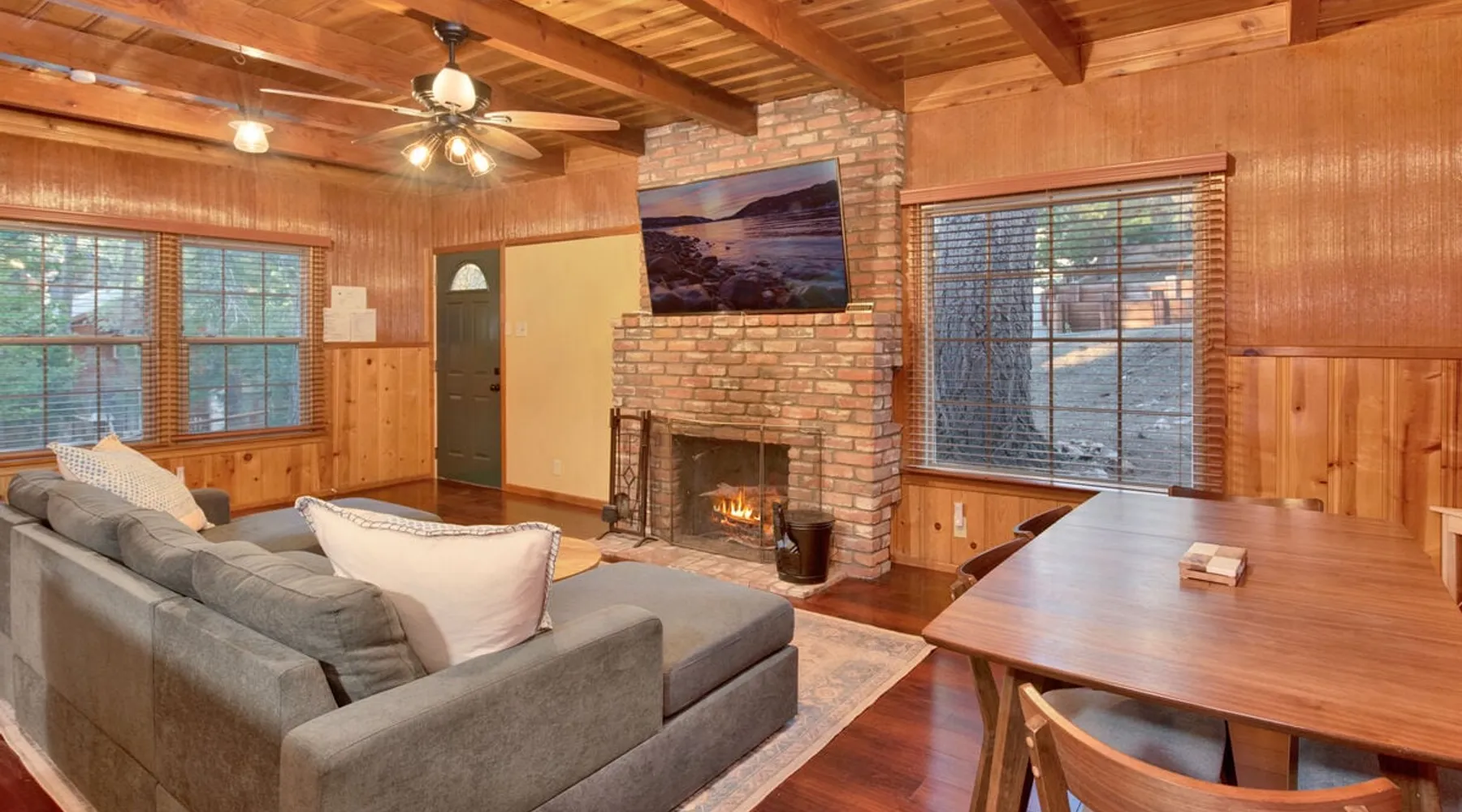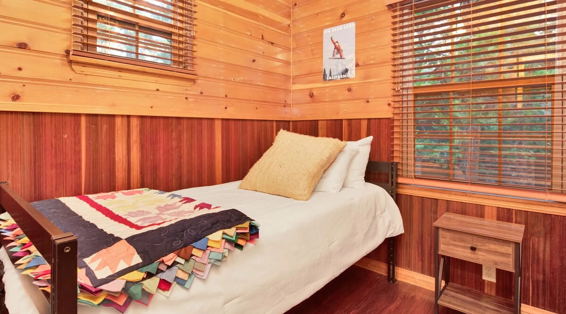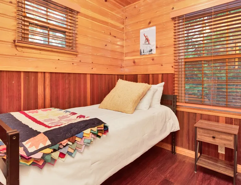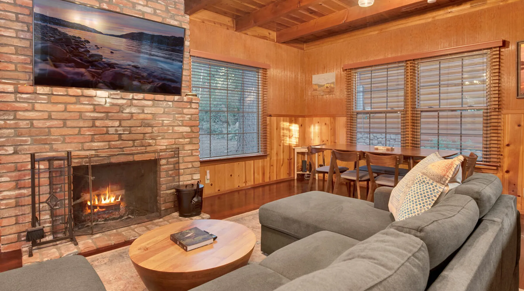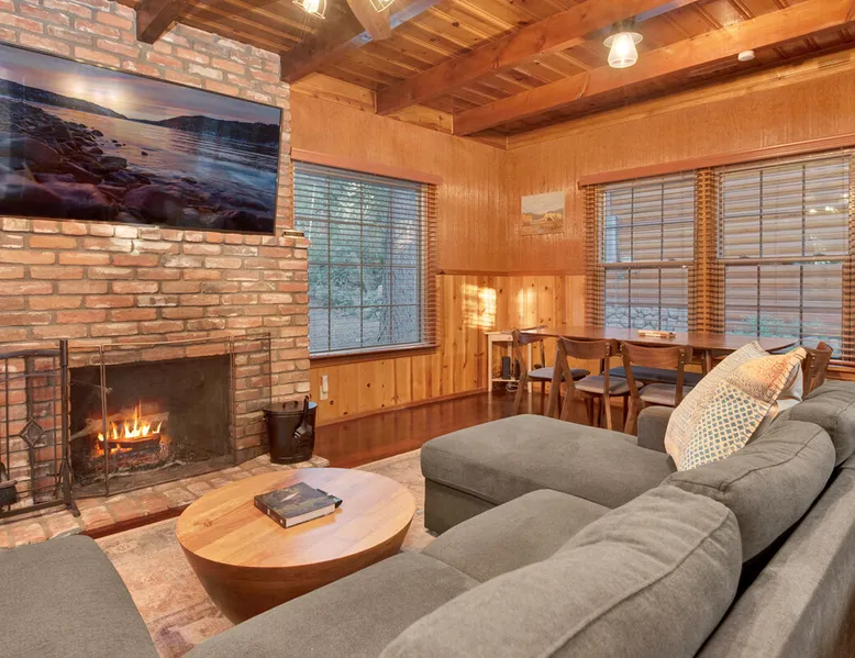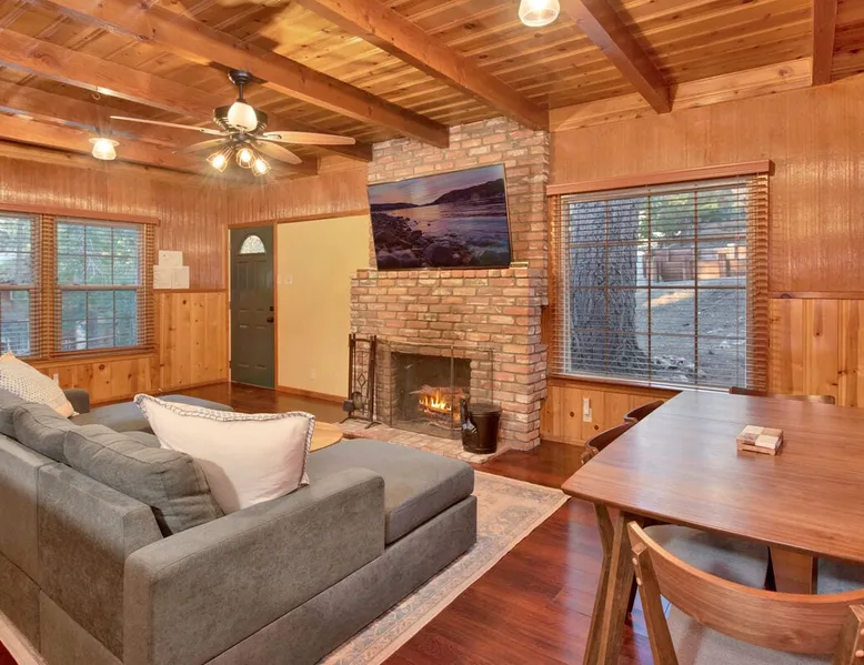 Welcome to Silvertip Pines! Your group will absolutely love your vacation stay here at our relaxing and modern hillside retreat, freshly furnished from head to toe with your experience in mind and packed with all that you need to relax and unwind under soaring pine trees and millions of stars anytime of the year. Centrally located in a quiet forested neighborhood you have the best of Big Bear within a short ten minute drive from your cabin including local marinas, village shops, and ski resorts. The space Silvertip Pines | Cozy Hillside Log Cabin Retreat Welcome to Silvertip Pines! Your group will absolutely love your vacation stay here at our relaxing and modern hillside retreat, freshly furnished from head to toe with your experience in mind and packed with all that you need to relax and unwind under soaring pine trees and millions of stars anytime of the year. Centrally located in a quiet forested neighborhood you have the best of Big Bear within a short ten minute drive from your cabin including local marinas, village shops, and ski resorts. Enter the cozy lower level where you are greeted with hardwood floors, wood beamed ceilings, and big open windows that provide the perfect balance of natural lighting and forested views of the treetops below. You will love snuggling up here on the couch together as you warm your toes in front of the toasty wood burning fireplace and pop on your favorite movie on the flat screen Streaming TV with complimentary hi speed WIFI internet supplied for your convenience. (Guests must have their own accounts to enjoy Streaming Services.) The cute guest bedroom and bathroom are easily accessible here on the entry level along with a washer and dryer for those wet snow clothes or extended visits to the mountains. Head upstairs to find two additional sleeping quarters and an added bathroom for your party, each room is made up for your arrival with warm linens, blankets, pillows, and fresh shower towels for your vacation stay. Venture out to the great outdoors to enjoy relaxing sun decks and a propane firepit and BBQ where you can warm up on a chilly evening as you grill up your freshly caught dinner from the lake under soaring pine trees. Silvertip Pines is an amazing retreat, perfect for any group no matter the season you choose to visit Big Bear- come experience your newest home away from home together today! Sleeping Arrangements: Bedroom 1: Twin Bed- Downstairs Entry Level Bedroom 2: King Bed, Streaming TV- Upstairs 2nd Level Bedroom 3: Queen Bed- Upstairs 2nd Level Bathroom Arrangements: Hallway 3/4 Bath (Shower Only)- Downstairs Entry Level Hallway Full Bath- Upstairs 2nd Level -Sleeps 5 -3 Cars Driveway Parking -2 Pets Welcome w/ Additional Fee -1,028 Total Square Feet Other things to note Big Bear Vacations & Cabins House Rules and Policy Information *Please read all rules and policies completely- Your booking/request to book constitutes your understanding and agreement of the below Policies & Information* **Reservation Holder Must Be 21+** **Electronic Rental Agreement & Good Neighbor Policy Required** **Guests must provide ID for Cabin Access** Our Big Bear Vacations team is looking forward to hosting you here in the mountains! We are your longest standing local vacation experts with years of dedicated experience and knowledge brought forth within our exceptional customer service and support staff to ensure a 5 star experience for every guest. Our team offers 24/7 support along with local on site offices and experience packages. Big Bear GOOD NEIGHBOR POLICY is enforced at all times during your stay and includes removing trash from the property to local trash sites, washing dishes to alleviate wild animals being attracted to neighborhoods. NO PARTIES OR EVENTS, No Over Occupancy, No Loud Music, and No Street Parking is allowed in Big Bear homes at any time. This policy along with a rental agreement will be emailed to you immediately after booking and is REQUIRED by the City of Big Bear Lake for all rentals in Big Bear. If found in violation of these policies guests will be visited by staff and Code Enforcement officers who may or may not issue fines or evictions to the violating party members. No Smoking is allowed in any Big Bear homes. Check-in time is 4:00 pm Check-out time is 10:00 am There is no early arrival or later departure availability during peak season and holidays. Contact our office the morning of arrival or departure to confirm early arrival or later departure availability for your stay. (Fee Applies) Winter Snow & Parking- During winter months the driveways, steps, porches, decks, and other outdoor areas at your property may not be accessible due to snow or ice. Our teams are on fixed routes for snow and work alongside city and county resources to clear roads, driveways, walkways etc. Guests should be prepared in winter months to shovel themselves in or out of the property and off of the street in these snowstorm events. As there is no street parking allowed in Big Bear it is extremely important that guests make every attempt to get vehicles off the street for the snowplows. California Law requires that vehicles traveling to Big Bear from November thru April have snow chains in their vehicles however we also recommend proper footwear, an emergency kit, and an extra snow shovel. Pet Policy- Pet Friendly Homes ONLY Pet Fees $35/Pet Nightly Fee + Tax Pet Policy ~All dogs on the property must be registered and acknowledges with the front desk ~Dogs may not be left unattended in the home at any time ~Pet owners are responsible for cleanup of pets or are subject to an added cleaning fee Service Animals Are Welcome! California Penal Code: (a) Any person who knowingly and fraudulently represents himself or herself, through verbal or written notice, to be the owner or trainer of any canine licensed as, to be qualified as, or identified as, a guide, signal, or service dog, shall be guilty of a misdemeanor punishable by imprisonment in the count