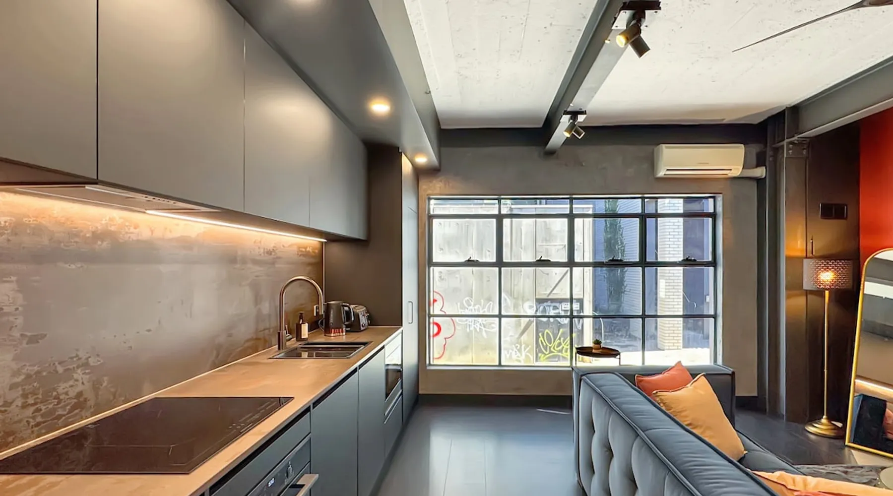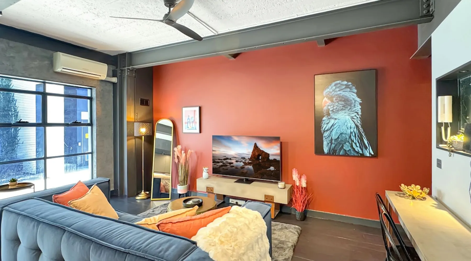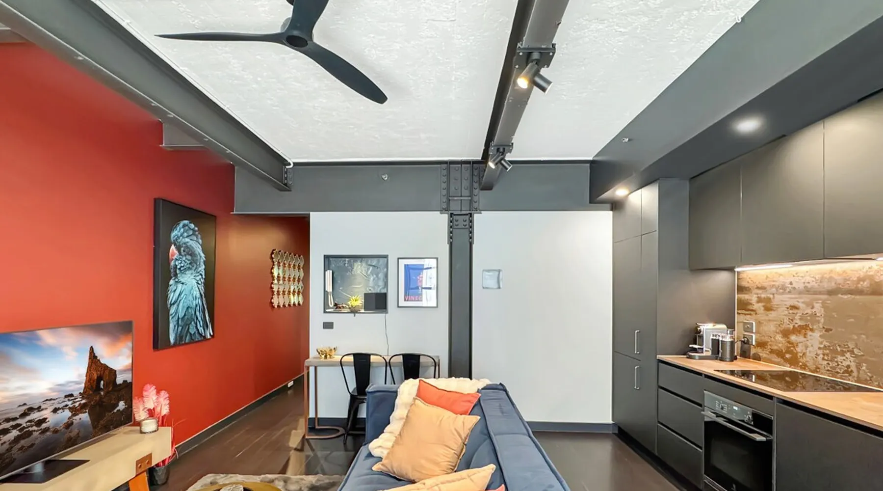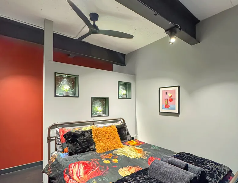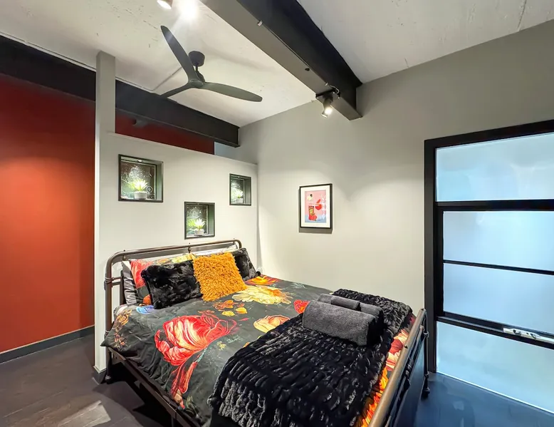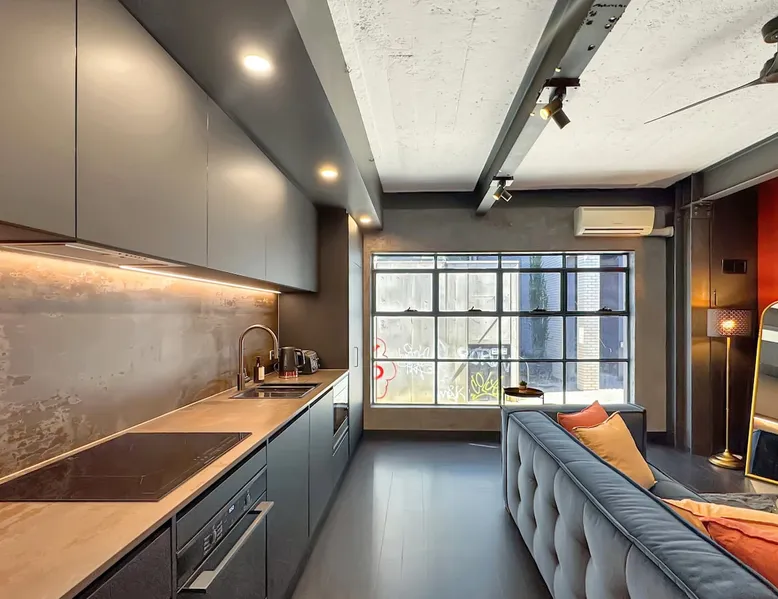 Once a historic Eucalyptus Distillery, this fully renovated one-bedroom warehouse apartment blends industrial heritage with high-end modern design. Dark, moody and meticulously finished, it’s far from your standard short-stay. Just over 1 km to the MCG, 2 km to the city, and steps from Bridge Road cafés, shops and trams, it’s the perfect stylish urban escape. The space Behind a secure entry, this first-floor apartment embraces its warehouse heritage with black polished floors, exposed beams, cast concrete ceilings and iron-framed factory windows. Every detail has been elevated, from the industrial-style Dekton benchtop to the sleek black kitchen with gunmetal grey tapware and induction cooktop & electronic oven. The open-plan living zone includes split-system heating/air conditioning, a ceiling fan, a cosy couch, a 55-inch smart TV and a dining bench for two which is the perfect spot to unwind after exploring Richmond. The kitchen is fully equipped with quality appliances, integrated fridge/freezer & dishwasher, built in microwave, kettle, toaster and a Nespresso machine. Complimentary coffee, tea, sugar, milk and hot chocolate are provided for your stay. The separate bedroom features a comfortable queen bed, ceiling fan, generous wardrobe space including luxurious bathrobes for use during your stay. The bathroom has been fully transformed into a luxe, hotel-style retreat with a dark, moody aesthetic that complements the apartment’s industrial character. Featuring floor-to-ceiling tiles, a custom black vanity with a gunmetal grey basin, and soft LED backlighting behind the mirror, the space feels both dramatic and calming. Gunmetal grey tapware and shower fittings add a sophisticated, architectural touch, while the walk-in glass shower features a rainfall head and hand shower for a spa like experience. Practicality hasn’t been forgotten, the bathroom also includes a heated ladder towel rail, combination washing machine and dryer, plus generous storage built into the vanity. Thoughtfully curated lighting, finishes and design details come together to deliver a truly elevated, premium short-stay experience, far exceeding a typical apartment renovation. Secure undercover parking for one car is included (carpark height 1.9 m). Guest access Guests will have exclusive access to the whole apartment and undercover carpark for the duration of their stay. (Please note: Guests are required to collect & drop off the fob for access at a local Keynest located 1.2kms away. Opening hours are Monday to Saturday 7am to 10pm & Sunday 8am to 10pm. Access outside of these times are not allowed. Other things to note Our property is 100% smoke free zone. If you wish to smoke please do so outside and dispose of cigarette butts correctly. Do not smoke near open doors or windows, to ensure the smoke doesn’t come into the property. If we need to deep clean the property due to a breach of these rules a $500 fee will be charged. We provide a starter pack of essentials such as toilet paper, milk & coffee to get you settled however if your stay is longer or you run out then it will not be replenished during your stay.