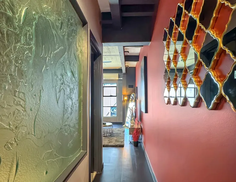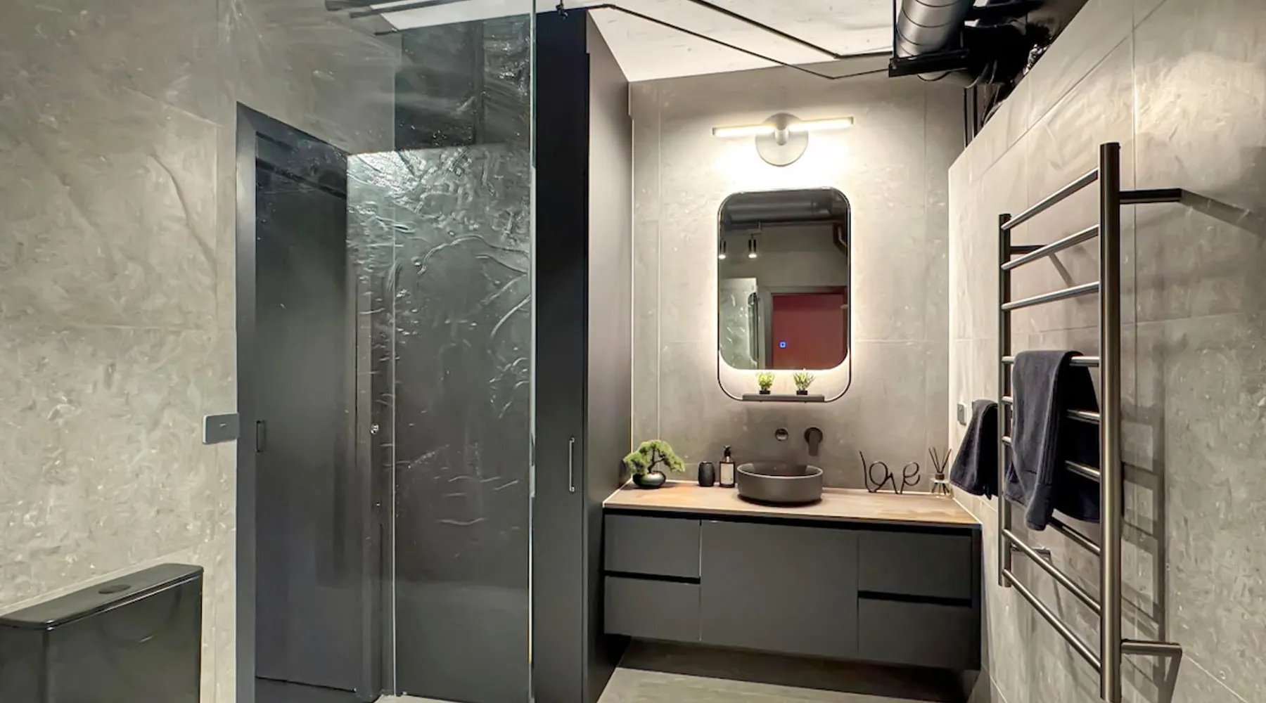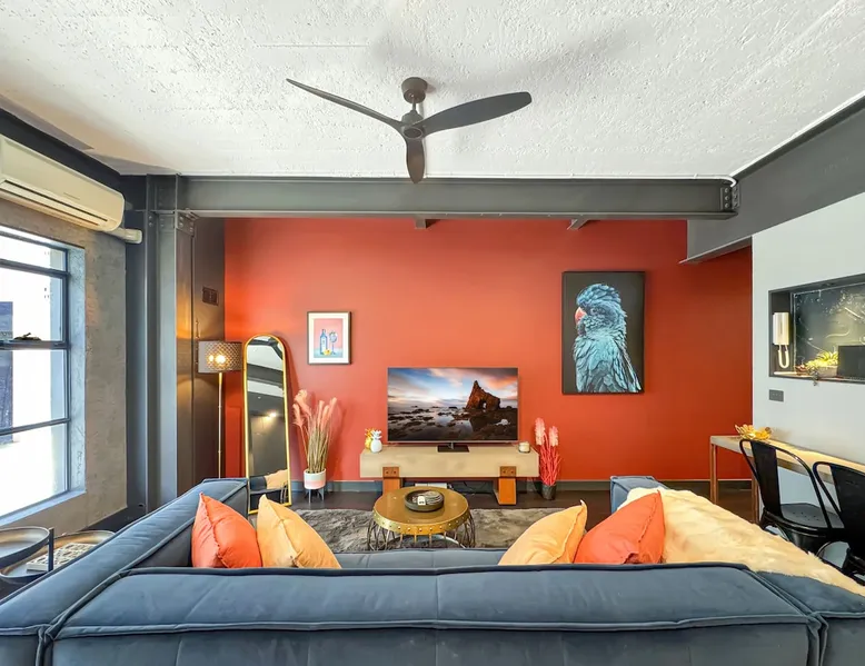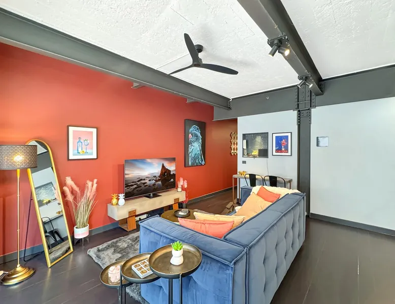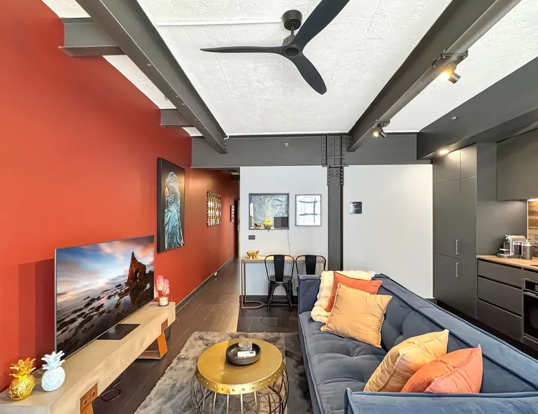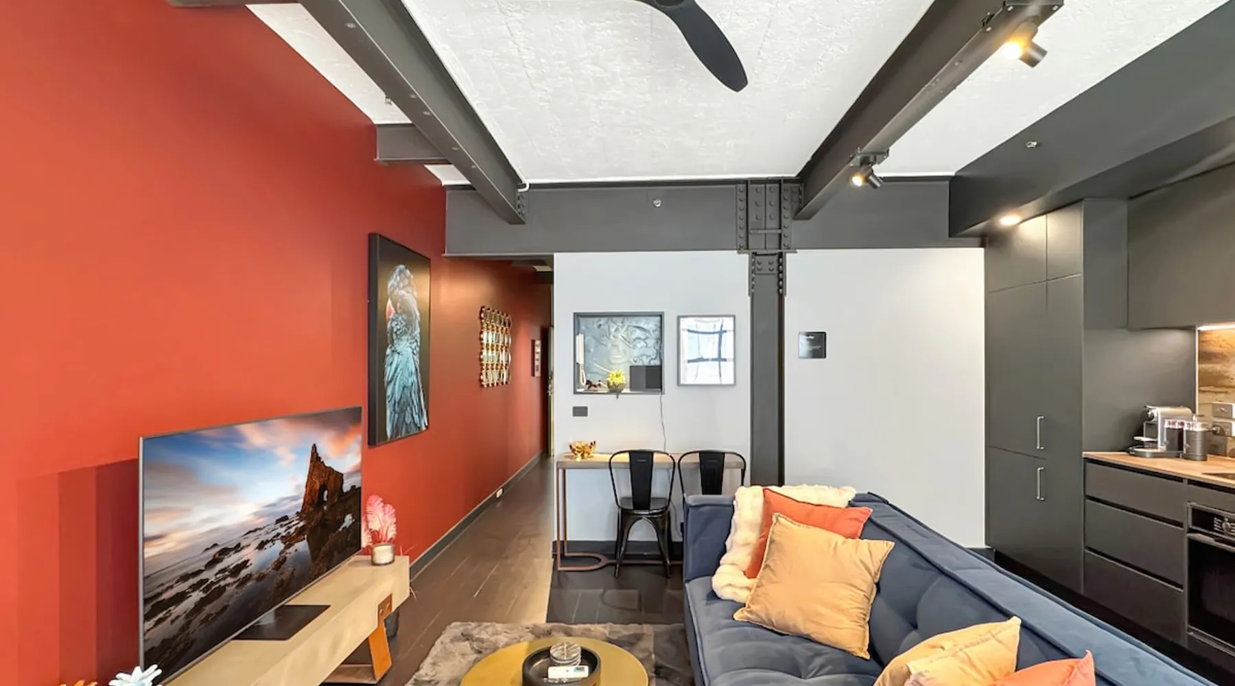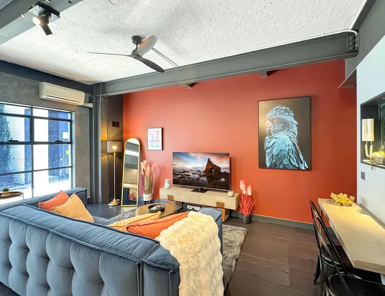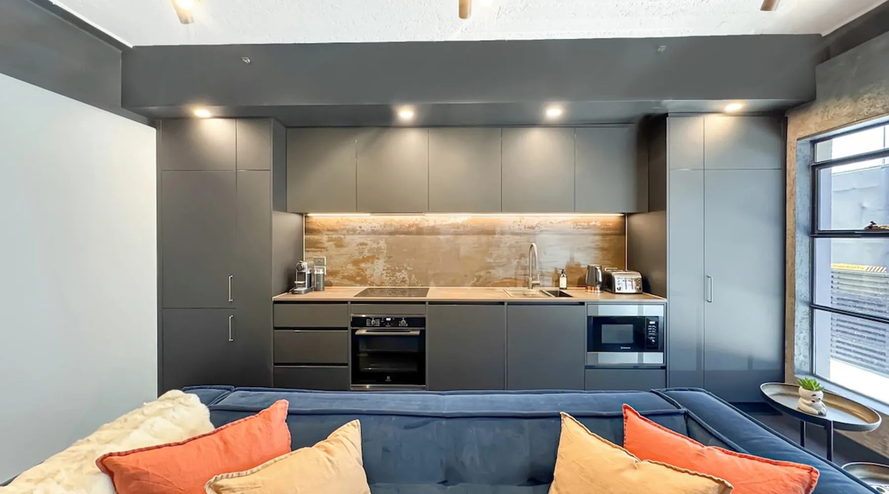 Once a historic Eucalyptus Distillery, this fully renovated one-bedroom warehouse apartment blends industrial heritage with high-end modern design. Dark, moody and meticulously finished, it’s far from your standard short-stay. Just over 1 km to the MCG, 2 km to the city, and steps from Bridge Road cafés, shops and trams, it’s the perfect stylish urban escape. The space Behind a secure entry, this first-floor apartment embraces its warehouse heritage with black polished floors, exposed beams, cast concrete ceilings and iron-framed factory windows. Every detail has been elevated, from the industrial-style Dekton benchtop to the sleek black kitchen with gunmetal grey tapware and induction cooktop & electronic oven. The open-plan living zone includes split-system heating/air conditioning, a ceiling fan, a cosy couch, a 55-inch smart TV and a dining bench for two which is the perfect spot to unwind after exploring Richmond. The kitchen is fully equipped with quality appliances, integrated fridge/freezer & dishwasher, built in microwave, kettle, toaster and a Nespresso machine. Complimentary coffee, tea, sugar, milk and hot chocolate are provided for your stay. The separate bedroom features a comfortable queen bed, ceiling fan, generous wardrobe space including luxurious bathrobes for use during your stay. The bathroom has been fully transformed into a luxe, hotel-style retreat with a dark, moody aesthetic that complements the apartment’s industrial character. Featuring floor-to-ceiling tiles, a custom black vanity with a gunmetal grey basin, and soft LED backlighting behind the mirror, the space feels both dramatic and calming. Gunmetal grey tapware and shower fittings add a sophisticated, architectural touch, while the walk-in glass shower features a rainfall head and hand shower for a spa like experience. Practicality hasn’t been forgotten, the bathroom also includes a heated ladder towel rail, combination washing machine and dryer, plus generous storage built into the vanity. Thoughtfully curated lighting, finishes and design details come together to deliver a truly elevated, premium short-stay experience, far exceeding a typical apartment renovation. Secure undercover parking for one car is included (carpark height 1.9 m). Guest access Guests will have exclusive access to the whole apartment and undercover carpark for the duration of their stay. (Please note: Guests are required to collect & drop off the fob for access at a local Keynest located 1.2kms away. Opening hours are Monday to Saturday 7am to 10pm & Sunday 8am to 10pm. Access outside of these times are not allowed. Other things to note Our property is 100% smoke free zone. If you wish to smoke please do so outside and dispose of cigarette butts correctly. Do not smoke near open doors or windows, to ensure the smoke doesn’t come into the property. If we need to deep clean the property due to a breach of these rules a $500 fee will be charged. We provide a starter pack of essentials such as toilet paper, milk & coffee to get you settled however if your stay is longer or you run out then it will not be replenished during your stay.