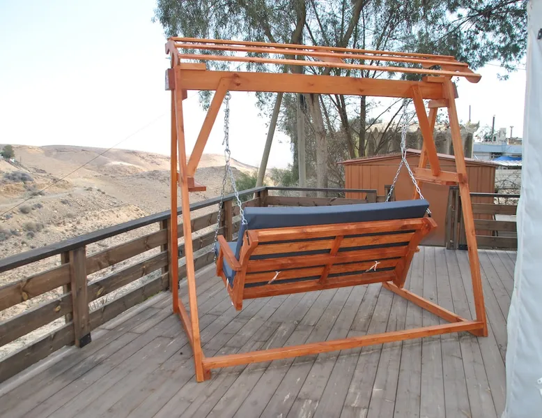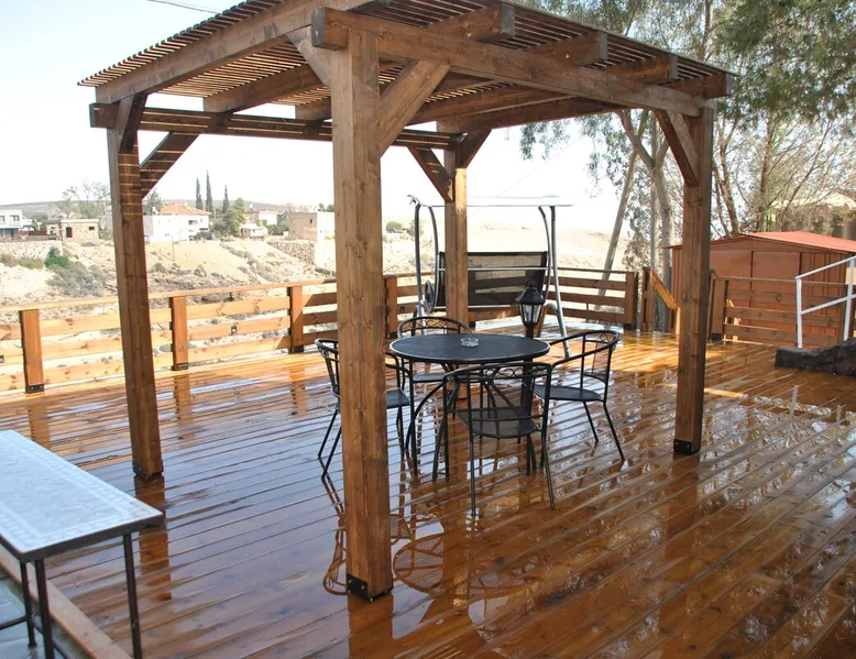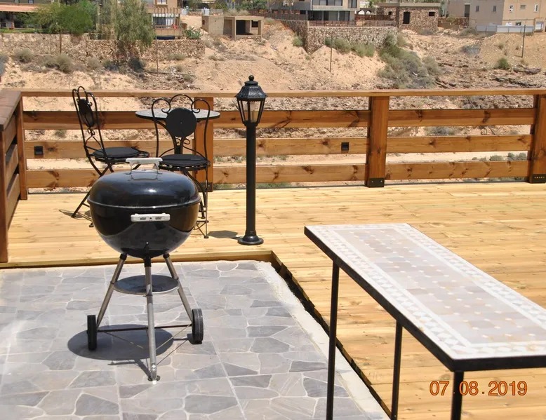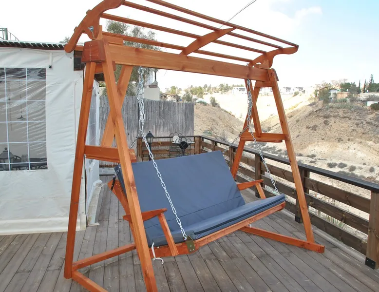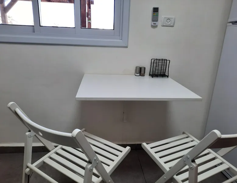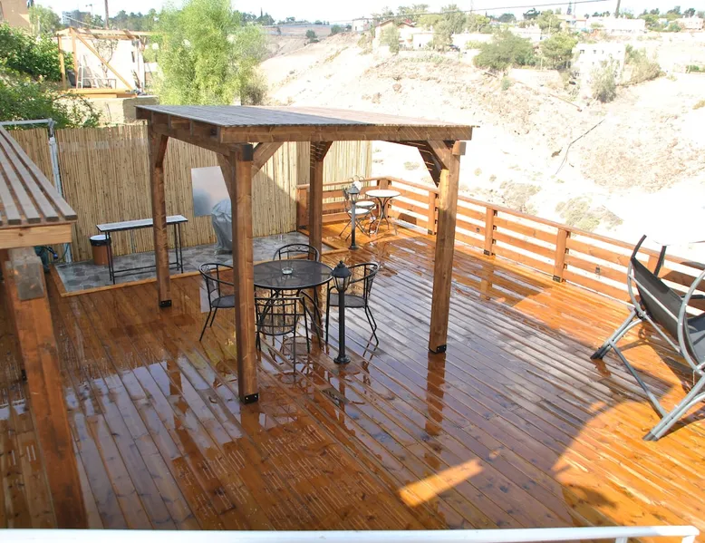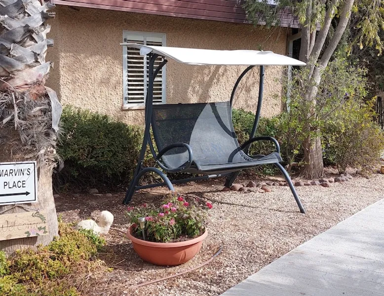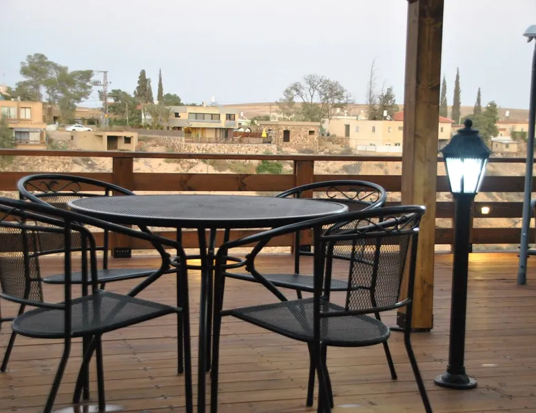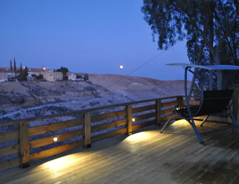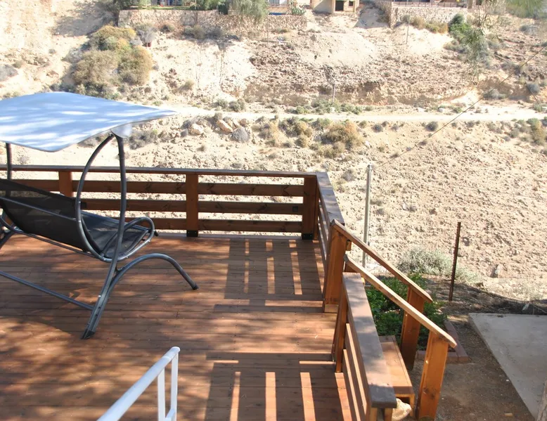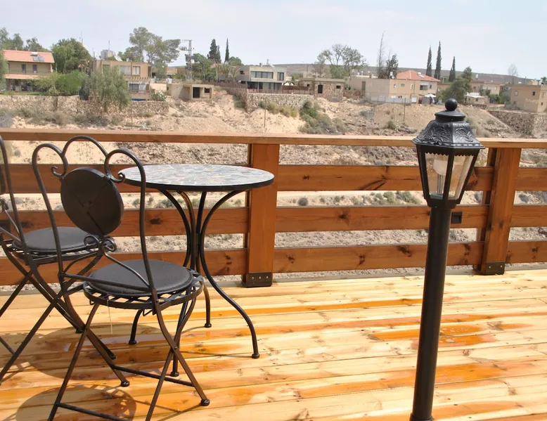 ** Guests from Israel: Your price does not include 18% VAT, which must be paid separately to the property owner. Contact us for details. ** ** No pets allowed ** Minimum age of guests: 25 Marvin's Place offers high quality accommodation for couples in a relaxed atmosphere. Enjoy our beautiful wooden deck overlooking the captivating shapes of barren desert mountains and the distant Dead Sea on the horizon, the silent breeze of desert wind and a flock of camels strolling by. The space ** Guests from Israel: 18% VAT must be paid directly to owner. Contact us for details. ** ** No pets allowed ** Minimum age of guests: 25 Marvin’s Place served, for two decades, as Marvin Friedman's workroom. This is where he spent much of his time studying desert life and creating magnificent artwork. It is a 1 bedroom / 1 kitchen / 1 bathroom apartment, attached to the main house but accessed separately. Ask anyone in town about Marvin Friedman – they pretty much all know him as the mythological Biology teacher at the Arad High School, and a wildlife zoologist par excellence. “A legend” and “a rare person” are just two of the many powerful words used by some of Marvin’s former students to describe him. His unique teaching method involved taking students out to the desert so that they experience it and bringing desert life into the classroom. He had a way with students, leaving them with great memories many years after his retirement; in fact, many of them claim he was the reason they began to love animals and nature in the first place. Marvin’s workroom was renovated to accommodate one person or a couple looking to enjoy their time in the peaceful town of Arad, and no expense was spared to provide guests with a luxurious experience. As you walk up the driveway, you'll follow a path leading to the back of house where you'll discover a beautiful wooden deck overlooking the desert, and a private entrance to the guesthouse. From the deck you'll enjoy captivating views of the desert and on clear days can see the Dead Sea. On occasion, you'll find a pack of camels grazing below in the valley. Guests have private use of an enclosed, heated gazebo with dining table, as well as a swing, small table, and charcoal grill (just bring your own food of choice and charcoal). When you enter the guesthouse, you'll walk into a small bedroom with a luxurious foam memory double bed. The room is equipped with a 43-inch smart TV with complementary local channels, Netflix, and YouTube. A small door (50 cm / 20 inch wide) leads to the bathroom where you'll find a walk-in shower, shampoo, conditioner, body soap, hair dryer, and of course toilet paper… An adjacent hallway leads to a kitchen, which is fully equipped with everything you'd need for your own cooking (fridge with freezer, gas stovetop, microwave, Espresso coffee machine with complementary capsules, milk foam maker, water kettle, complementary water bottle and milk, cooking oil, spices, and all kitchenware). Marvin's Place is small, but cozy. To accommodate your luggage, we've placed a plastic garden storage unit right outside the guesthouse, freeing up space inside the unit. . Guest access The guesthouse is located in the back part of a private home. To reach it, guests follow a path along the side of the house, down a few steps to a private wooden deck and entrance to the guesthouse. Guests have exclusive use of the wooden deck, which overlooks the desert. Other things to note ** Guests from Israel: 18% VAT paid separately, directly to owner. Contact us for details. ** Non-Israeli citizens are not required to pay VAT. ** No pets are allowed. ** Minimum age of guests: 25