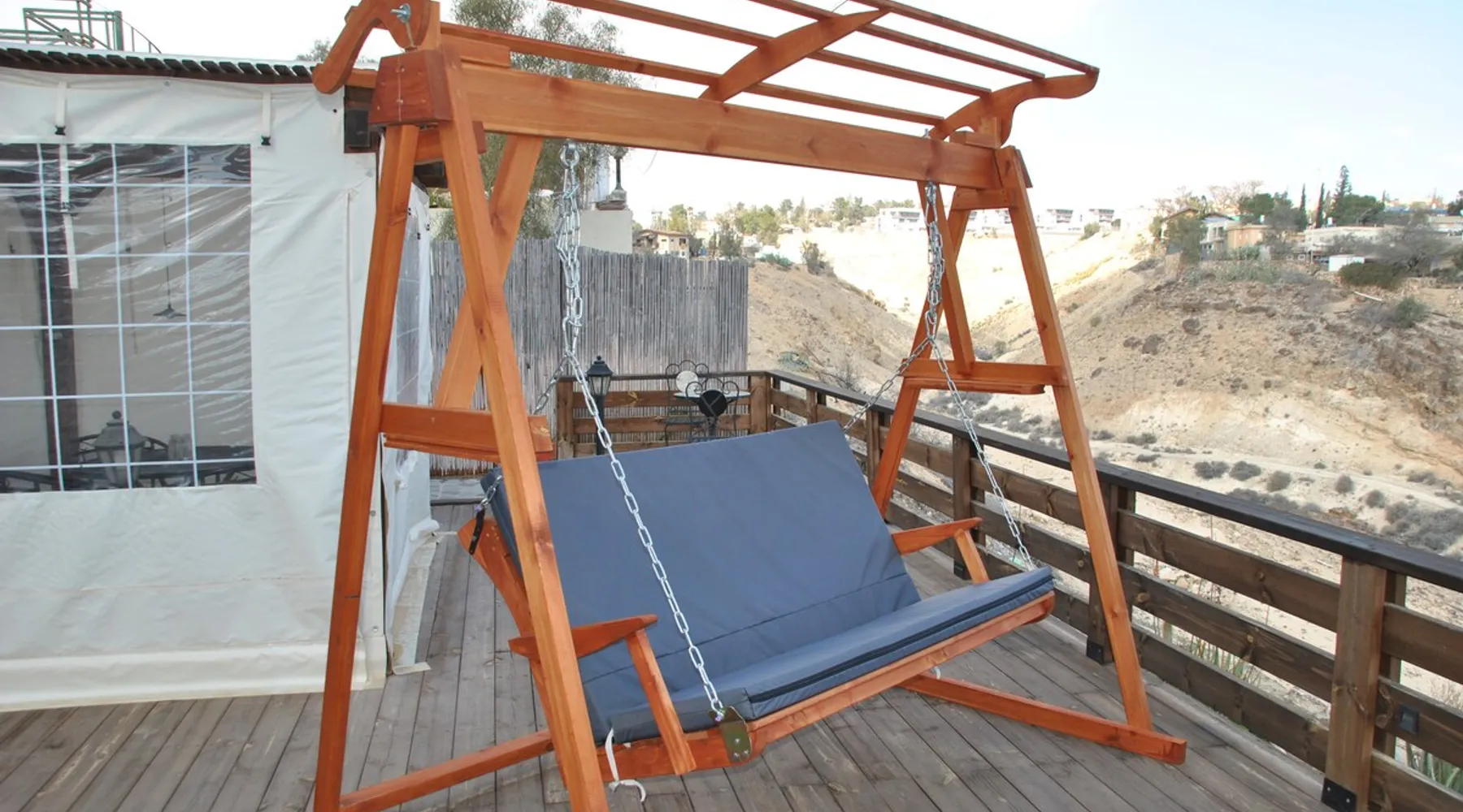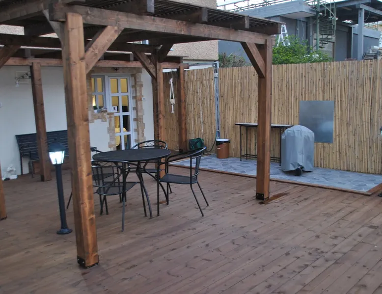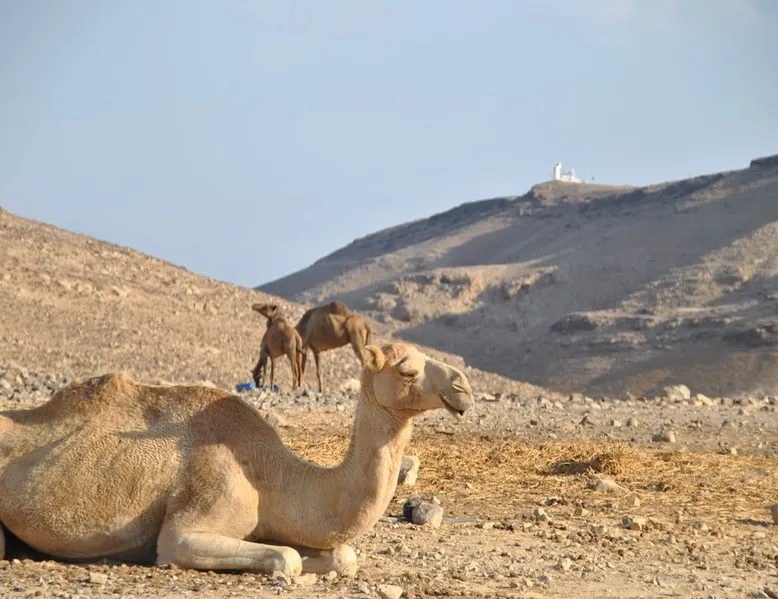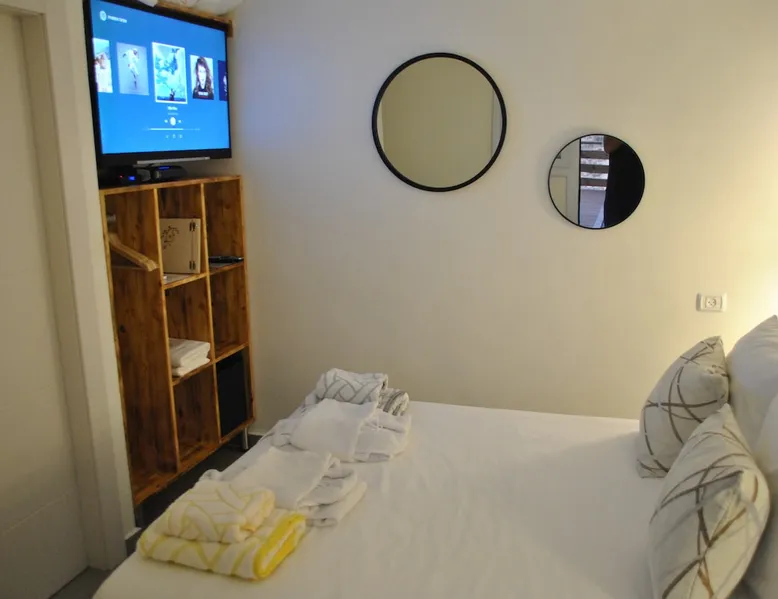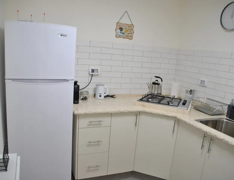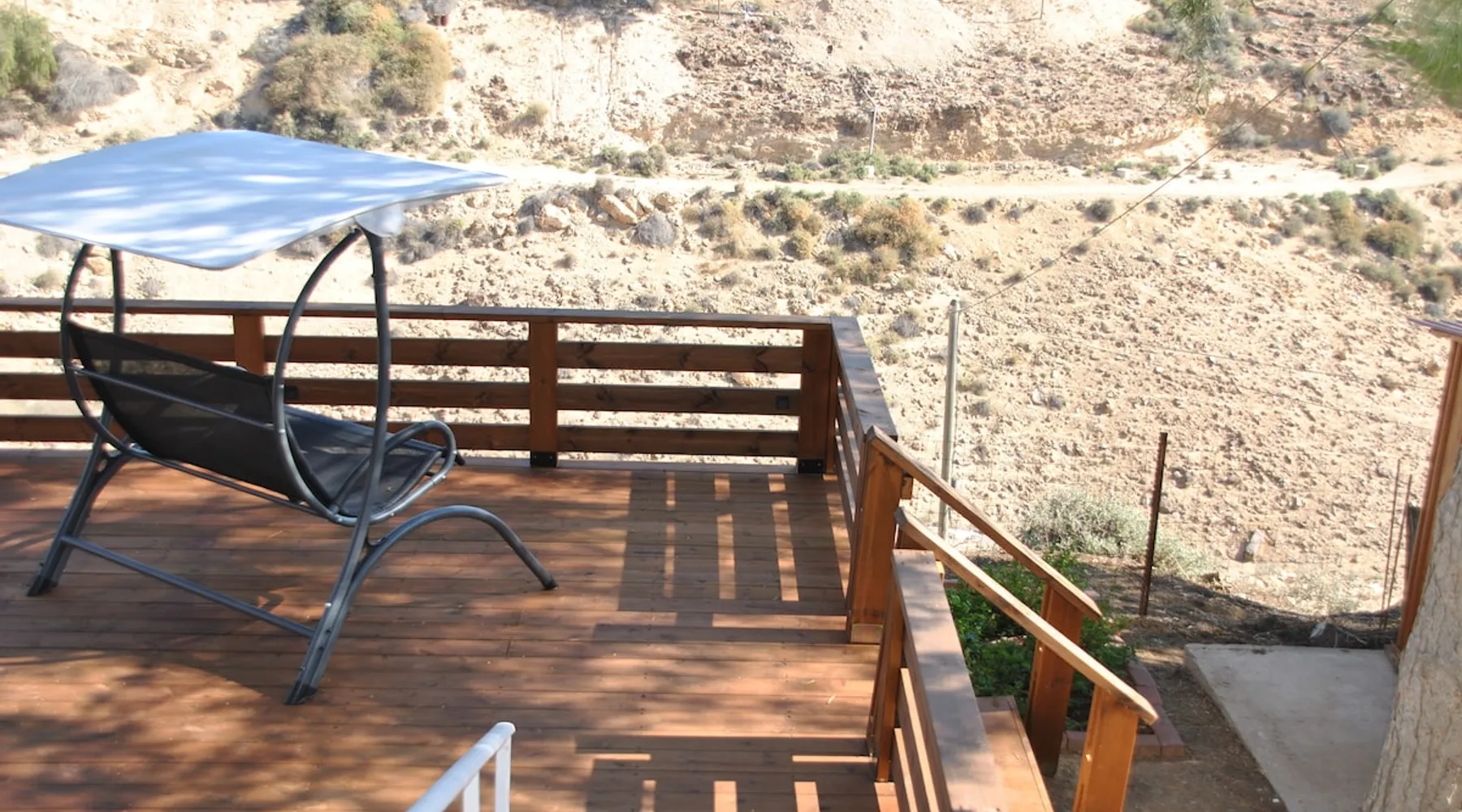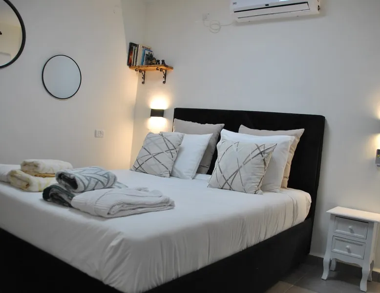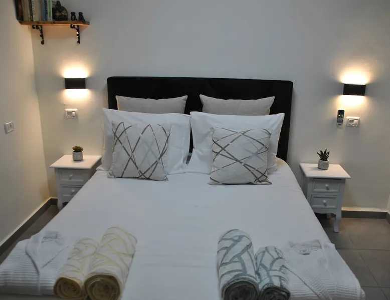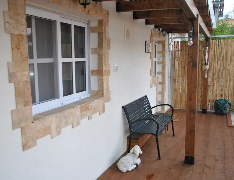 ** Guests from Israel: Your price does not include 18% VAT, which must be paid separately to the property owner. Contact us for details. ** ** No pets allowed ** Minimum age of guests: 25 Marvin's Place offers high quality accommodation for couples in a relaxed atmosphere. Enjoy our beautiful wooden deck overlooking the captivating shapes of barren desert mountains and the distant Dead Sea on the horizon, the silent breeze of desert wind and a flock of camels strolling by. The space ** Guests from Israel: 18% VAT must be paid directly to owner. Contact us for details. ** ** No pets allowed ** Minimum age of guests: 25 Marvin’s Place served, for two decades, as Marvin Friedman's workroom. This is where he spent much of his time studying desert life and creating magnificent artwork. It is a 1 bedroom / 1 kitchen / 1 bathroom apartment, attached to the main house but accessed separately. Ask anyone in town about Marvin Friedman – they pretty much all know him as the mythological Biology teacher at the Arad High School, and a wildlife zoologist par excellence. “A legend” and “a rare person” are just two of the many powerful words used by some of Marvin’s former students to describe him. His unique teaching method involved taking students out to the desert so that they experience it and bringing desert life into the classroom. He had a way with students, leaving them with great memories many years after his retirement; in fact, many of them claim he was the reason they began to love animals and nature in the first place. Marvin’s workroom was renovated to accommodate one person or a couple looking to enjoy their time in the peaceful town of Arad, and no expense was spared to provide guests with a luxurious experience. As you walk up the driveway, you'll follow a path leading to the back of house where you'll discover a beautiful wooden deck overlooking the desert, and a private entrance to the guesthouse. From the deck you'll enjoy captivating views of the desert and on clear days can see the Dead Sea. On occasion, you'll find a pack of camels grazing below in the valley. Guests have private use of an enclosed, heated gazebo with dining table, as well as a swing, small table, and charcoal grill (just bring your own food of choice and charcoal). When you enter the guesthouse, you'll walk into a small bedroom with a luxurious foam memory double bed. The room is equipped with a 43-inch smart TV with complementary local channels, Netflix, and YouTube. A small door (50 cm / 20 inch wide) leads to the bathroom where you'll find a walk-in shower, shampoo, conditioner, body soap, hair dryer, and of course toilet paper… An adjacent hallway leads to a kitchen, which is fully equipped with everything you'd need for your own cooking (fridge with freezer, gas stovetop, microwave, Espresso coffee machine with complementary capsules, milk foam maker, water kettle, complementary water bottle and milk, cooking oil, spices, and all kitchenware). Marvin's Place is small, but cozy. To accommodate your luggage, we've placed a plastic garden storage unit right outside the guesthouse, freeing up space inside the unit. . Guest access The guesthouse is located in the back part of a private home. To reach it, guests follow a path along the side of the house, down a few steps to a private wooden deck and entrance to the guesthouse. Guests have exclusive use of the wooden deck, which overlooks the desert. Other things to note ** Guests from Israel: 18% VAT paid separately, directly to owner. Contact us for details. ** Non-Israeli citizens are not required to pay VAT. ** No pets are allowed. ** Minimum age of guests: 25