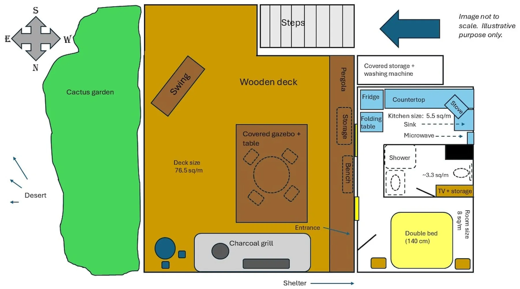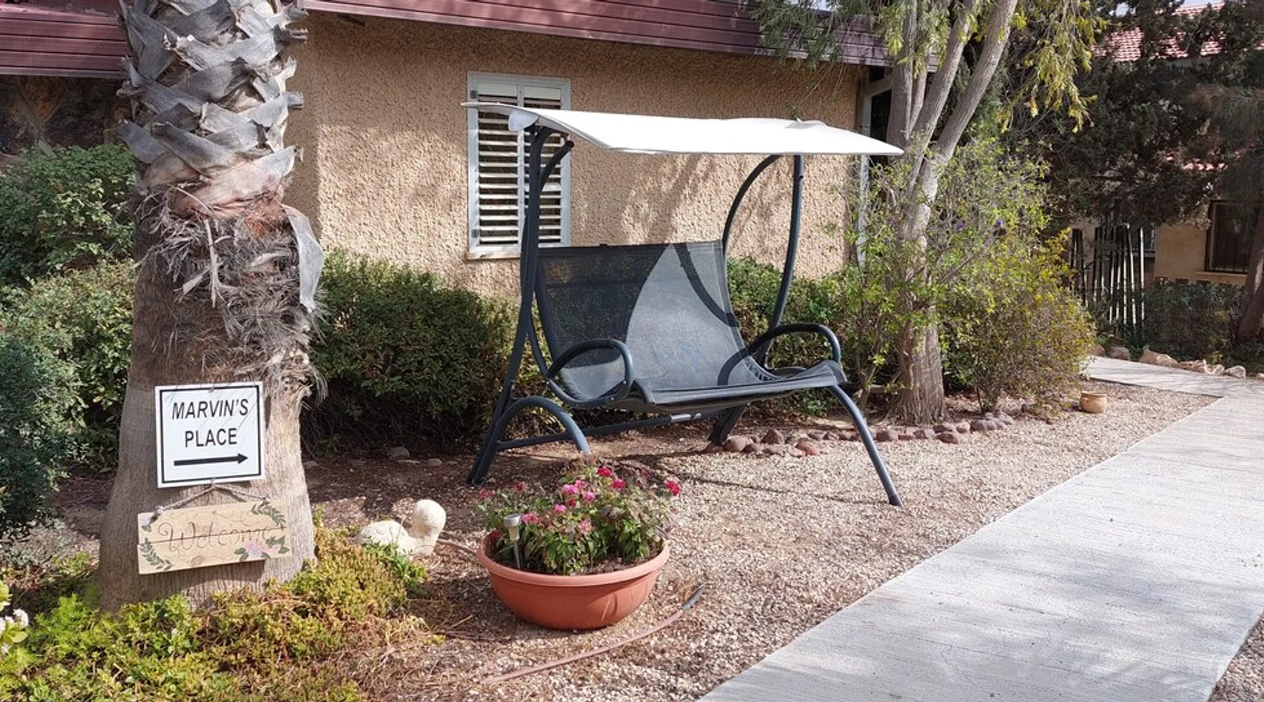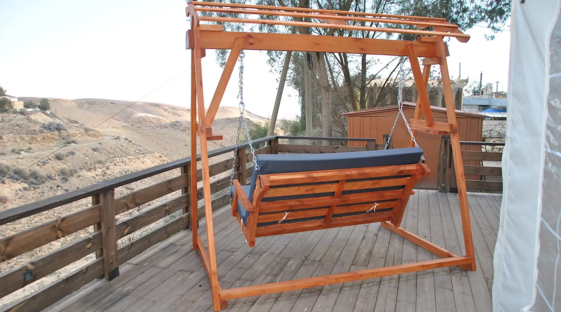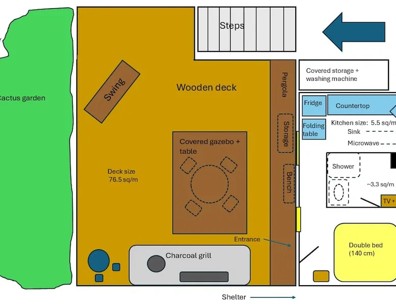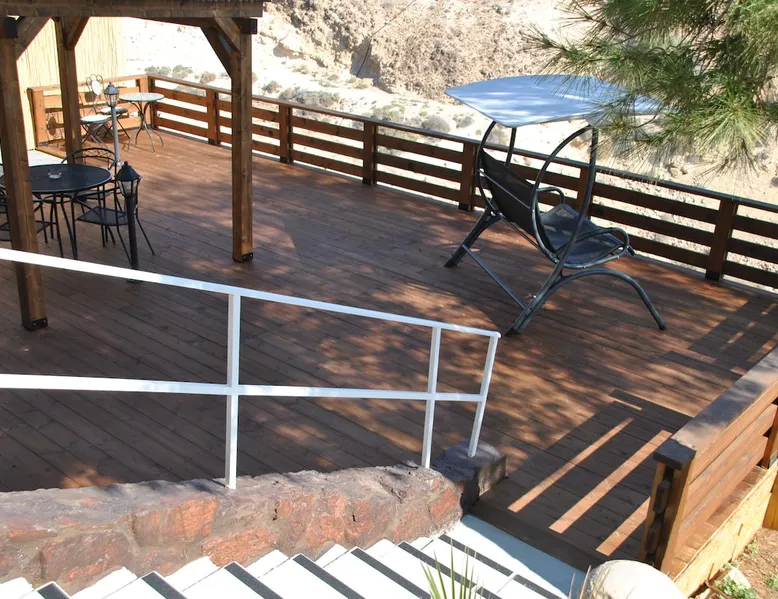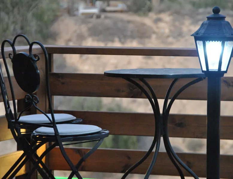** Guests from Israel: Your price does not include 18% VAT, which must be paid separately to the property owner. Contact us for details. ** ** No pets allowed ** Minimum age of guests: 25 Marvin's Place offers high quality accommodation for couples in a relaxed atmosphere. Enjoy our beautiful wooden deck overlooking the captivating shapes of barren desert mountains and the distant Dead Sea on the horizon, the silent breeze of desert wind and a flock of camels strolling by. The space ** Guests from Israel: 18% VAT must be paid directly to owner. Contact us for details. ** ** No pets allowed ** Minimum age of guests: 25 Marvin’s Place served, for two decades, as Marvin Friedman's workroom. This is where he spent much of his time studying desert life and creating magnificent artwork. It is a 1 bedroom / 1 kitchen / 1 bathroom apartment, attached to the main house but accessed separately. Ask anyone in town about Marvin Friedman – they pretty much all know him as the mythological Biology teacher at the Arad High School, and a wildlife zoologist par excellence. “A legend” and “a rare person” are just two of the many powerful words used by some of Marvin’s former students to describe him. His unique teaching method involved taking students out to the desert so that they experience it and bringing desert life into the classroom. He had a way with students, leaving them with great memories many years after his retirement; in fact, many of them claim he was the reason they began to love animals and nature in the first place. Marvin’s workroom was renovated to accommodate one person or a couple looking to enjoy their time in the peaceful town of Arad, and no expense was spared to provide guests with a luxurious experience. As you walk up the driveway, you'll follow a path leading to the back of house where you'll discover a beautiful wooden deck overlooking the desert, and a private entrance to the guesthouse. From the deck you'll enjoy captivating views of the desert and on clear days can see the Dead Sea. On occasion, you'll find a pack of camels grazing below in the valley. Guests have private use of an enclosed, heated gazebo with dining table, as well as a swing, small table, and charcoal grill (just bring your own food of choice and charcoal). When you enter the guesthouse, you'll walk into a small bedroom with a luxurious foam memory double bed. The room is equipped with a 43-inch smart TV with complementary local channels, Netflix, and YouTube. A small door (50 cm / 20 inch wide) leads to the bathroom where you'll find a walk-in shower, shampoo, conditioner, body soap, hair dryer, and of course toilet paper… An adjacent hallway leads to a kitchen, which is fully equipped with everything you'd need for your own cooking (fridge with freezer, gas stovetop, microwave, Espresso coffee machine with complementary capsules, milk foam maker, water kettle, complementary water bottle and milk, cooking oil, spices, and all kitchenware). Marvin's Place is small, but cozy. To accommodate your luggage, we've placed a plastic garden storage unit right outside the guesthouse, freeing up space inside the unit. . Guest access The guesthouse is located in the back part of a private home. To reach it, guests follow a path along the side of the house, down a few steps to a private wooden deck and entrance to the guesthouse. Guests have exclusive use of the wooden deck, which overlooks the desert. Other things to note ** Guests from Israel: 18% VAT paid separately, directly to owner. Contact us for details. ** Non-Israeli citizens are not required to pay VAT. ** No pets are allowed. ** Minimum age of guests: 25