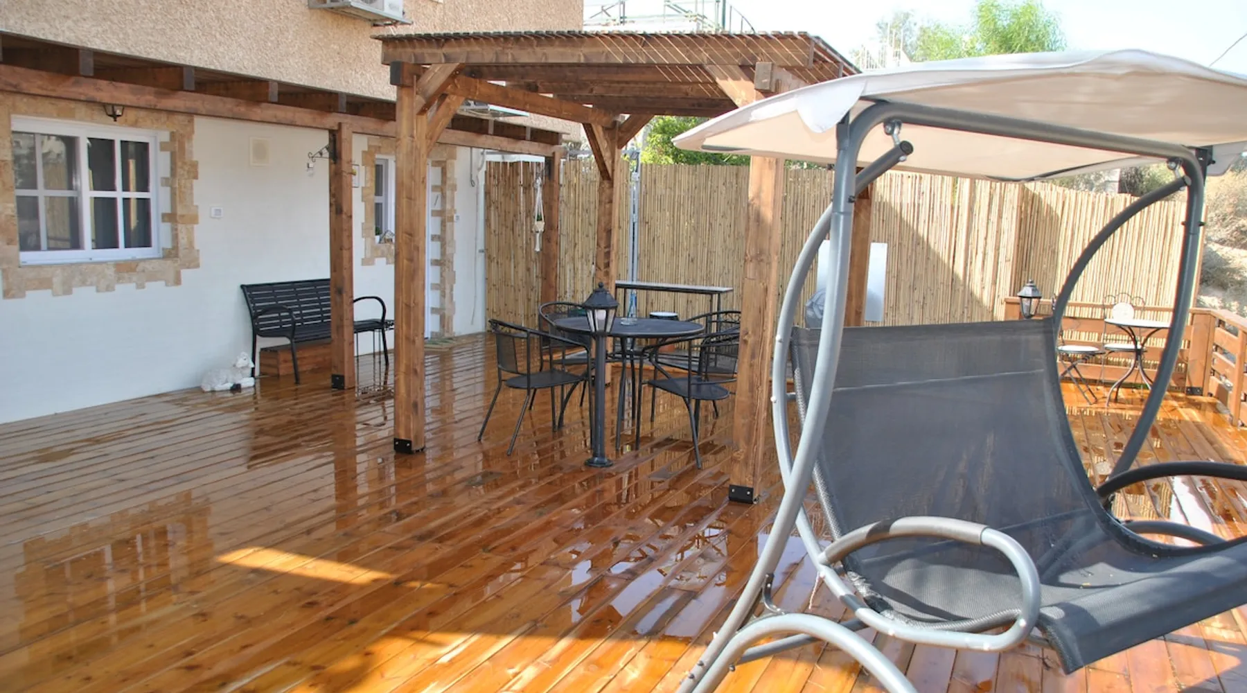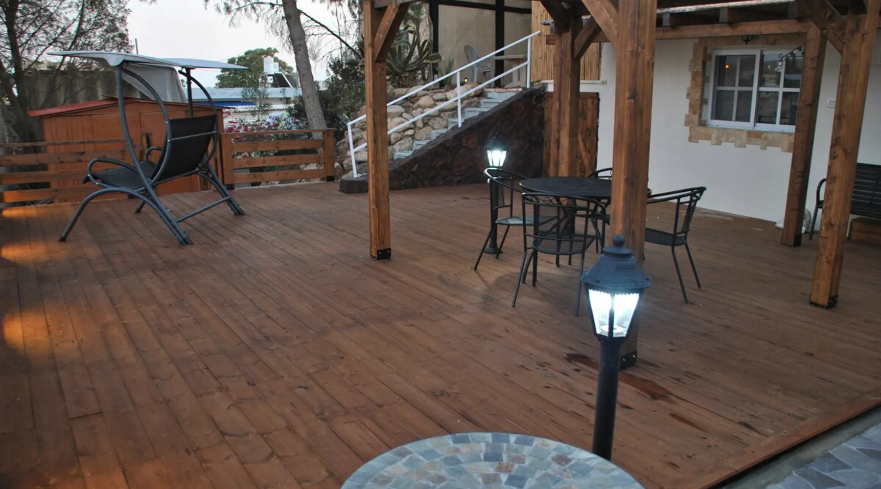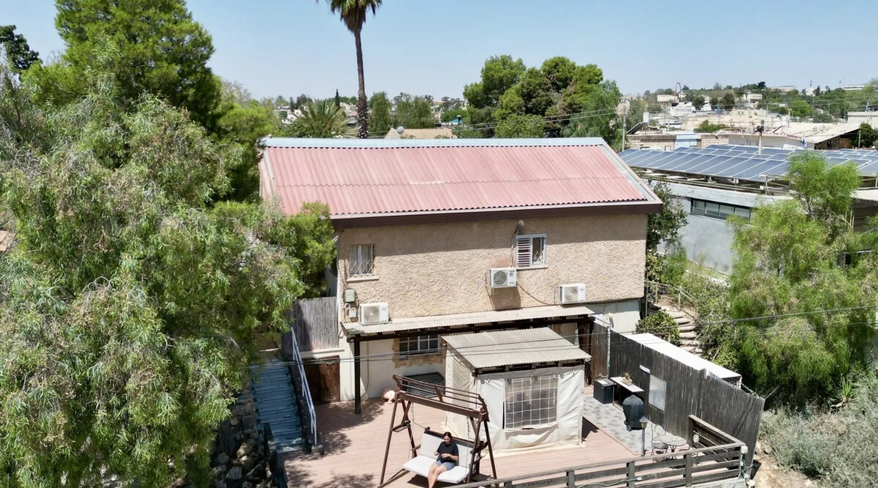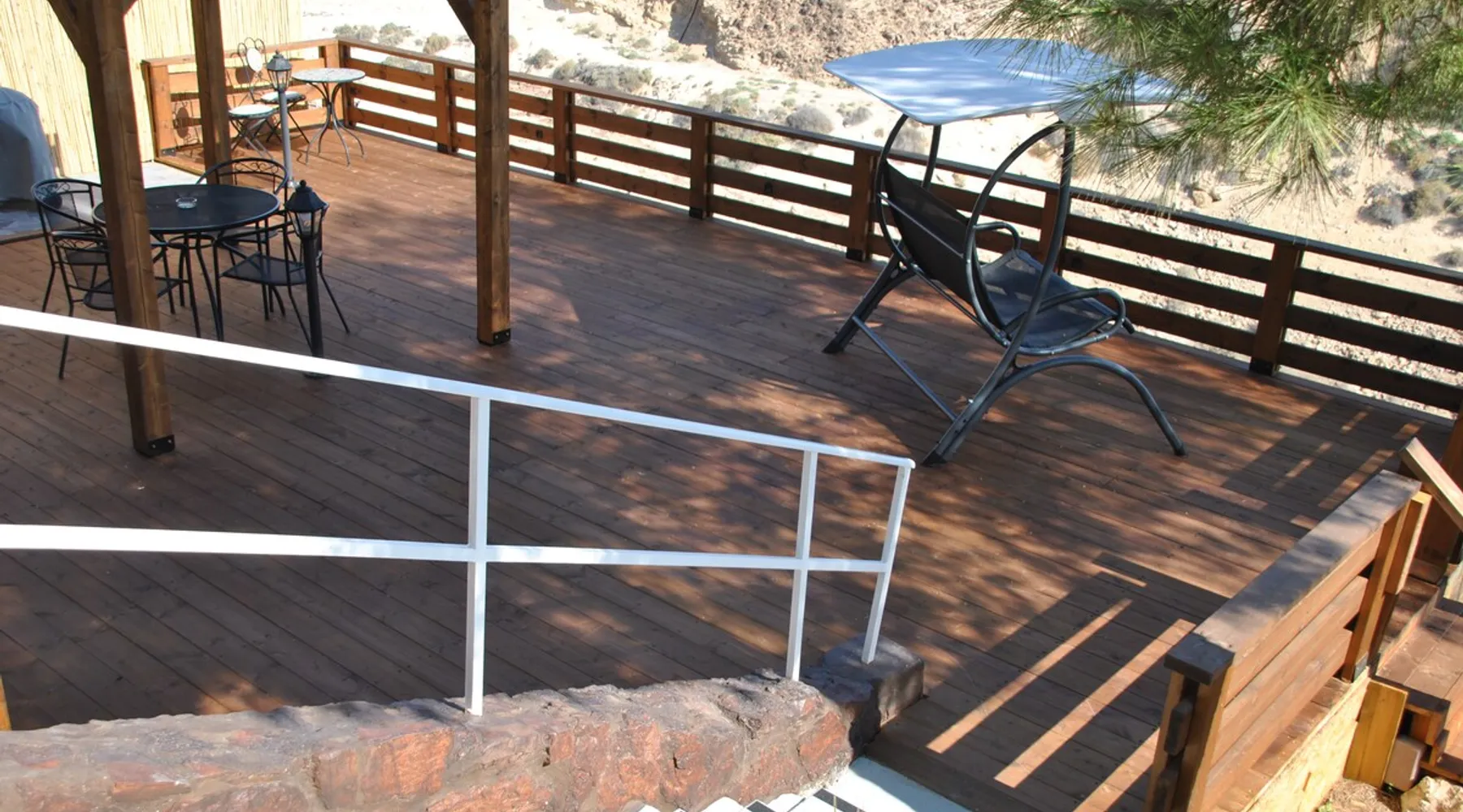 ** Guests from Israel: Your price does not include 18% VAT, which must be paid separately to the property owner. Contact us for details. ** ** No pets allowed ** Minimum age of guests: 25 Marvin's Place offers high quality accommodation for couples in a relaxed atmosphere. Enjoy our beautiful wooden deck overlooking the captivating shapes of barren desert mountains and the distant Dead Sea on the horizon, the silent breeze of desert wind and a flock of camels strolling by. The space ** Guests from Israel: 18% VAT must be paid directly to owner. Contact us for details. ** ** No pets allowed ** Minimum age of guests: 25 Marvin’s Place served, for two decades, as Marvin Friedman's workroom. This is where he spent much of his time studying desert life and creating magnificent artwork. It is a 1 bedroom / 1 kitchen / 1 bathroom apartment, attached to the main house but accessed separately. Ask anyone in town about Marvin Friedman – they pretty much all know him as the mythological Biology teacher at the Arad High School, and a wildlife zoologist par excellence. “A legend” and “a rare person” are just two of the many powerful words used by some of Marvin’s former students to describe him. His unique teaching method involved taking students out to the desert so that they experience it and bringing desert life into the classroom. He had a way with students, leaving them with great memories many years after his retirement; in fact, many of them claim he was the reason they began to love animals and nature in the first place. Marvin’s workroom was renovated to accommodate one person or a couple looking to enjoy their time in the peaceful town of Arad, and no expense was spared to provide guests with a luxurious experience. As you walk up the driveway, you'll follow a path leading to the back of house where you'll discover a beautiful wooden deck overlooking the desert, and a private entrance to the guesthouse. From the deck you'll enjoy captivating views of the desert and on clear days can see the Dead Sea. On occasion, you'll find a pack of camels grazing below in the valley. Guests have private use of an enclosed, heated gazebo with dining table, as well as a swing, small table, and charcoal grill (just bring your own food of choice and charcoal). When you enter the guesthouse, you'll walk into a small bedroom with a luxurious foam memory double bed. The room is equipped with a 43-inch smart TV with complementary local channels, Netflix, and YouTube. A small door (50 cm / 20 inch wide) leads to the bathroom where you'll find a walk-in shower, shampoo, conditioner, body soap, hair dryer, and of course toilet paper… An adjacent hallway leads to a kitchen, which is fully equipped with everything you'd need for your own cooking (fridge with freezer, gas stovetop, microwave, Espresso coffee machine with complementary capsules, milk foam maker, water kettle, complementary water bottle and milk, cooking oil, spices, and all kitchenware). Marvin's Place is small, but cozy. To accommodate your luggage, we've placed a plastic garden storage unit right outside the guesthouse, freeing up space inside the unit. . Guest access The guesthouse is located in the back part of a private home. To reach it, guests follow a path along the side of the house, down a few steps to a private wooden deck and entrance to the guesthouse. Guests have exclusive use of the wooden deck, which overlooks the desert. Other things to note ** Guests from Israel: 18% VAT paid separately, directly to owner. Contact us for details. ** Non-Israeli citizens are not required to pay VAT. ** No pets are allowed. ** Minimum age of guests: 25