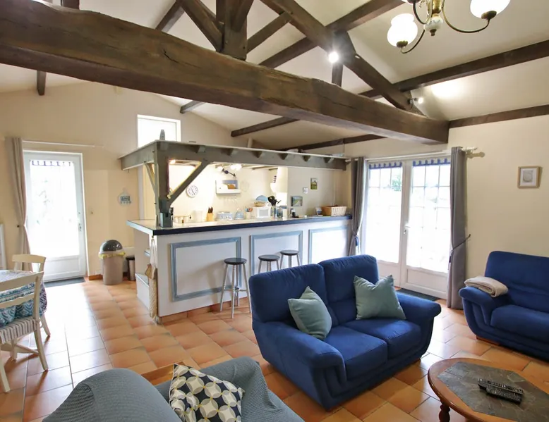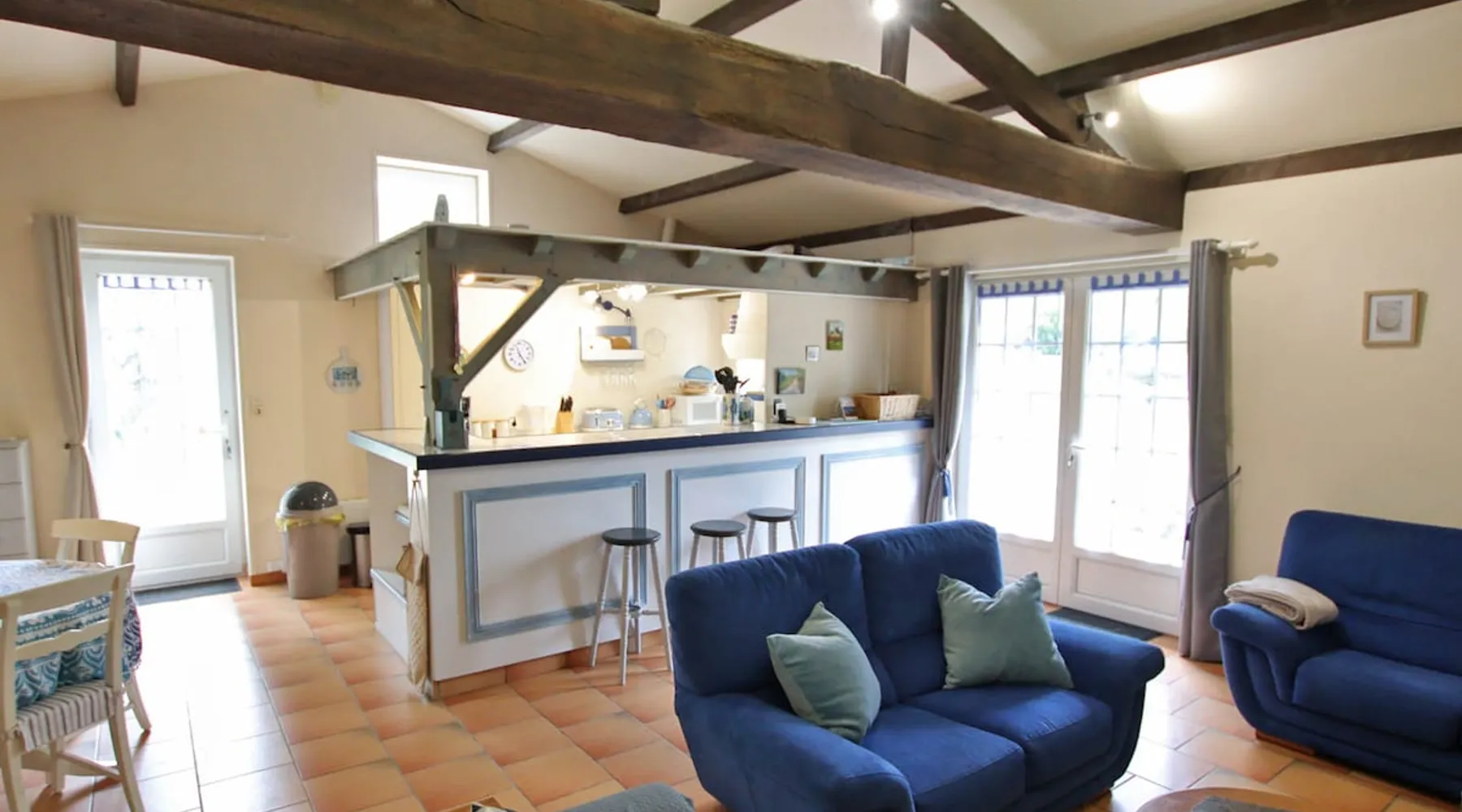 The Cottage Bleu in Lairoux, Vendée, is a peaceful getaway perfect for families. With two spacious bedrooms, a fully equipped kitchen and a comfortable living room, there is enough space for everyone to relax. Outside you can enjoy a private terrace with barbecue, a lovely garden and a large swimming pool. The beach is only a short drive away! The space The Blue Cottage is level and suitable for families and people with reduced mobility, but not for people in wheelchairs. The living room, dining room and kitchen are open, the two bedrooms are located on one side and the bathroom on the other. One of the bedrooms has a king-size bed, wardrobe, side tables and drawers, while the second has two single beds, wardrobe and side drawers. A crib and a high chair can be provided if necessary. Outside you will find a table and chairs as well as an umbrella. The pool is located in the garden and is surrounded by flower beds and lawns. There are sun loungers around the pool and there are no views of the nearby houses. The cottage is on one side of a yard and the owner's house is on the other side. Please note that owners may have a small dog on site. Family dogs are welcome and the cottage is open all year round. The pool is open from May to the end of September and is heated by the sun. Guest access Le Cottage Bleu is a 2 bedroom detached house, with shared parking, garden and swimming pool. There is a private terrace for outdoor dining. Other things to note Cleaning must be done by guests before they leave. Registration Details 08502085-11723-0090