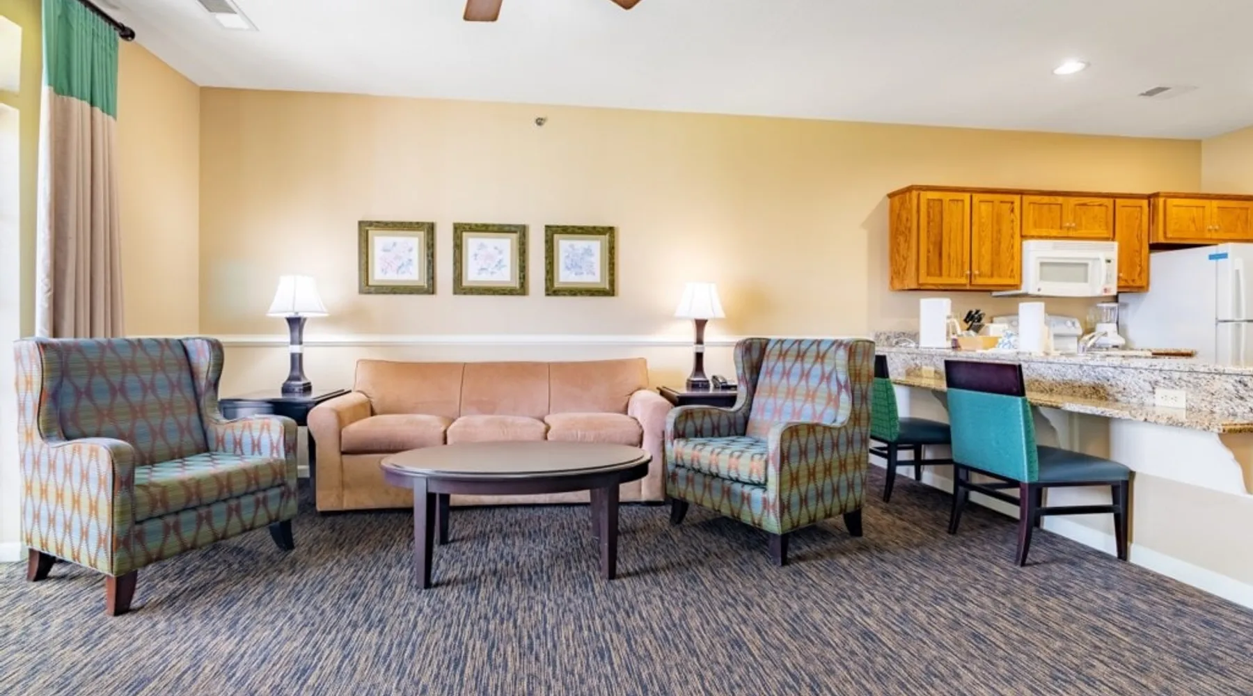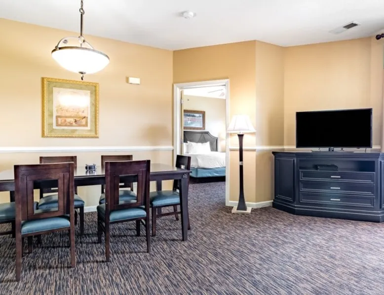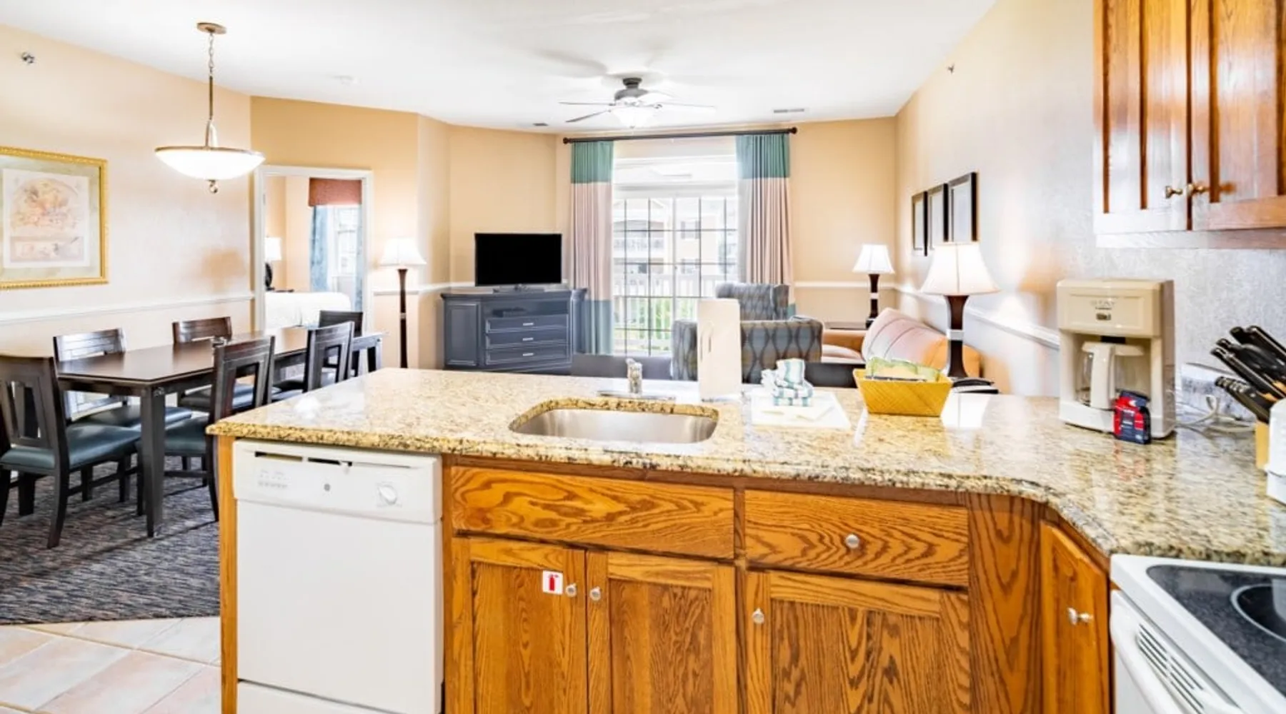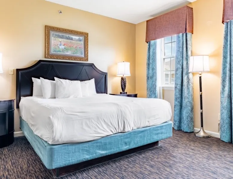 Resort by Colonial Williamsburg | Pool + Fire Pit Enjoy peaceful surroundings and modern comforts at this charming resort just minutes from Colonial Williamsburg and historic sites. After a day of exploring, relax by the pool, stroll the landscaped grounds, or gather around the fire pit. The space Approximately 1,242 square feet, this luxurious Two- Bedroom Deluxe Suite features 1 King Bed in the master bedroom, 2 Queen Beds in the guest bedroom, 1 Queen Sleeper Sofa in the living room including a kitchen, dining area and 2 bathrooms. Maximum of 8 occupants. Other things to note Please bring a valid Picture ID. If the name of the person checking in is changed after this information is provided, there will be a $99.00 name change fee and $129 on the day of check in. A $250 Pre-Authorization from any major credit card upon checking in is required. Cash is not accepted.