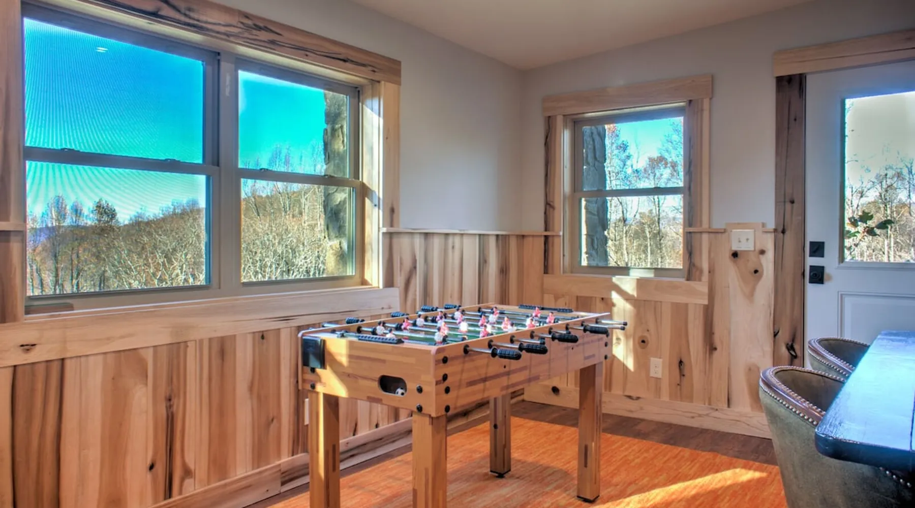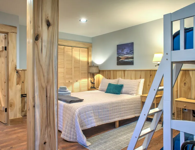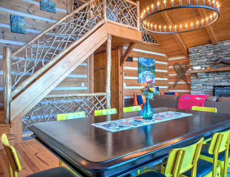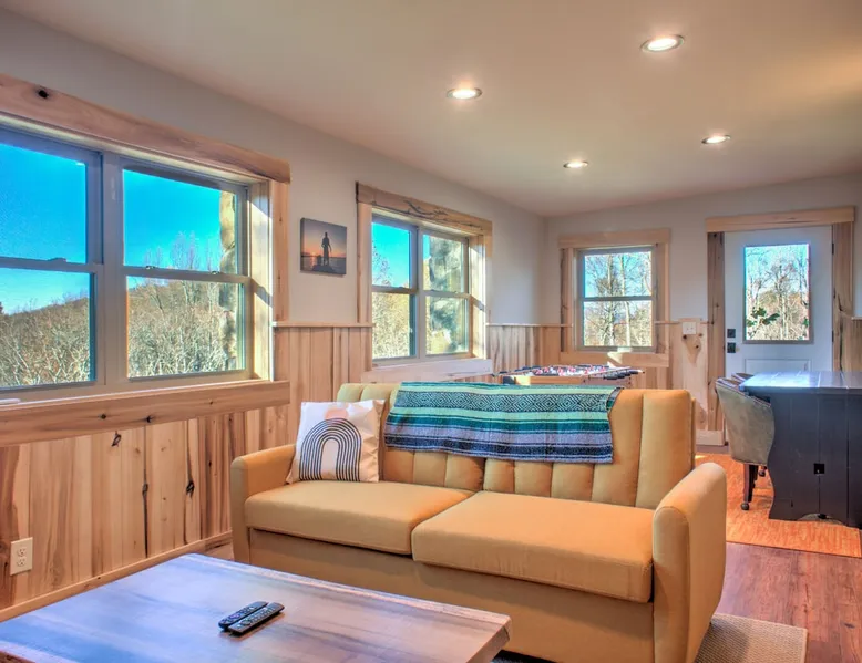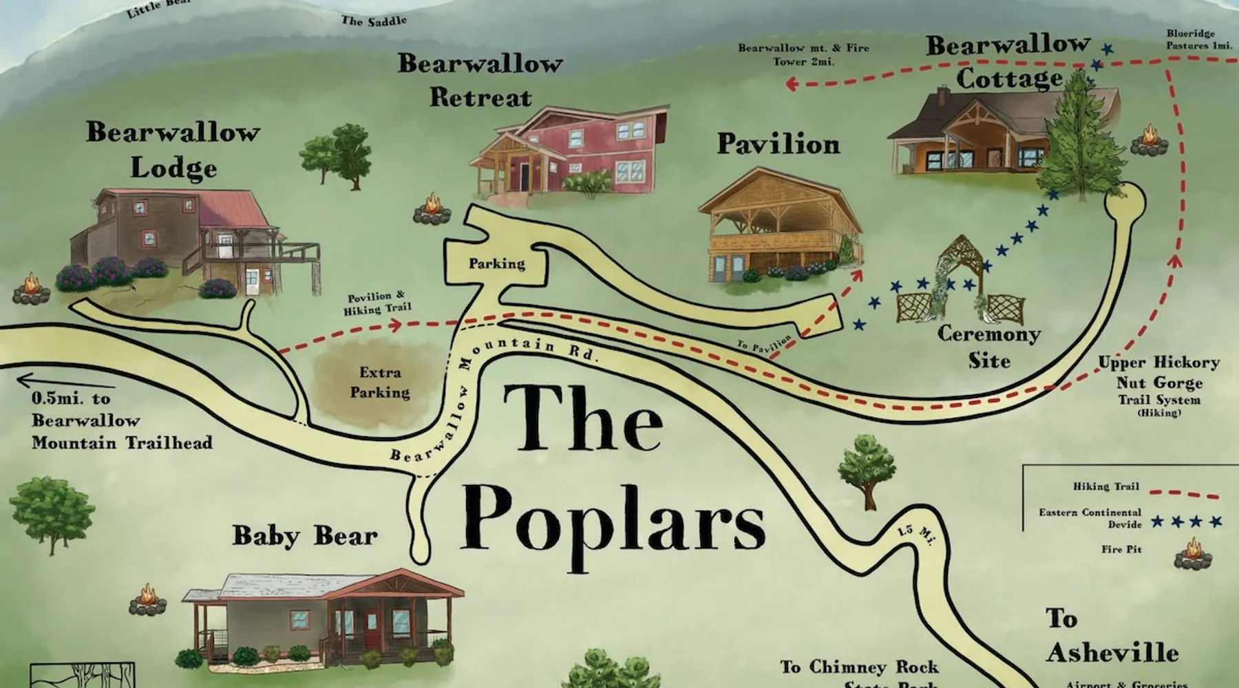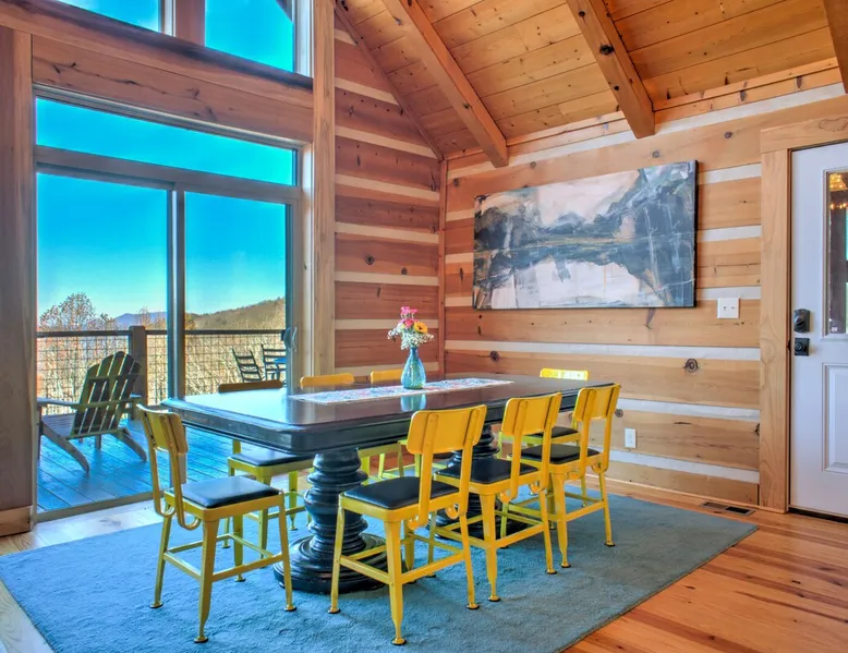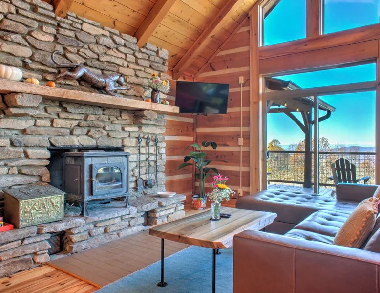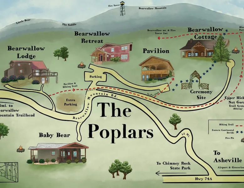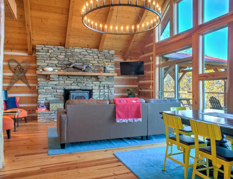 Discover the hidden gem that is Bearwallow Lodge, a true treasure! This A-Frame log house has been renovated by local mountain craftsmen and captures the essence of mountain living with its rustic allure and unique blend of eclectic decor. The breathtaking views that unfold from this retreat are simply priceless, providing an awe-inspiring backdrop for your stay. The space With ample space to accommodate everyone, Bearwallow Lodge boasts 4 bedrooms, all with blackout curtains, a cozy bunk room, and 2 queen sleeper sofas. A haven of comfort, this lodge ensures that everyone has their own place to unwind and relax, with many gathering spaces. The wall of windows in the main living room, allows for an abundance of natural light as you gather in front of the fireplace or at the dining table. With 2 fully equipped kitchens, mealtime will flow effortlessly. Step out on to the deck to take a dip in the hot tub or take in the 50 mile views from the wrap around deck, you won't be able to tear yourself away! The lodge is conveniently situated close to hiking trails that invite exploration. Additionally, the vibrant offerings of Asheville are within an easy 35-minute drive, granting you access to the city's cultural richness, dining delights, and more. For an unforgettable getaway that marries rustic charm with modern convenience, Bearwallow Lodge stands as an exceptional choice. Looking to bring a larger group or hold an event? There are 3 other homes and a pavilion available within walking distance. Baby Bear at Bearwallow - Sleeps 4 Bearwallow Retreat - Sleeps 14 Bearwallow Cottage - Sleeps 12 Exclusive Special: When you book Bearwallow Lodge you will receive a special code for discounted tickets to the Biltmore Estate! Home Truths: - Sleeps in beds: 14 - Max Occupancy: 16 - Bonus Bunk Room in lower level with a Queen bed and Twin/Twin bunk - We provide linens for all beds; other occupancy will require guests providing their own linens - Internet Speed: Download - 400Mbps We openly share our Cleaning Fees in a manner of full disclosure, as we think this is the most honest and forthright approach with respect to our guests. Our Cleaning Fees are backed by our Clean Guarantee, which reflects the highest level of standards, pristine environments for our guests, and a level of clean that surpasses any other vacation homes; we literally guarantee it! Events: Events are allowed near this property for up to 100 guests. NOTE: All events will have fees associated with hosting an event, and determined/finalized after speaking with the events director of the property. Please talk with a Yonder Guest Experience Specialist for a referral to the events director to discuss all that The Poplars at Bearwallow Mountain has to offer as an event space, as well as discuss costs associated for an event fee. The Pavilion has electricity, a sound system, lighting and water access. As well, enjoy the use, set up and break down of high quality tables and X back style chairs for your event. ** Guests must book both the Bearwallow Retreat & Bearwallow Cottage for an event.** Quiet Policy: Please note that the property is located in a quiet community. Parties, loud noise and unruly behavior are absolutely prohibited, and guests are expected to respect the neighbors and the peace this mountain retreat area affords. Early Check In and/or Late Check Out may be possible, depending on cleaning schedules and other reservations. If it is possible, there may be an additional fee that would be determined based on the time that you wish to check in or out and the seasonal rates. Pets: Many of our guests have allergies so we have maintained a pet-free environment so they can enjoy their vacation without the potential of an allergic reaction. If you have a pet we can recommend some alternatives nearby. Please inquire for details regarding payment, the cancellation policy, military discounts, and trip insurance. Note: Reservations over 30 days are subject for review prior to acceptance. A separate rental agreement will be required for 90+ day stays. Last Minute Bookings: Reservations made within 7 days of check-in require additional documentation before confirmation.
