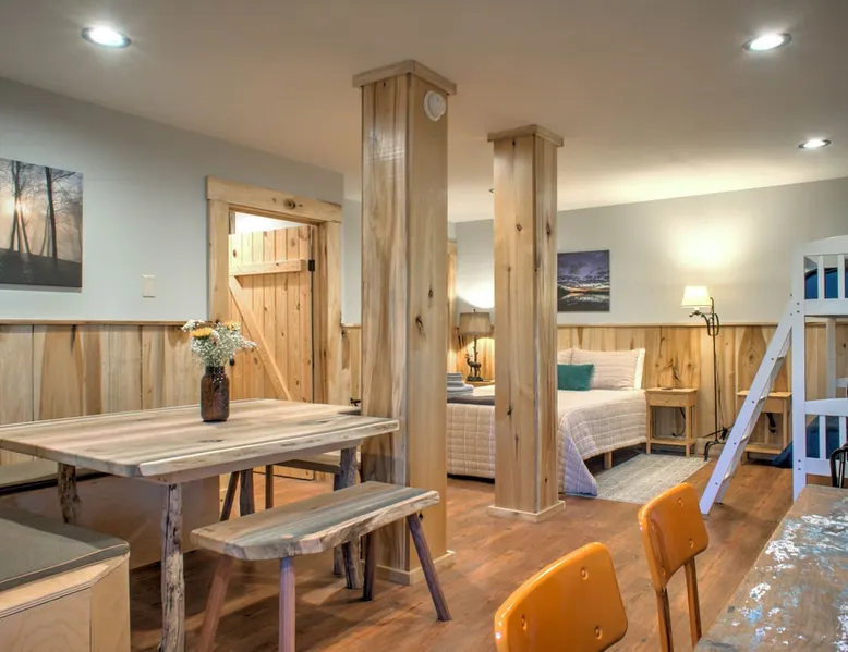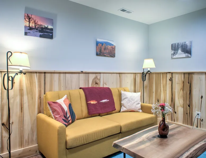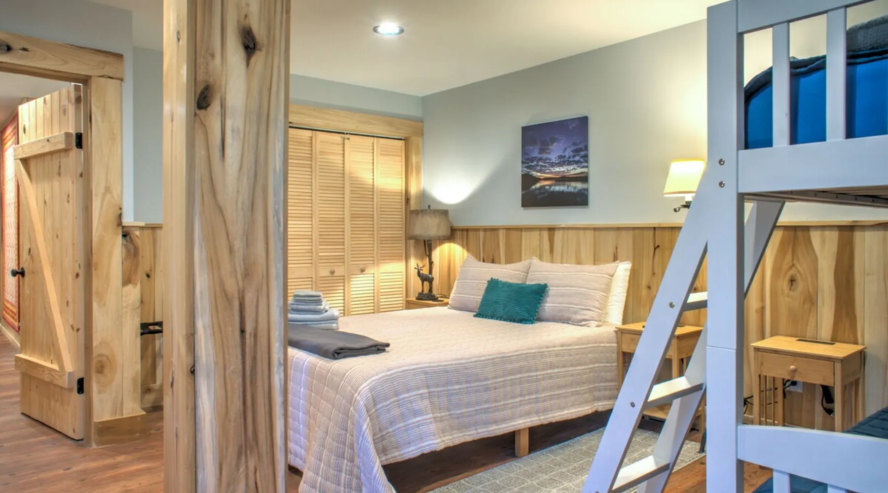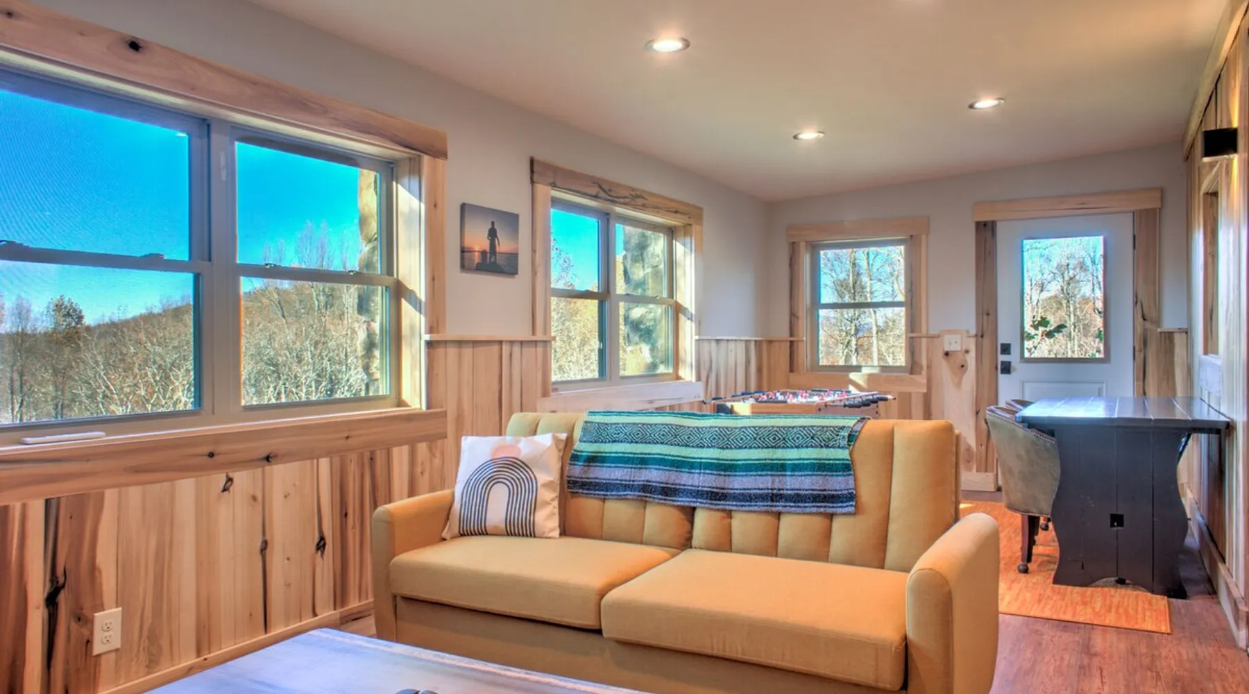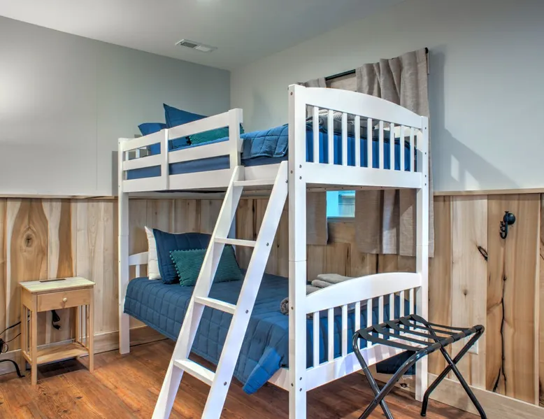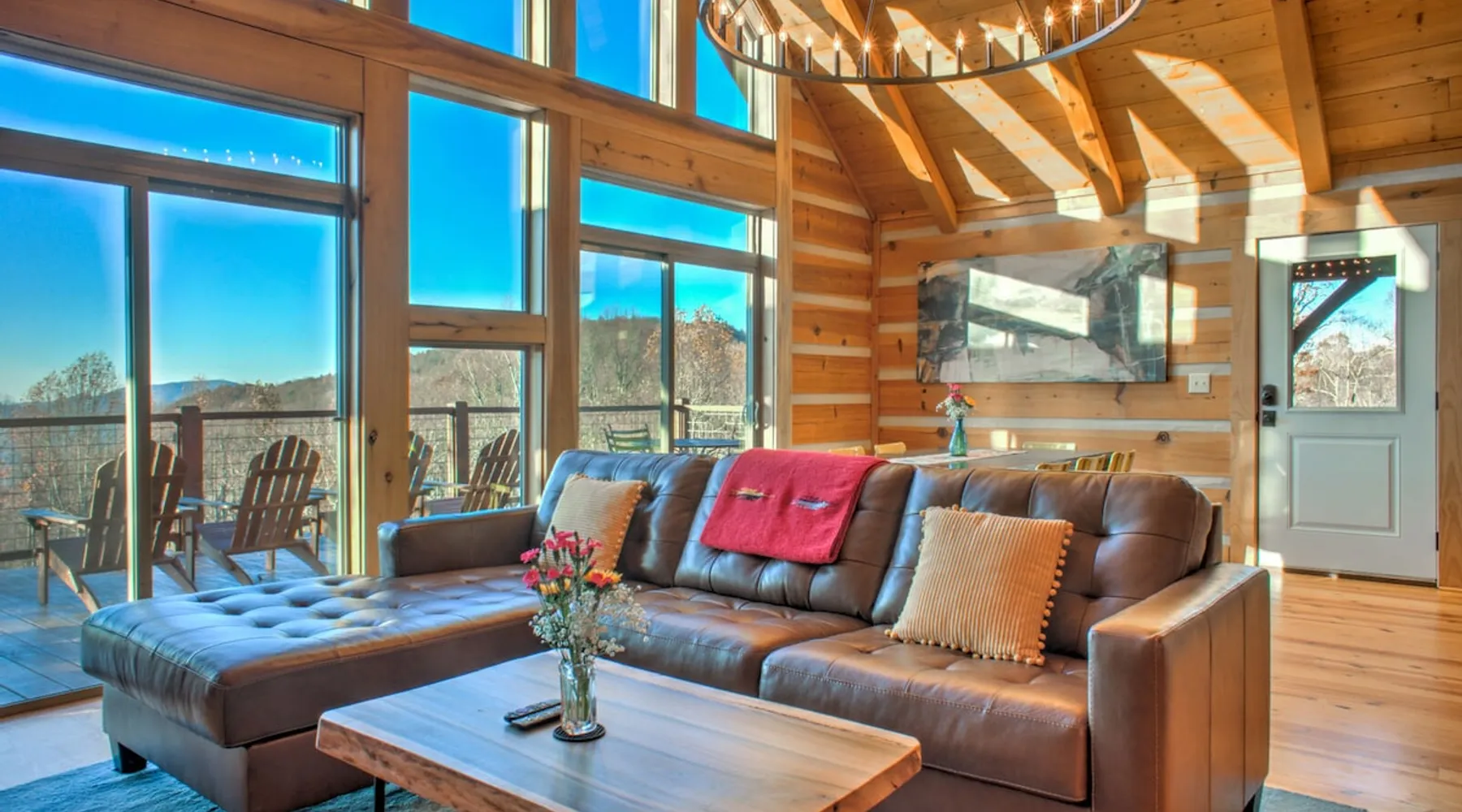 Discover the hidden gem that is Bearwallow Lodge, a true treasure! This A-Frame log house has been renovated by local mountain craftsmen and captures the essence of mountain living with its rustic allure and unique blend of eclectic decor. The breathtaking views that unfold from this retreat are simply priceless, providing an awe-inspiring backdrop for your stay. The space With ample space to accommodate everyone, Bearwallow Lodge boasts 4 bedrooms, all with blackout curtains, a cozy bunk room, and 2 queen sleeper sofas. A haven of comfort, this lodge ensures that everyone has their own place to unwind and relax, with many gathering spaces. The wall of windows in the main living room, allows for an abundance of natural light as you gather in front of the fireplace or at the dining table. With 2 fully equipped kitchens, mealtime will flow effortlessly. Step out on to the deck to take a dip in the hot tub or take in the 50 mile views from the wrap around deck, you won't be able to tear yourself away! The lodge is conveniently situated close to hiking trails that invite exploration. Additionally, the vibrant offerings of Asheville are within an easy 35-minute drive, granting you access to the city's cultural richness, dining delights, and more. For an unforgettable getaway that marries rustic charm with modern convenience, Bearwallow Lodge stands as an exceptional choice. Looking to bring a larger group or hold an event? There are 3 other homes and a pavilion available within walking distance. Baby Bear at Bearwallow - Sleeps 4 Bearwallow Retreat - Sleeps 14 Bearwallow Cottage - Sleeps 12 Exclusive Special: When you book Bearwallow Lodge you will receive a special code for discounted tickets to the Biltmore Estate! Home Truths: - Sleeps in beds: 14 - Max Occupancy: 16 - Bonus Bunk Room in lower level with a Queen bed and Twin/Twin bunk - We provide linens for all beds; other occupancy will require guests providing their own linens - Internet Speed: Download - 400Mbps We openly share our Cleaning Fees in a manner of full disclosure, as we think this is the most honest and forthright approach with respect to our guests. Our Cleaning Fees are backed by our Clean Guarantee, which reflects the highest level of standards, pristine environments for our guests, and a level of clean that surpasses any other vacation homes; we literally guarantee it! Events: Events are allowed near this property for up to 100 guests. NOTE: All events will have fees associated with hosting an event, and determined/finalized after speaking with the events director of the property. Please talk with a Yonder Guest Experience Specialist for a referral to the events director to discuss all that The Poplars at Bearwallow Mountain has to offer as an event space, as well as discuss costs associated for an event fee. The Pavilion has electricity, a sound system, lighting and water access. As well, enjoy the use, set up and break down of high quality tables and X back style chairs for your event. ** Guests must book both the Bearwallow Retreat & Bearwallow Cottage for an event.** Quiet Policy: Please note that the property is located in a quiet community. Parties, loud noise and unruly behavior are absolutely prohibited, and guests are expected to respect the neighbors and the peace this mountain retreat area affords. Early Check In and/or Late Check Out may be possible, depending on cleaning schedules and other reservations. If it is possible, there may be an additional fee that would be determined based on the time that you wish to check in or out and the seasonal rates. Pets: Many of our guests have allergies so we have maintained a pet-free environment so they can enjoy their vacation without the potential of an allergic reaction. If you have a pet we can recommend some alternatives nearby. Please inquire for details regarding payment, the cancellation policy, military discounts, and trip insurance. Note: Reservations over 30 days are subject for review prior to acceptance. A separate rental agreement will be required for 90+ day stays. Last Minute Bookings: Reservations made within 7 days of check-in require additional documentation before confirmation.