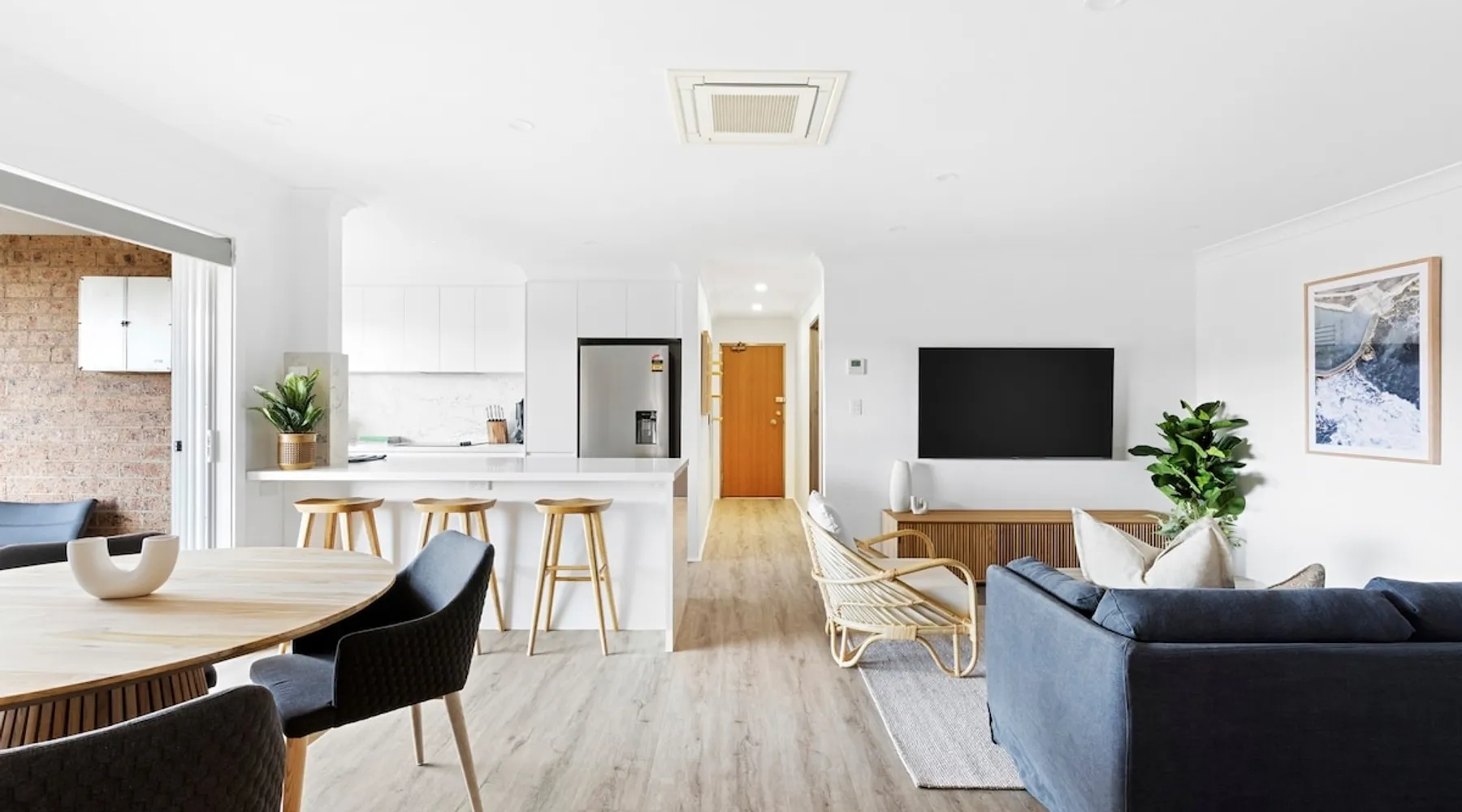 This is a beachside, bohemian home with all the comforts and conveniences you need. Our executive home feels like 'the perfect beachside escape'. Our entire apartment has been freshly furnished, with a large Smart TV, chef's kitchen and all the mod-cons to enjoy beachside living. Enjoy the best of Cronulla only steps away: yoga, massage, restaurants, cocktail bars, and beachside walks. Other things to note HOUSE RULES: *Check-in: After 3:00 pm *Checkout: 10:00 am *No smoking *No parties or events *No pets allowed *Child/Infant friendly * The home can accommodate up to 6 guests with the air mattress upon request, with a fee of $100. Please let us know upon booking if this option is required. ADDITIONAL RULES: *As per the Short Term Legislation Act 2020 NSW, all guests are required to obey these rules. For extra guests/day visitors, we must be informed for liability purposes. *In compliance with applicable legislation, we are required to enter a Short Term Rental Agreement with Guests upon booking. We are also transitioning from collecting a Security Deposit and will now be using a Pre-Authority form to hold as a form of security for your stay. *This is a no-party property. We do not allow parties/events of any sort. The maximum amount of guests allowed to sleep in this property is SIX people, however, we do allow day visitors of up to THREE people. No more than a maximum of NINE people are allowed in the property at any given time. *Only the guests staying at the property are permitted to be present. If you wish to have visitors in addition to booked guests, you must advise us in writing prior to your stay and ensure you receive written permission. *This home is a strictly no-smoking property. If any of our cleaners find any form of cigarette ash, butts or smell cigarettes in the apartment, we could issue a $500 fine. *This is a domestic residence and we love our neighbours. We do not allow loitering out the front of the building or in the common areas. Please respect our home and neighbours. We ask for minimal noise in the common areas, especially after 9 pm. *STRA Rules - By booking this home you automatically agree to all the STRA terms and conditions that are applicable to guests. You also agree that if you do break any of the house rules you will be asked to leave and no refund of the unused nightly rates will be returned. *Check-in/Check-out - We cannot stress enough the importance of checking out on time. Our regular check-in time is after 3 pm and check-out time is before to 10 am. If you wish to have an earlier check-in or later check-out, please reach out to us first. Please note, there may be a charge. *Changing of Dates Terms & Conditions - Requests to change booking dates may only be accommodated if check-in is more than 1 month away. - This is subject to approval and we reserve the right to decline any requests. - Please note that there may be a surcharge to change the dates. - Any changes to bookings are subject to approval and we ask all guests to reach out to us first. THINGS TO KNOW: *Check-in details will be sent either the night before checking in, or the morning of check-in for security reasons. * We only provide 1 set of keys for each stay. We do not have extra sets. * This property is suitable for babies or children and we have a cot and highchair available at the home. However we do not provide the linen. The cot is folded away for you to set up when needed. * The home comes with 1 visitor parking space that's first come first serve. We cannot guarantee a parking space if it's being used. There is also free 24-hour street parking outside the home. The clearance space for the parking area is only 2 meters. *Please note, the Aircon/heating is only in the living room/kitchen area. There are ceiling fans in both bedrooms. *There is no elevator in this building. There are 5 steps at the front entry and 27 steps going up to the apartment. *If you are in need of beach towels for your stay, we can provide them to you for a fee of $20 per towel. Just let us know how many towels you will be needing and we can get this organised before your stay! * Enjoy a seamless stay with our hassle-free airport pick-up and drop-off service, exclusively for guests booked to stay our homes. Contact us for rates and booking details! Registration details PID-STRA-48621
